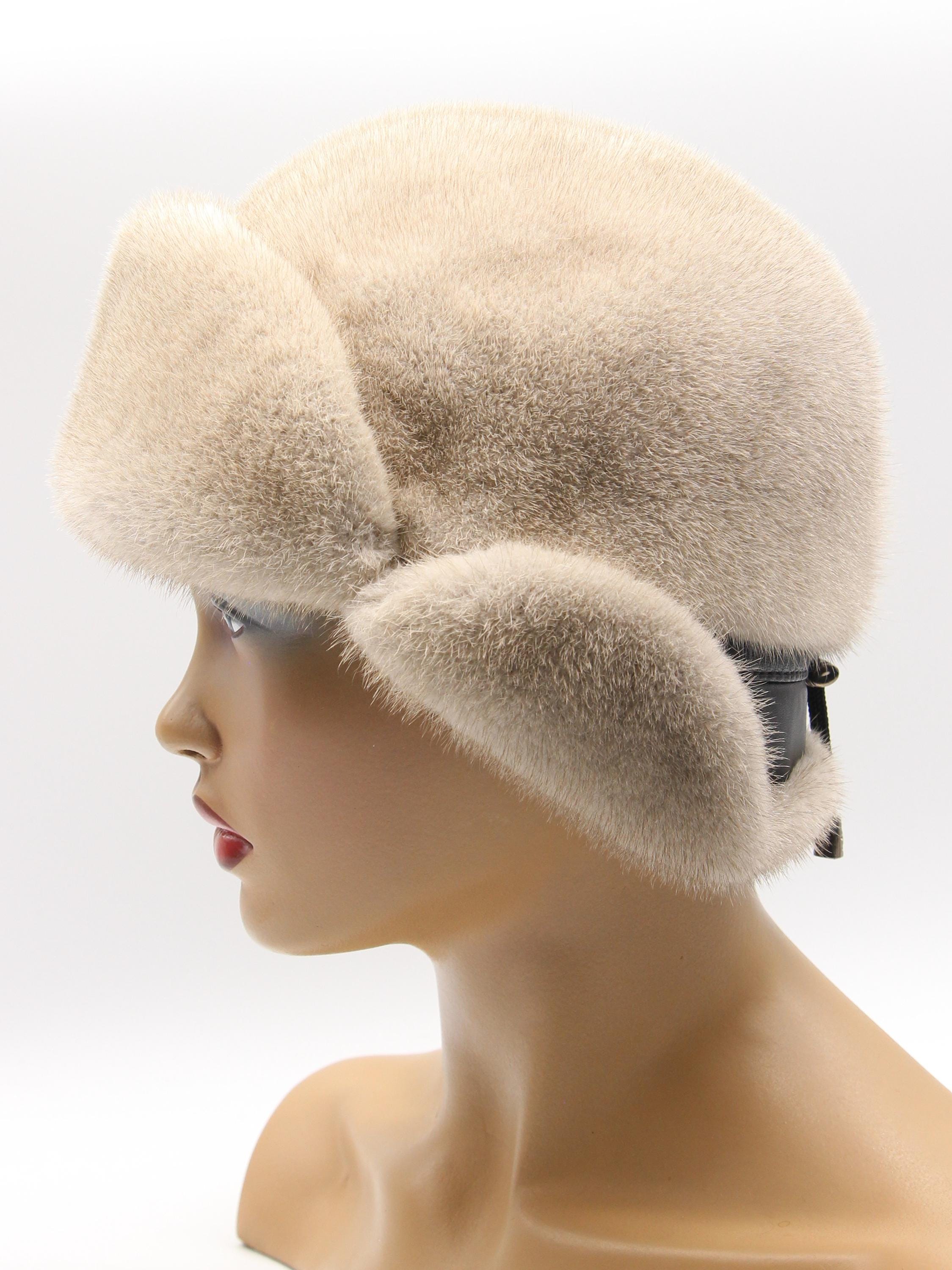 Luxury Grey Mink Fur Hat for Women - Winter Ushanka with Earflaps