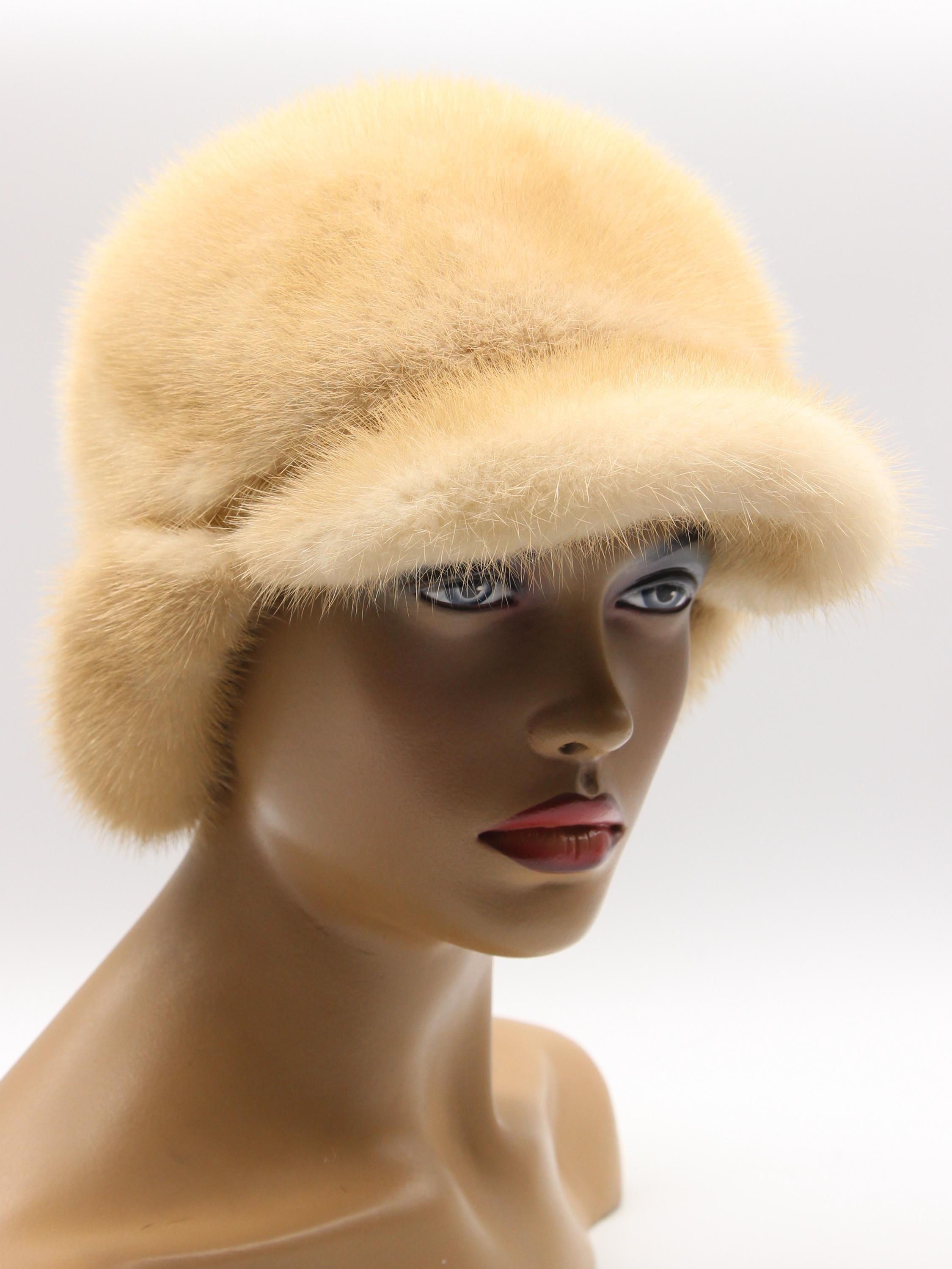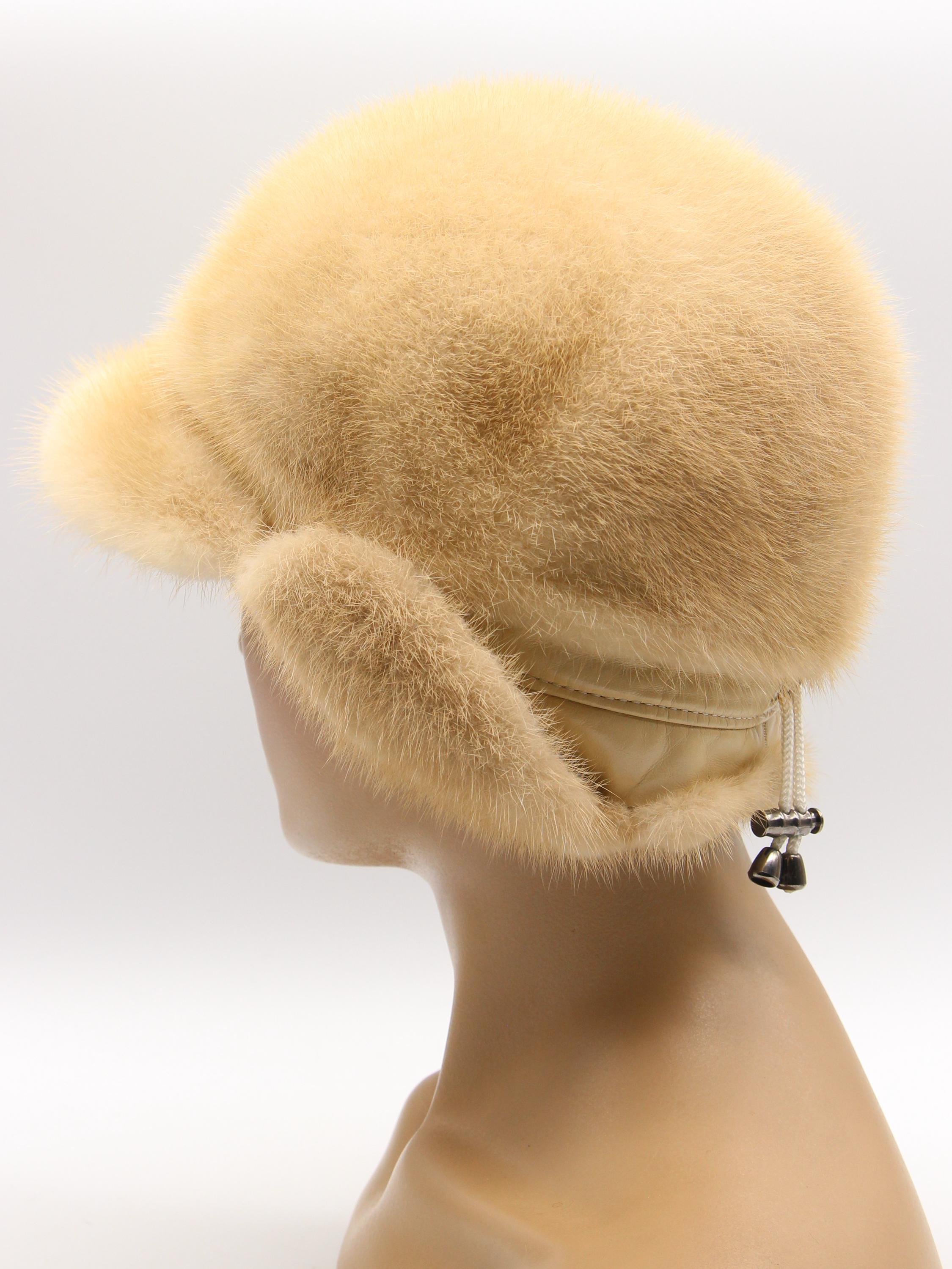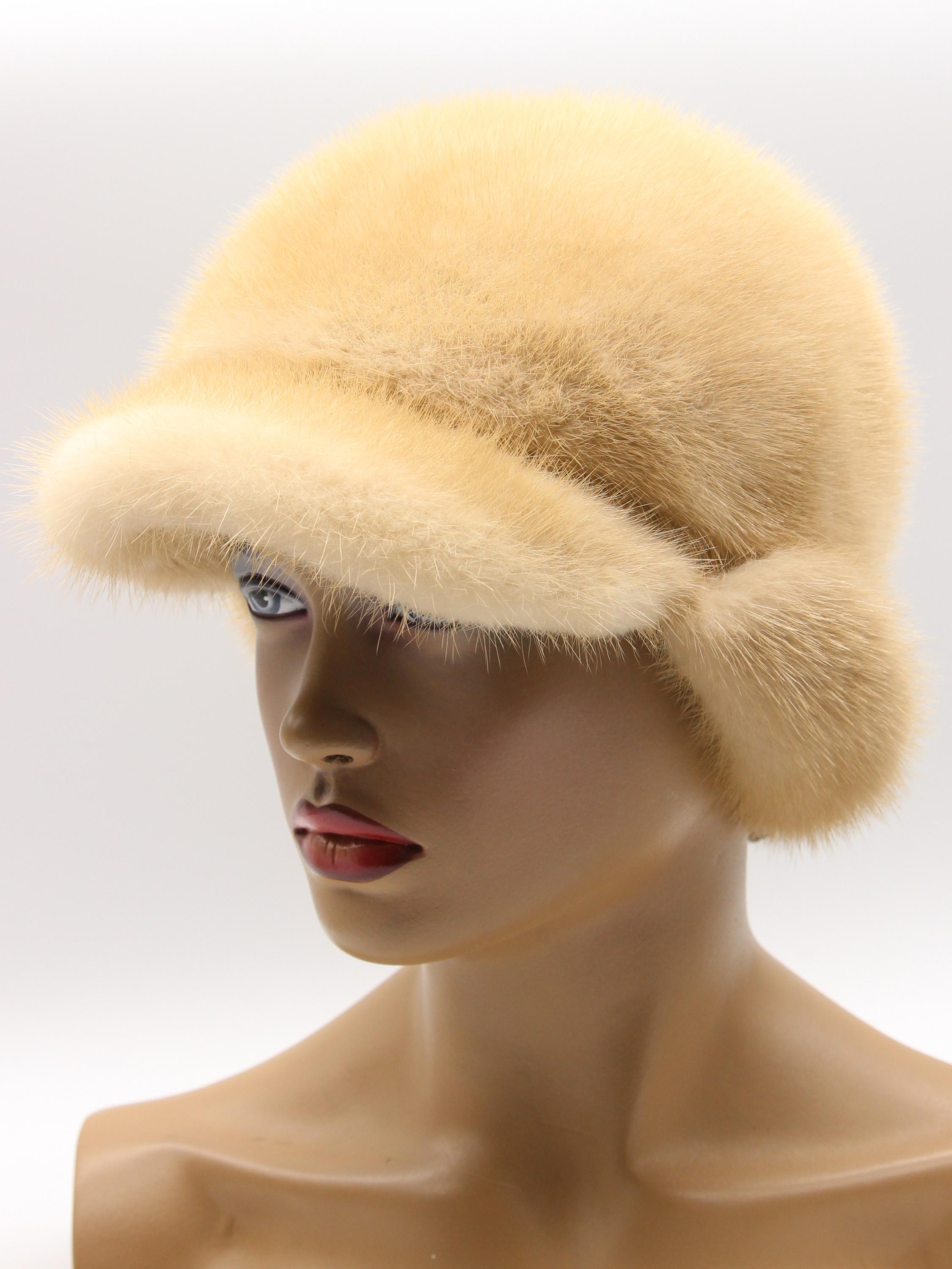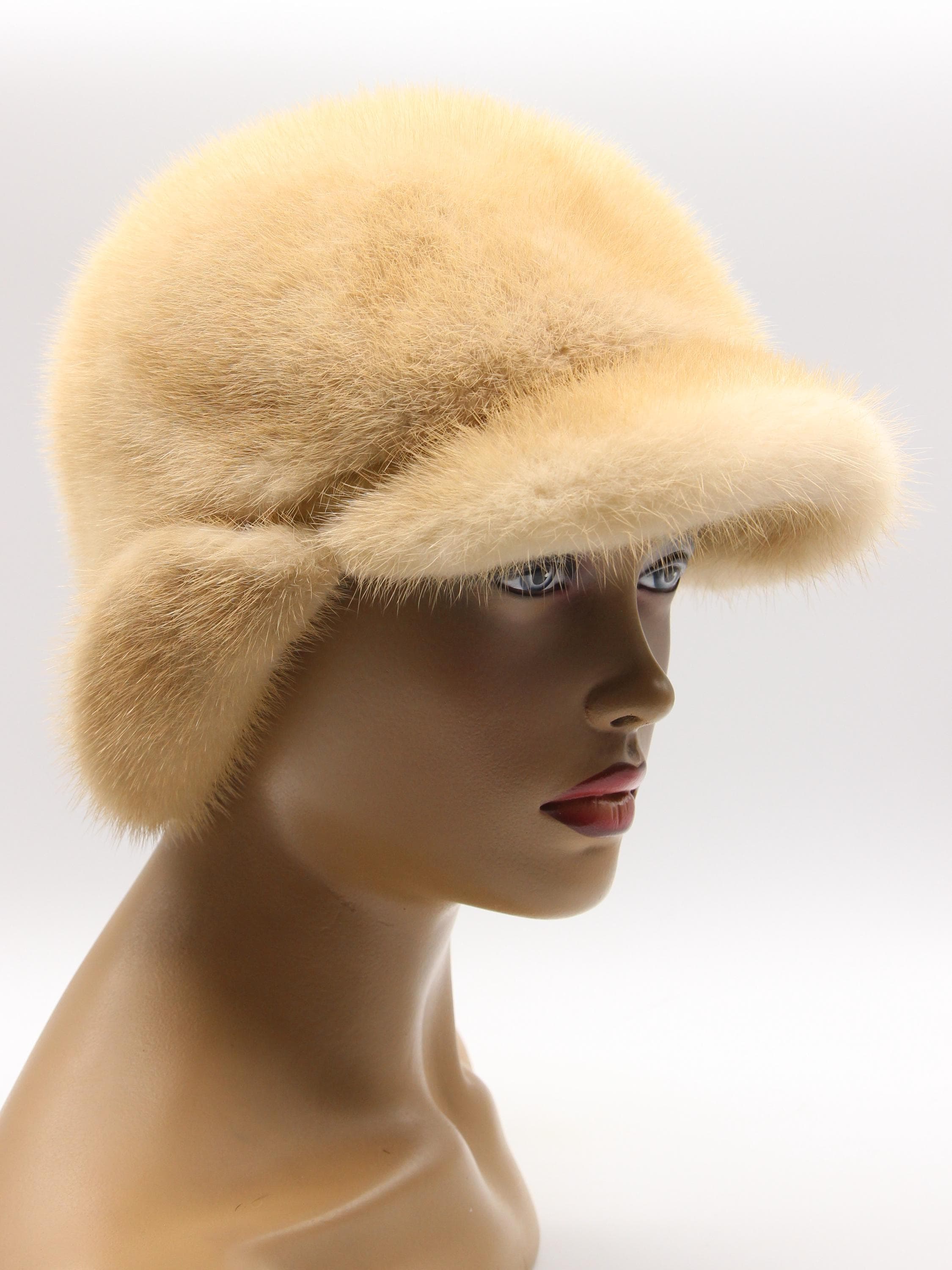 Luxury Pearl Champagne Mink Fur Hat with Visor for Women - Winter Ushanka