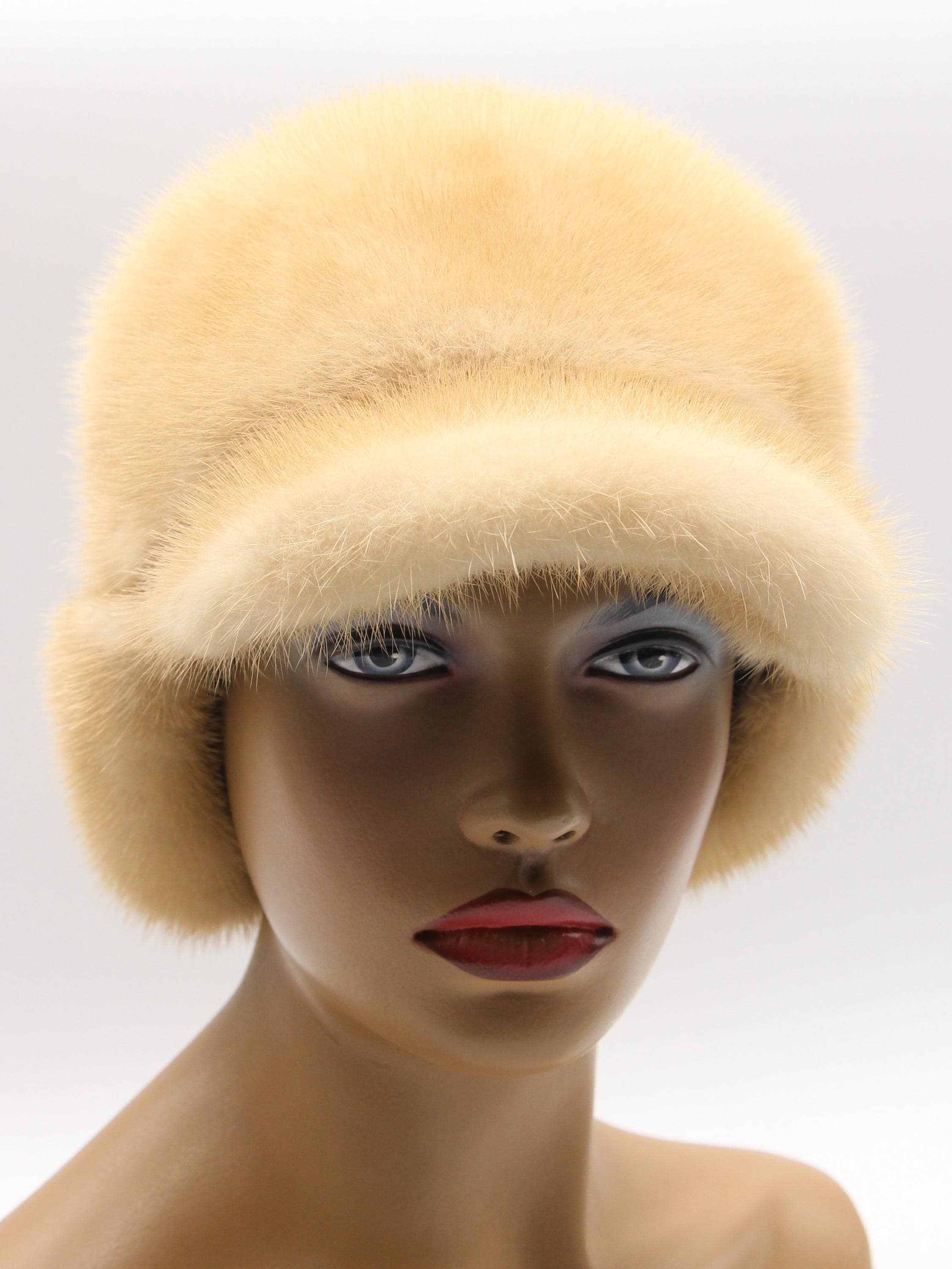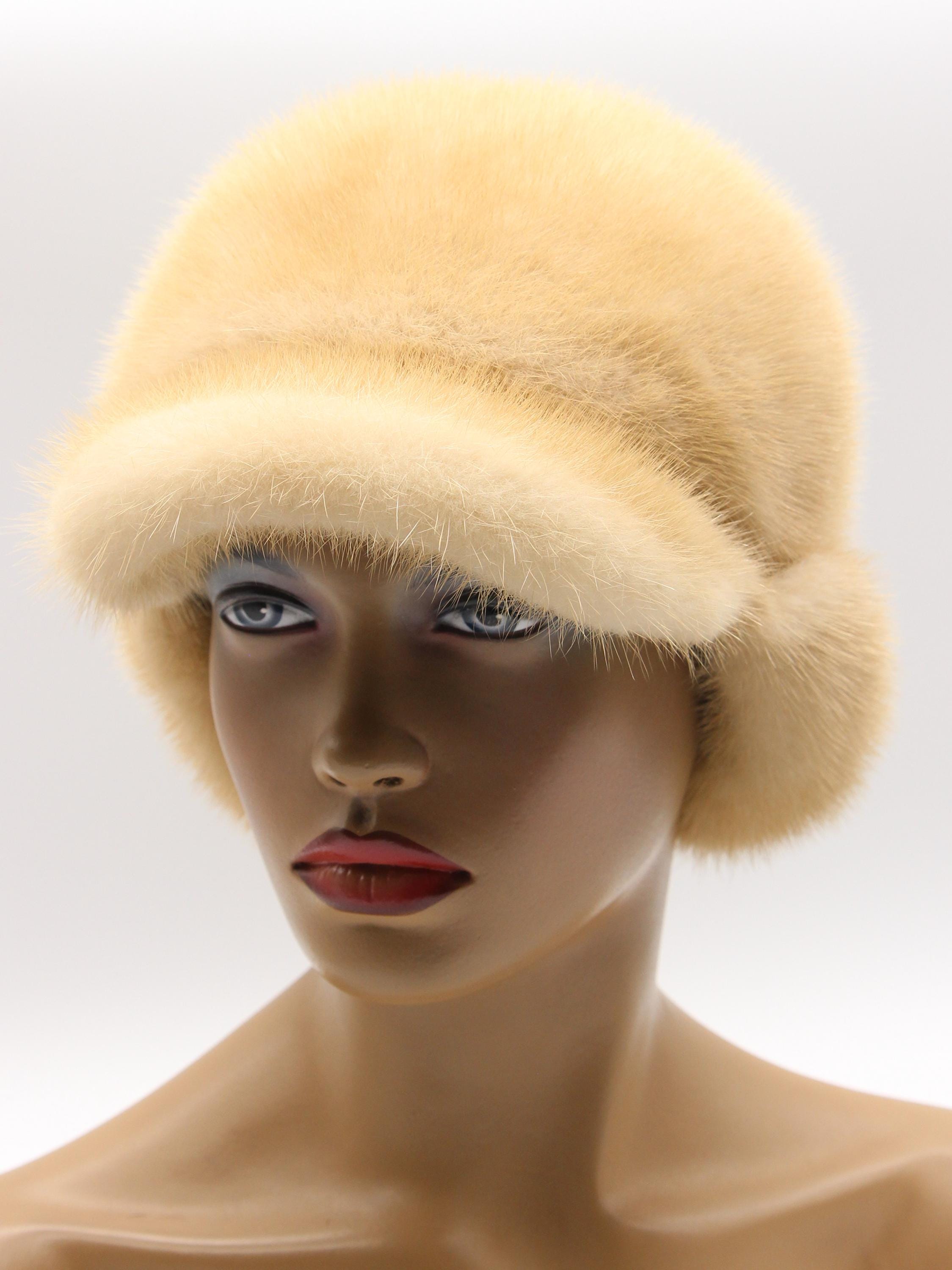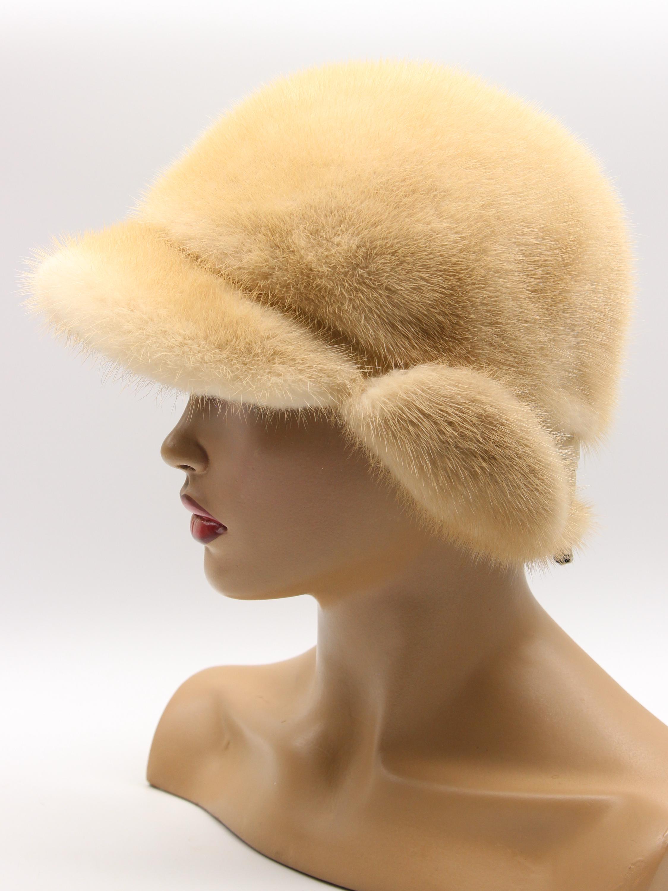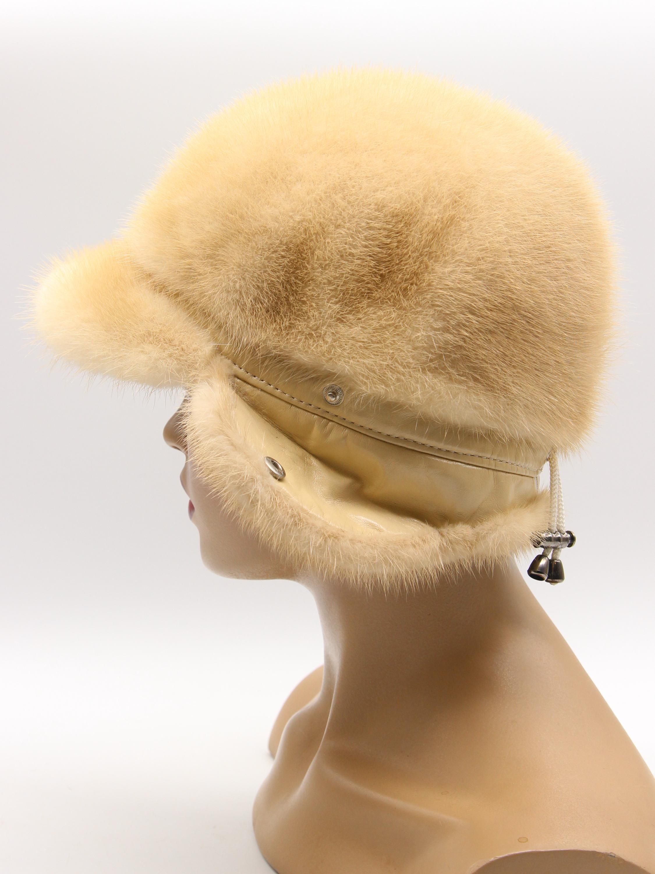 Luxury Pearl Champagne Mink Fur Hat with Visor for Women - Winter Ushanka