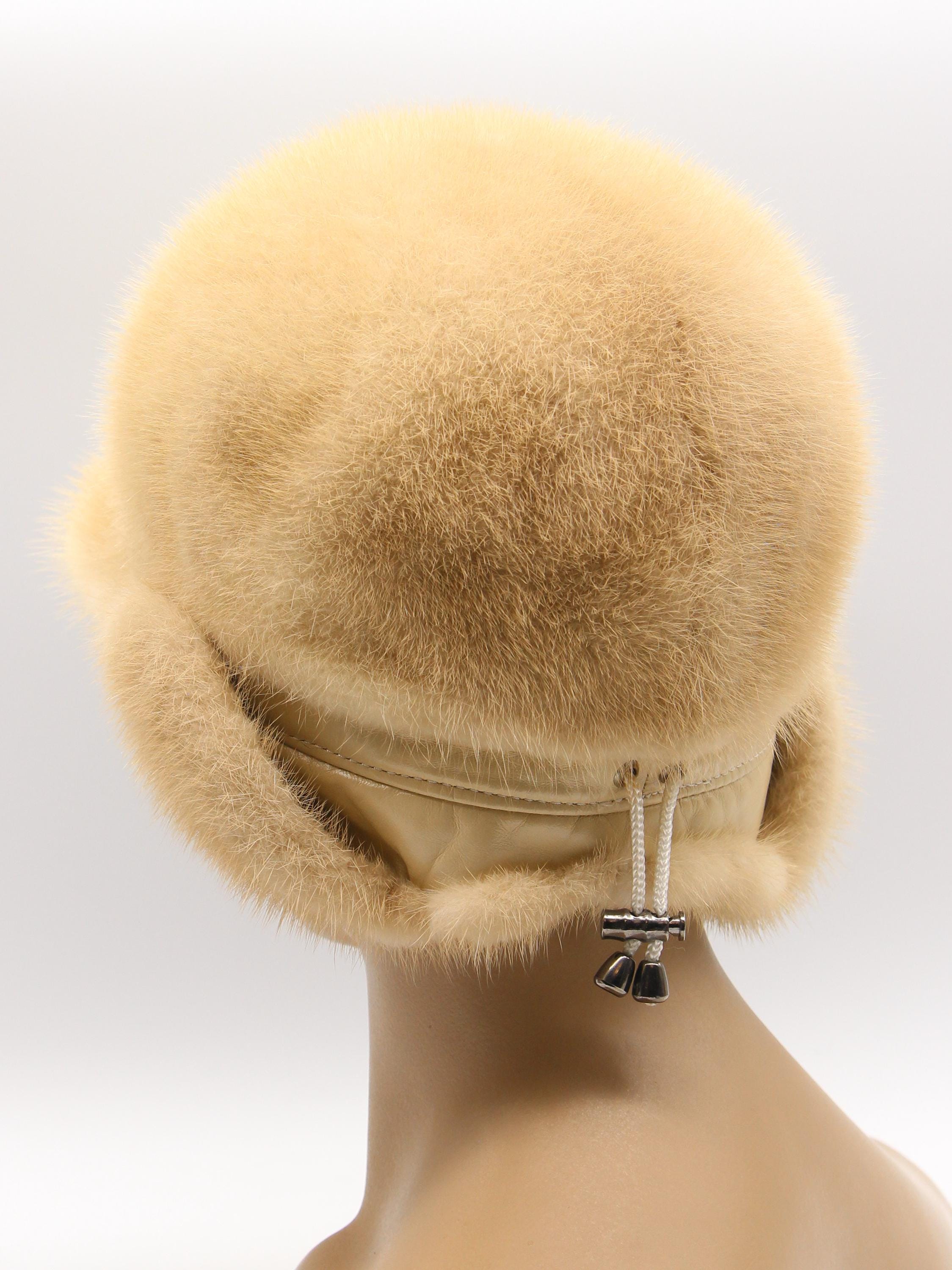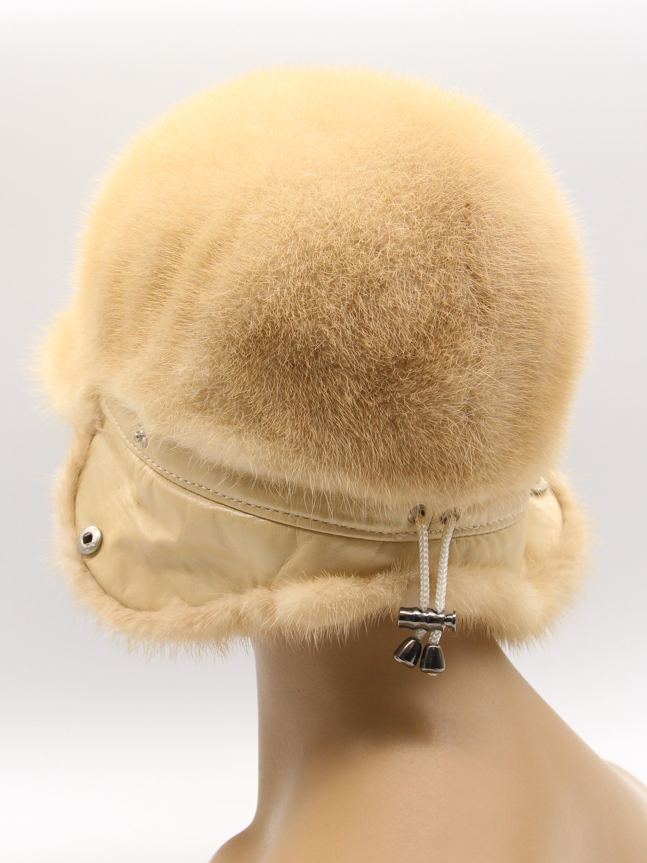 Handcrafted pearl champagne mink ushanka with small fur visor and ear flaps - been making these since 2010, and pearl with visor creates something special. Light champagne ivory tone that's sophisticated without being stark white.