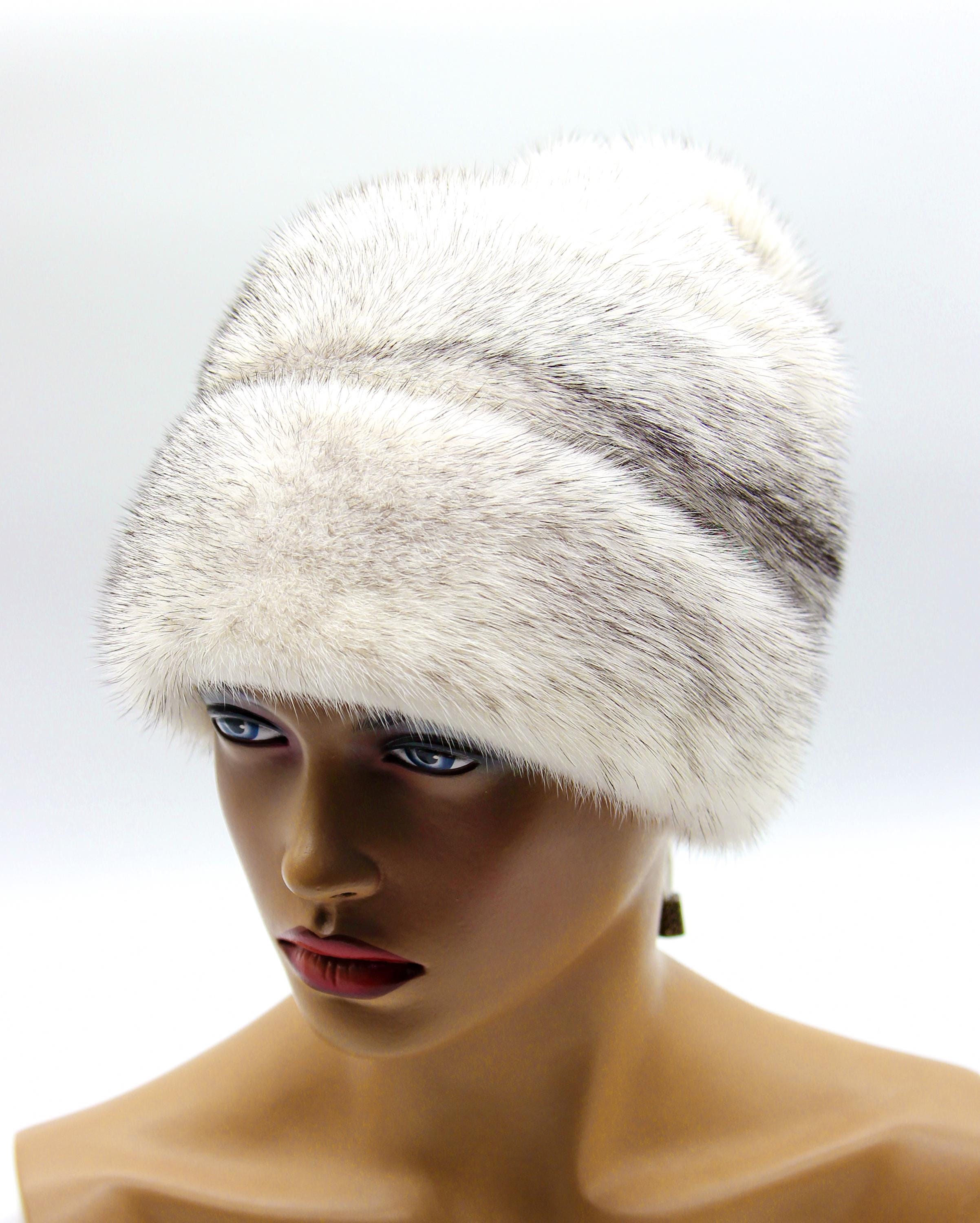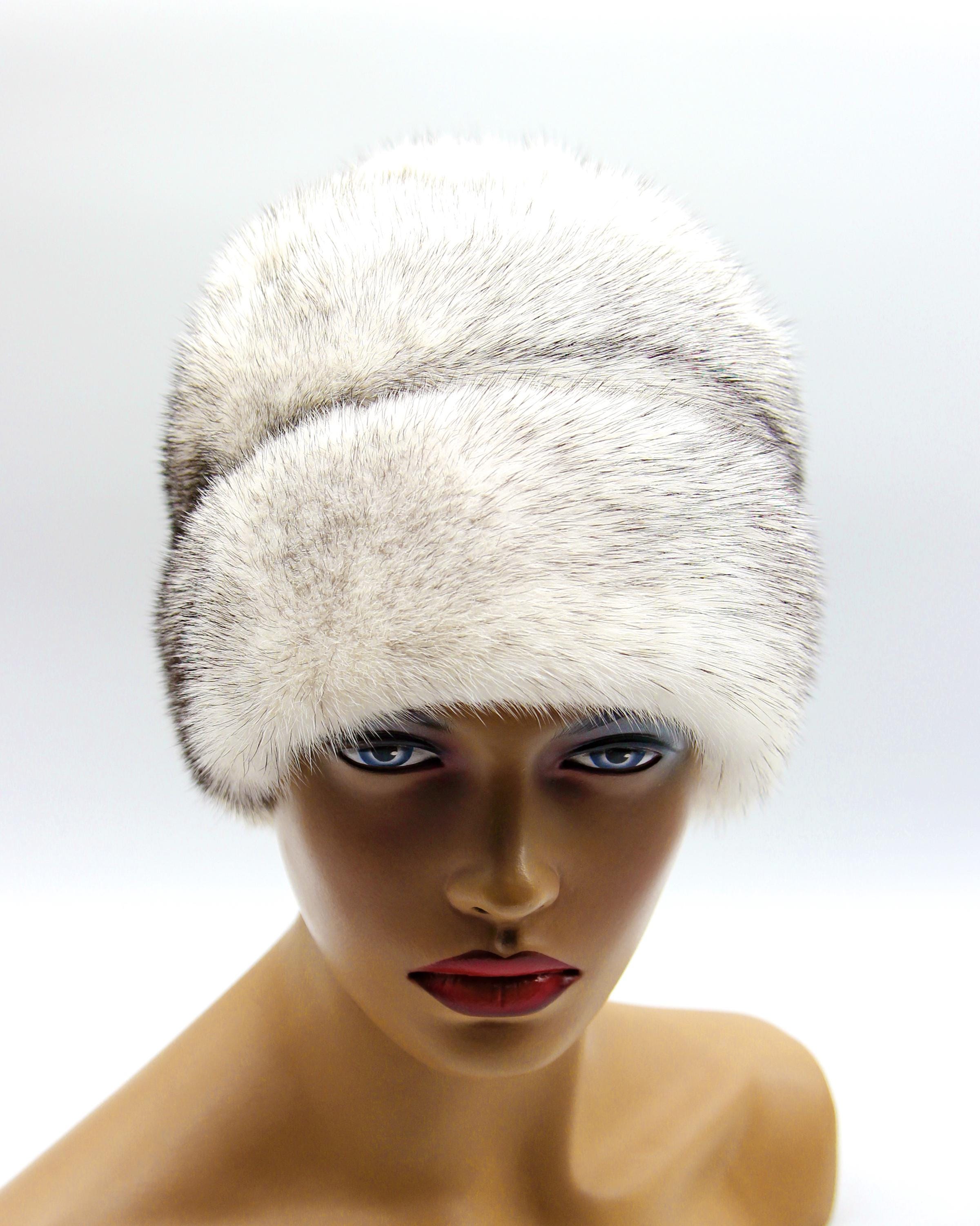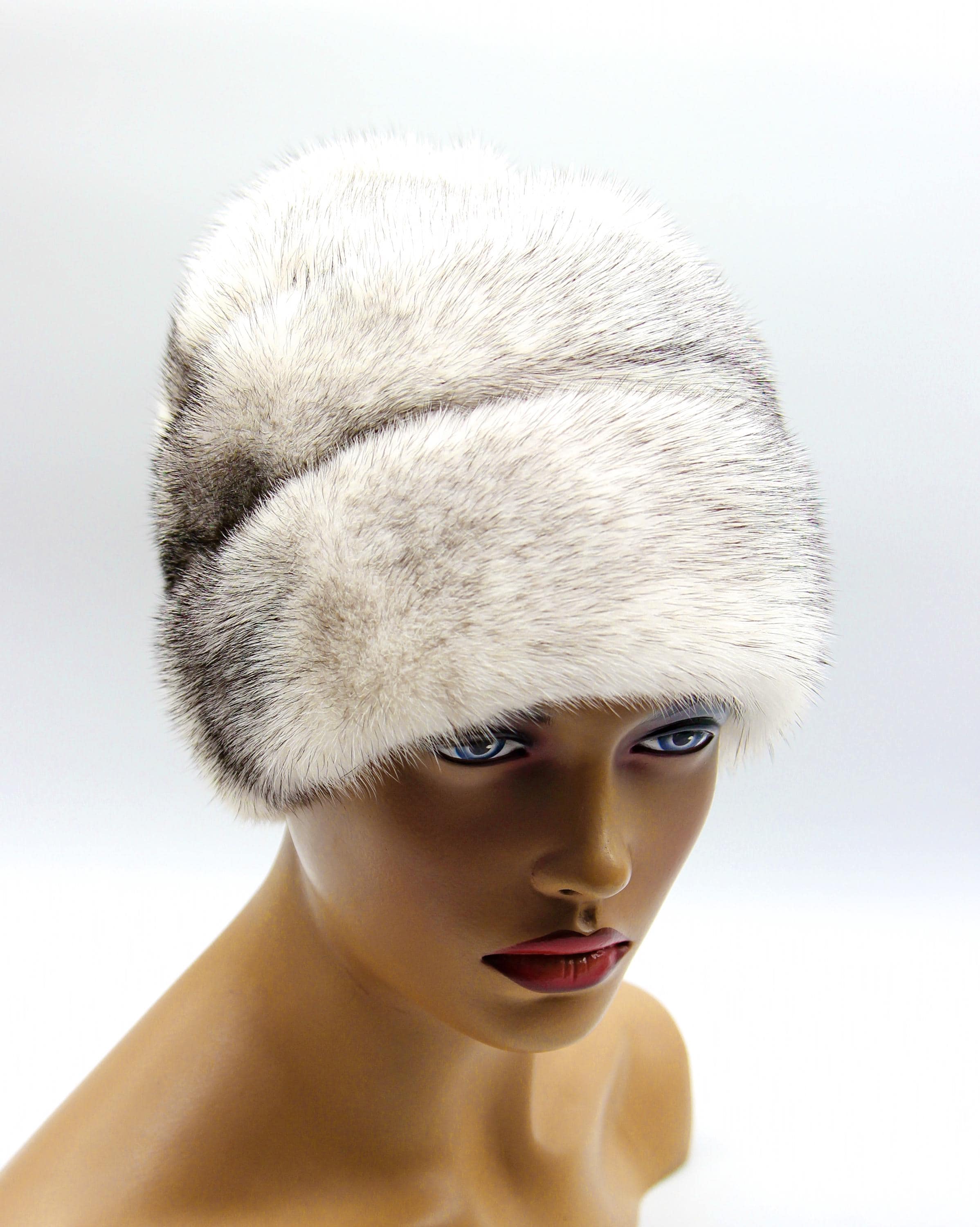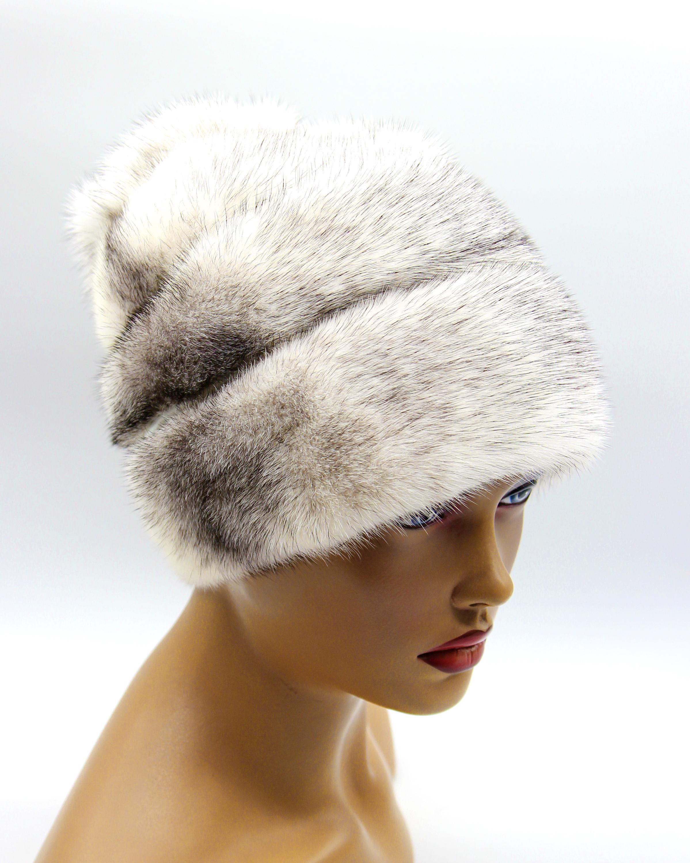 Silver Cross Mink Fur Hat Women Winter with Suede Stripes - Handmade Luxury Warm Headwear Rose Back