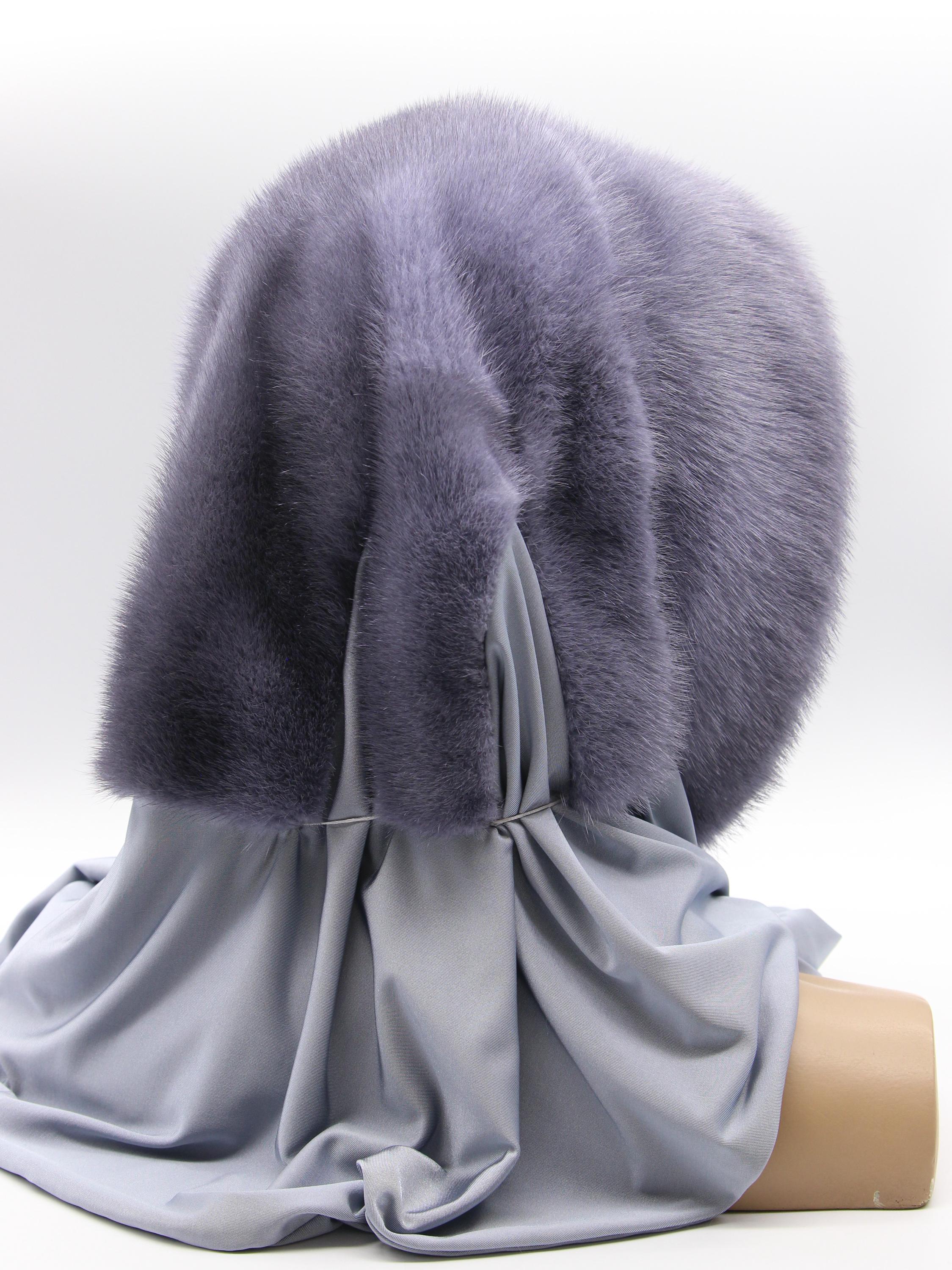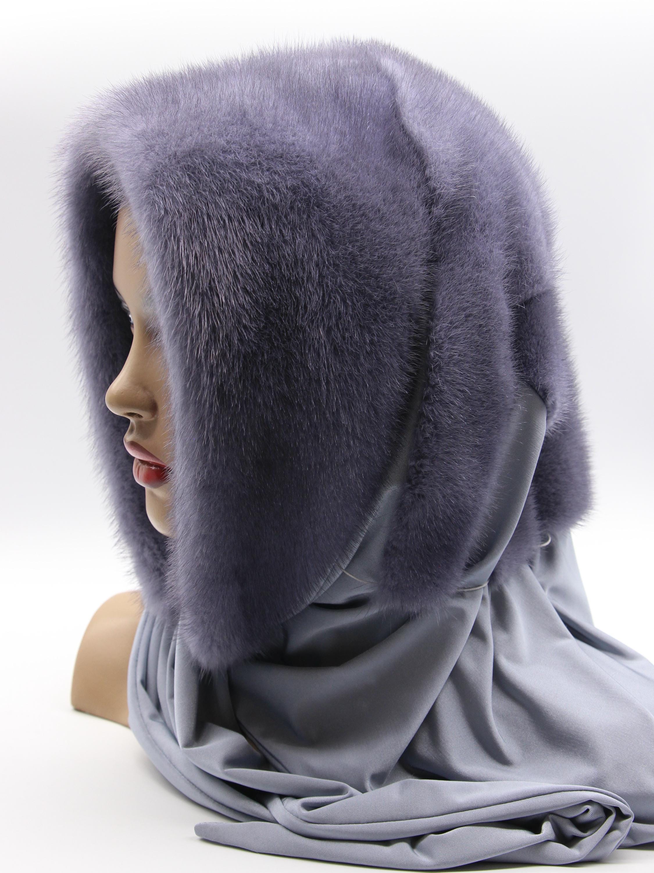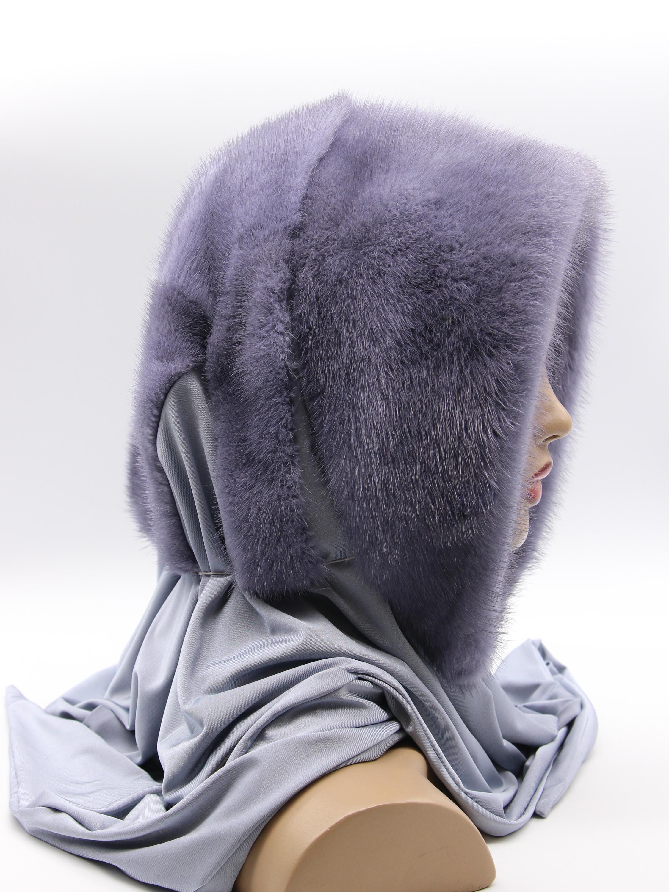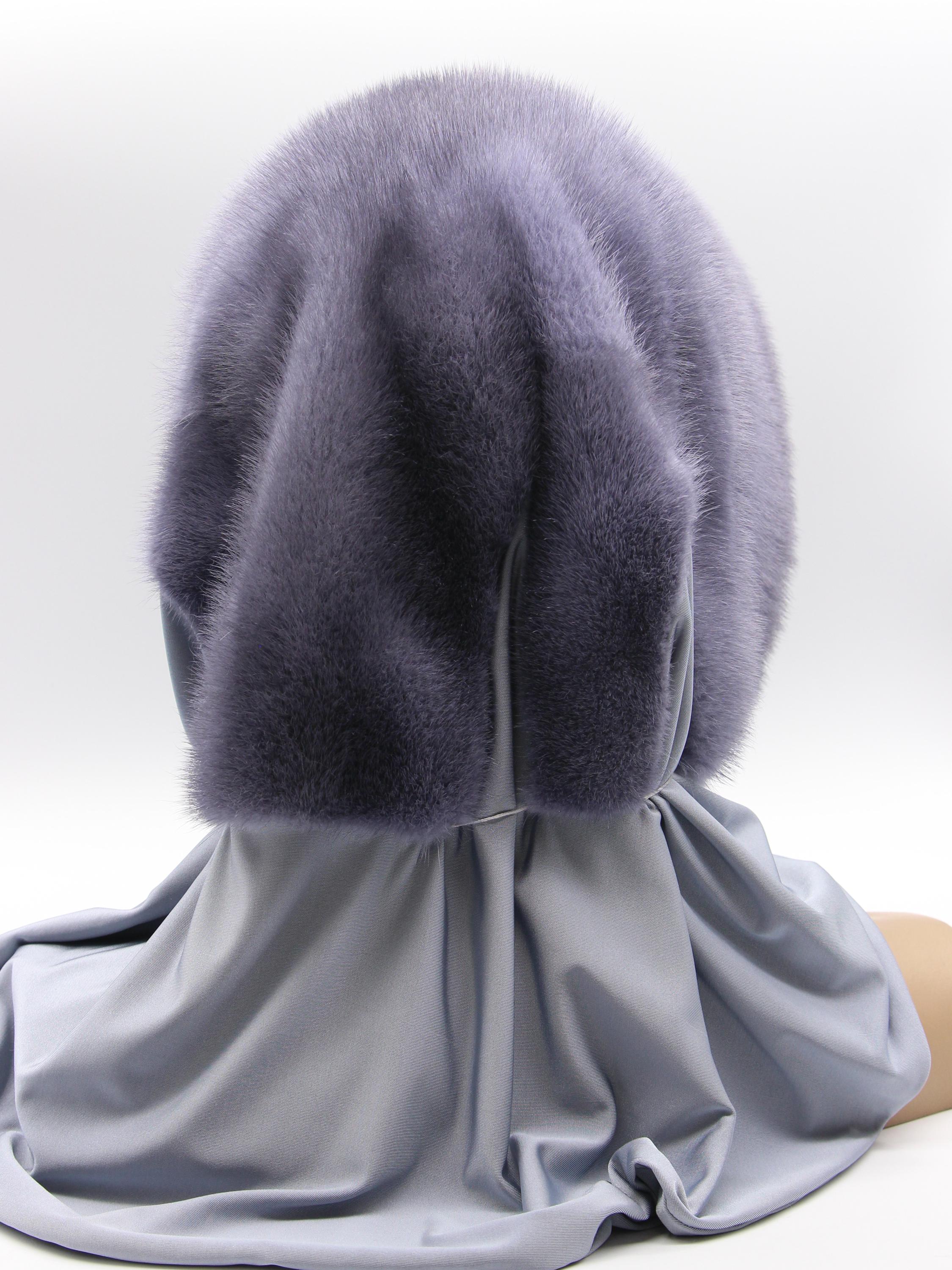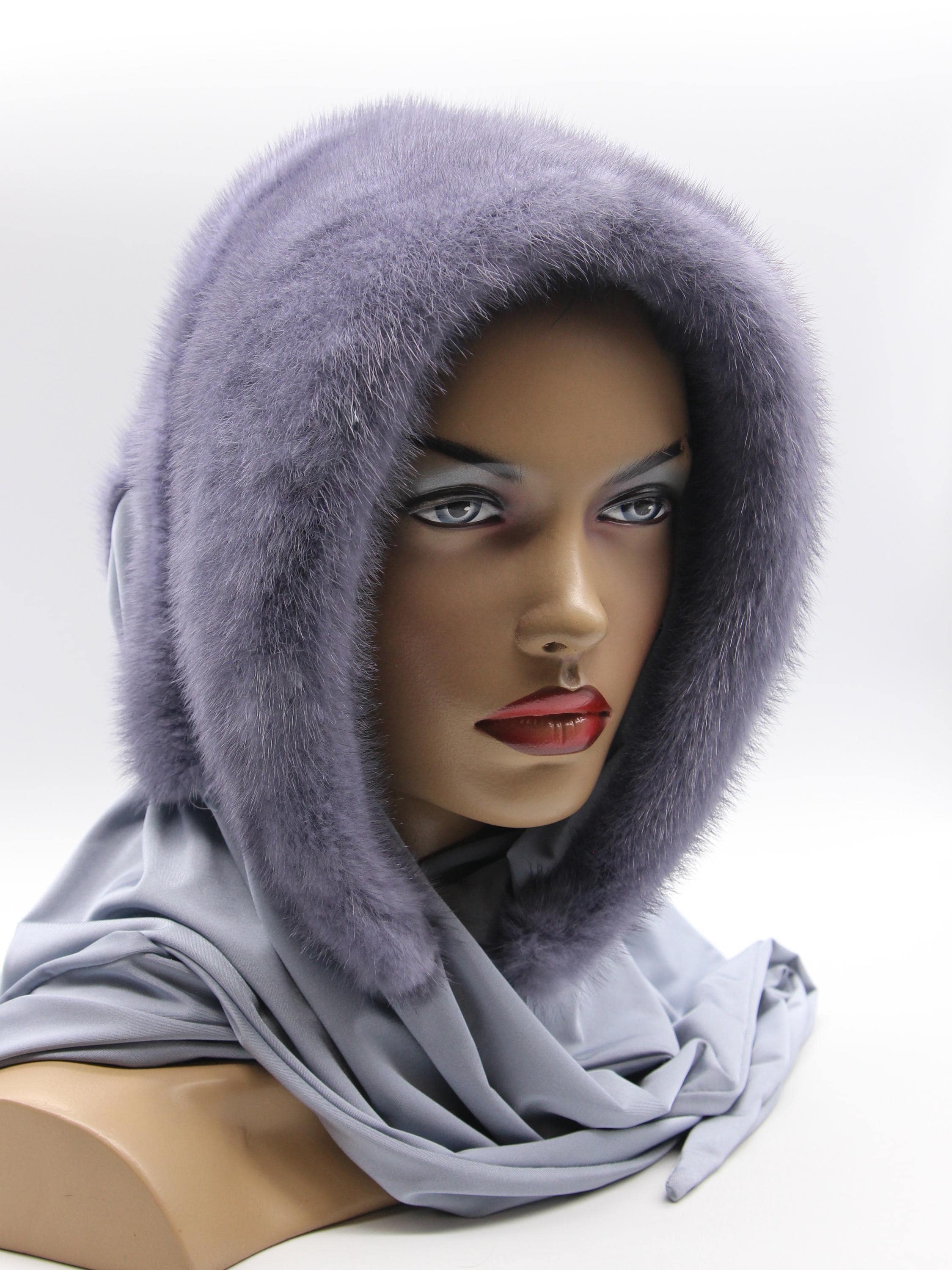 Iris Purple Grey Dyed Mink Fur Hat Hooded Scarf - Lavender Toned Winter