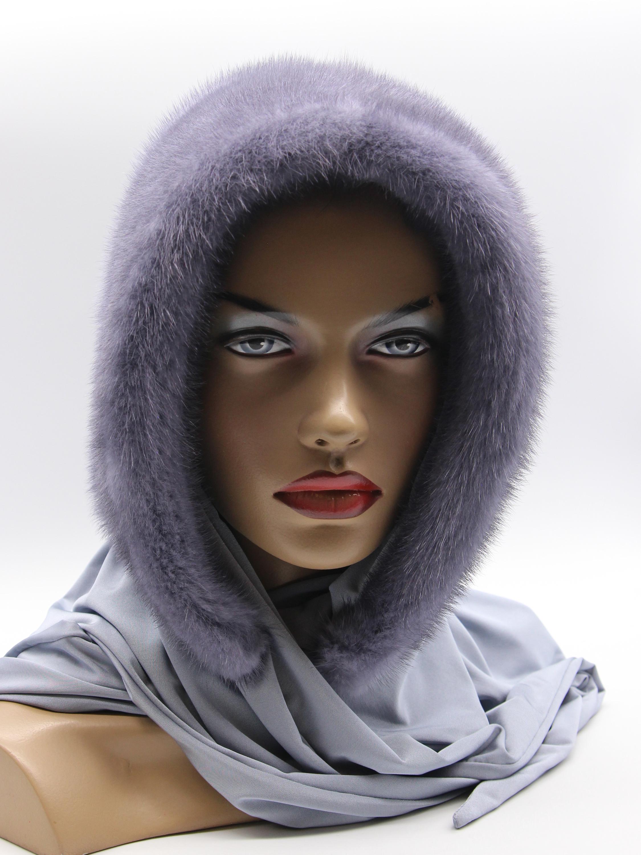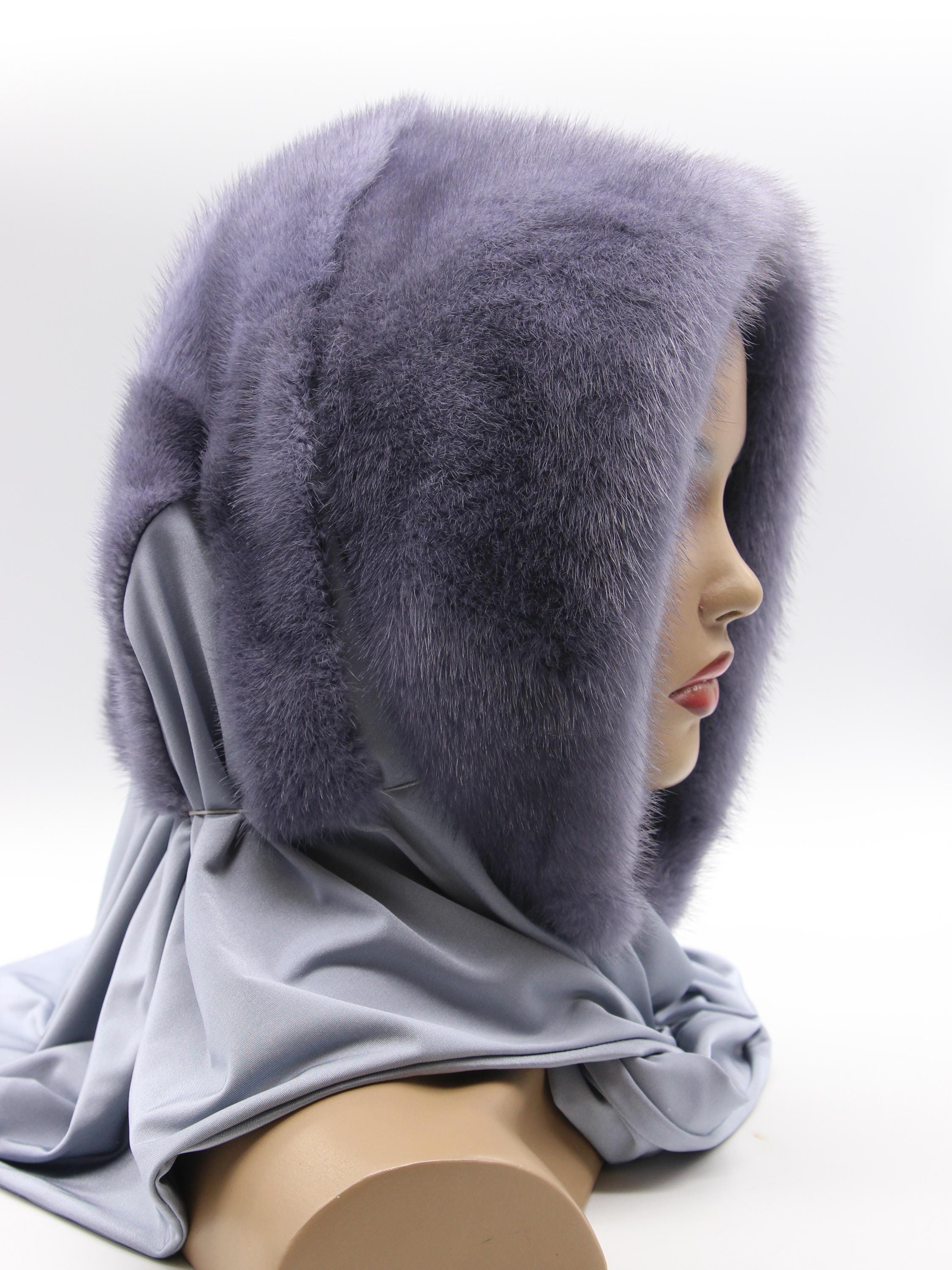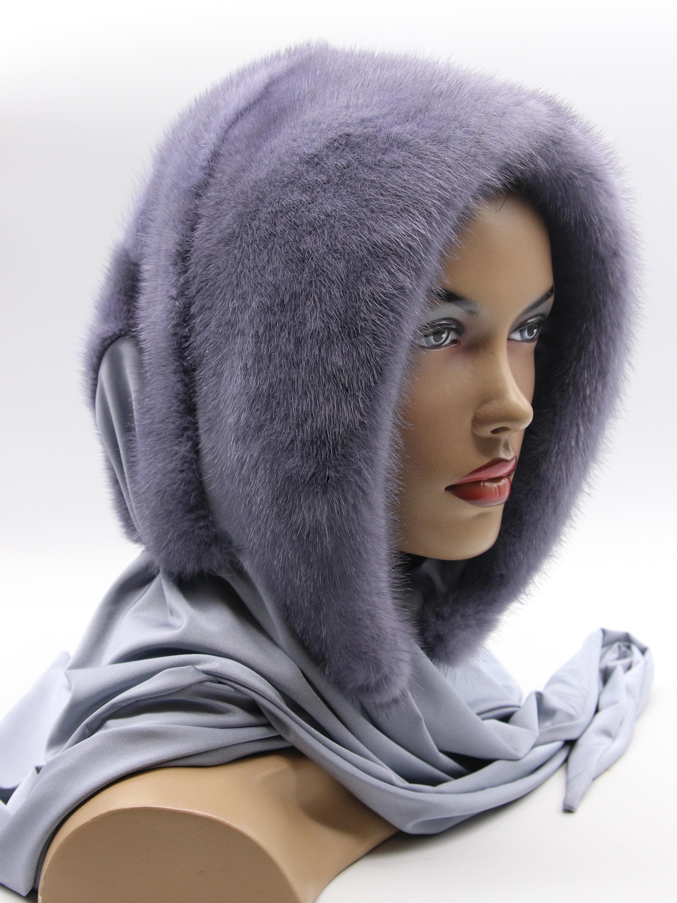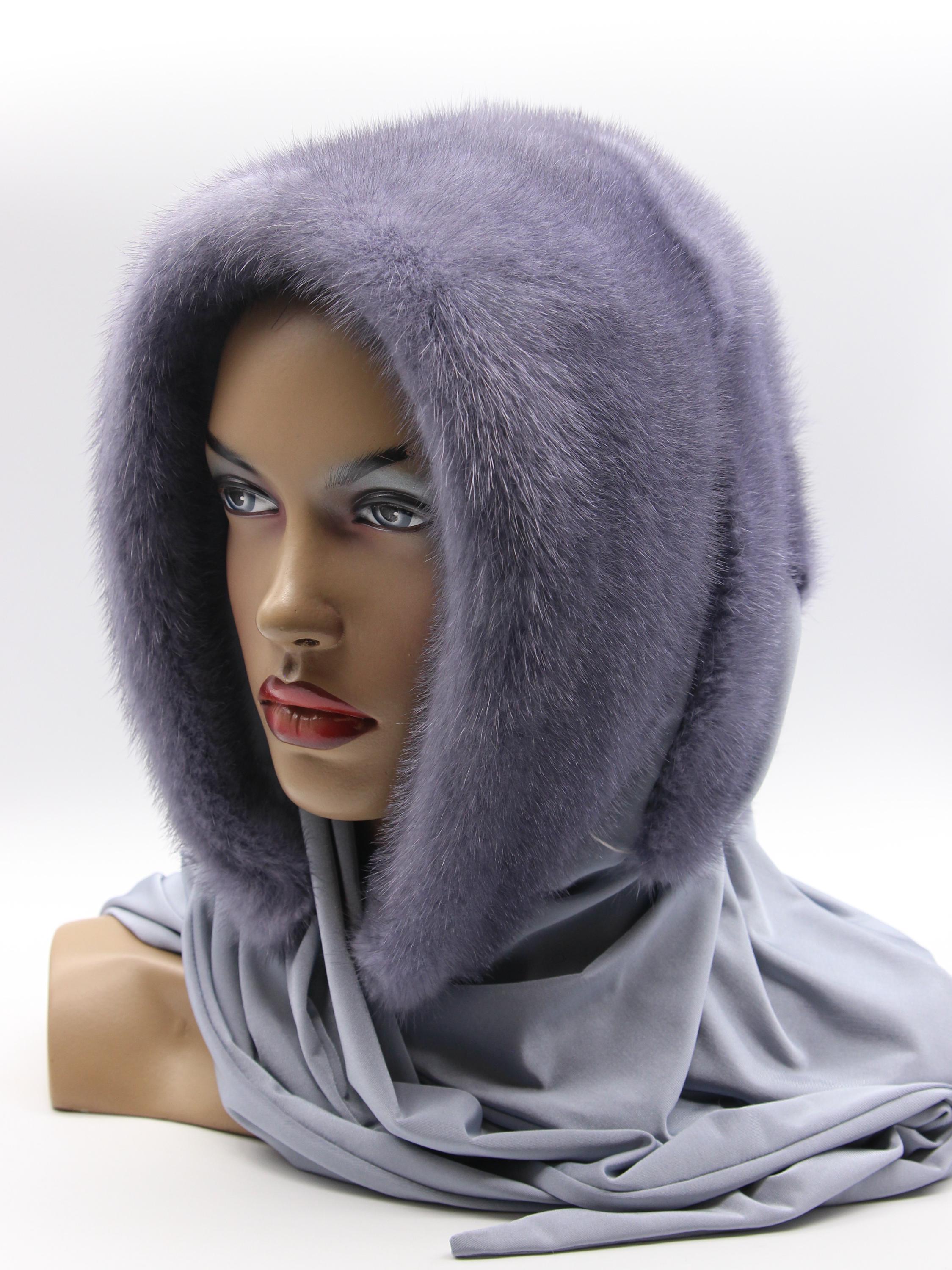 Iris Purple Grey Dyed Mink Fur Hat Hooded Scarf - Lavender Toned Winter