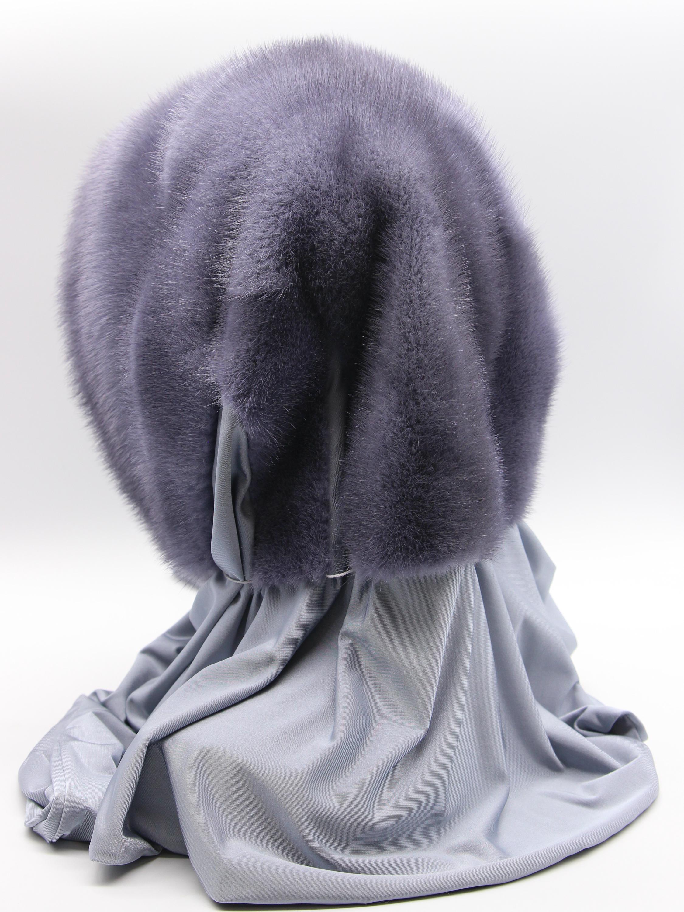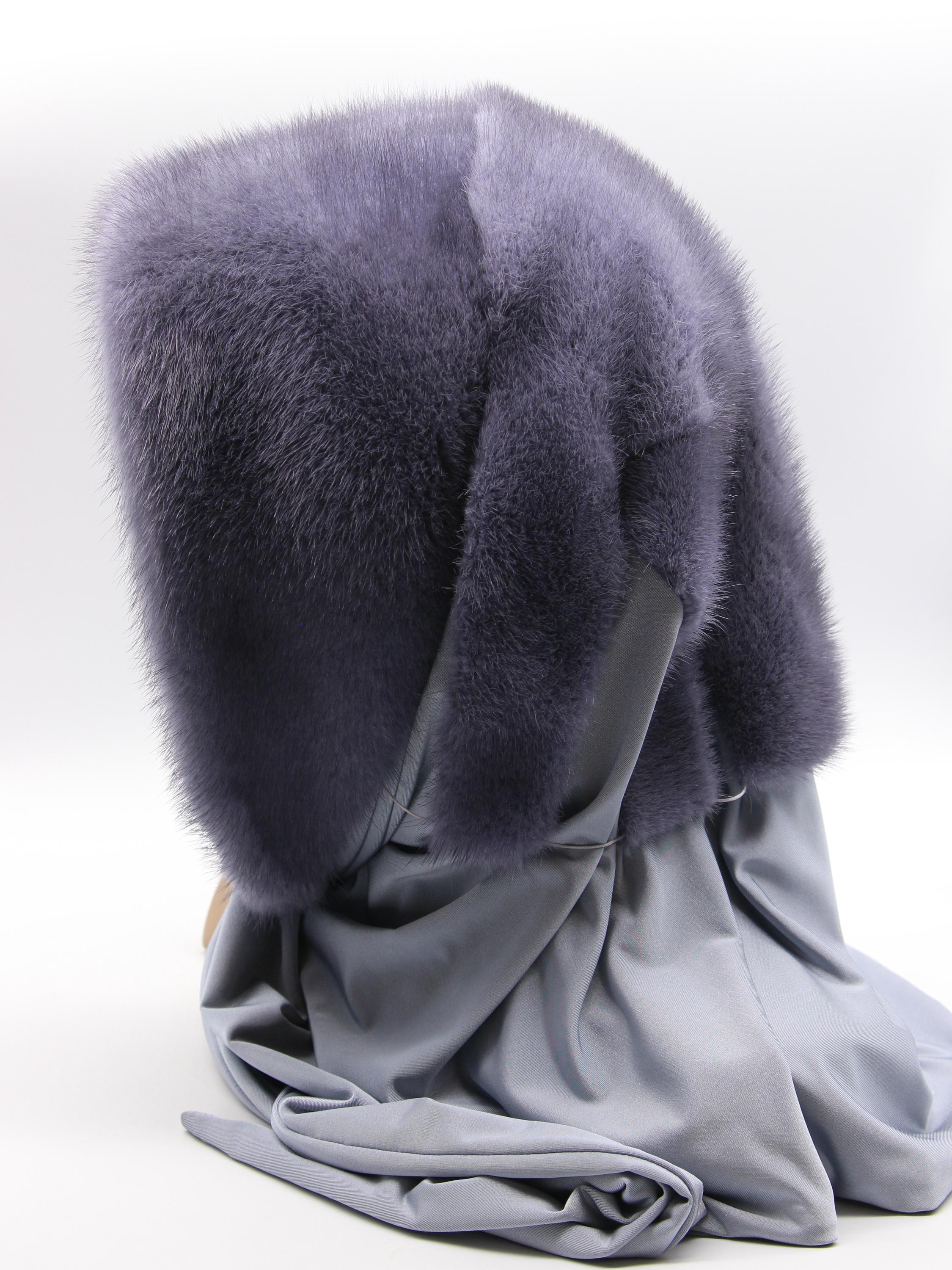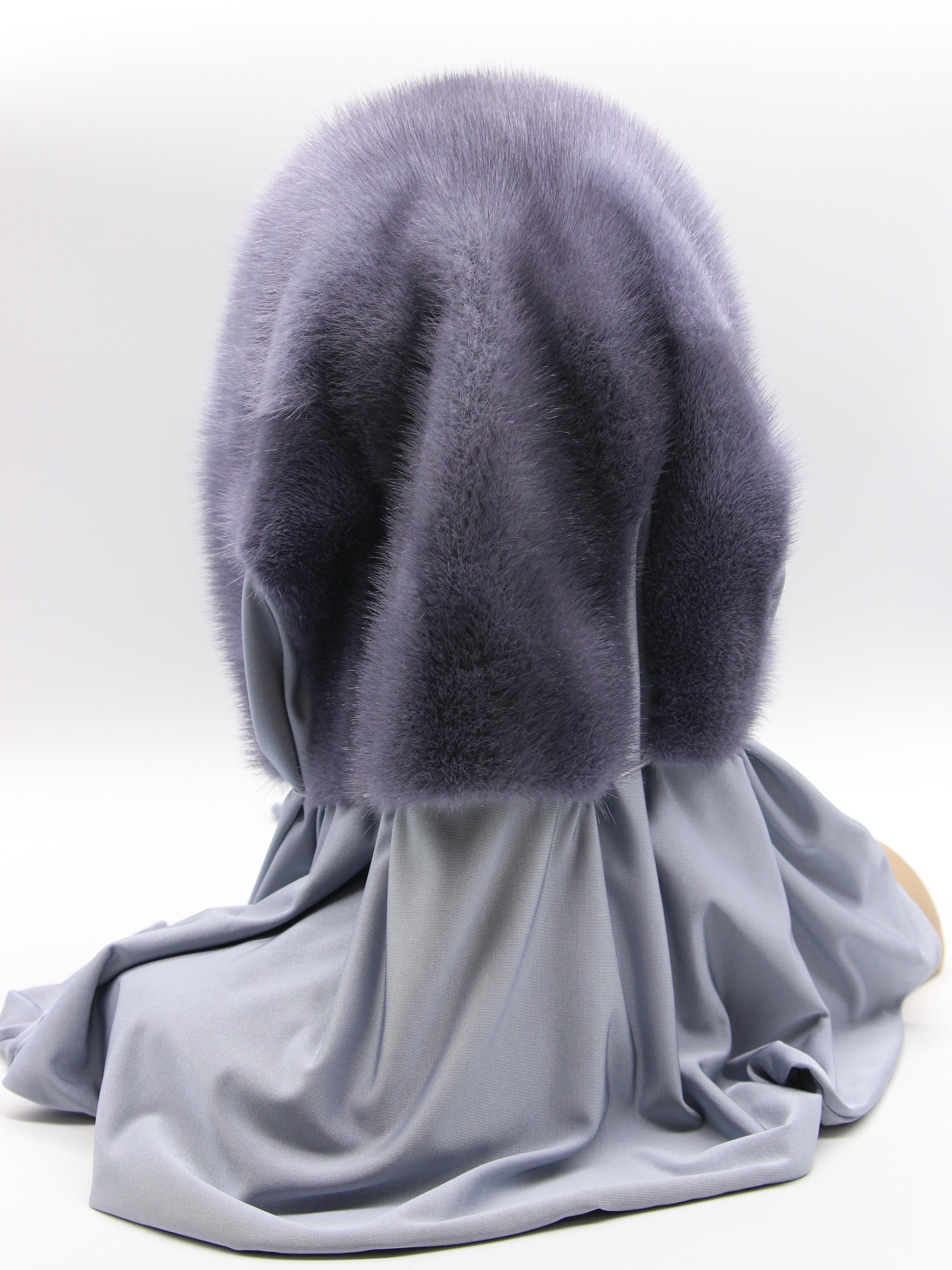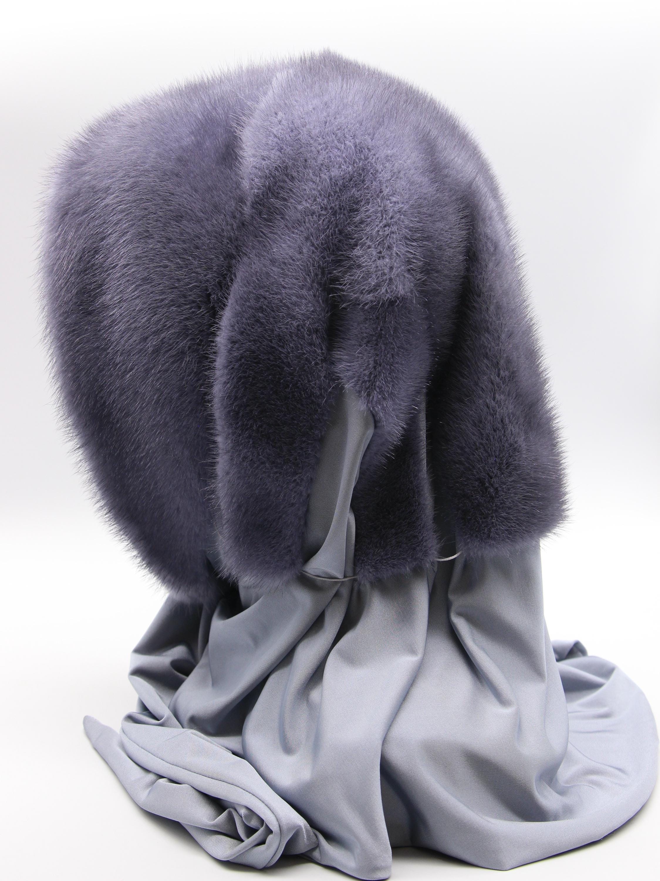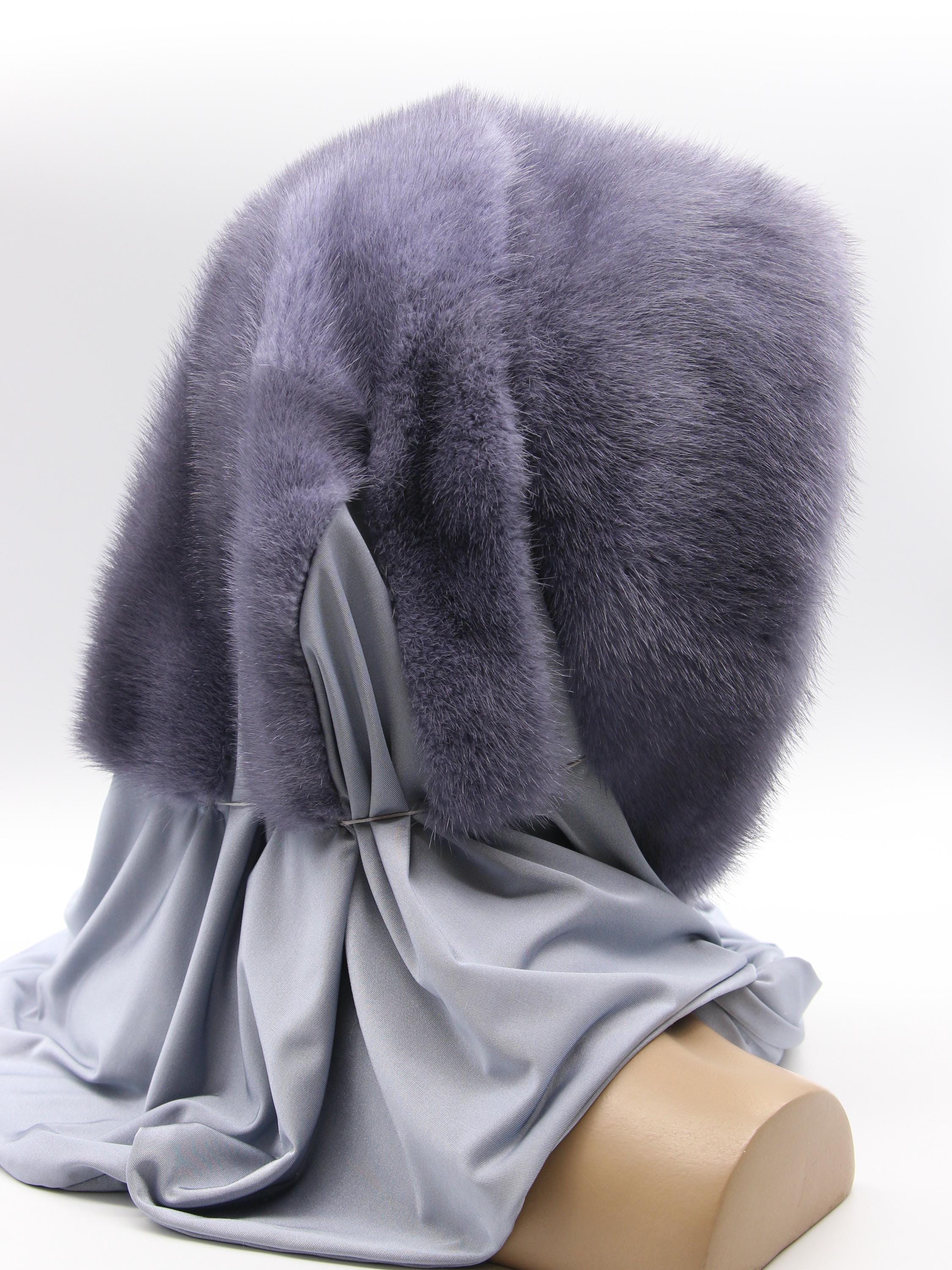 Iris Purple Grey Dyed Mink Fur Hat Hooded Scarf - Lavender Toned Winter