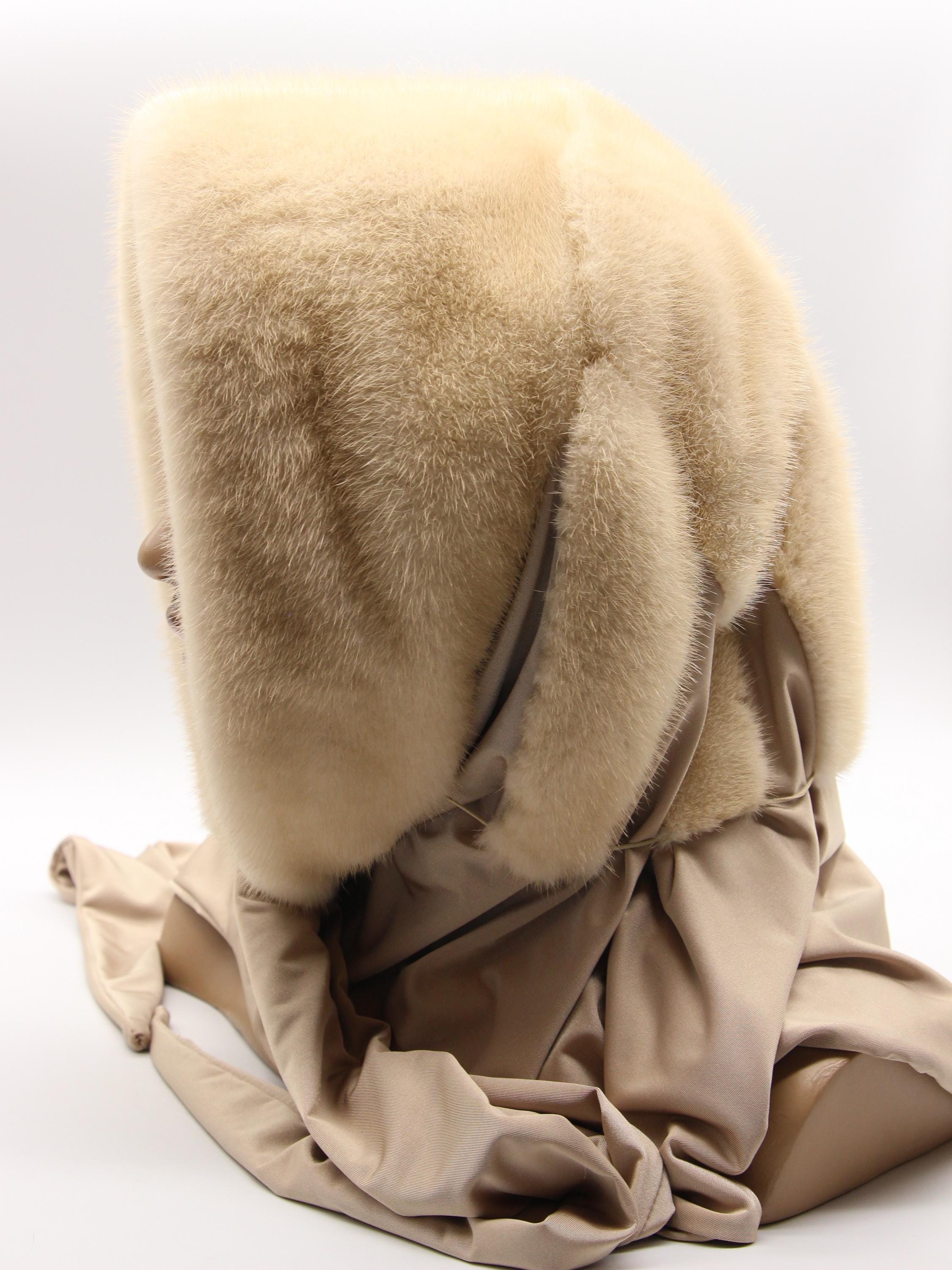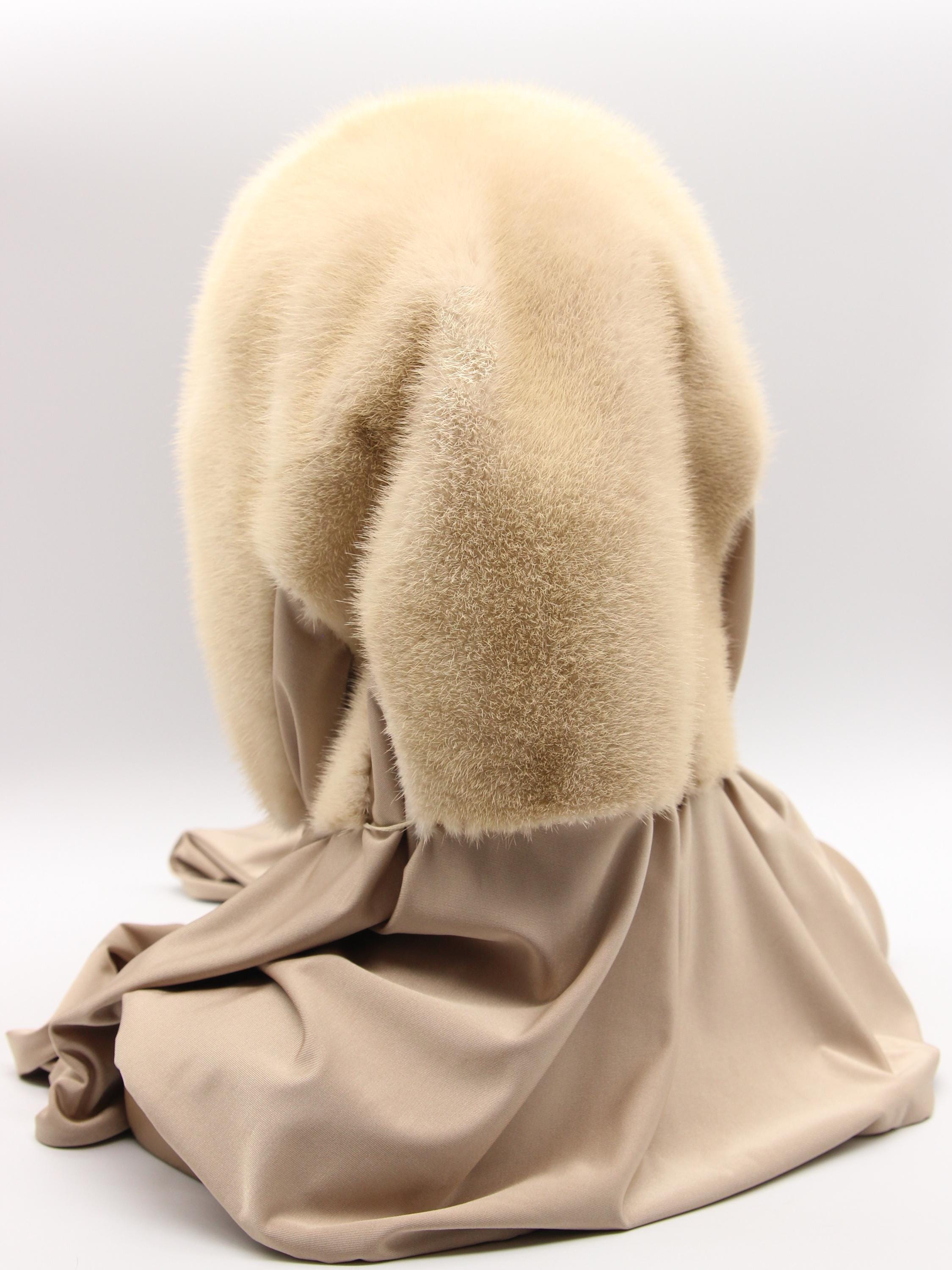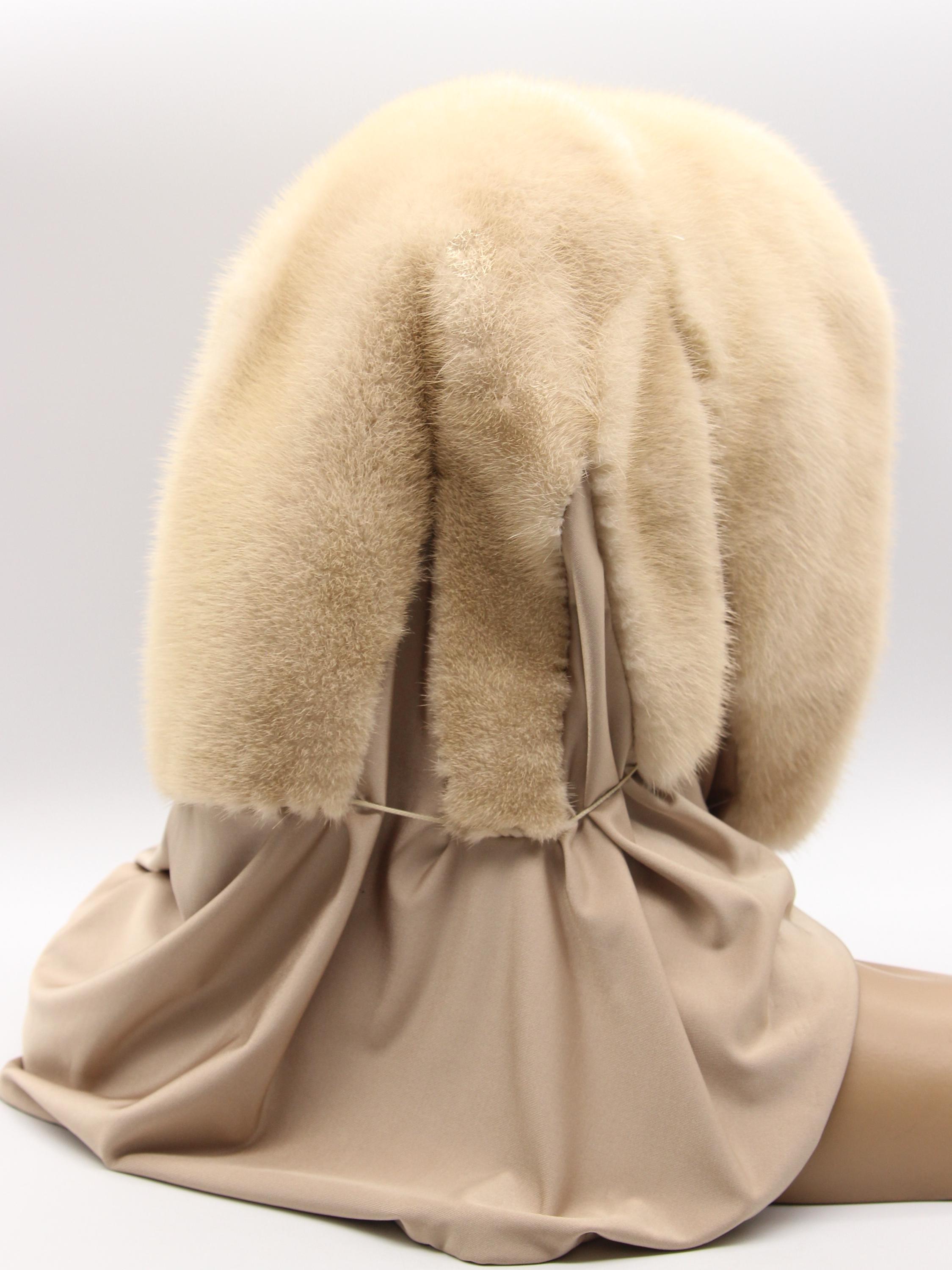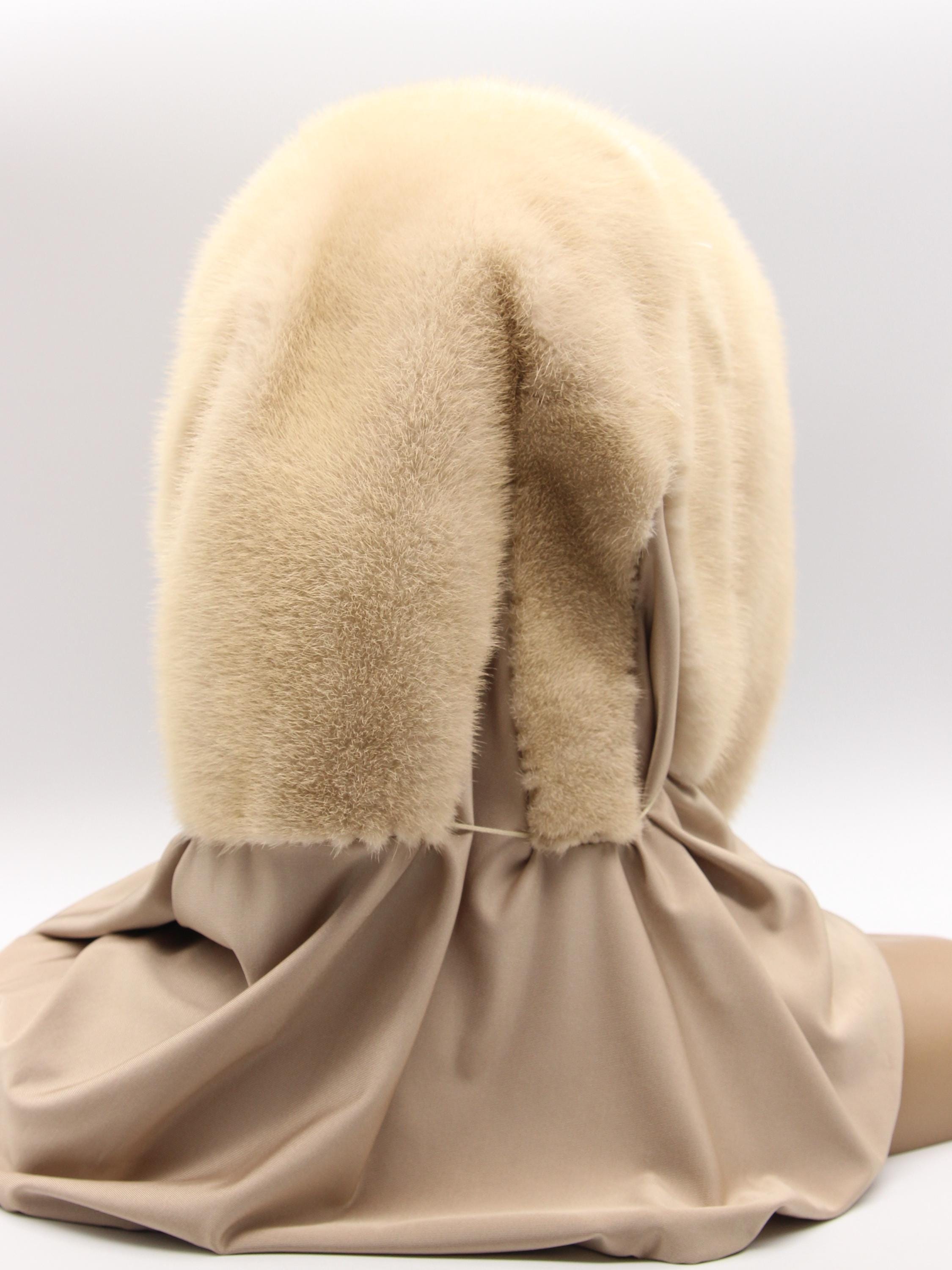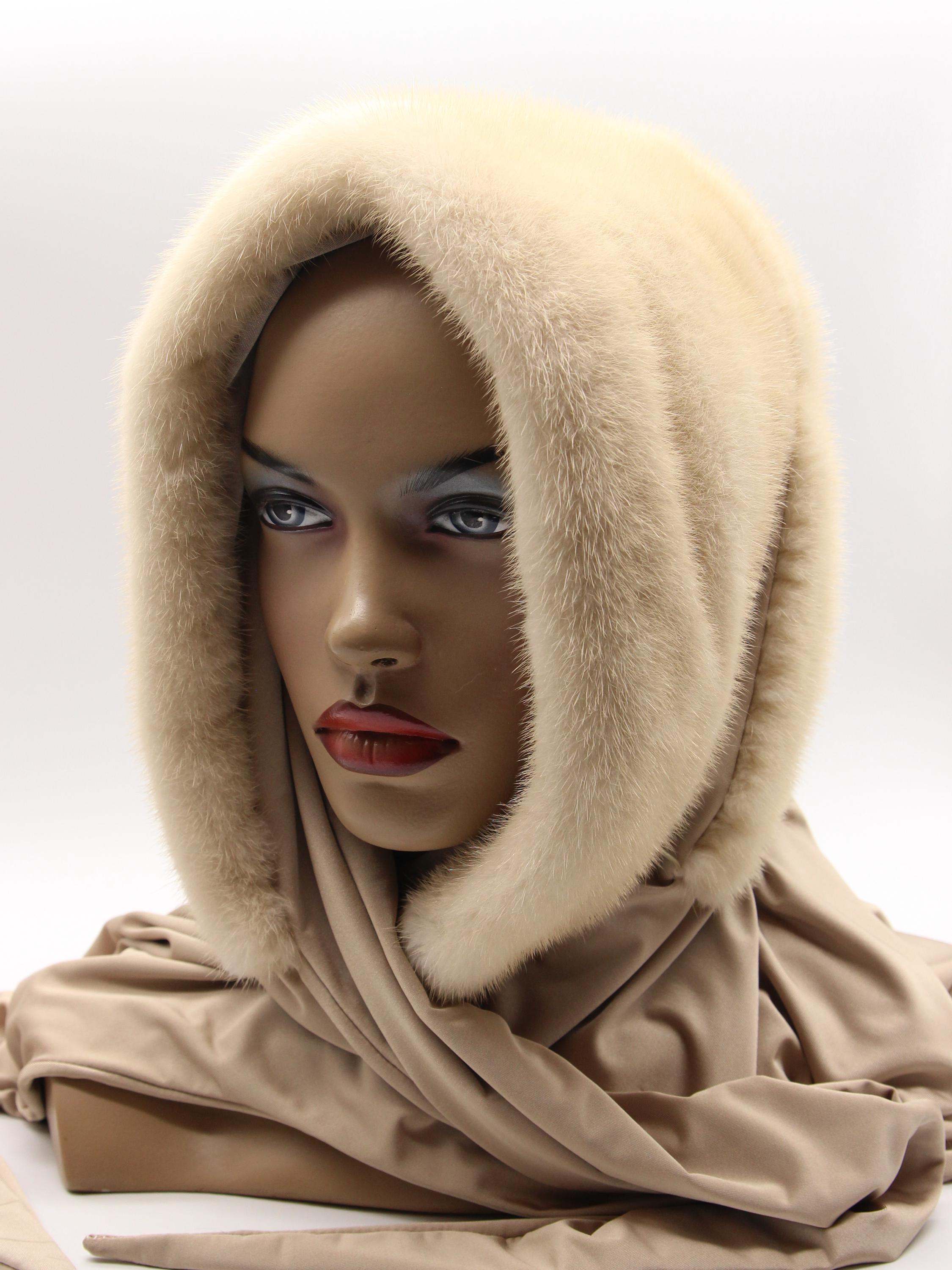 Pearl Beige Natural Mink Fur Hat Hooded Scarf - Undyed Cream Winter Wrap