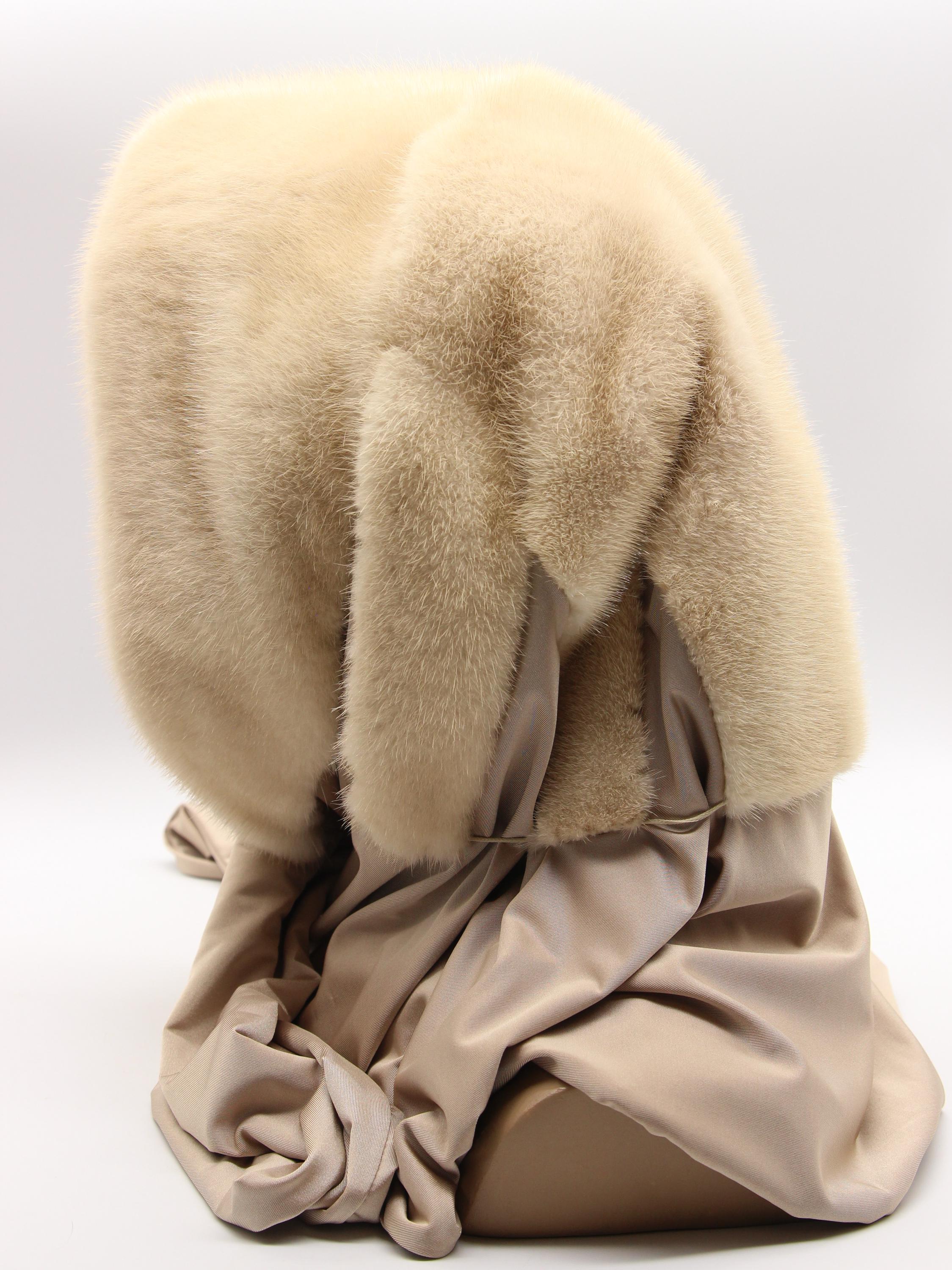 Hand-stitched on jersey base so the fur hat has natural movement. Natural pearl mink qualifies as premium grade - these warm beige tones only derive from top-quality pelts maintaining consistent coloring throughout. Each fur hat gets examined under multiple lighting conditions because natural pearl varies slightly piece to piece, which proves authenticity rather than synthetic uniformity. At -20 this maintains softness and warmth while synthetic beige scarves appear flat and cheap-looking. The natural luminosity also means this fur hat photographs exceptionally - catches light with that subtle glow synthetic materials cannot replicate.