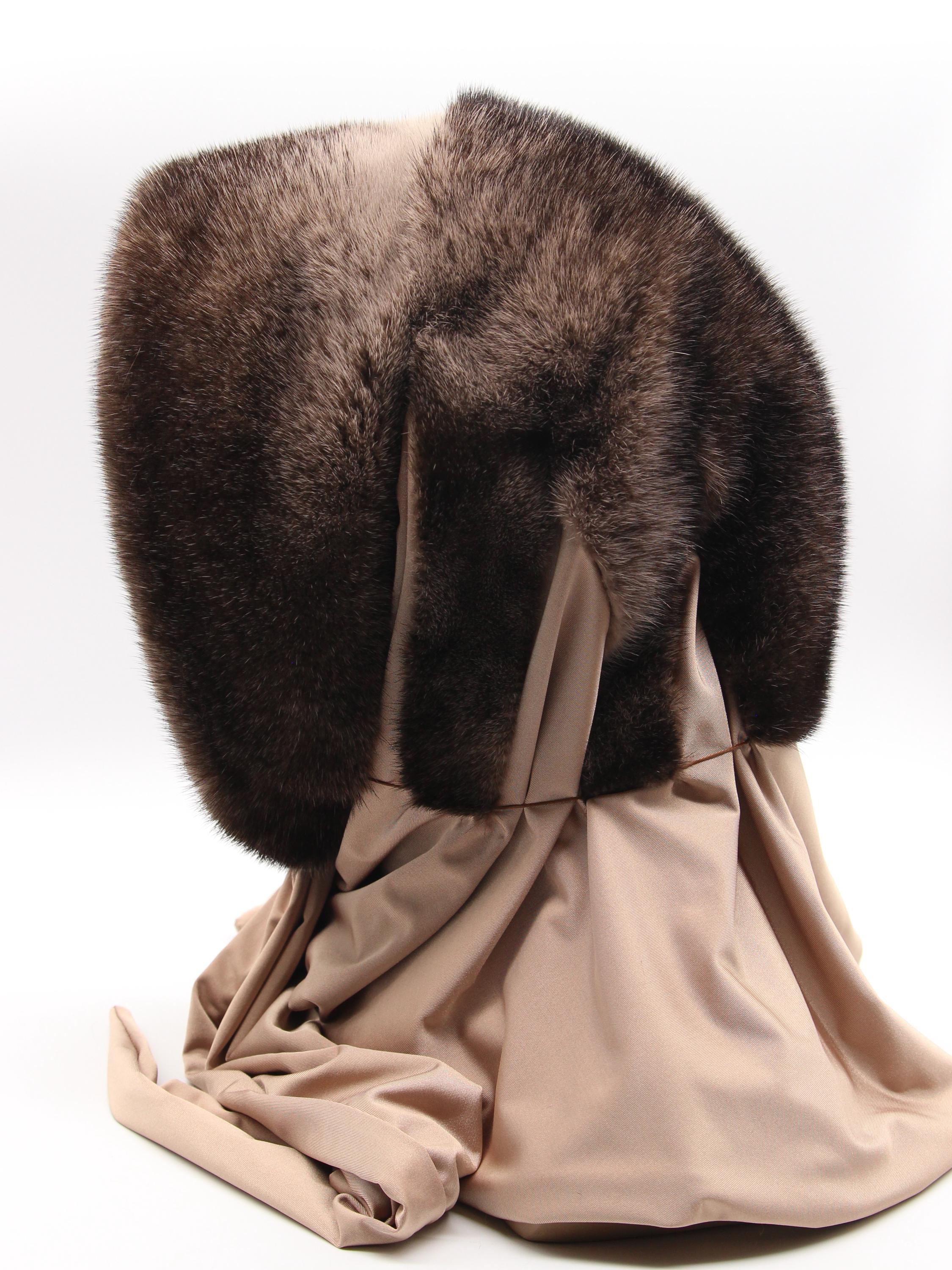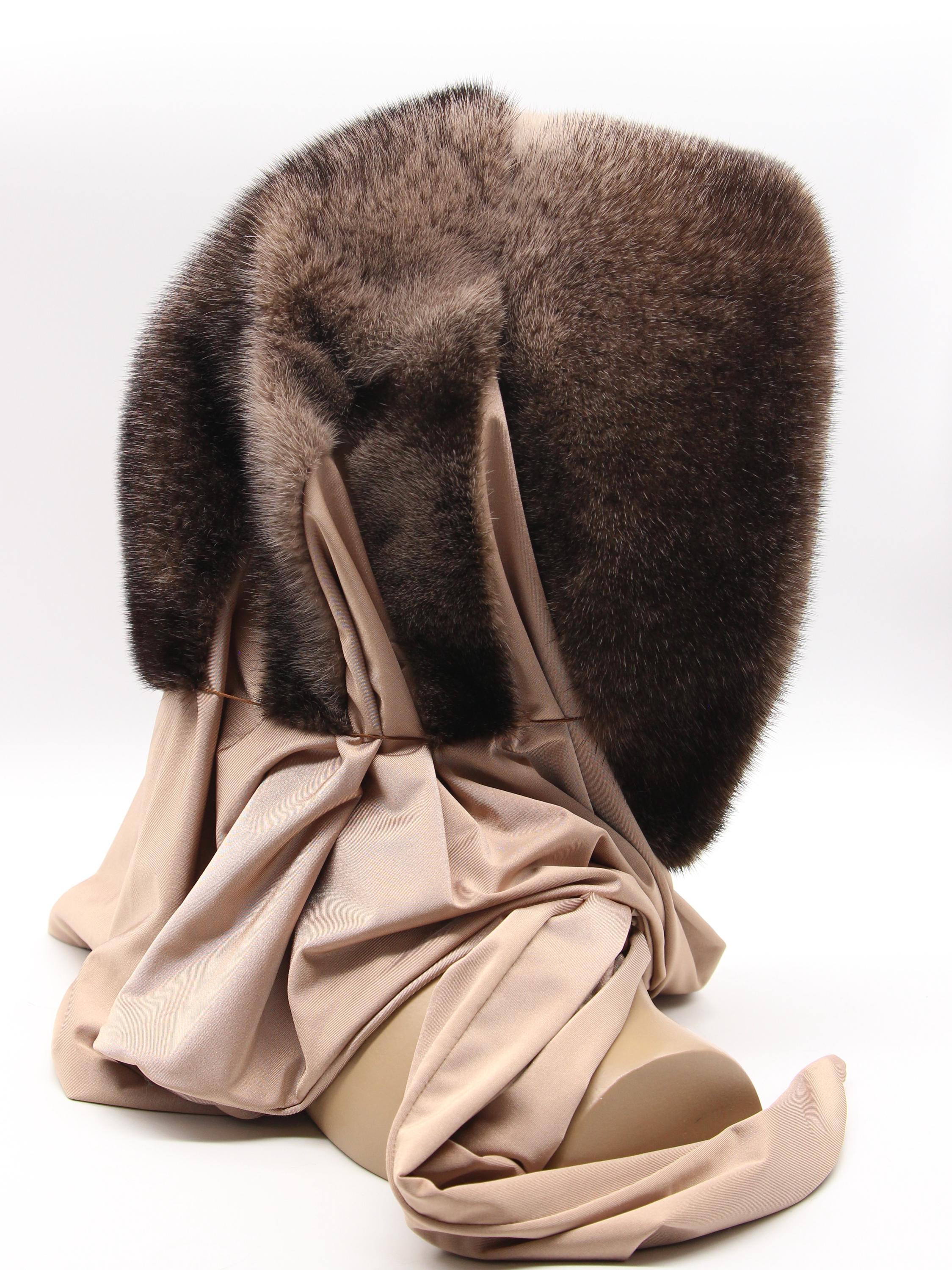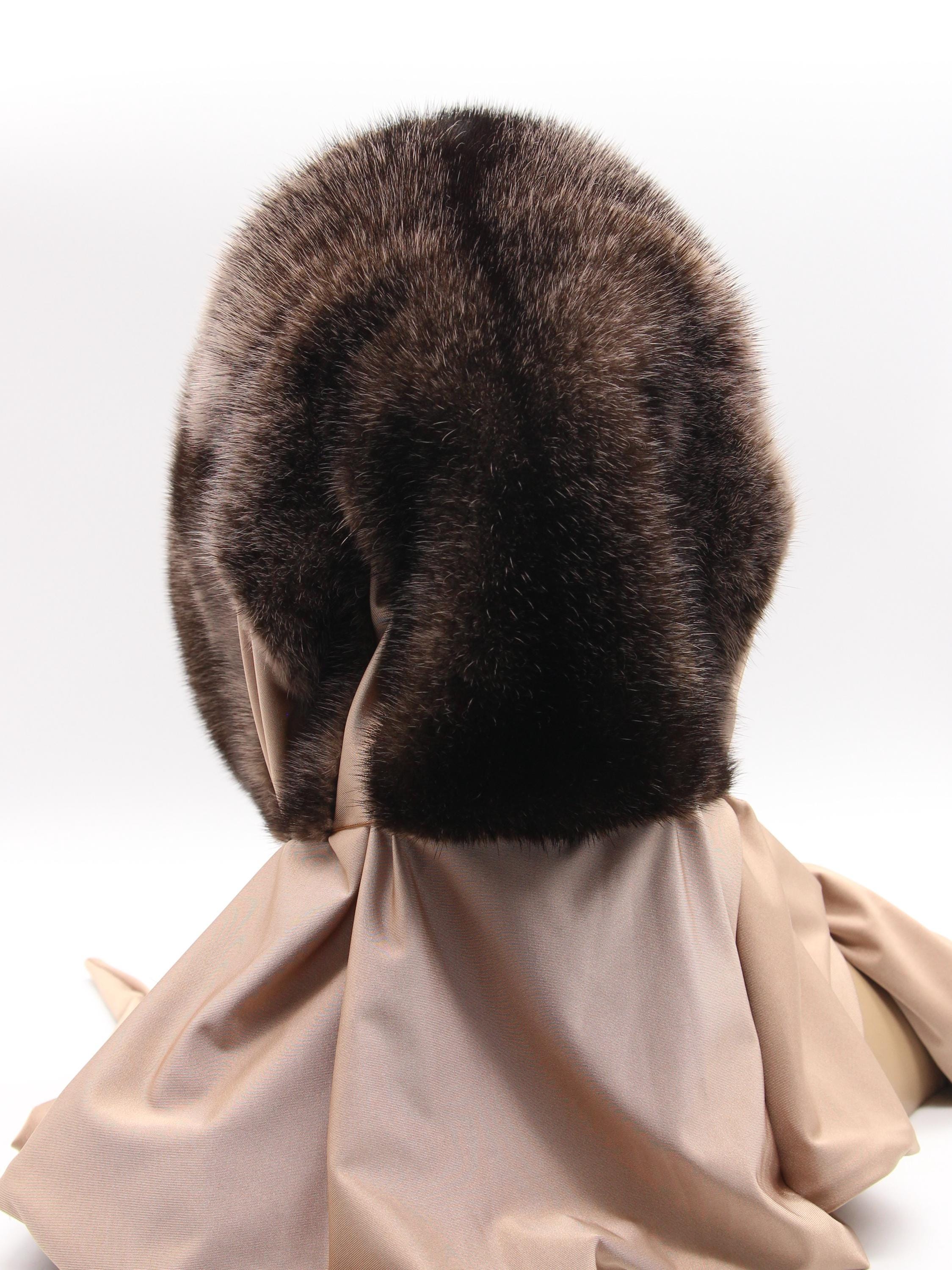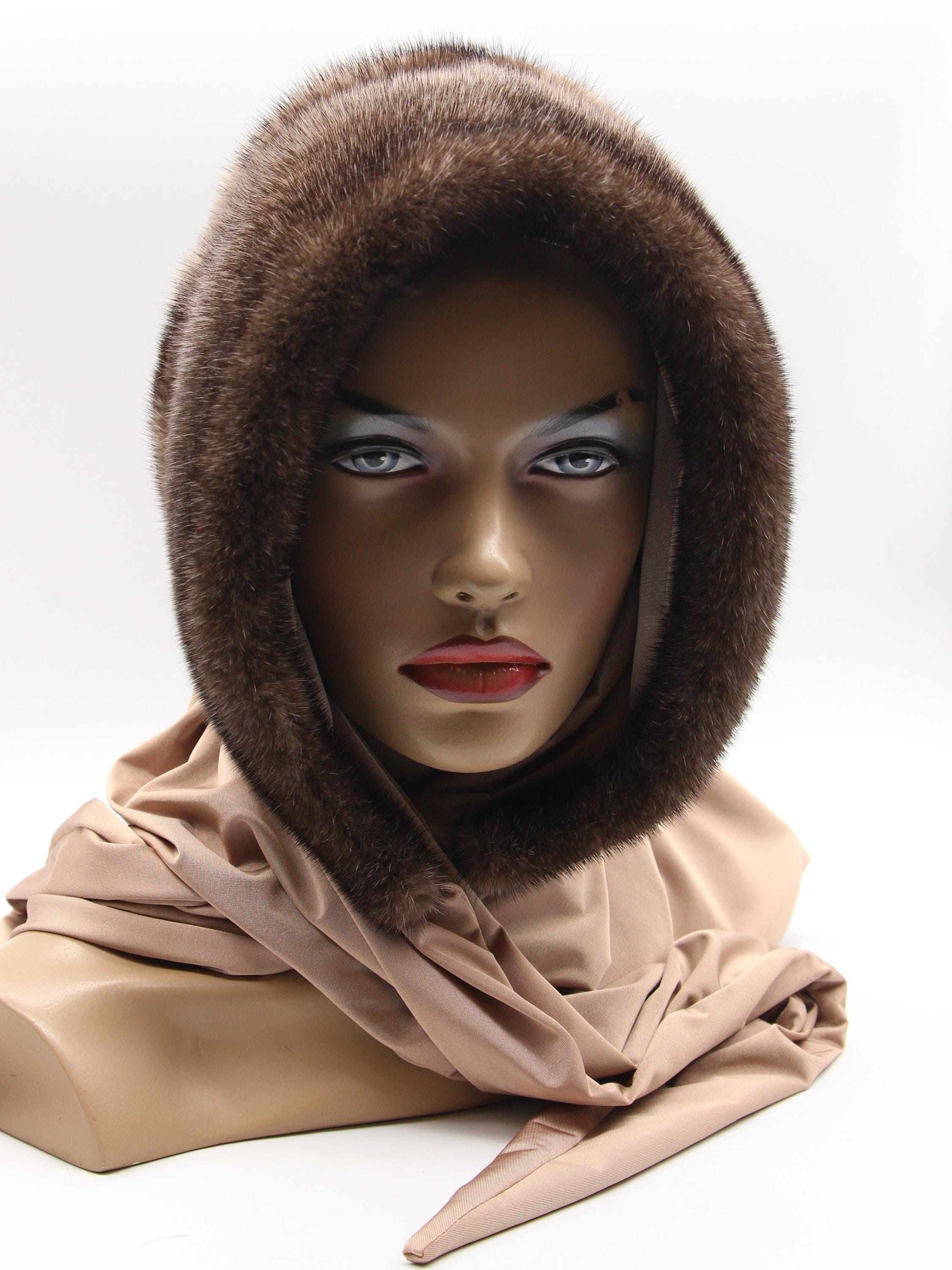 When Kyiv drops to -18 with wind cutting through everything, pull this fur hat hood up for coverage. The brown beige gradient does something cool visually - appearance shifts based on your angle to light. Champagne fabric underneath echoes those beige tones so this winter fur piece flows smooth instead of looking cut and pasted together. Functions as hooded scarf, head scarf, or fur shawl depending your styling preference. Pairs with surprising colors - obviously earth tones, but clients matched it with rust, olive, even purple successfully.