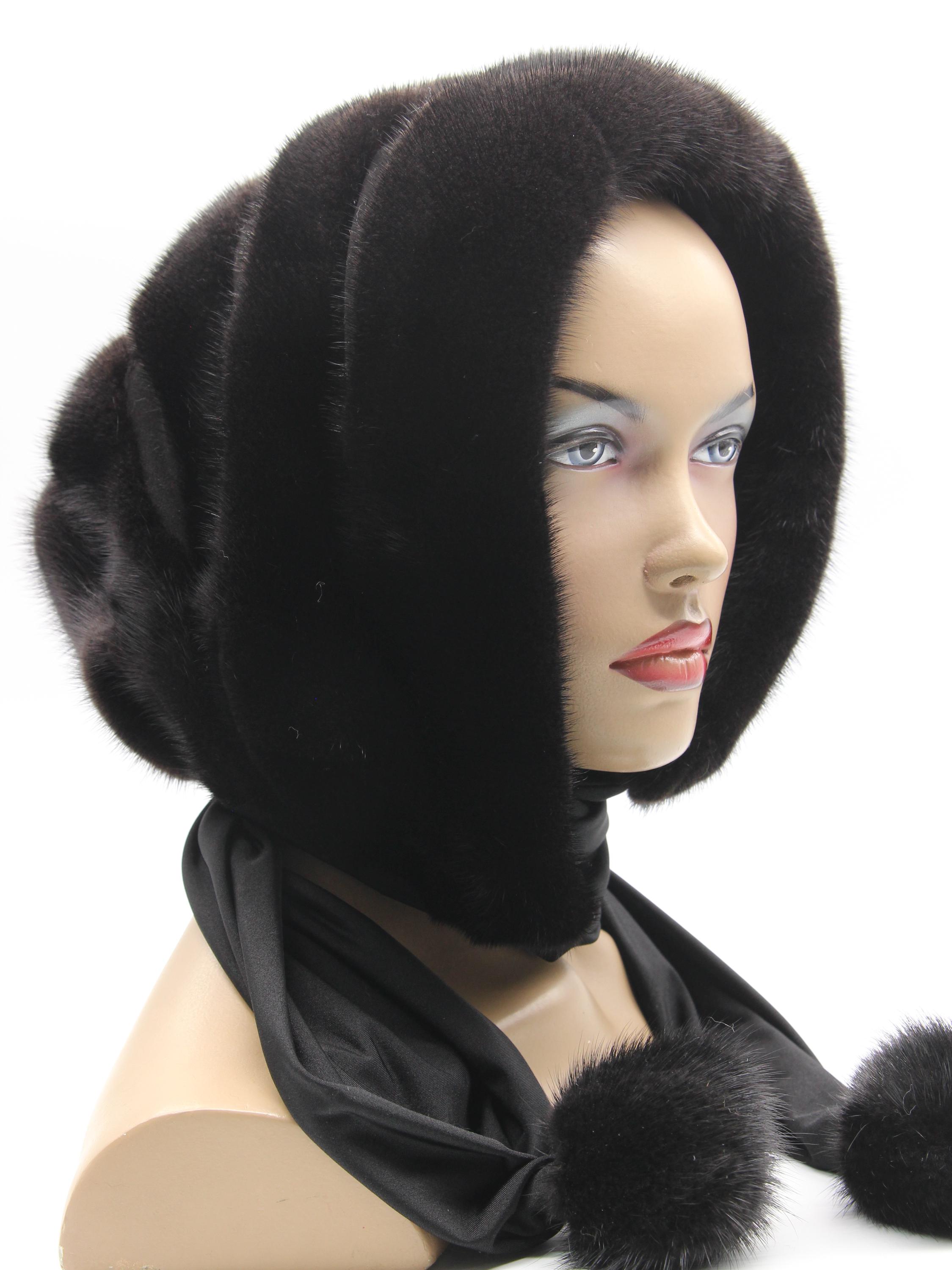 Natural Dark Brown Mink Fur Hooded Scarf for Women - Handmade Winter Hood Wrap