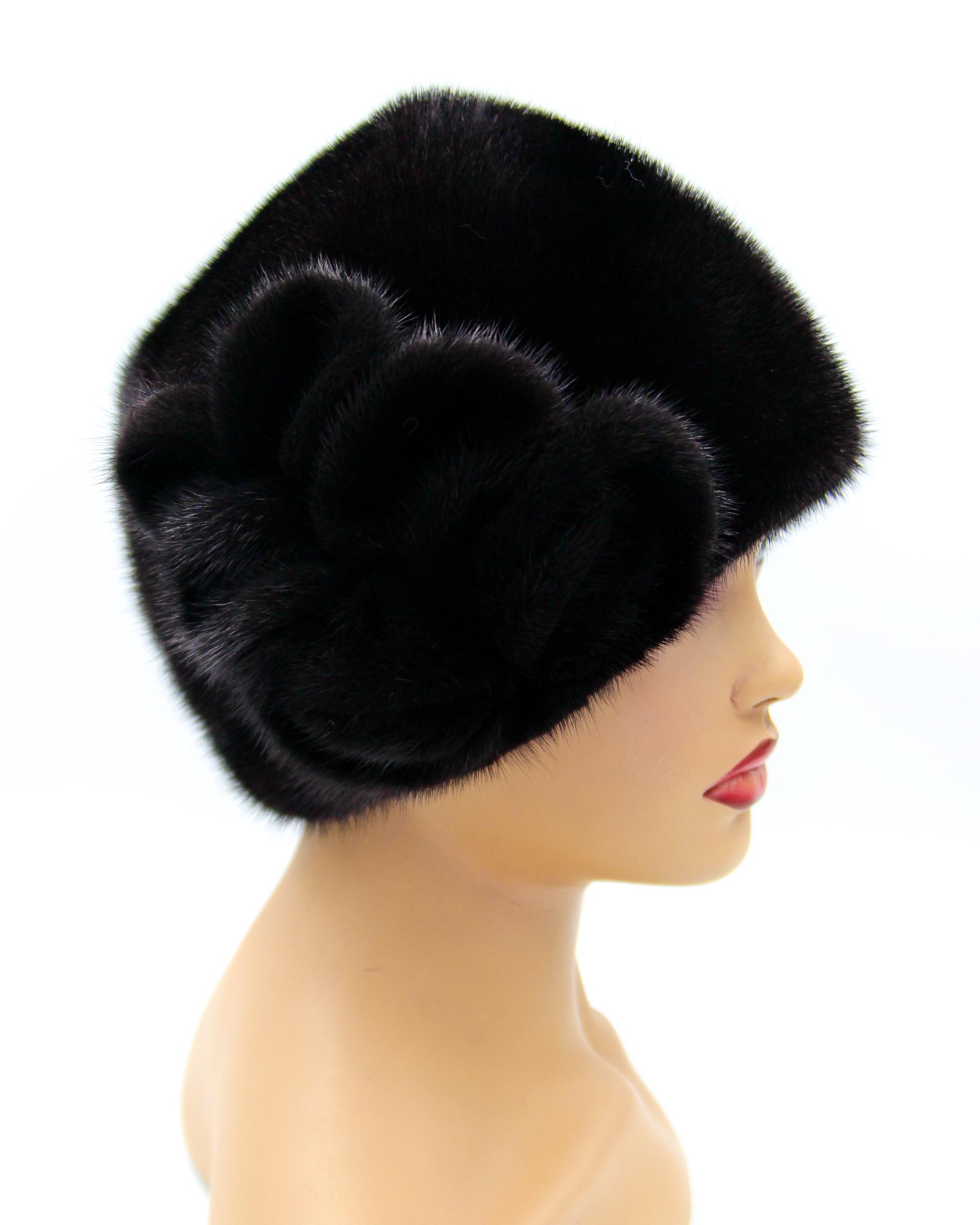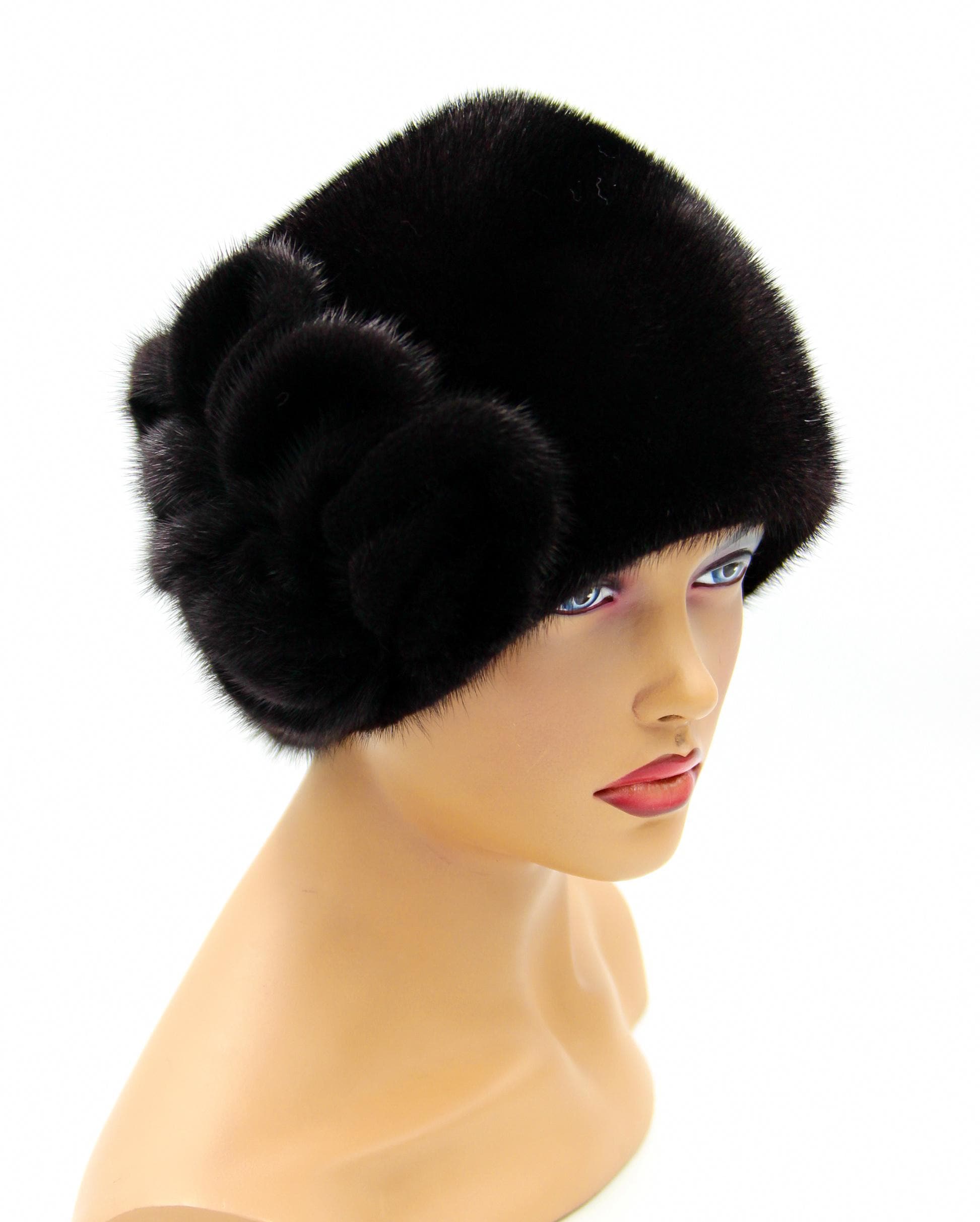 Black Mink Fur Hat Women Winter Lola Elegant Applique - Handmade Luxury Designer Natural