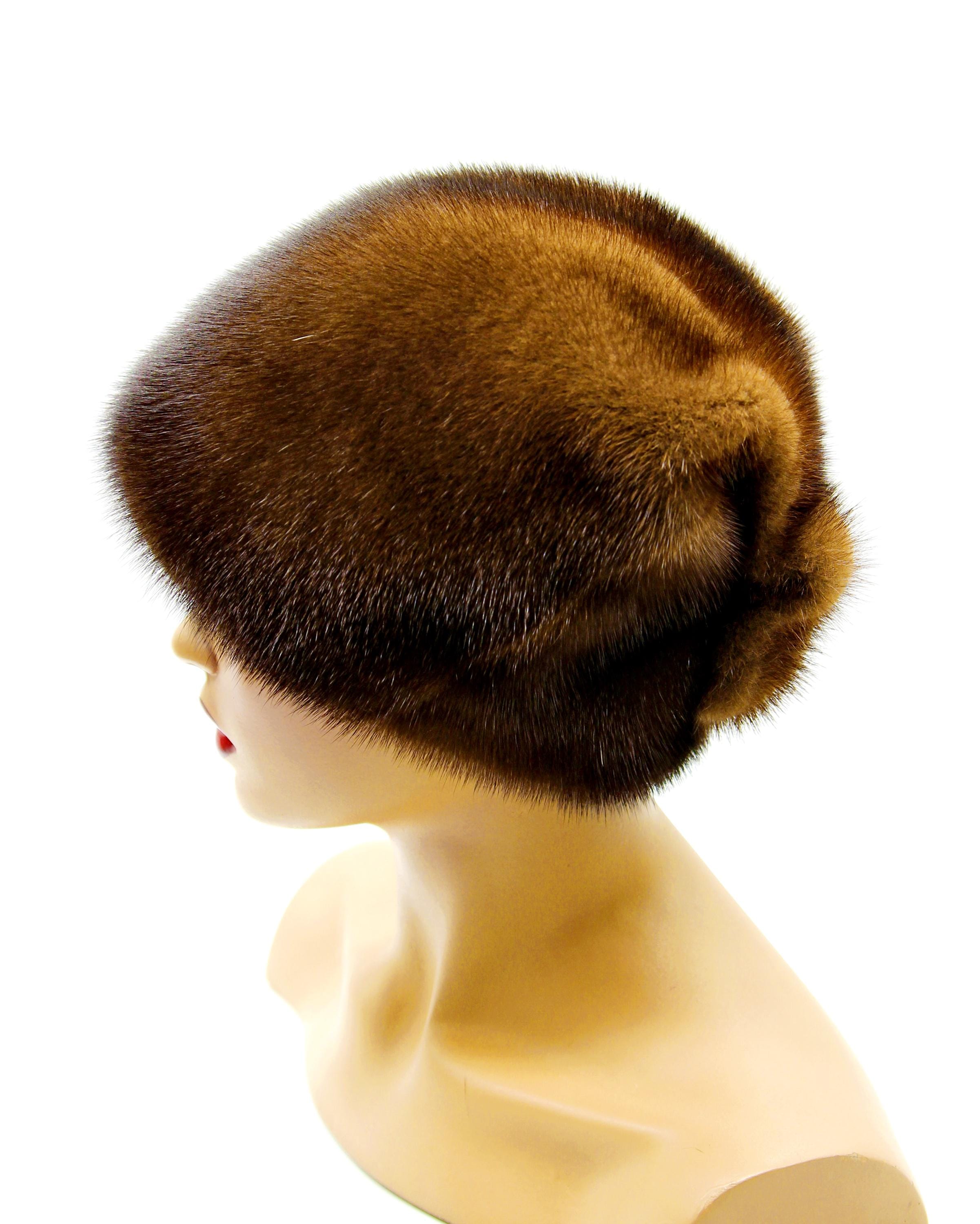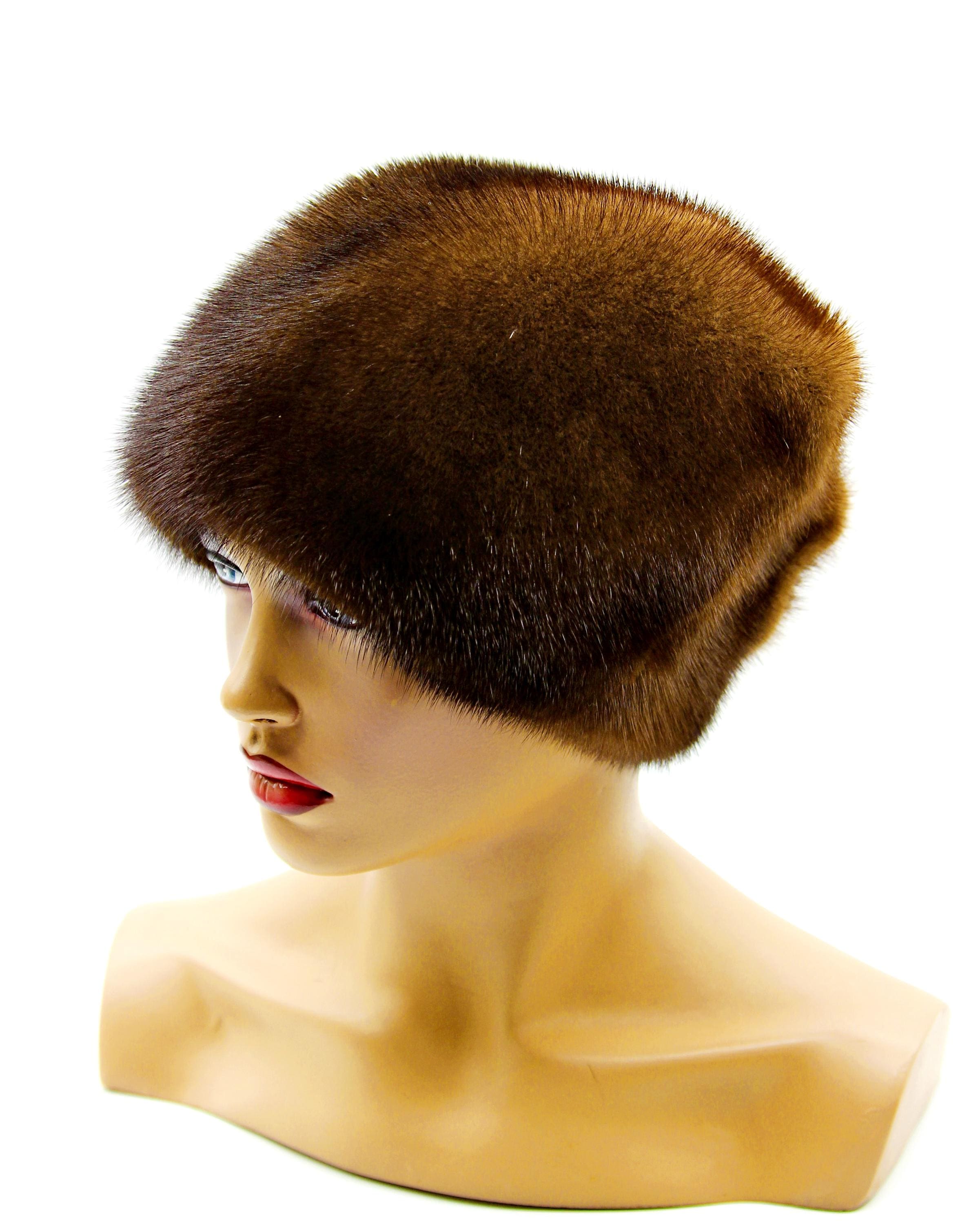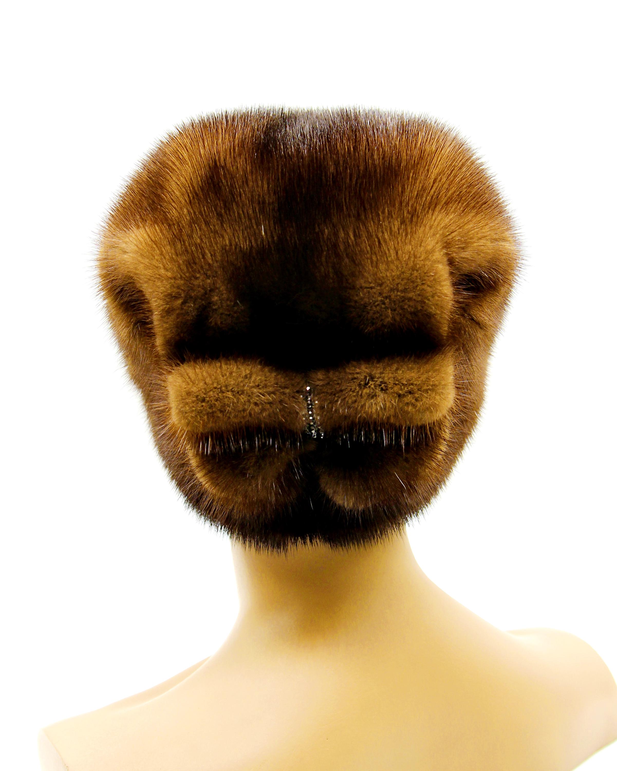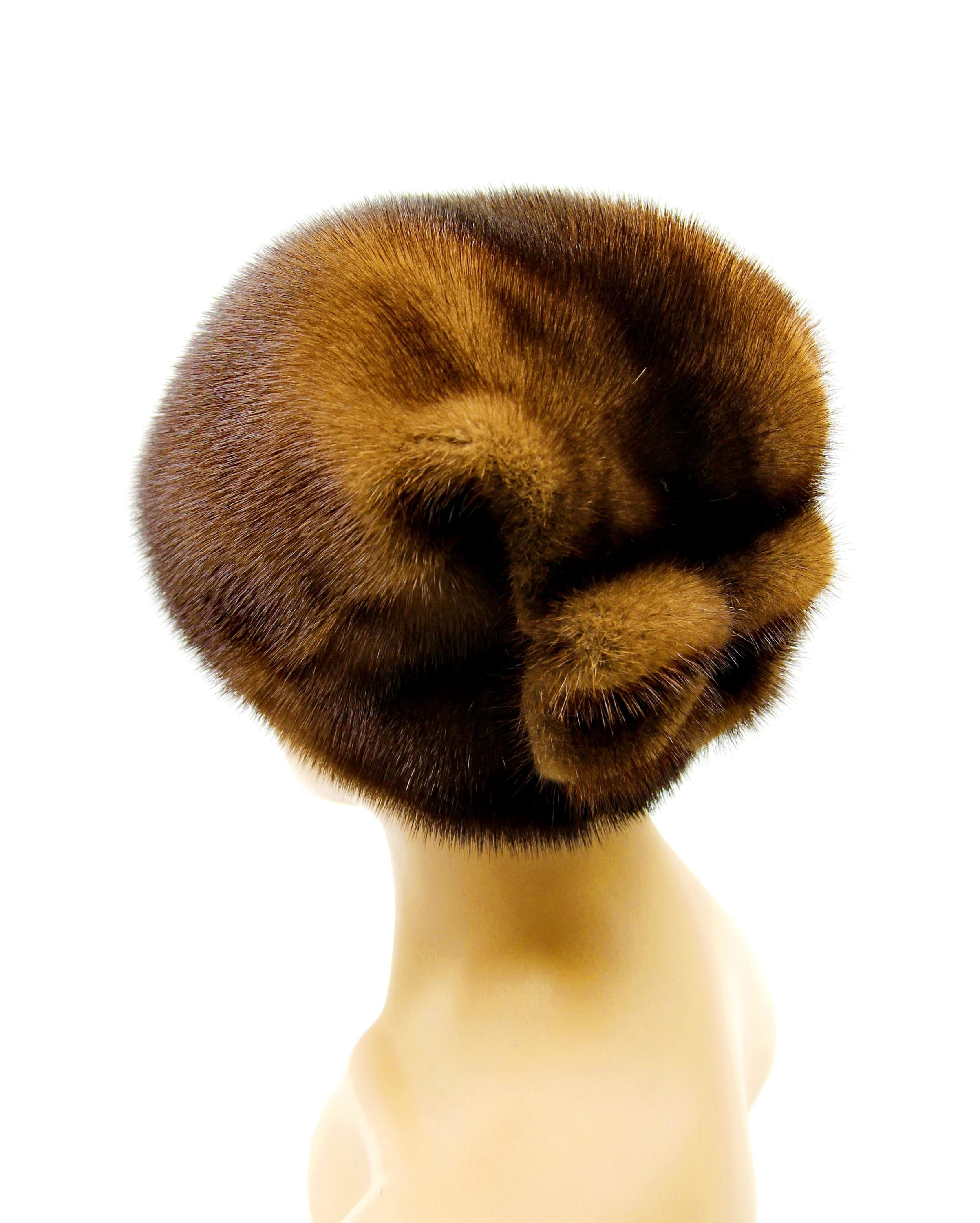 This is a warm hat made from real mink fur with a decorative bow. Takes six hours to make, lasts 10-15 years, keeps your head comfortable at -20°C. Costs more than synthetic versions but you only buy it once instead of every other year. Makes sense for some people, doesn't for others. Up to you.