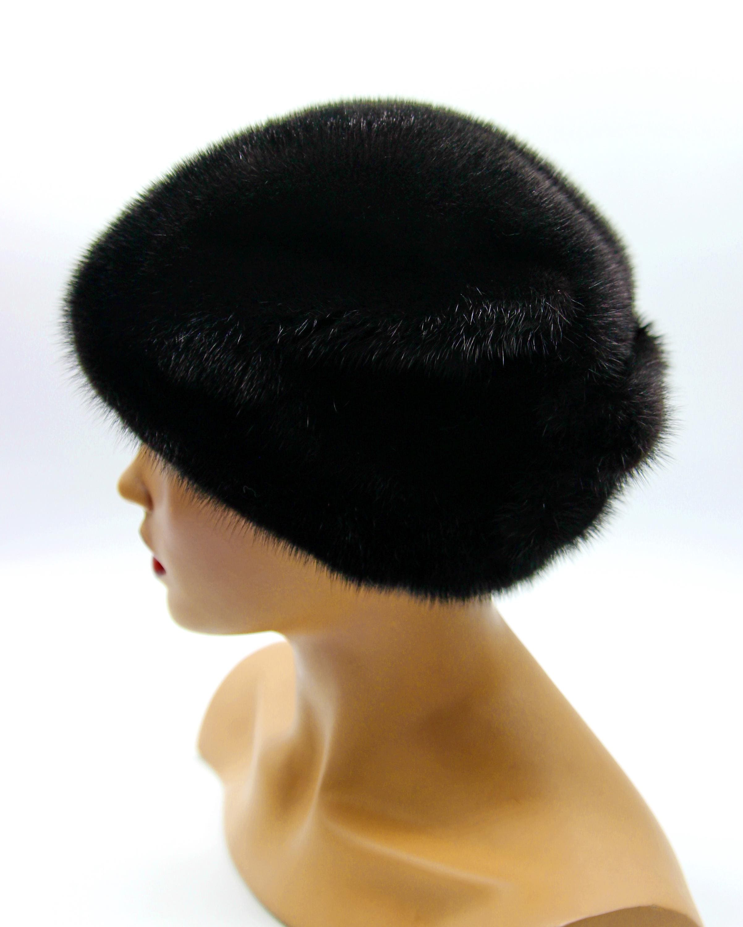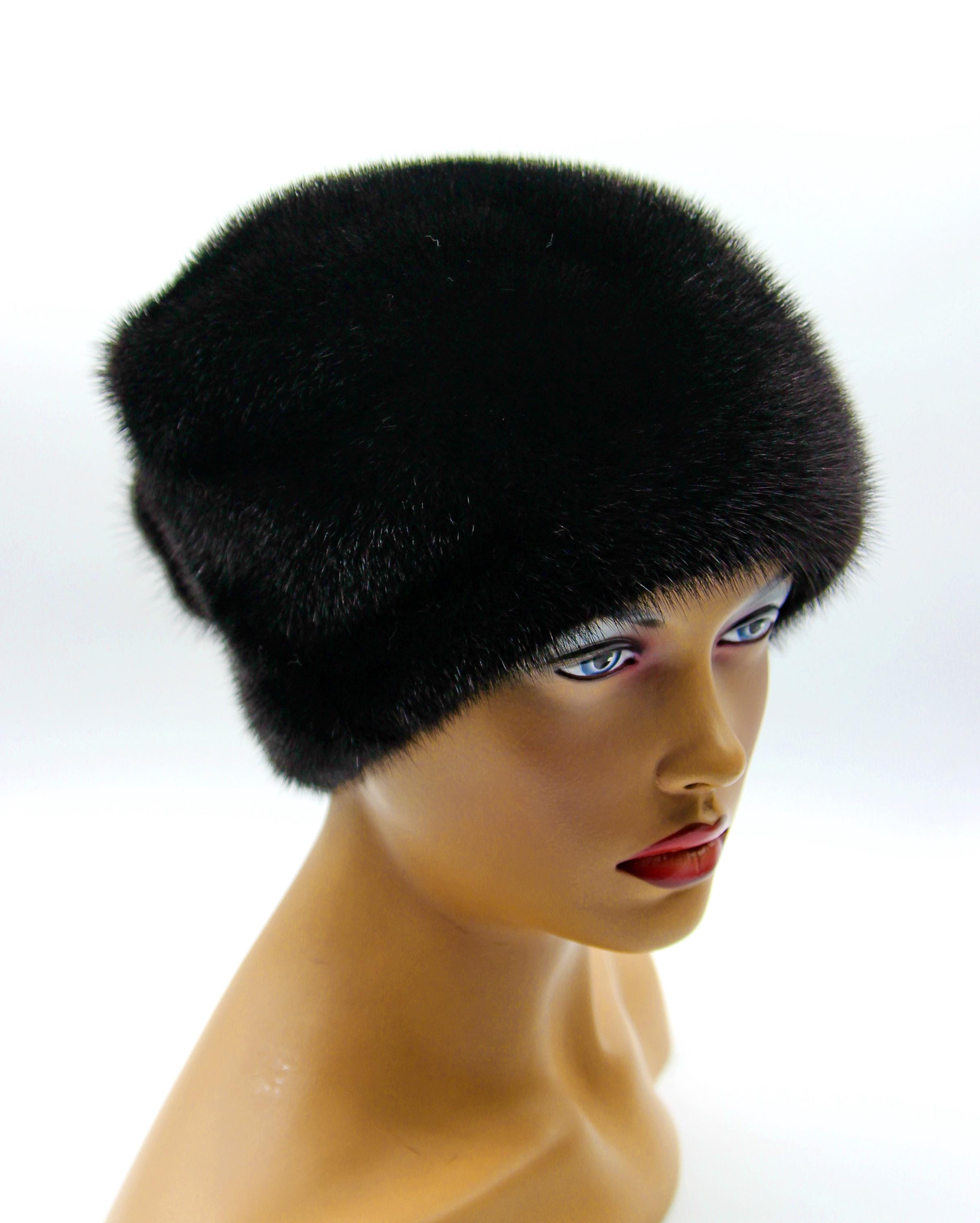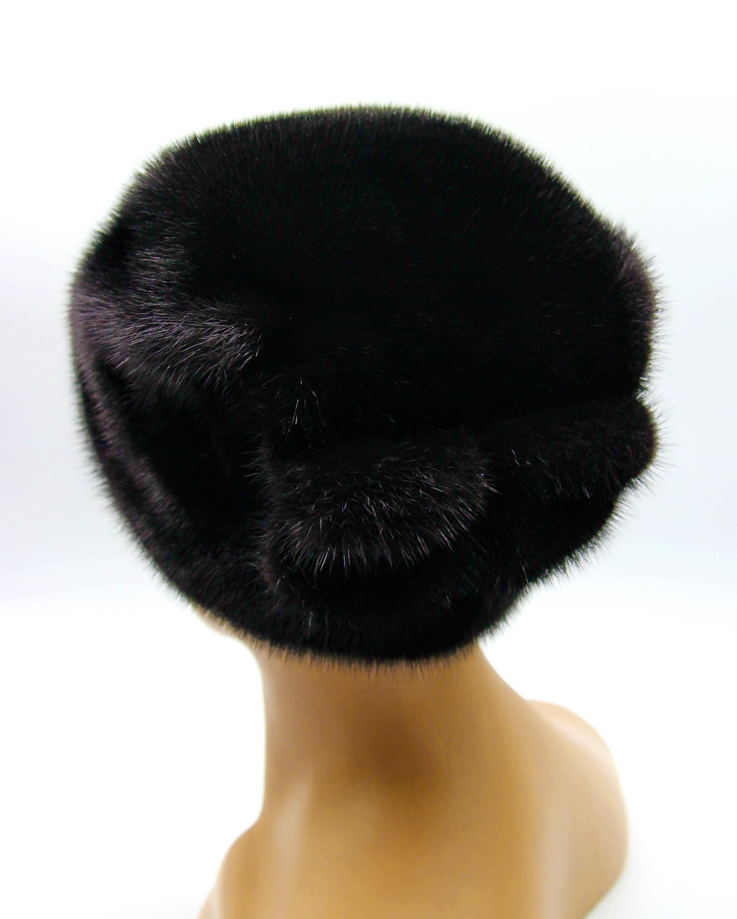 Black Mink Fur Hat Voluminous Style - Handmade Winter Headwear for Women