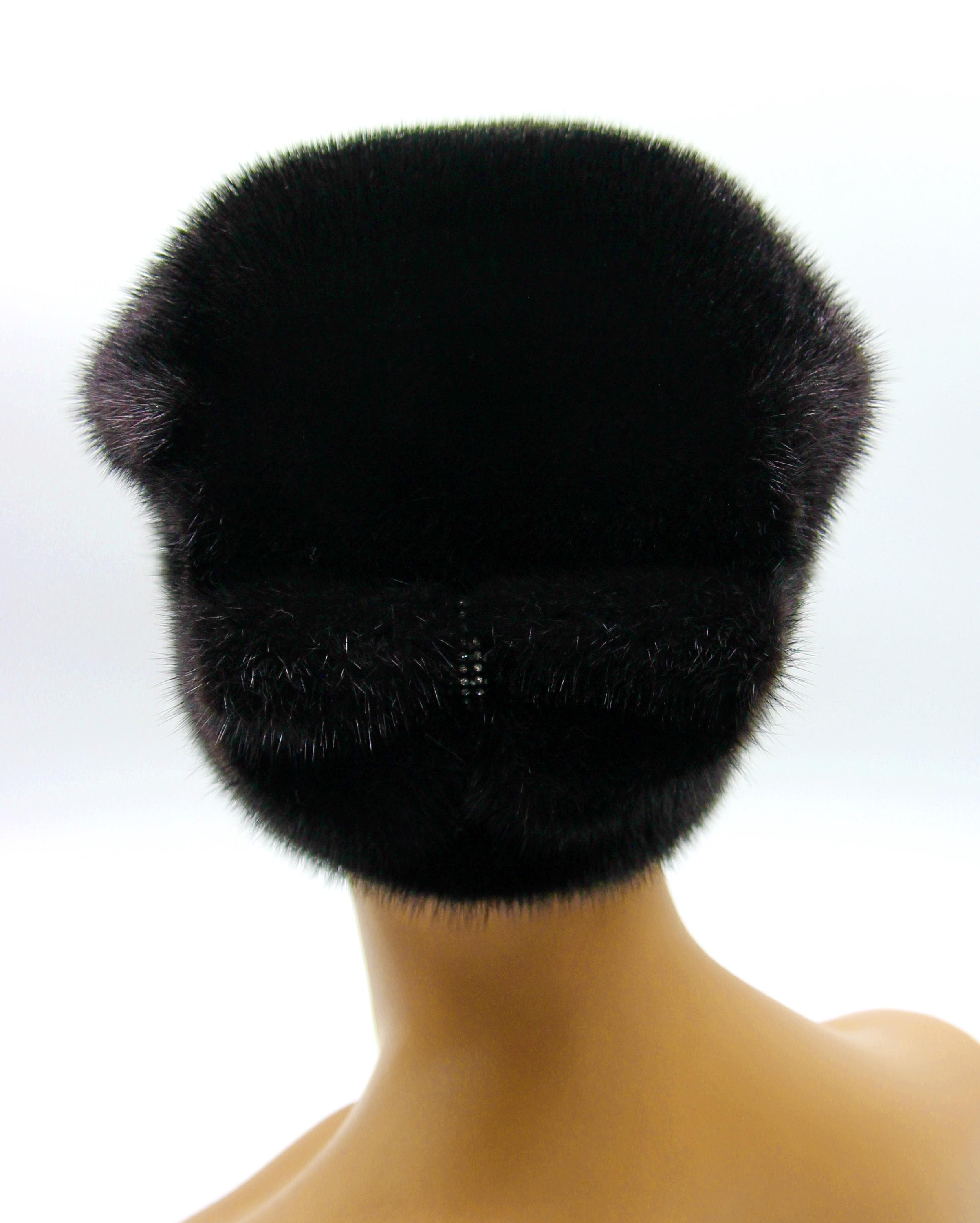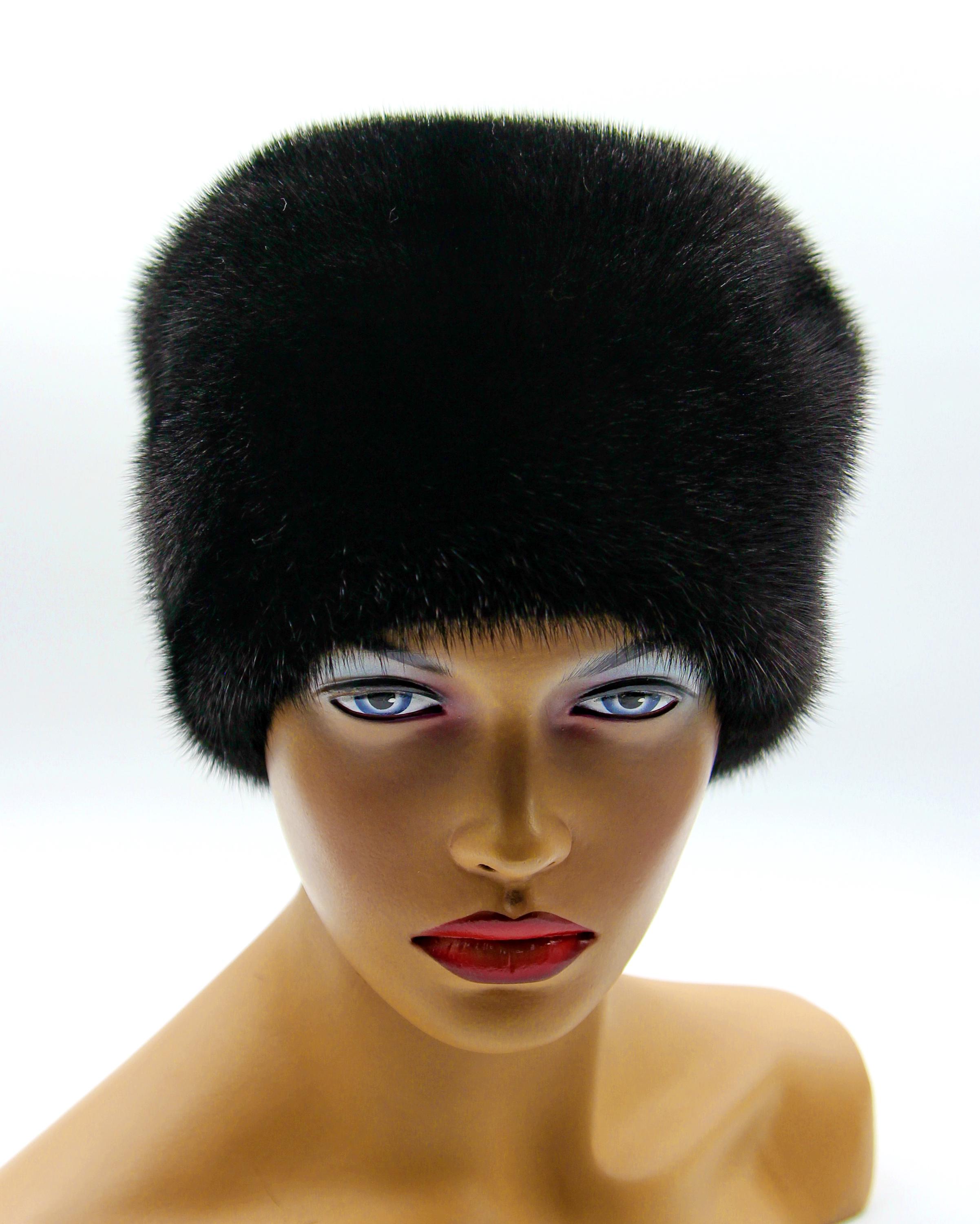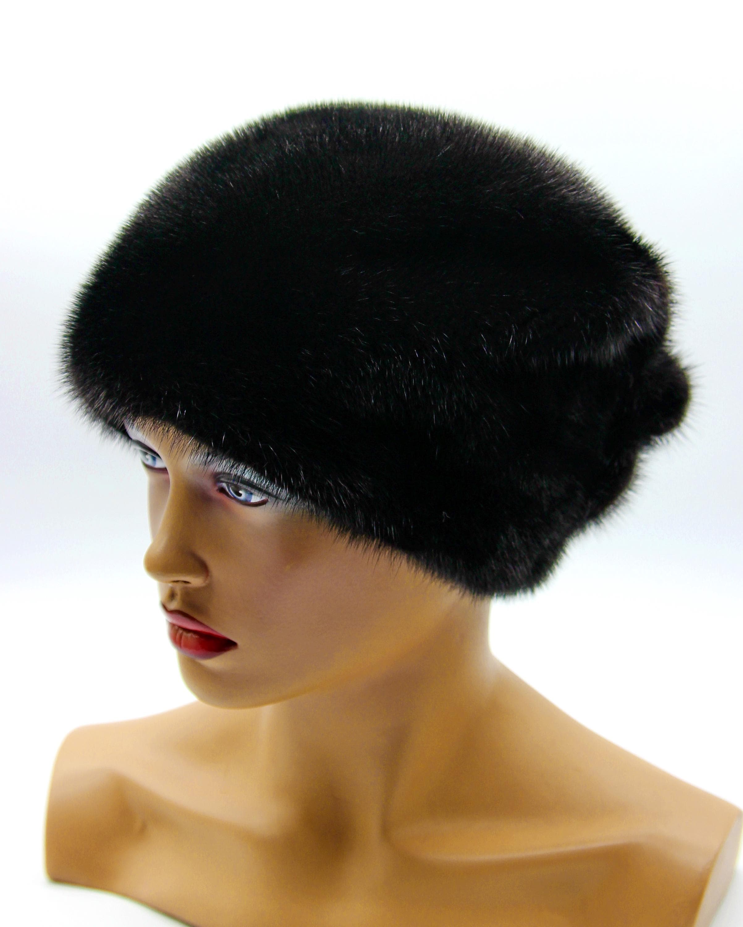 Black Mink Fur Hat Voluminous Style - Handmade Winter Headwear for Women