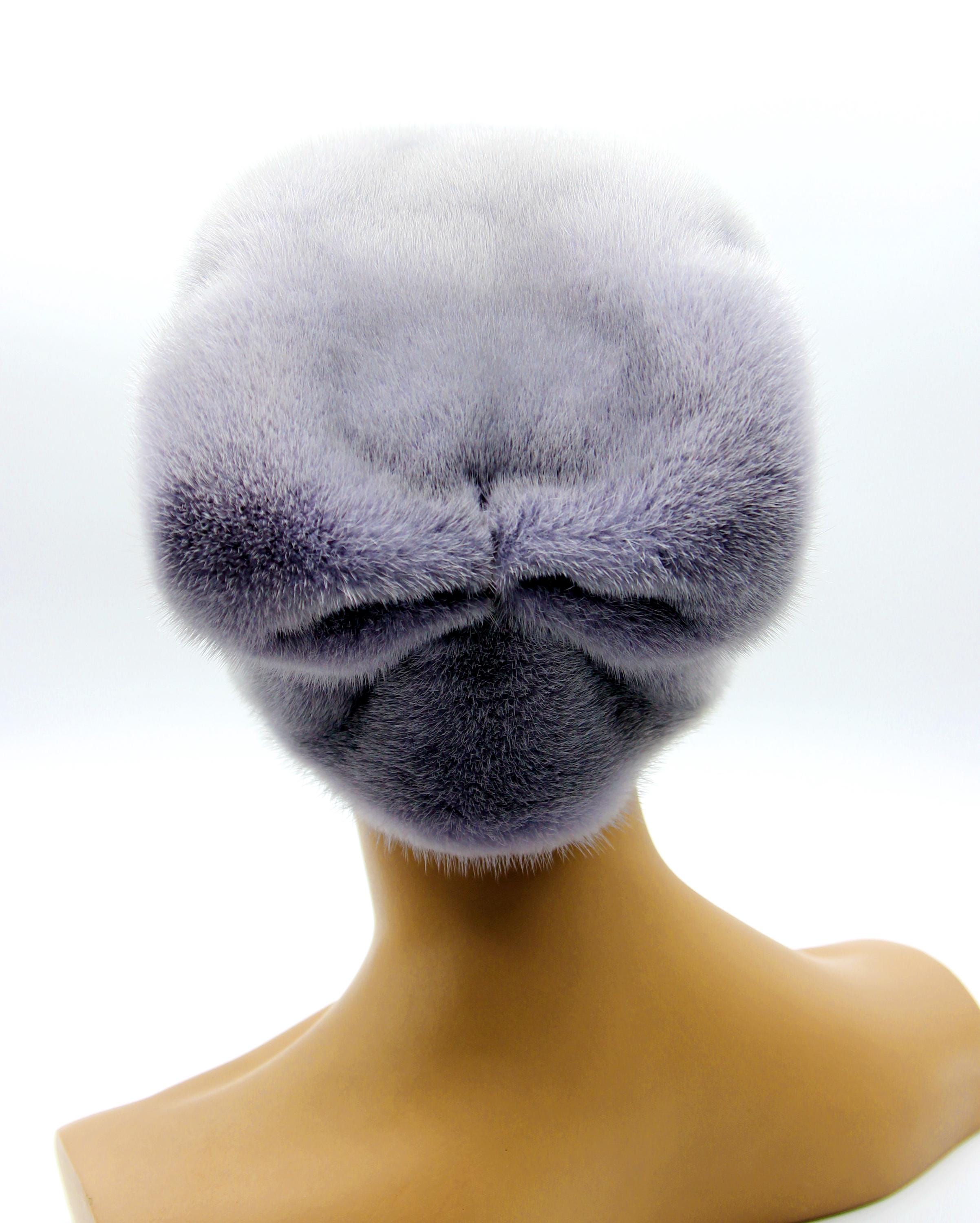 Lilac Purple Mink Fur Hat Wave Bow Back - Handmade Winter Headwear for Women