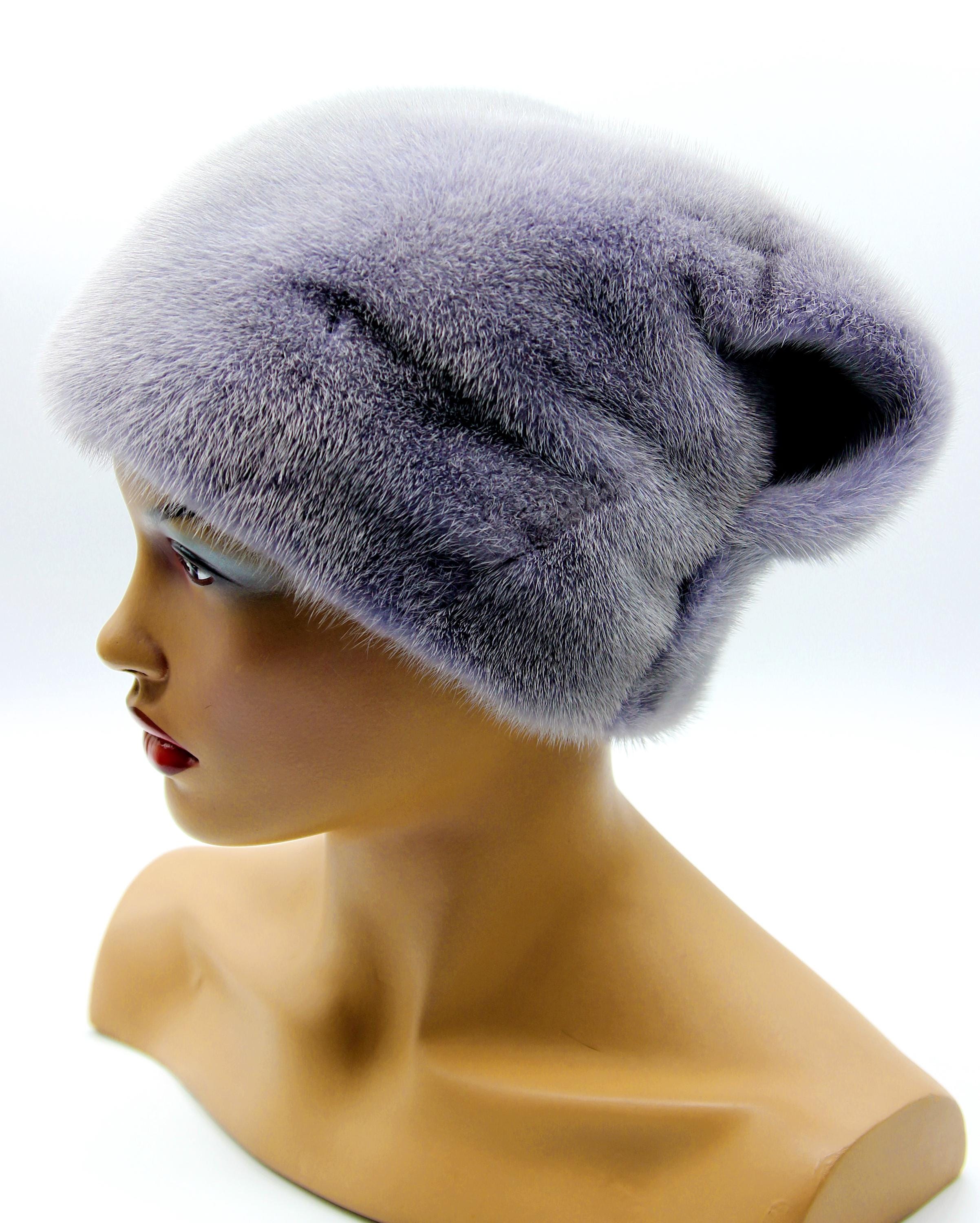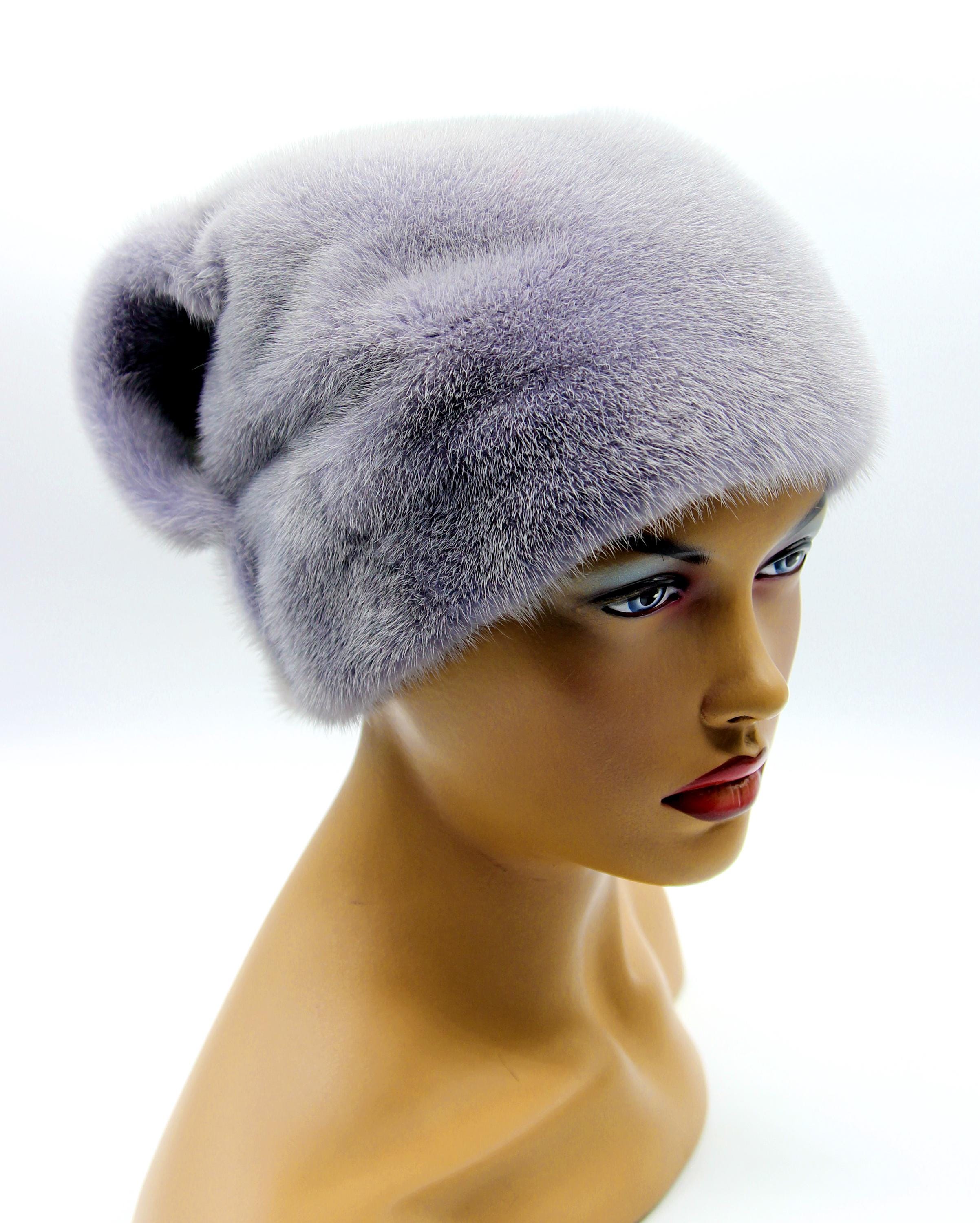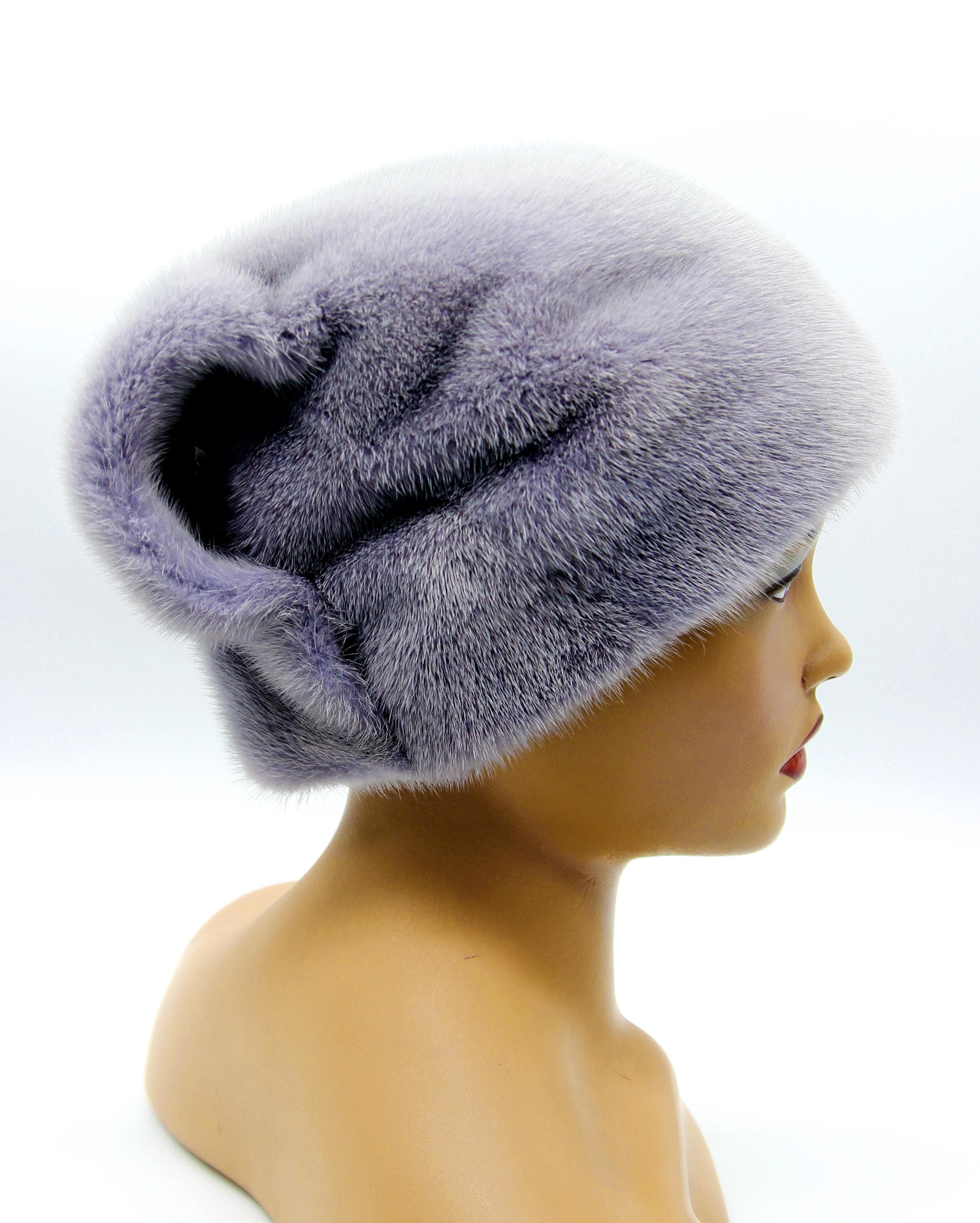 Lilac purple mink fur hat, purple fur hat, wave bow fur hat, winter fur hat, womens winter hat, luxury fur hat