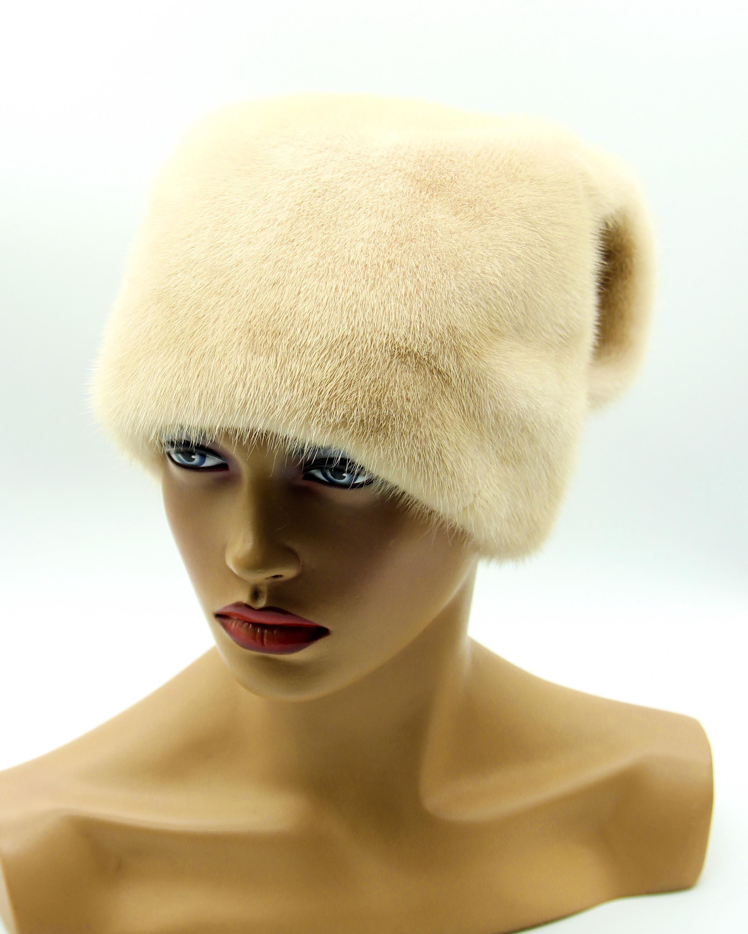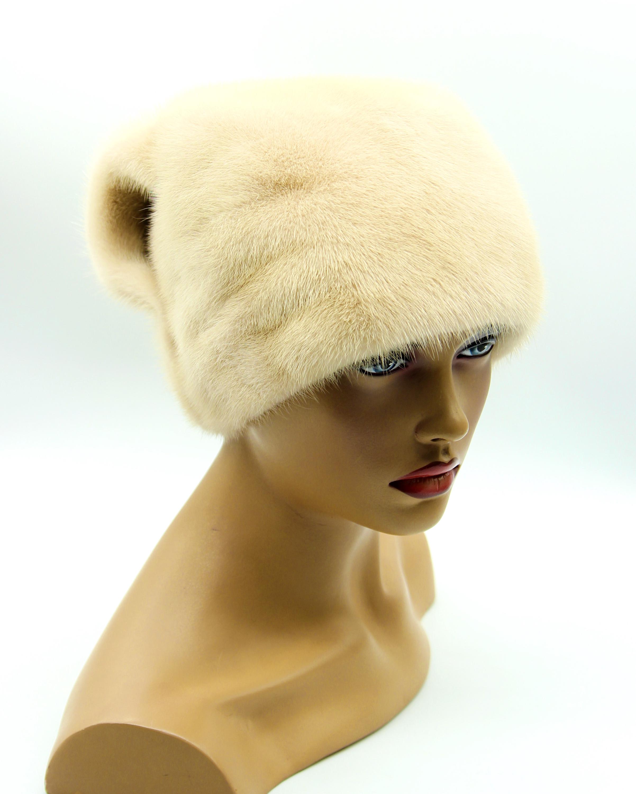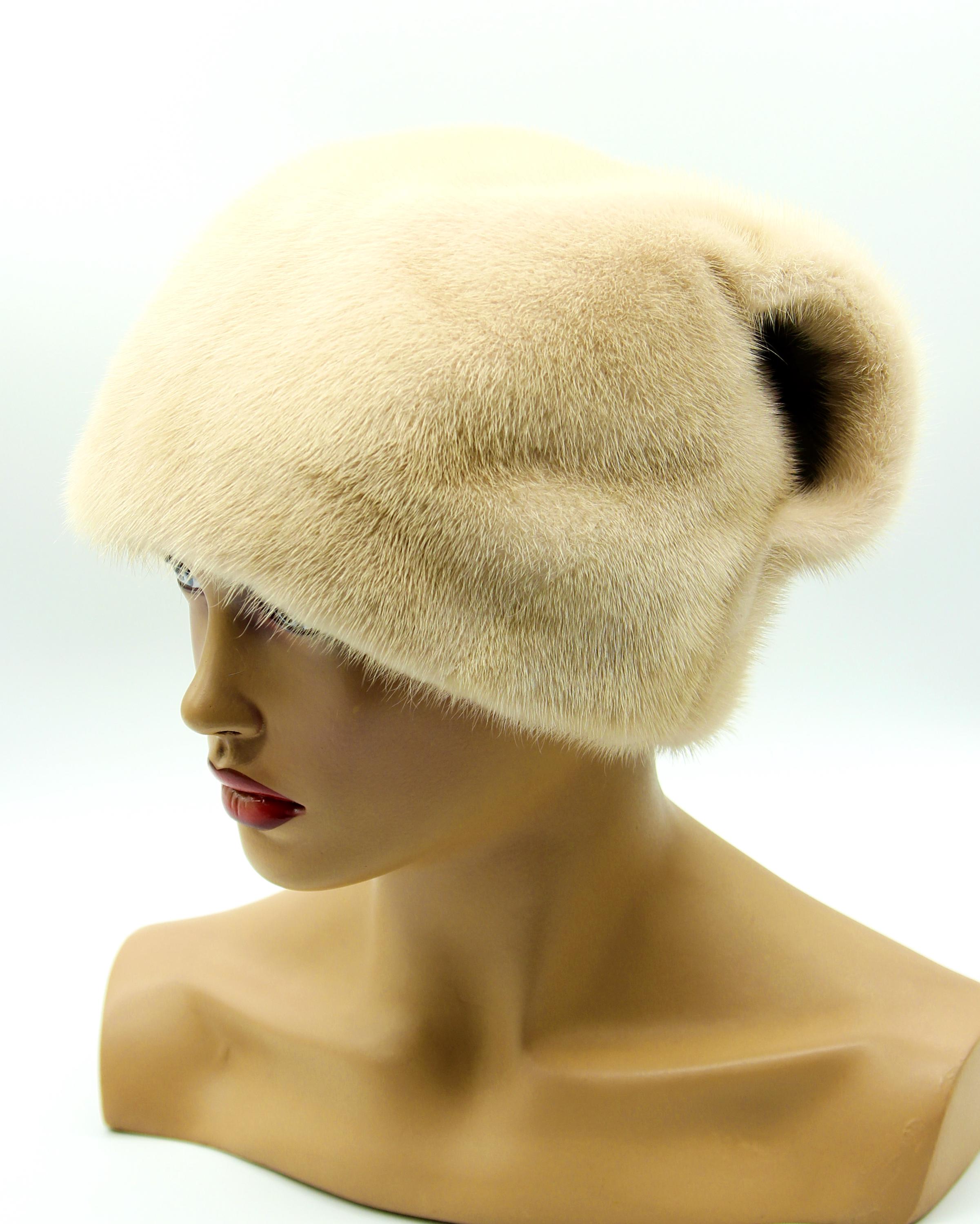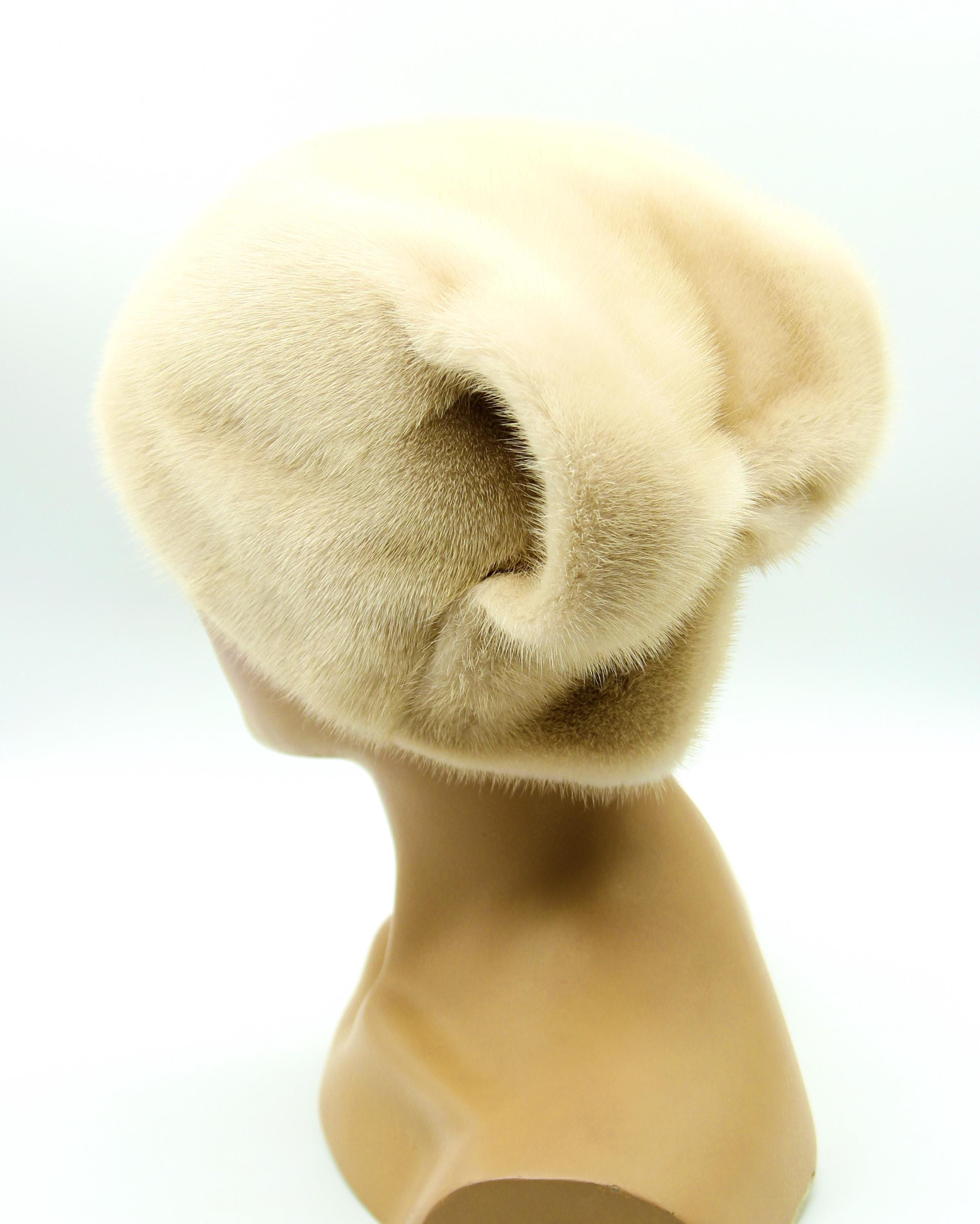 Beige cream mink fur hat, beige fur hat, wave bow fur hat, winter fur hat, womens winter hat, luxury fur hat