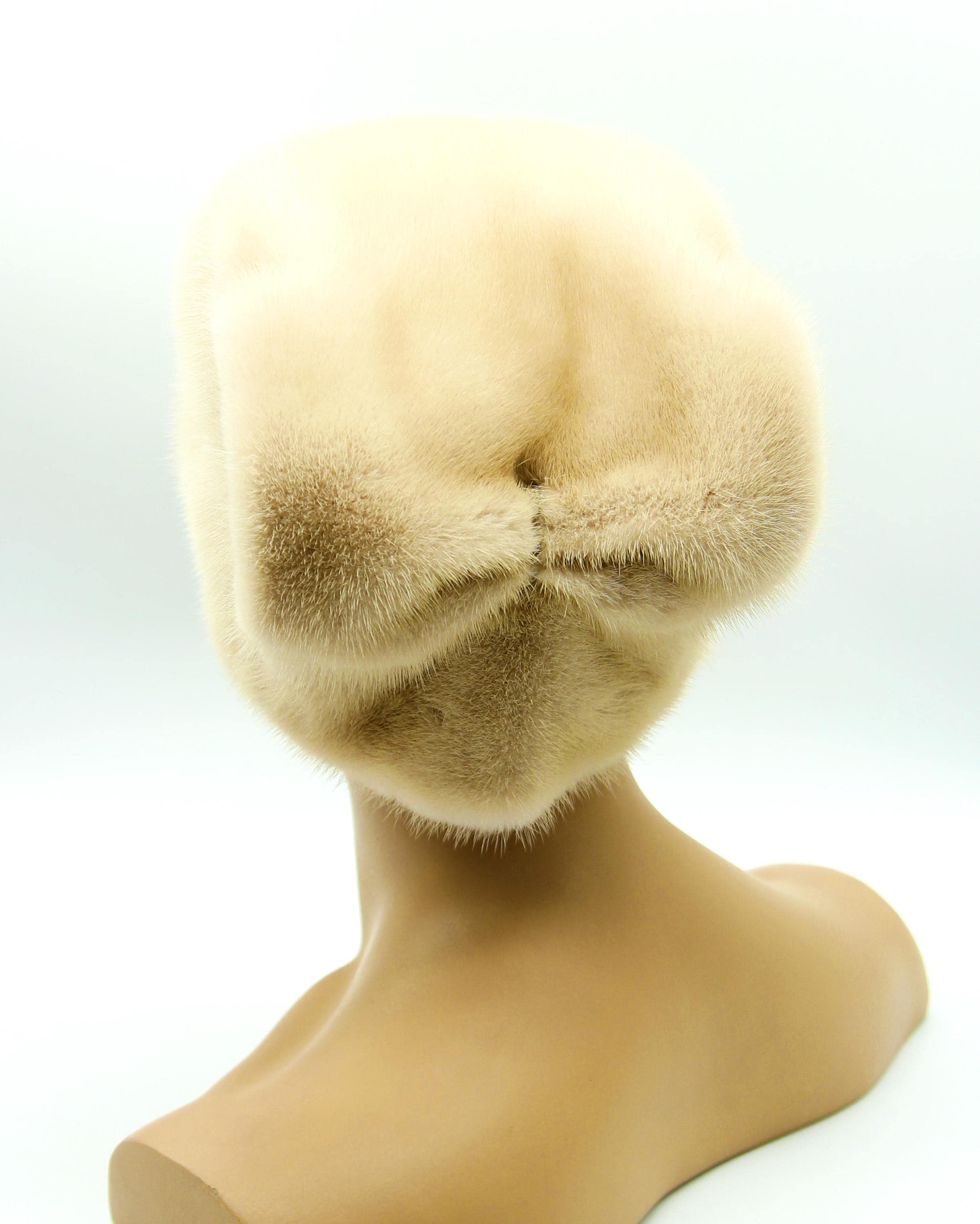 Premium quality mink in this specific beige tone, polyester lining with synthetic insulation inside, elastic drawstring allowing adjustment. The gathered wave bow requires genuine understanding of how fur naturally folds and gathers - cannot force it artificially or the result looks wrong and unnatural. Takes considerable extra time getting that wave effect exactly right.