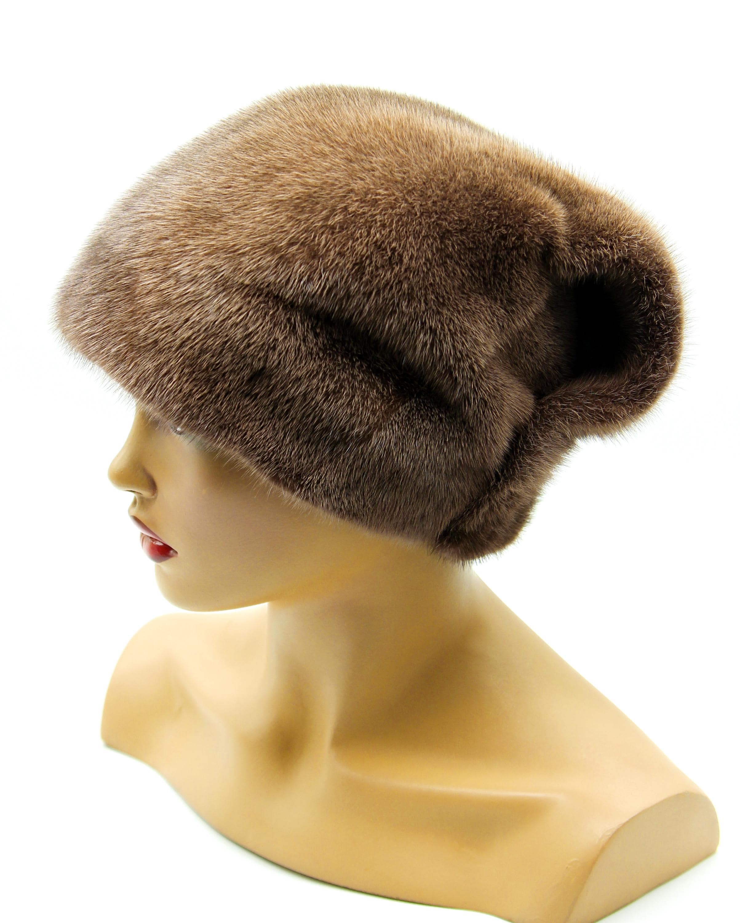 Cocoa brown mink fur hat, brown fur hat, wave bow fur hat, winter fur hat, womens winter hat, luxury fur hat