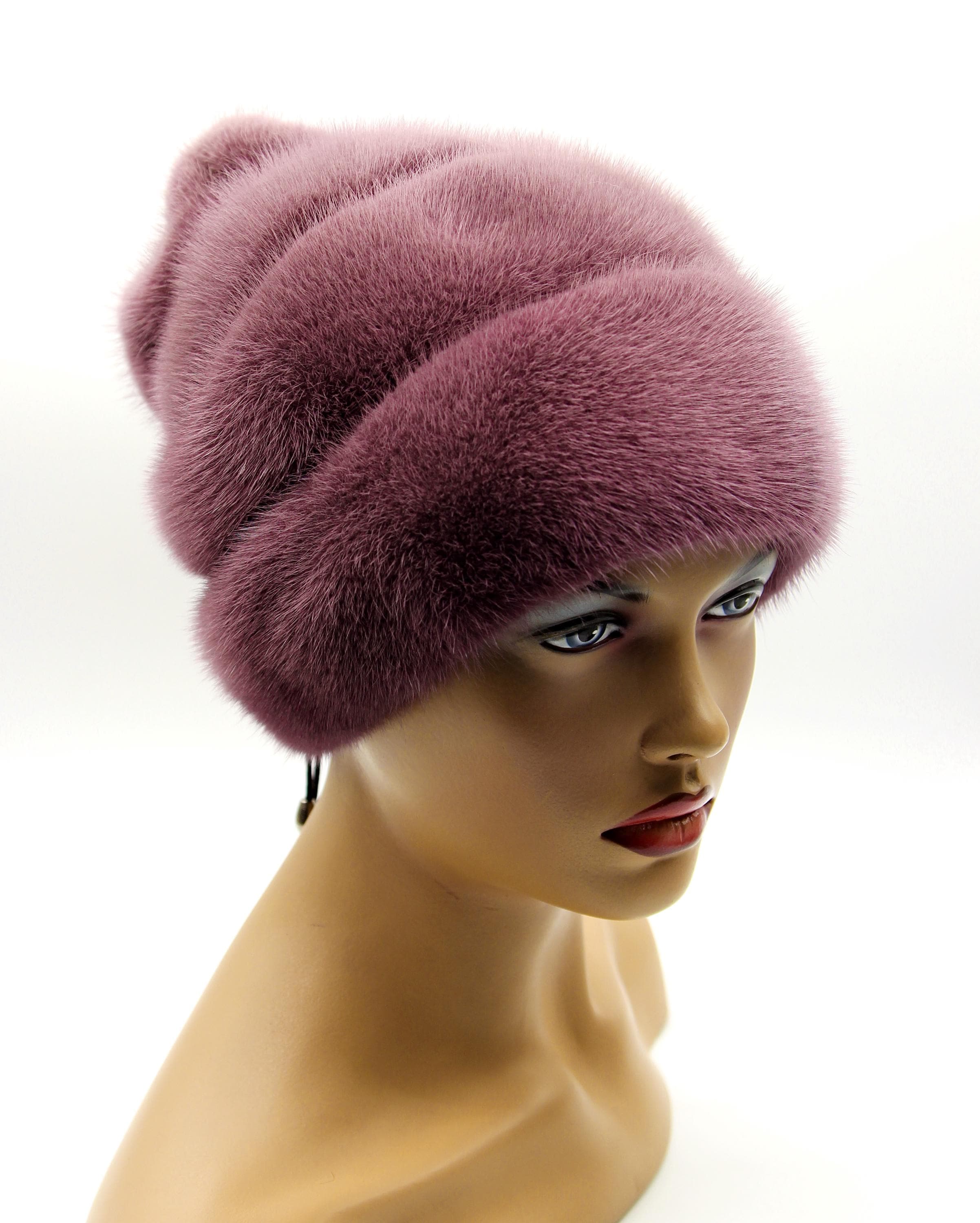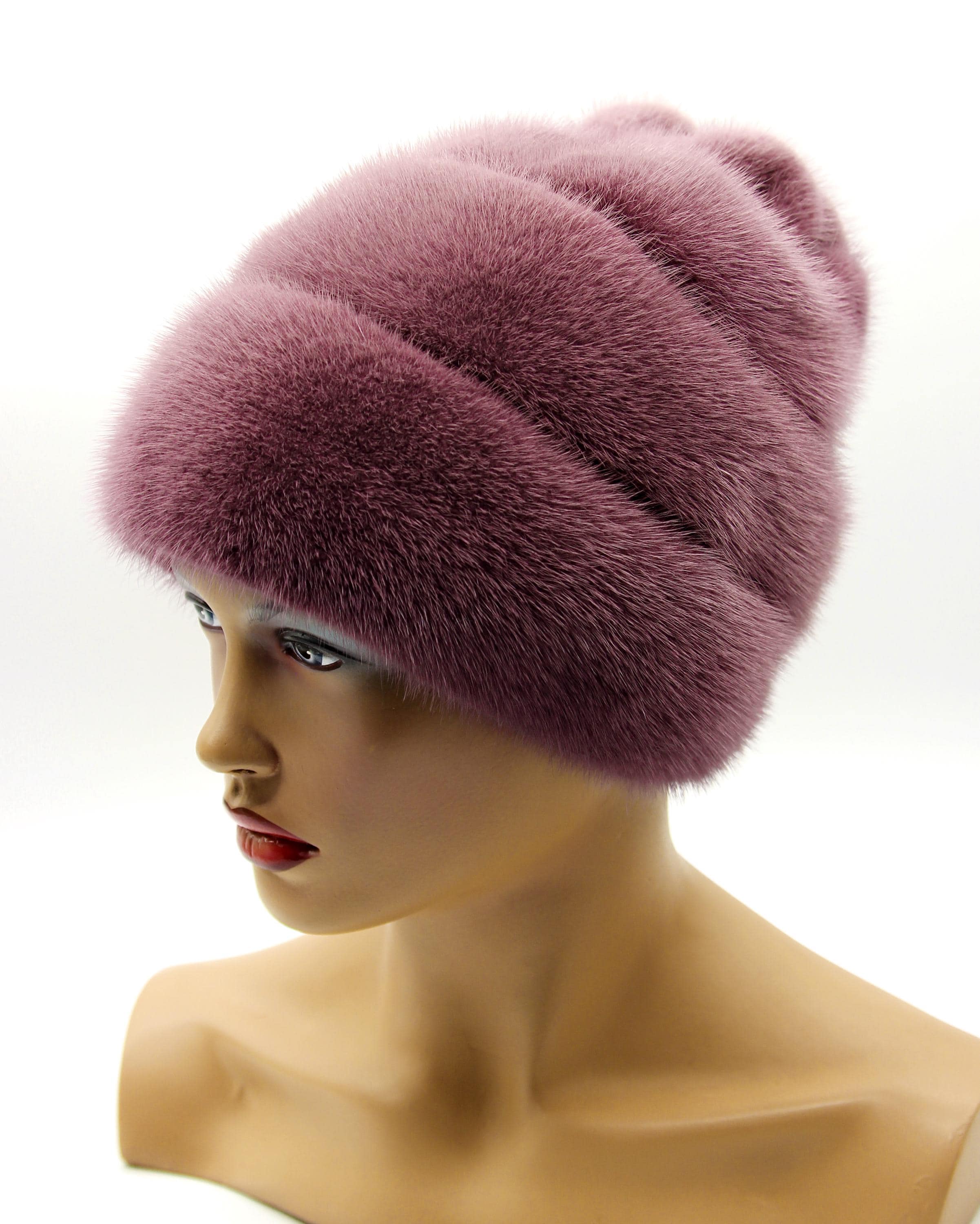 Mink fur hats in lilac shade pairs unexpectedly well with various coats. Black, navy, grey obviously but also cream, deeper purple, burgundy. That soft violet is distinctive enough to stand out without overwhelming or looking costume-like. Good option for wanting color without committing to bold primary shades.