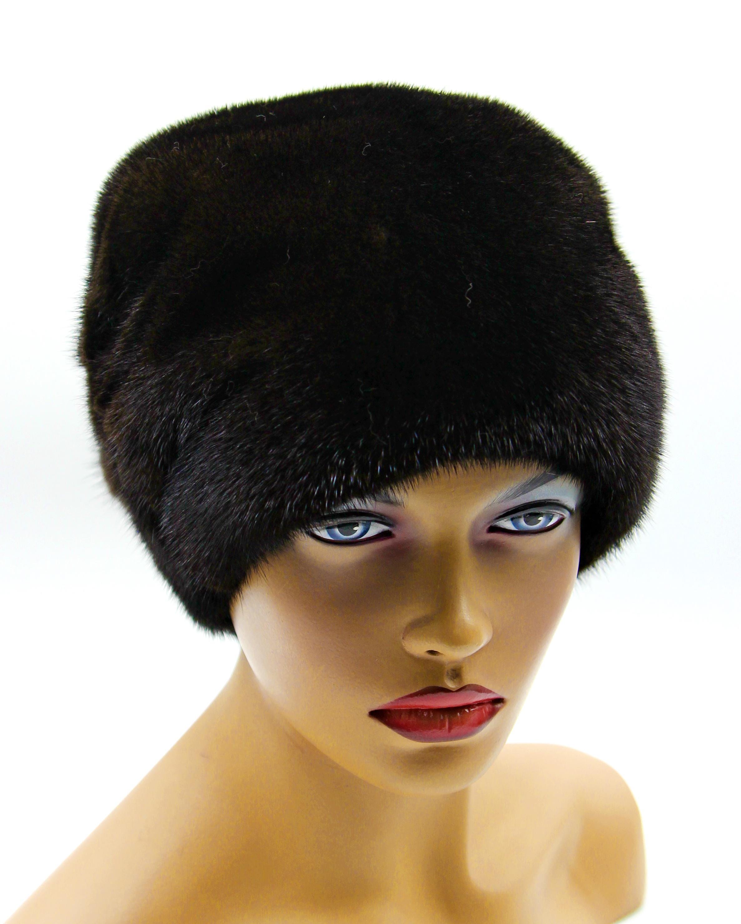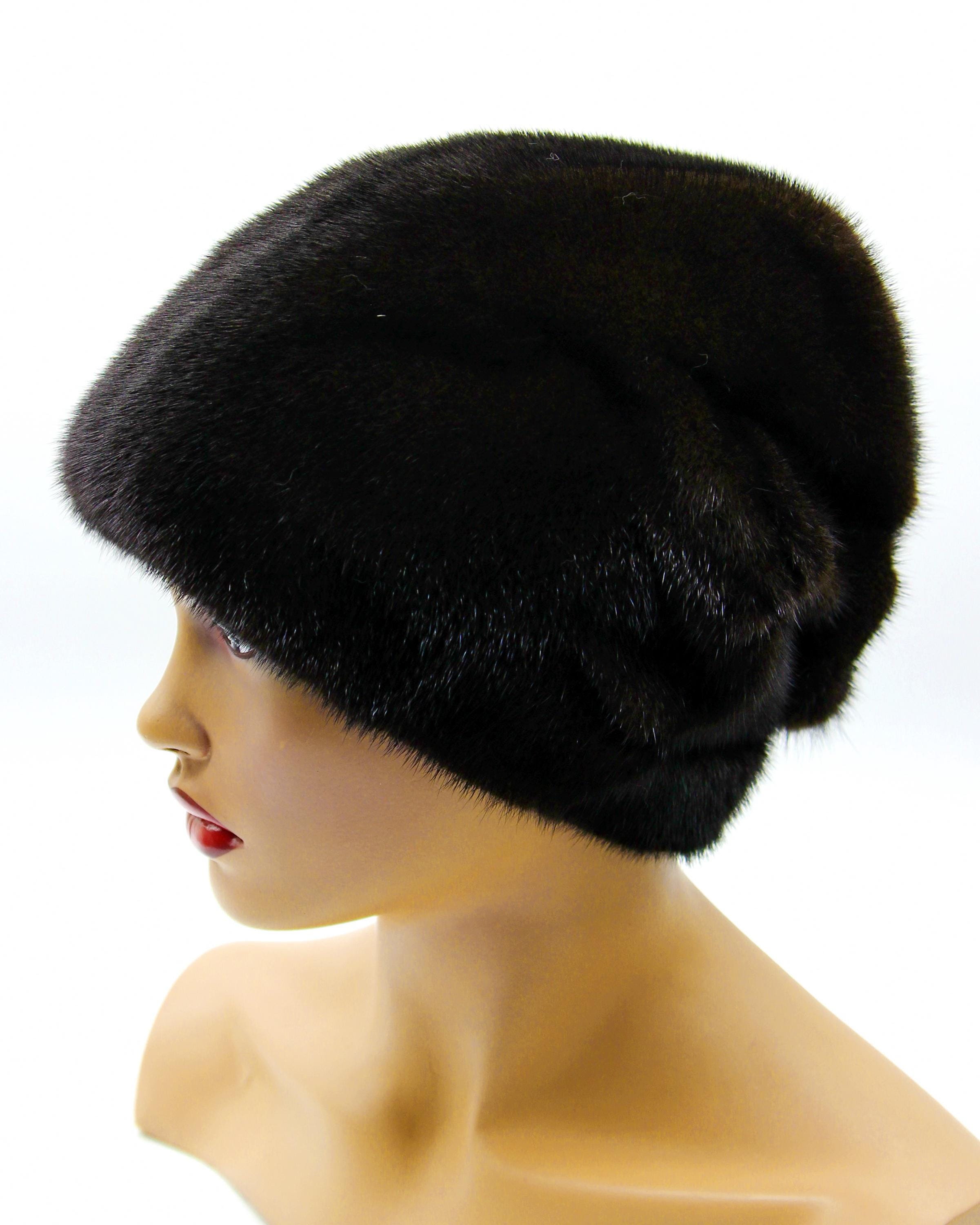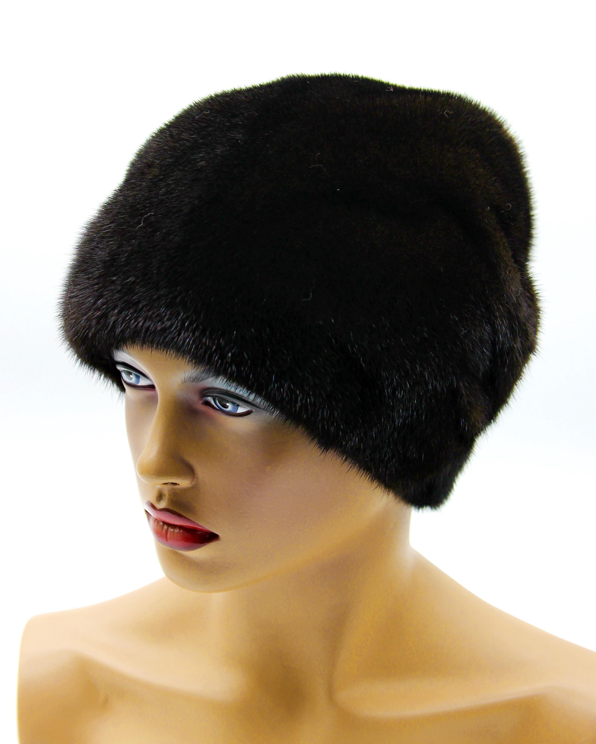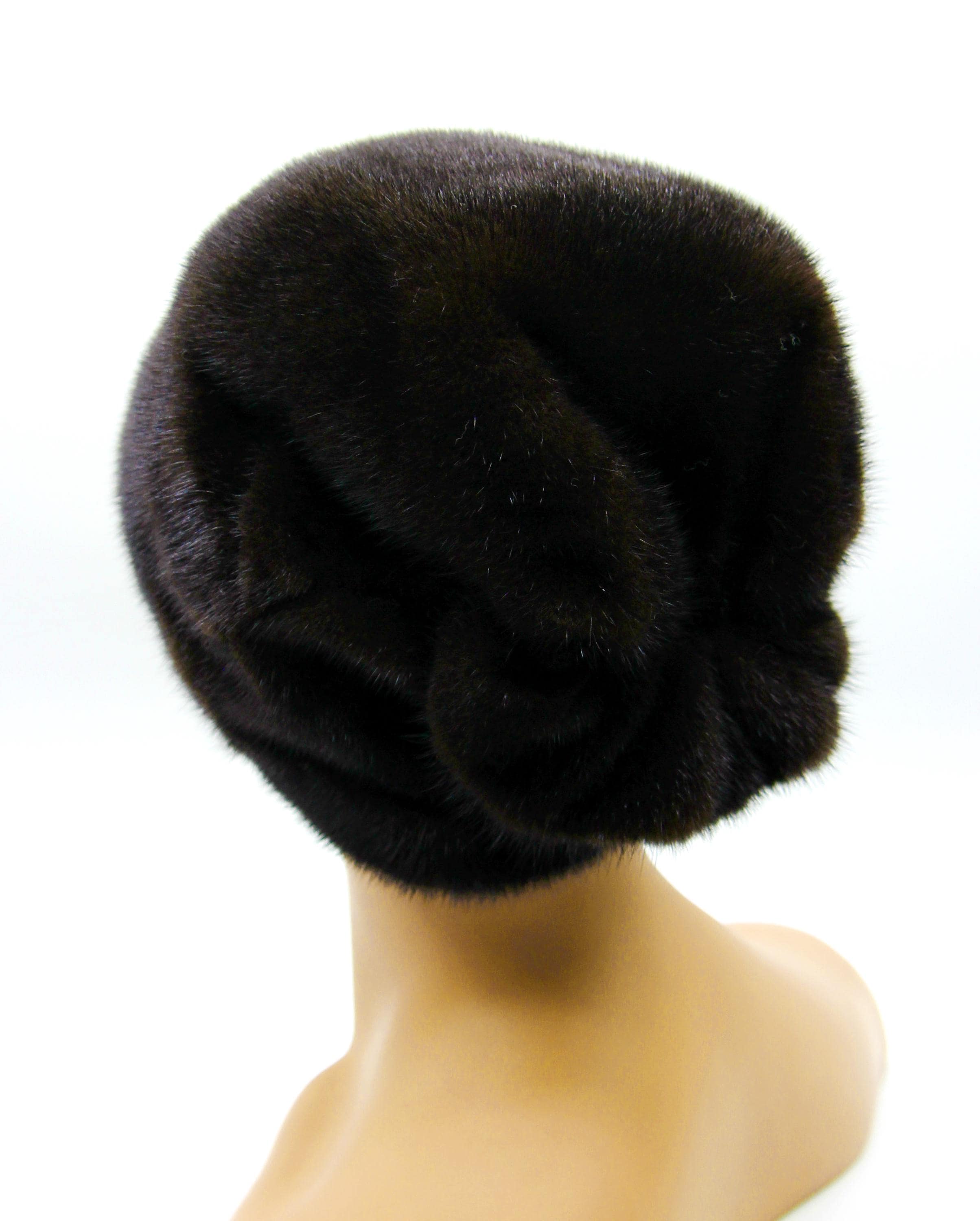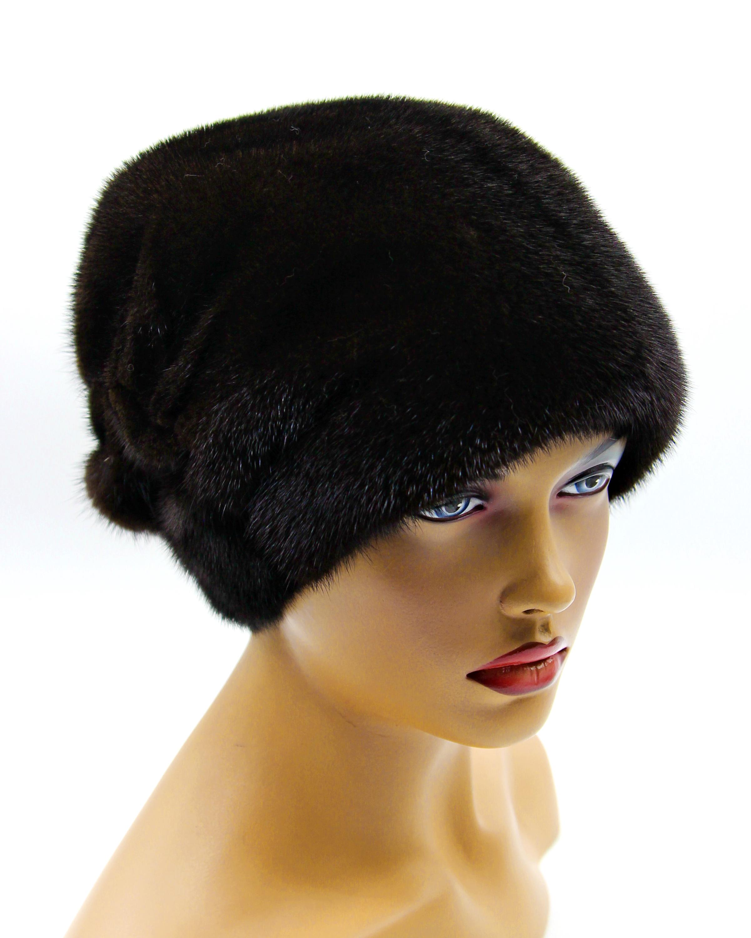 Dark Brown Mink Fur Hat for Women - Handmade Chocolate Winter Headwear