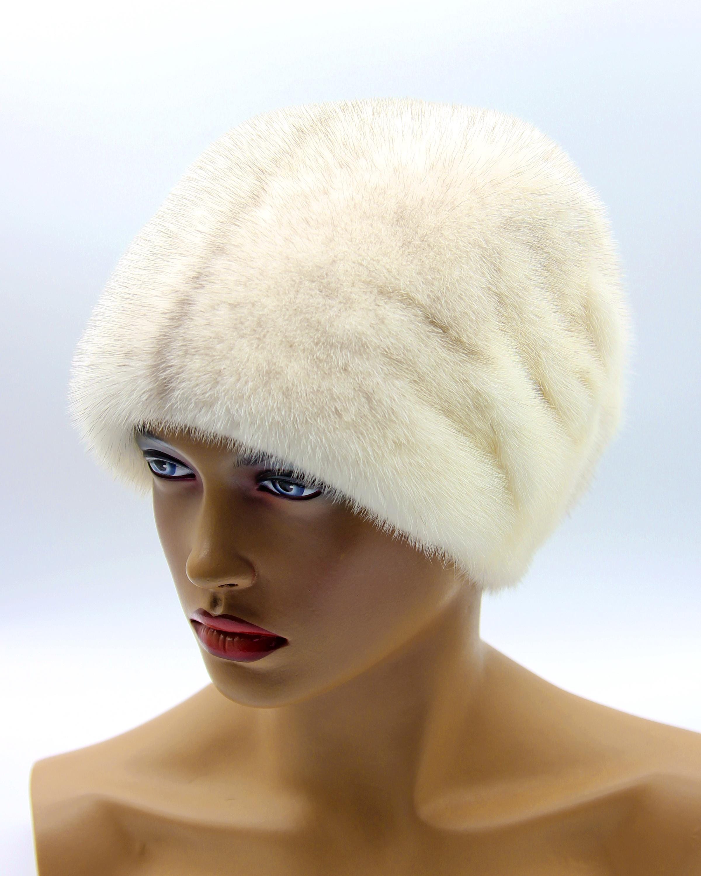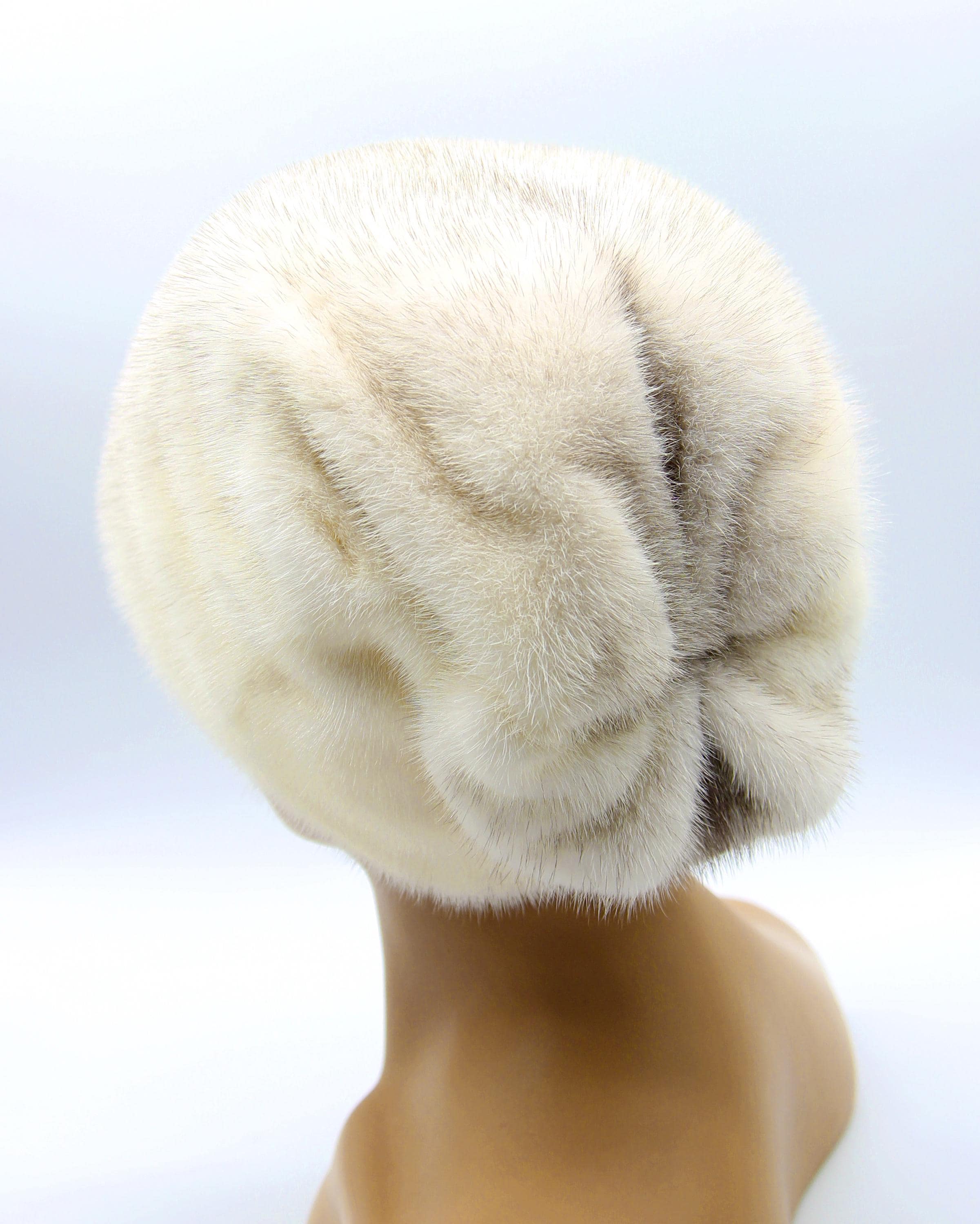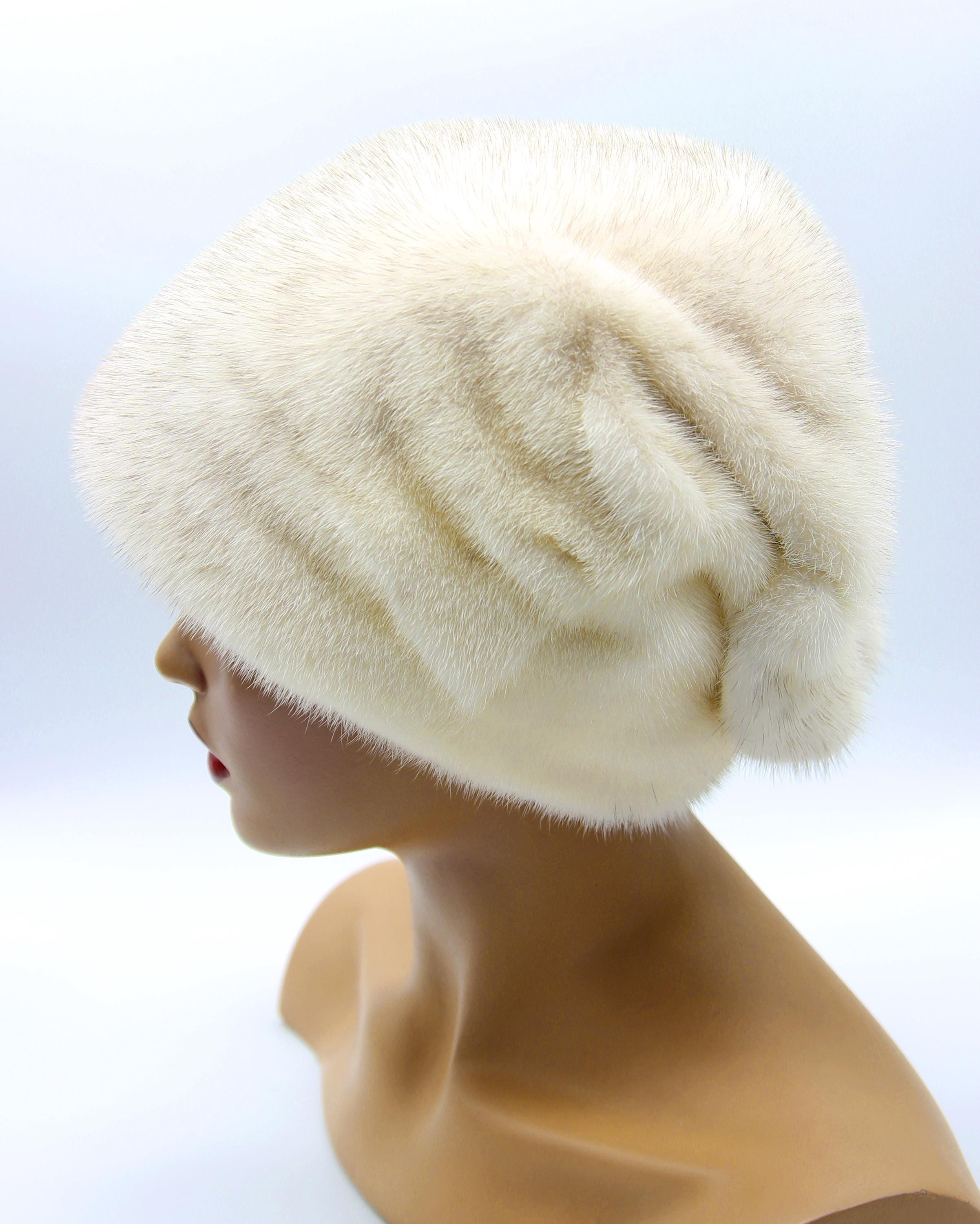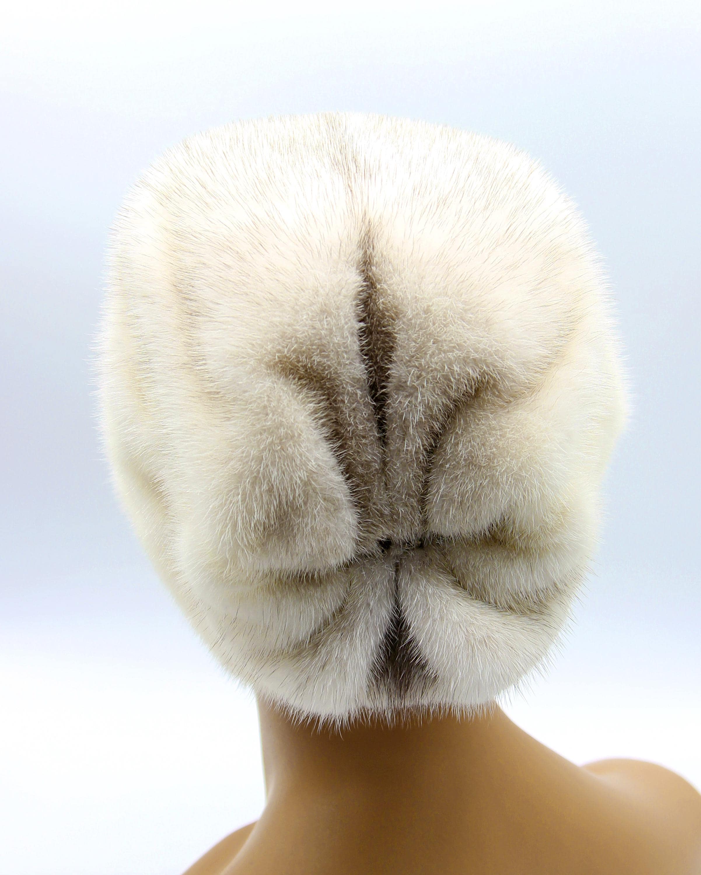 Silver Cross Mink Fur Hat for Women - Handmade Natural Ivory Winter Headwear