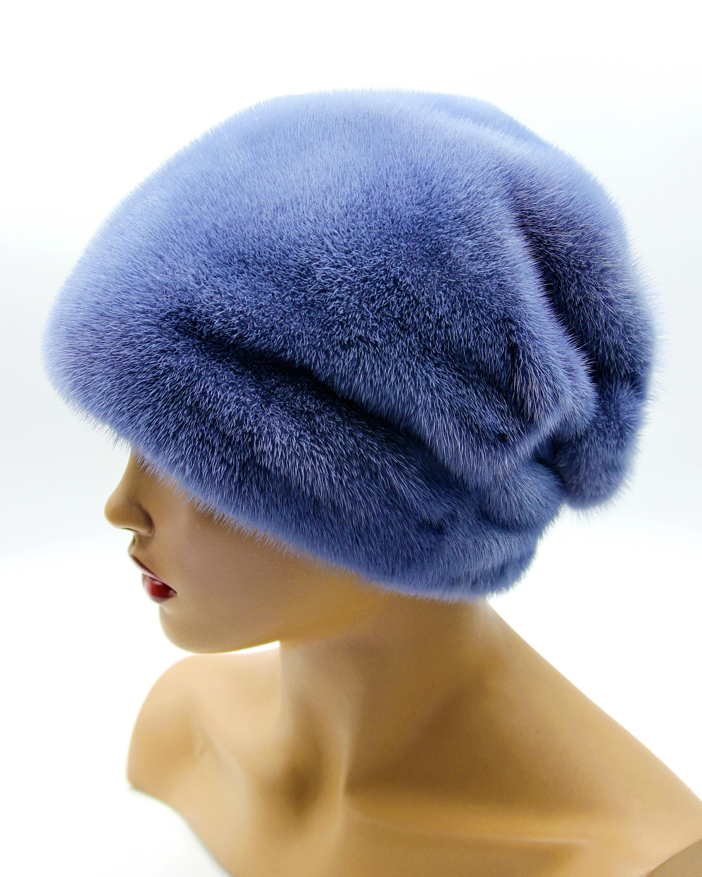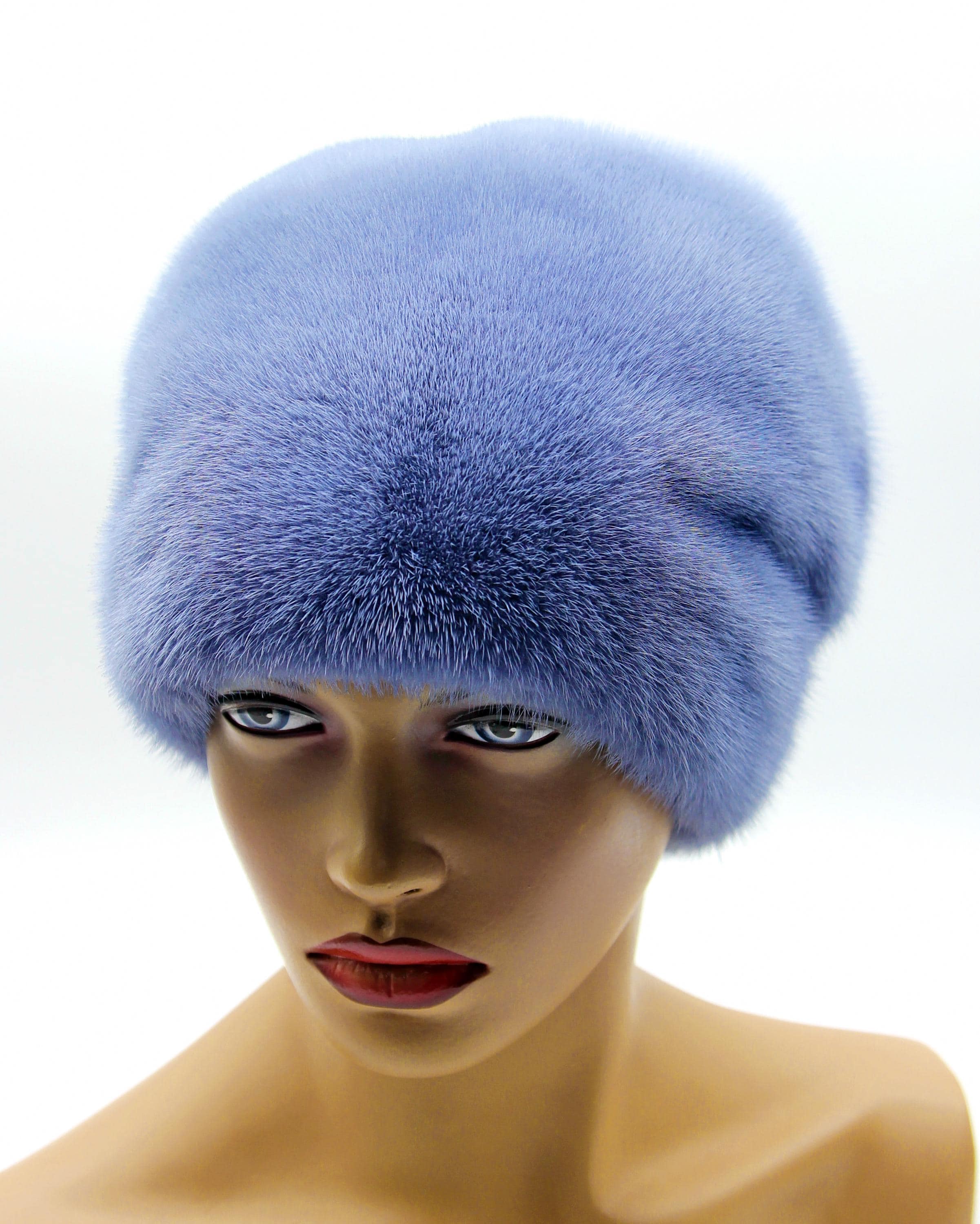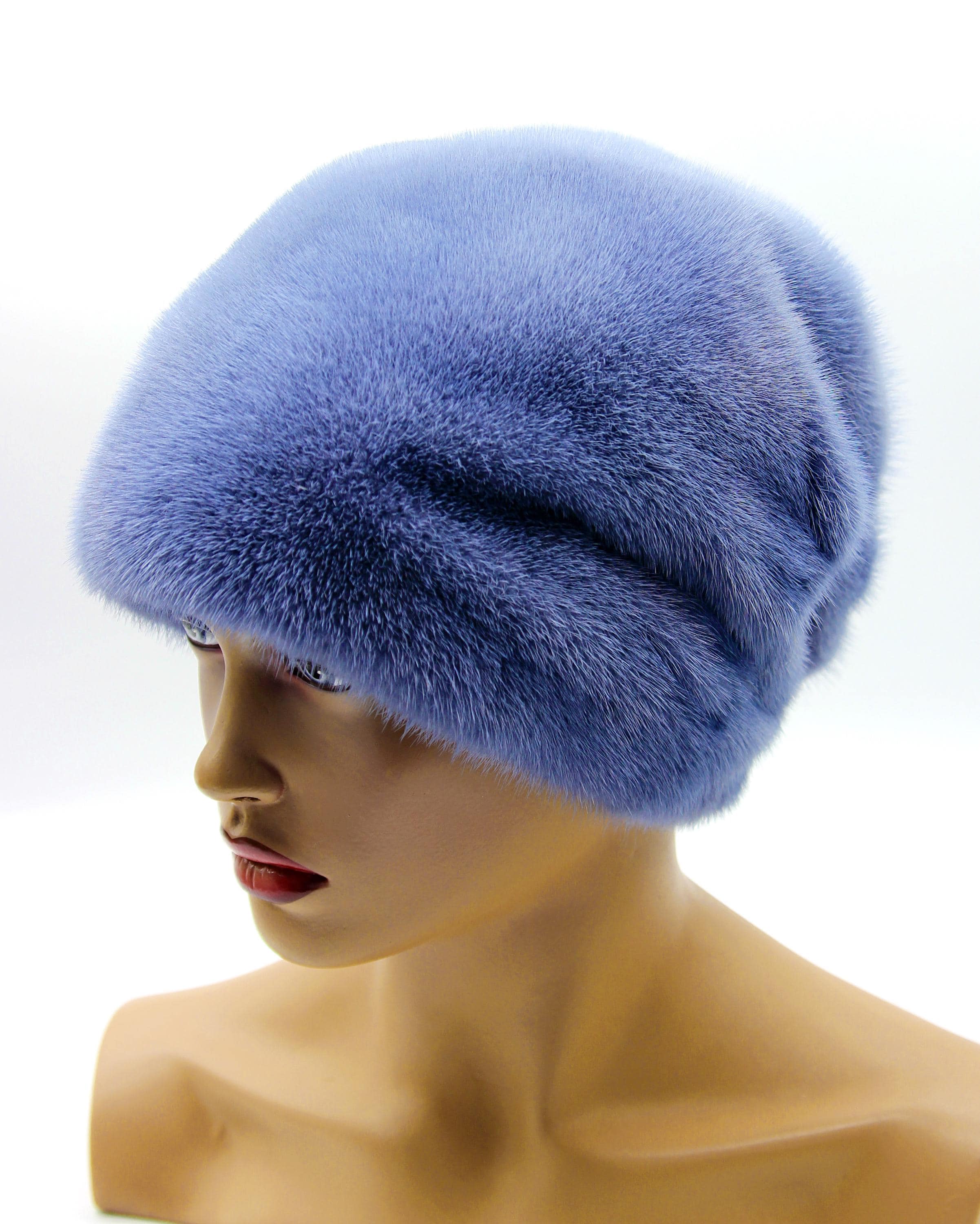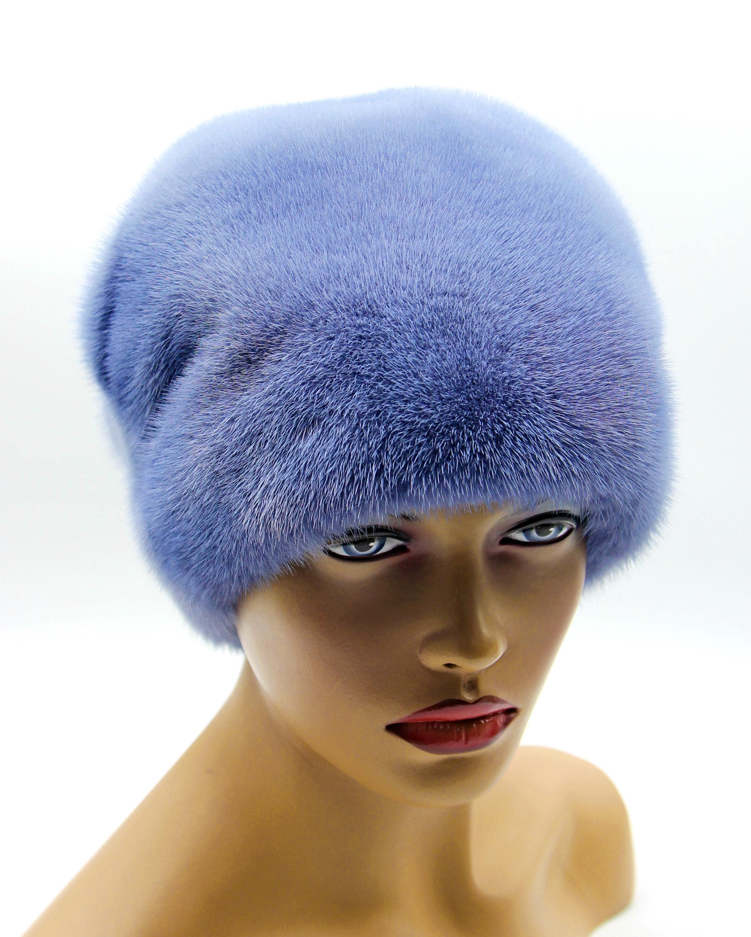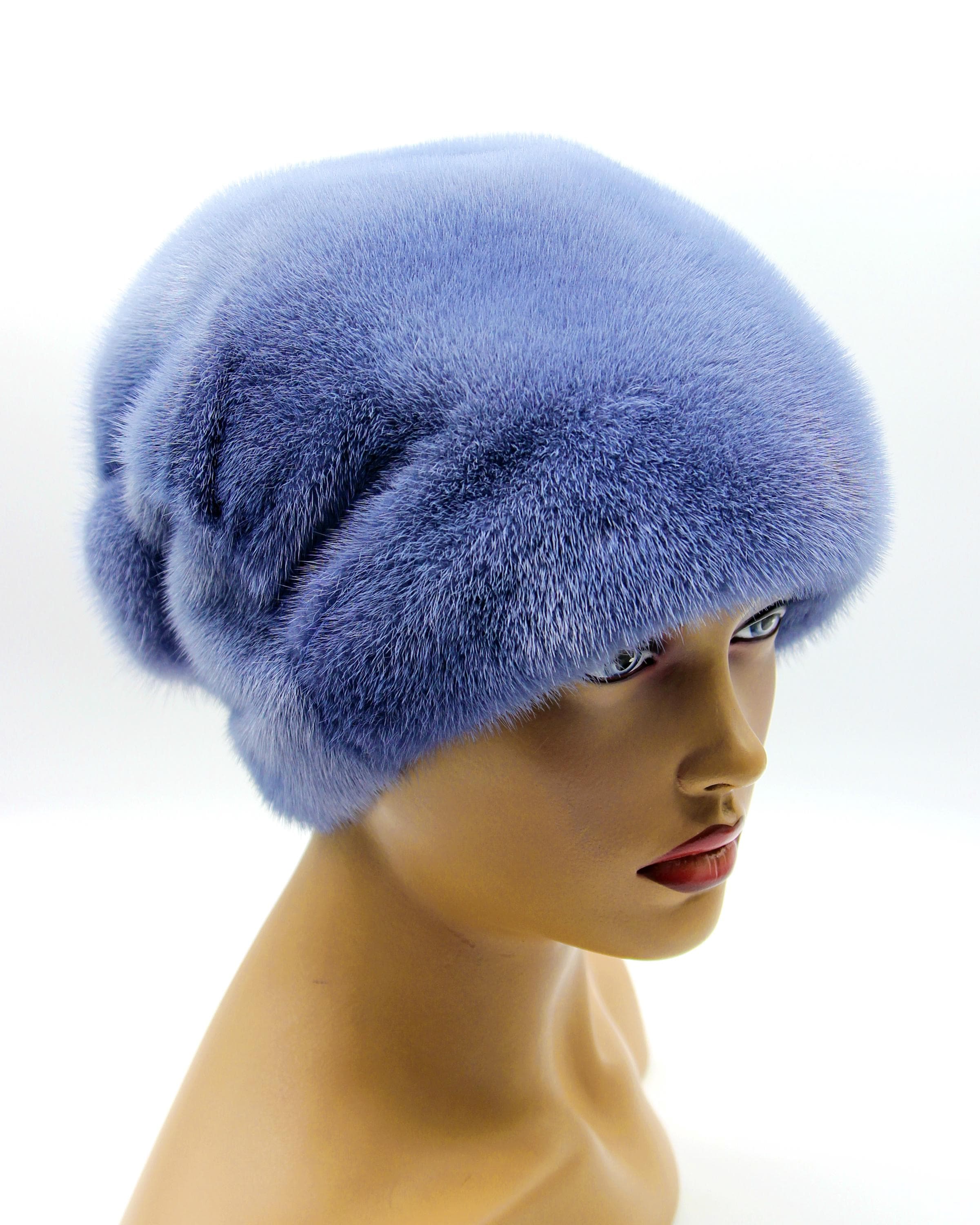 Lavender Purple Mink Fur Hat for Women - Handmade Dyed Winter Headwear