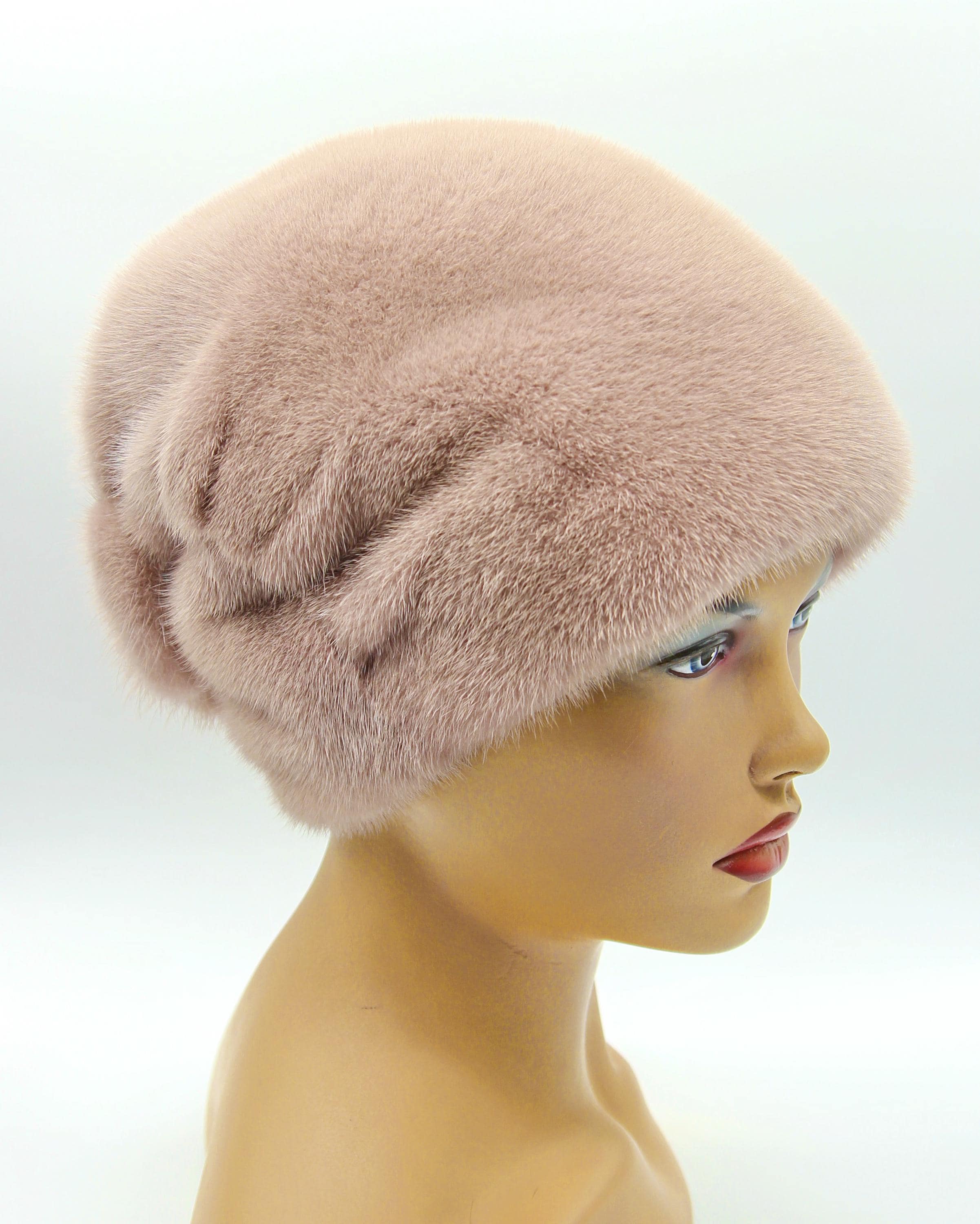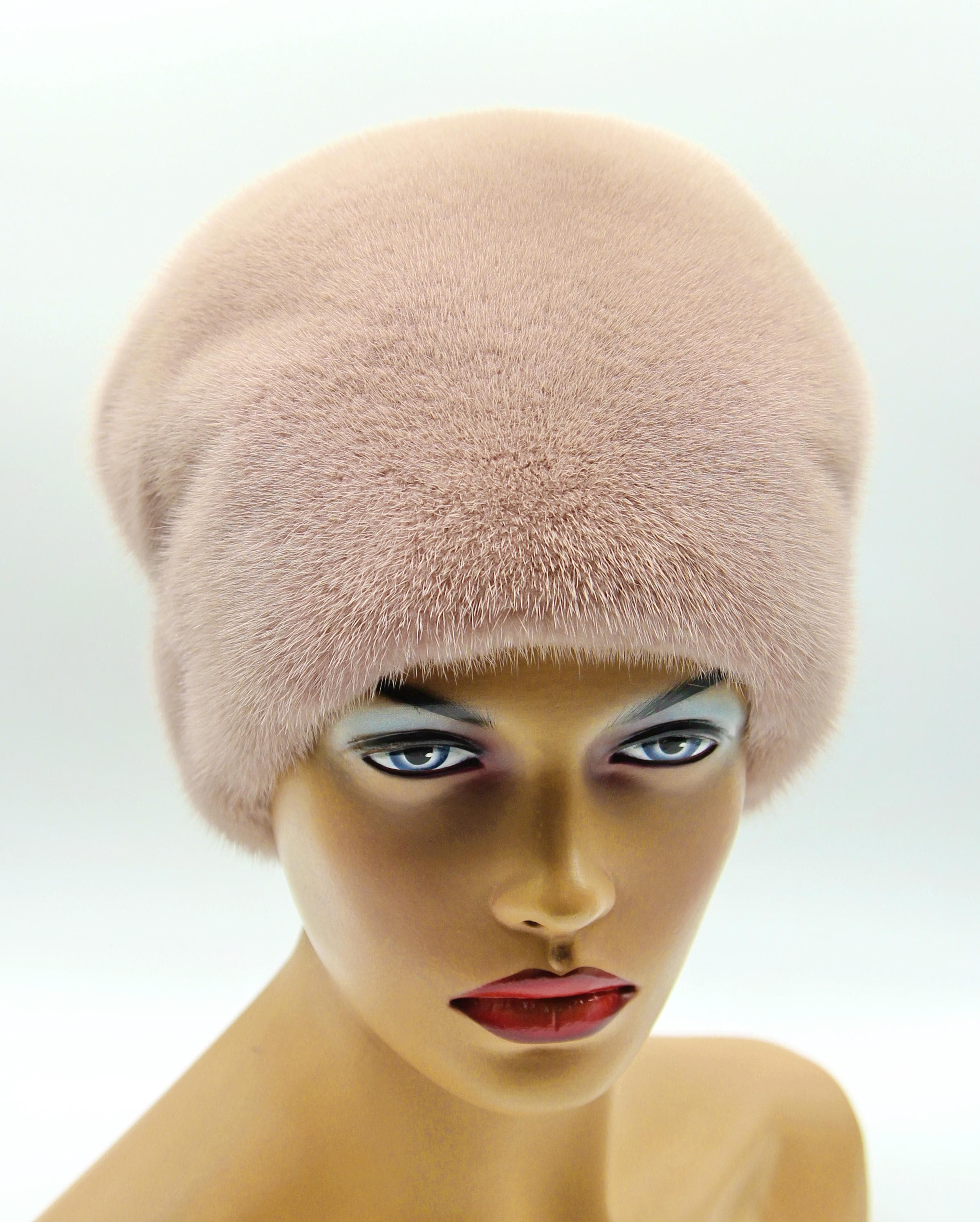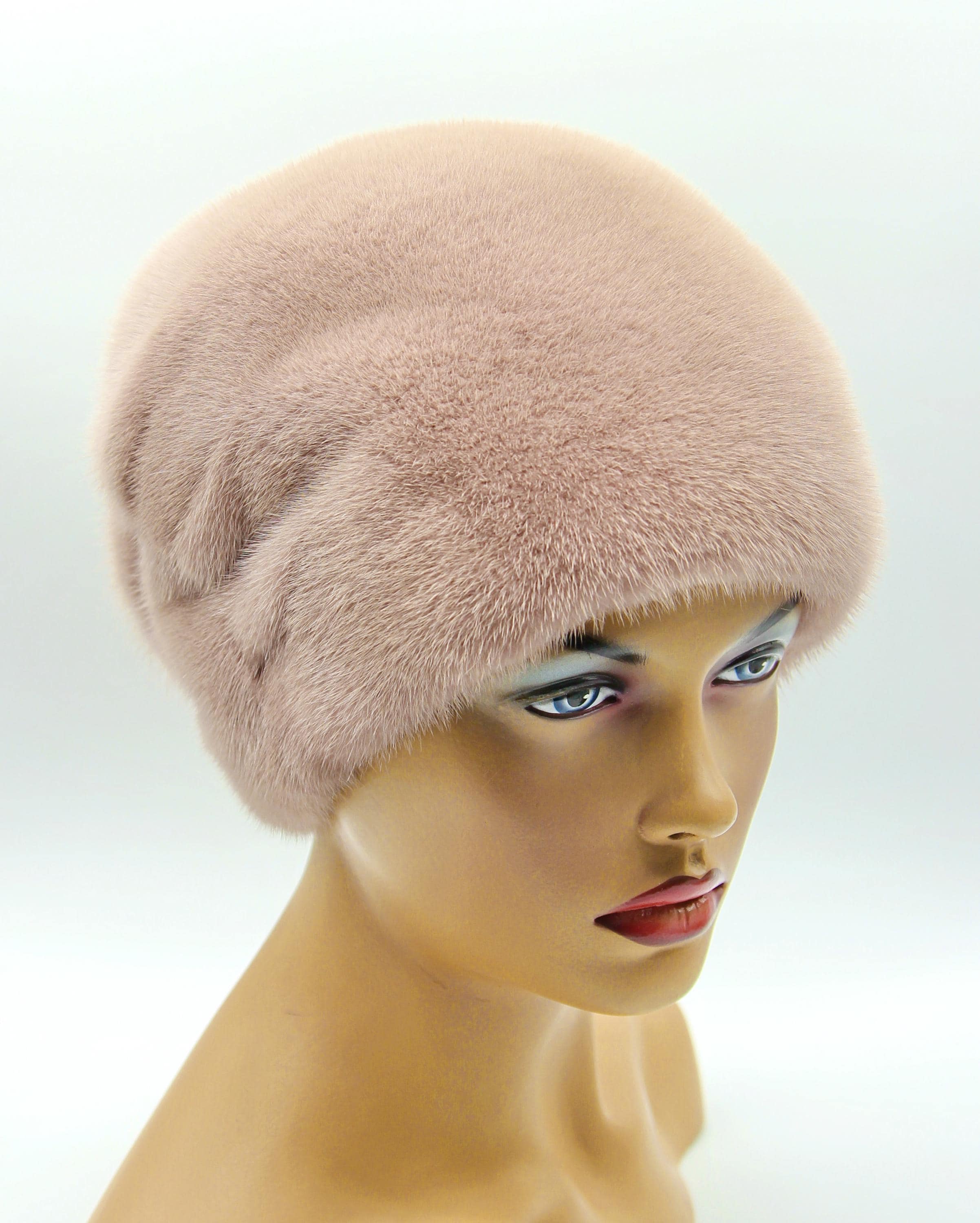 Powder Pink Mink Fur Hat for Women - Handmade Dyed Winter Headwear