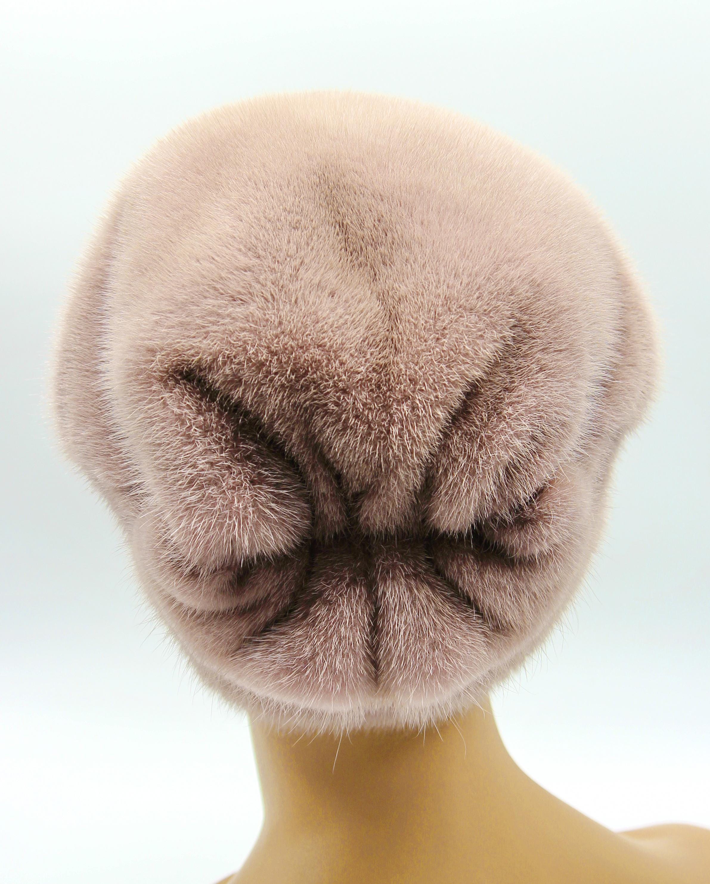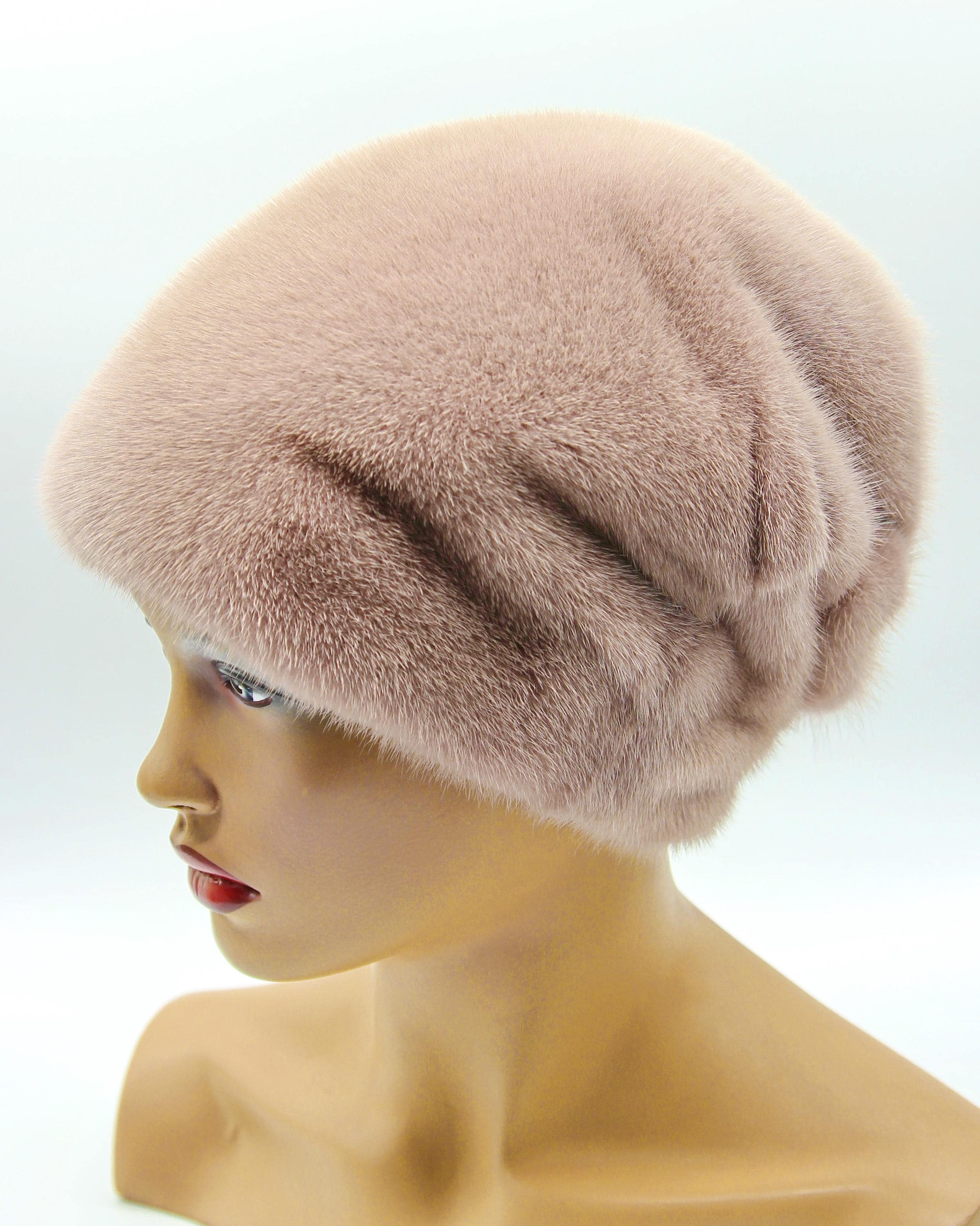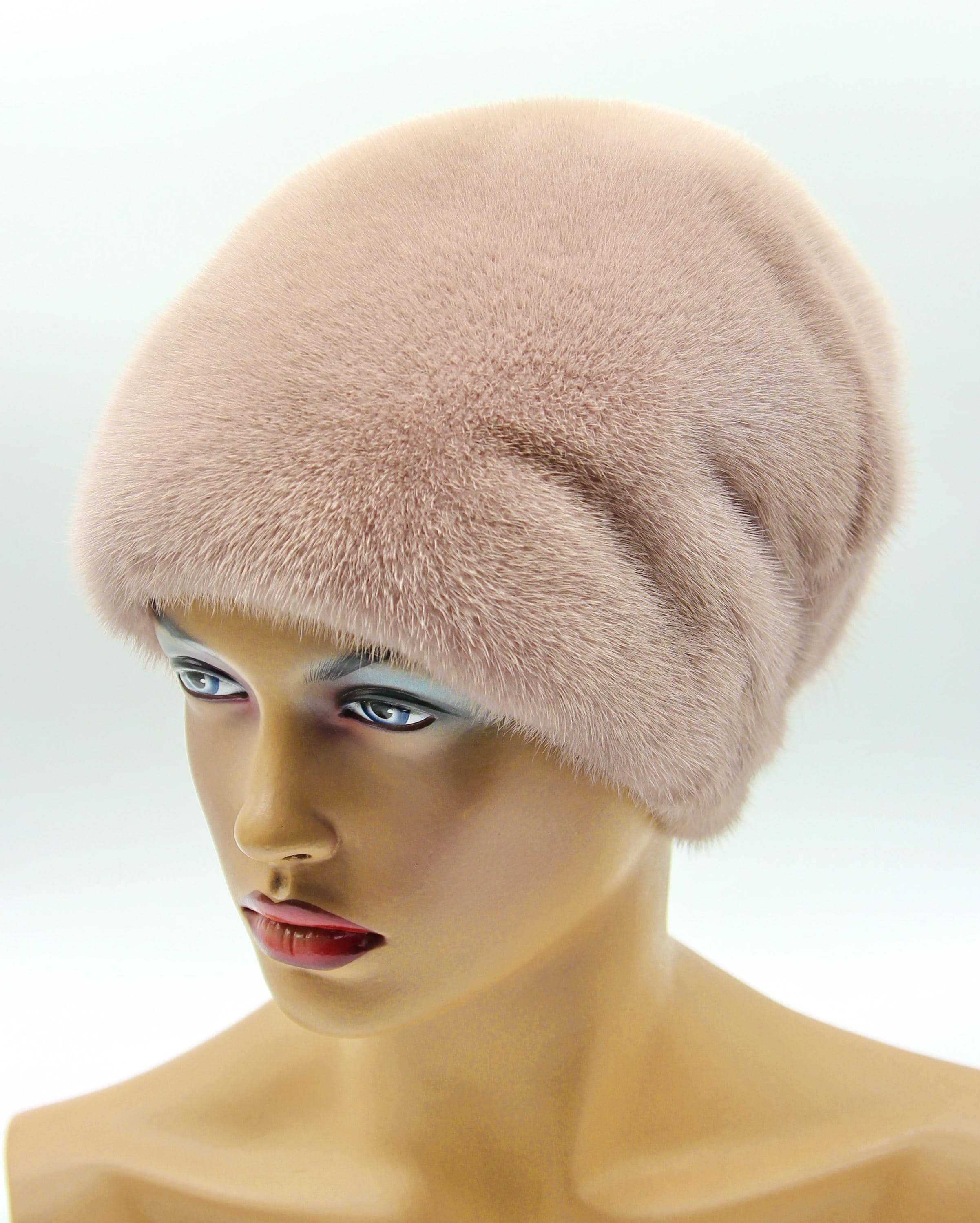 Powder Pink Mink Fur Hat for Women - Handmade Dyed Winter Headwear