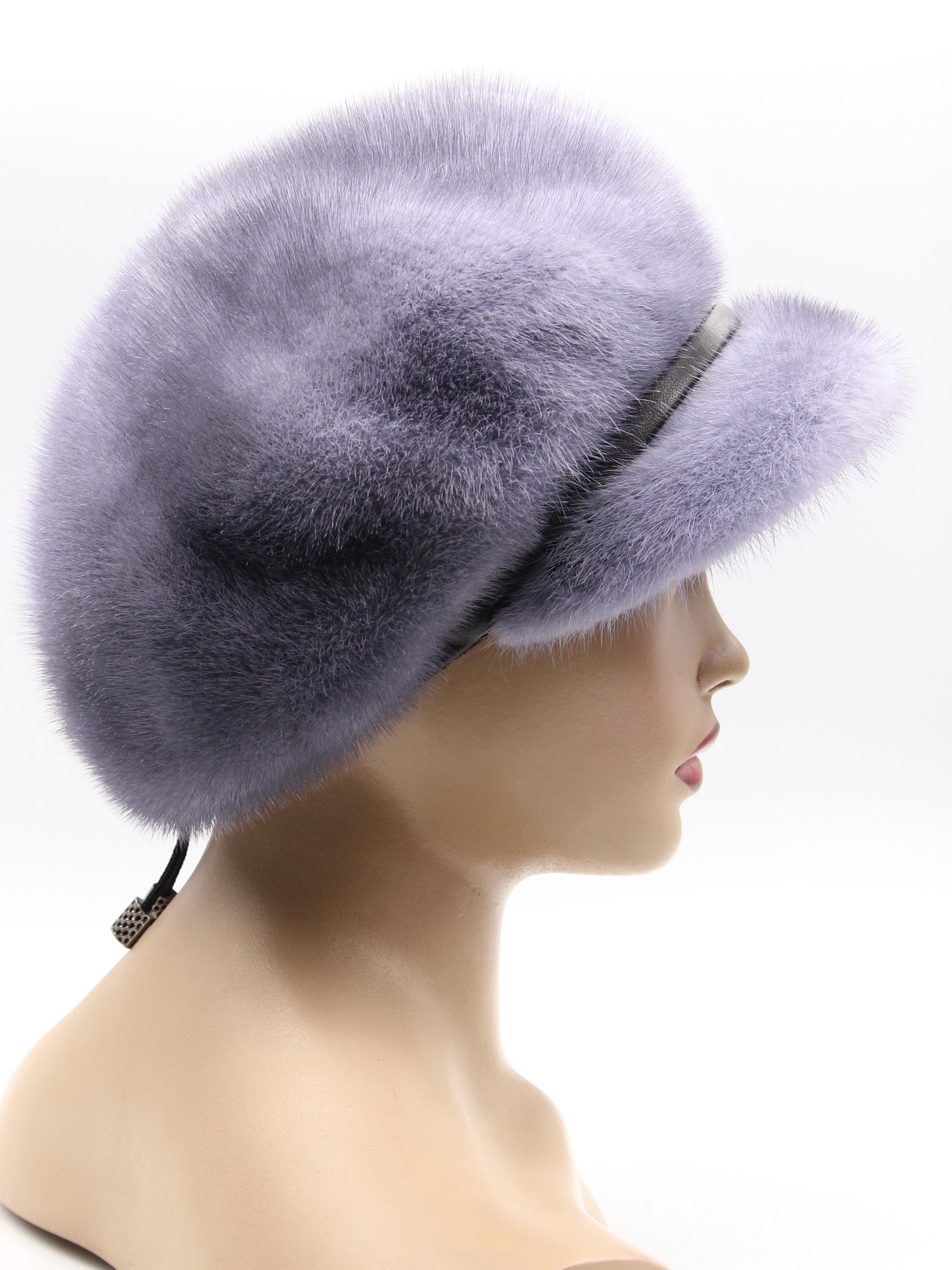 Mink fur hat newsboy lavender happened because daughter asked "why everything boring colors dad?" Fair question. Searched suppliers finding factory offering professional lavender dyeing. Customers loved it apparently.