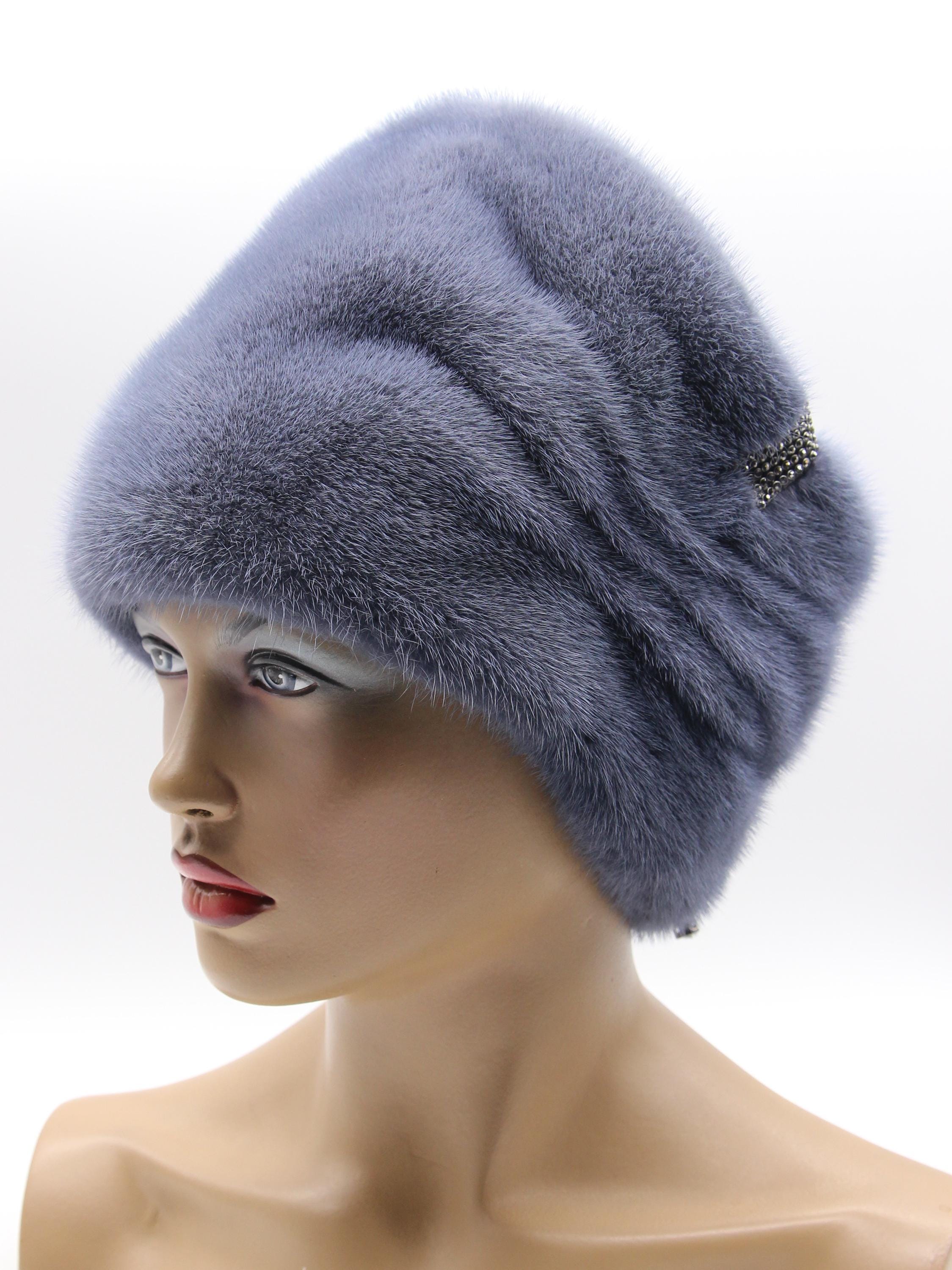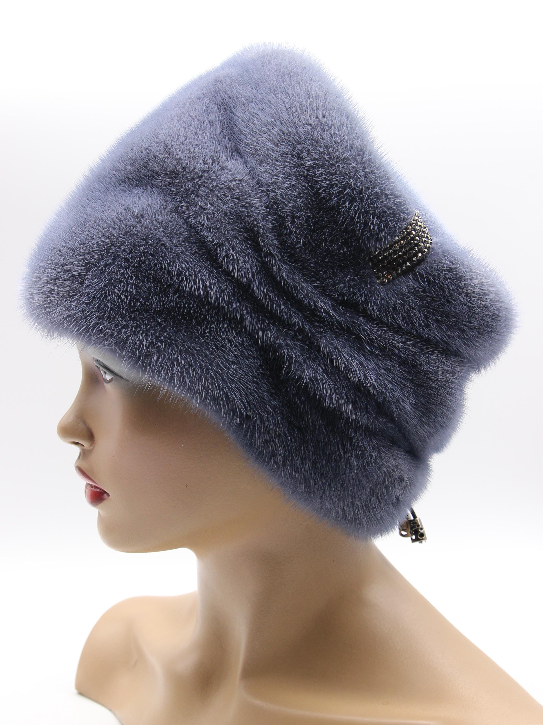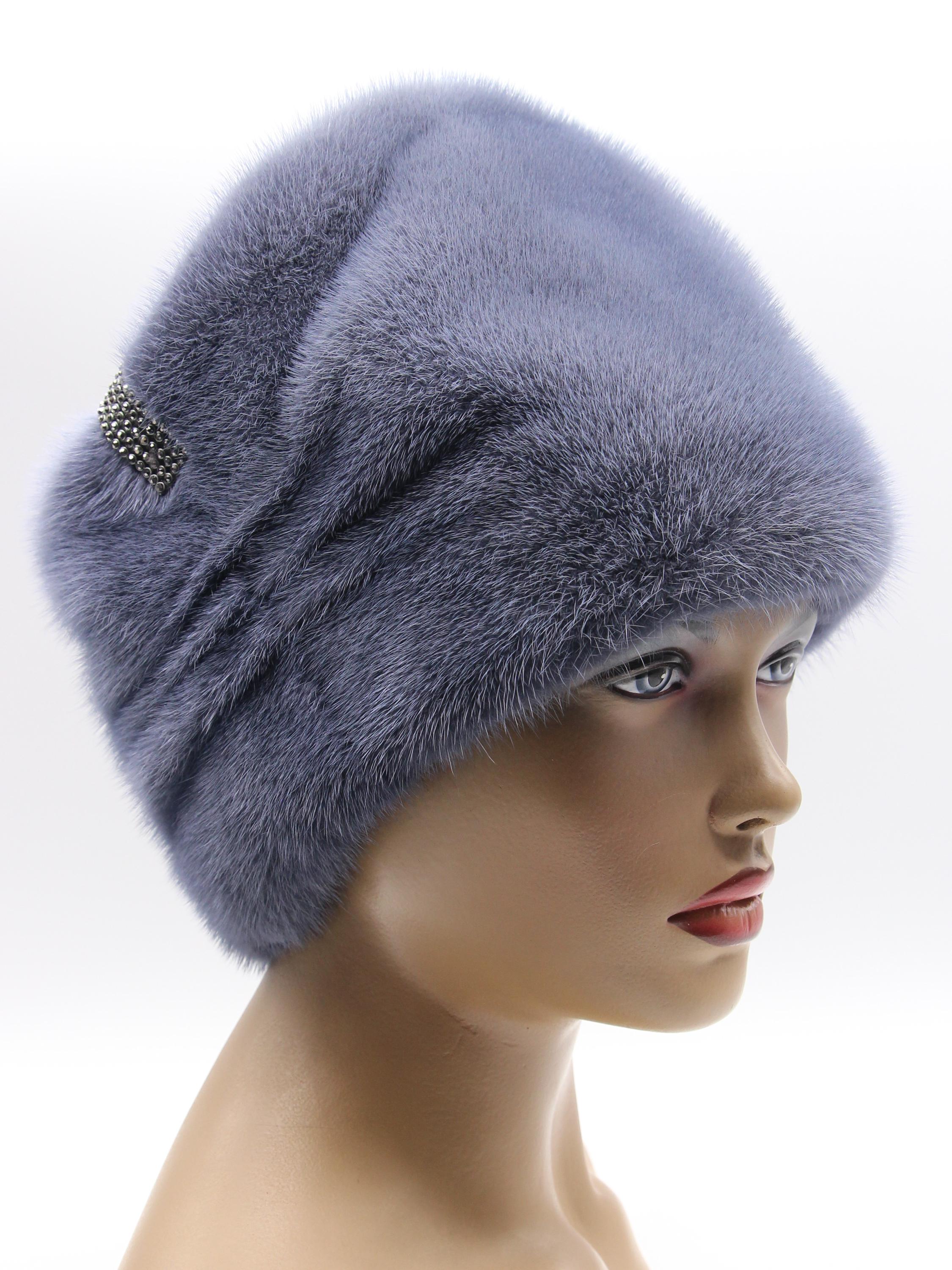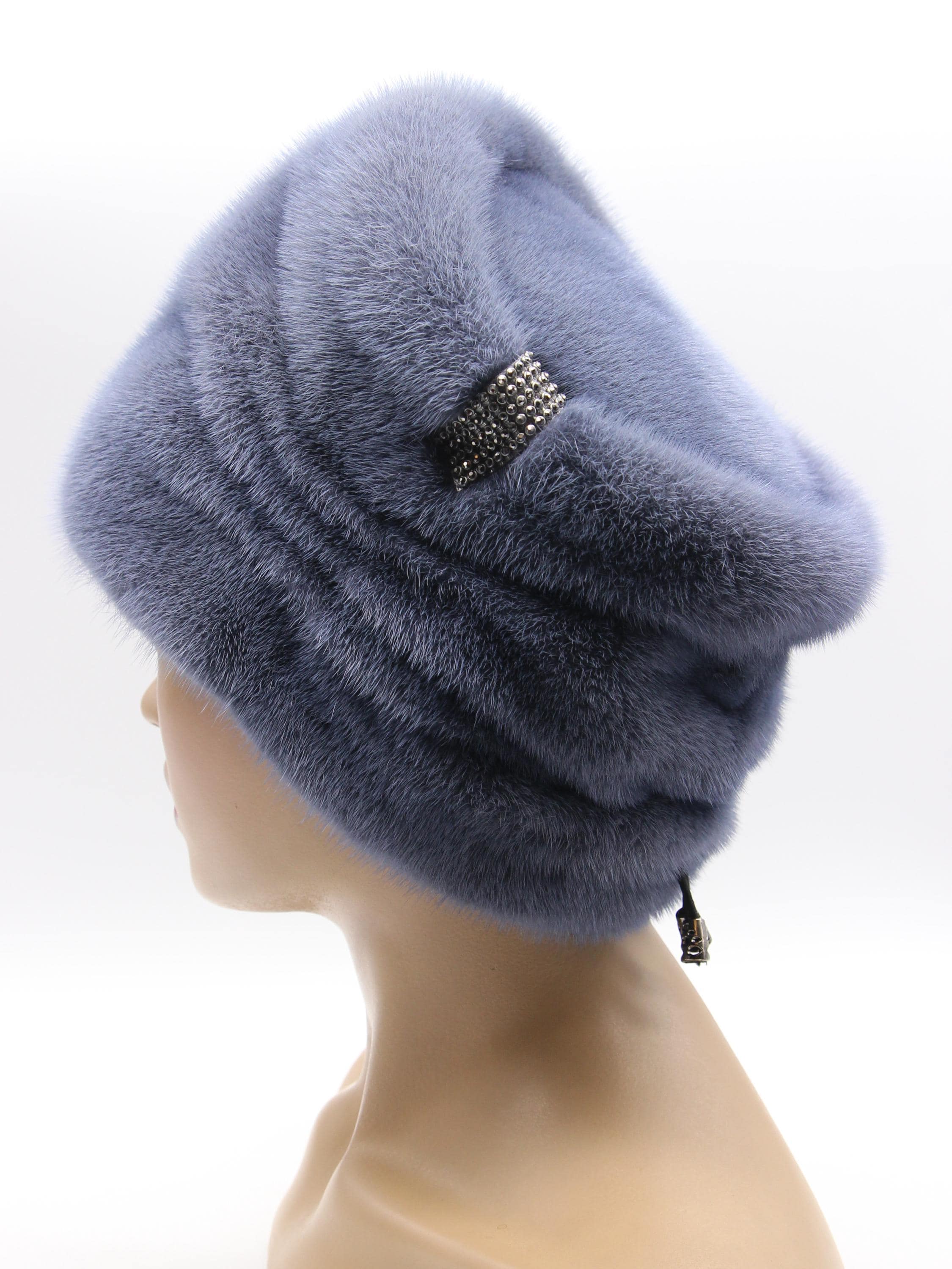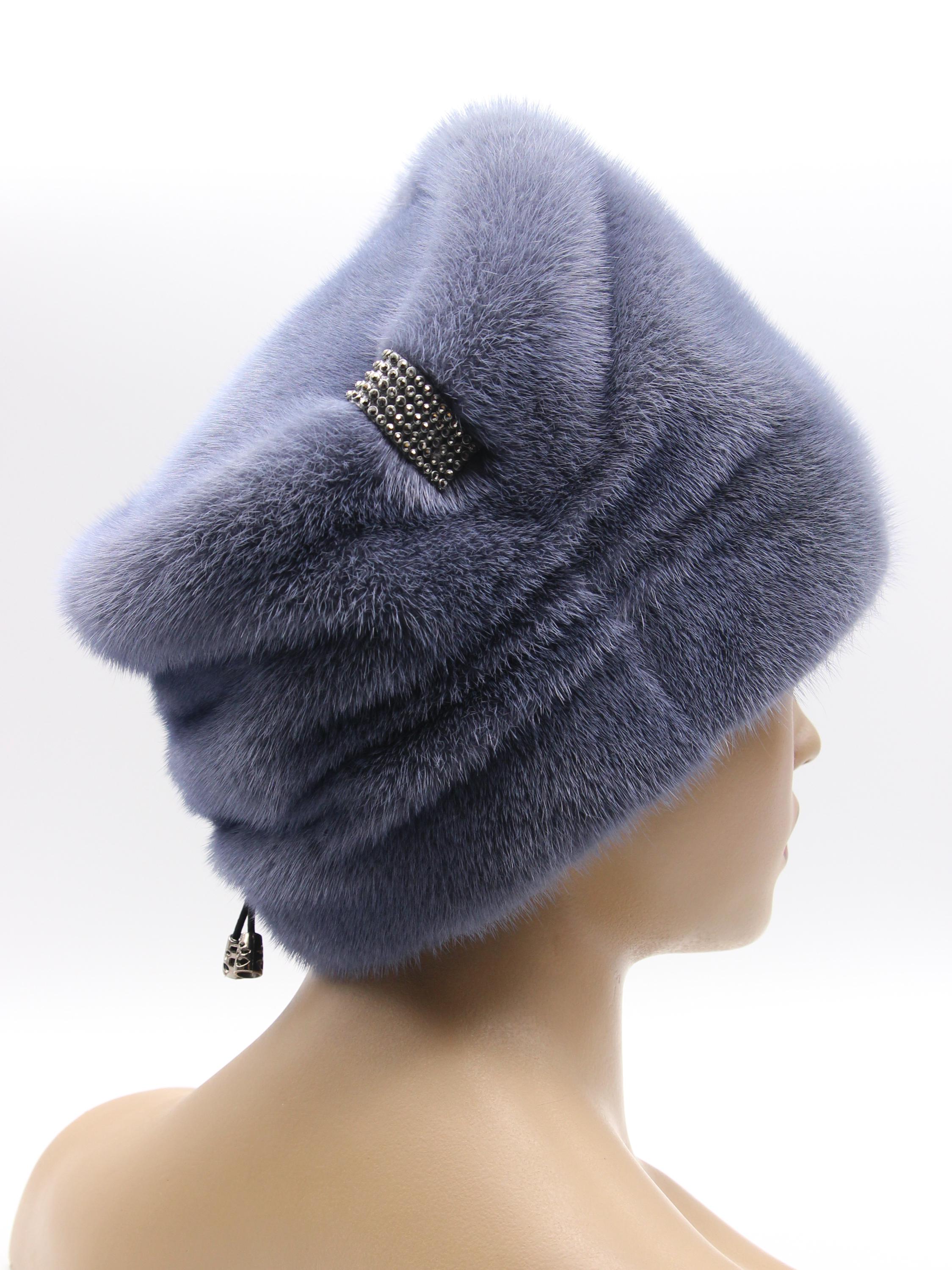 Lavender Purple Mink Fur Hat Boyar Style Pleated Crown for Women - Handmade Dyed