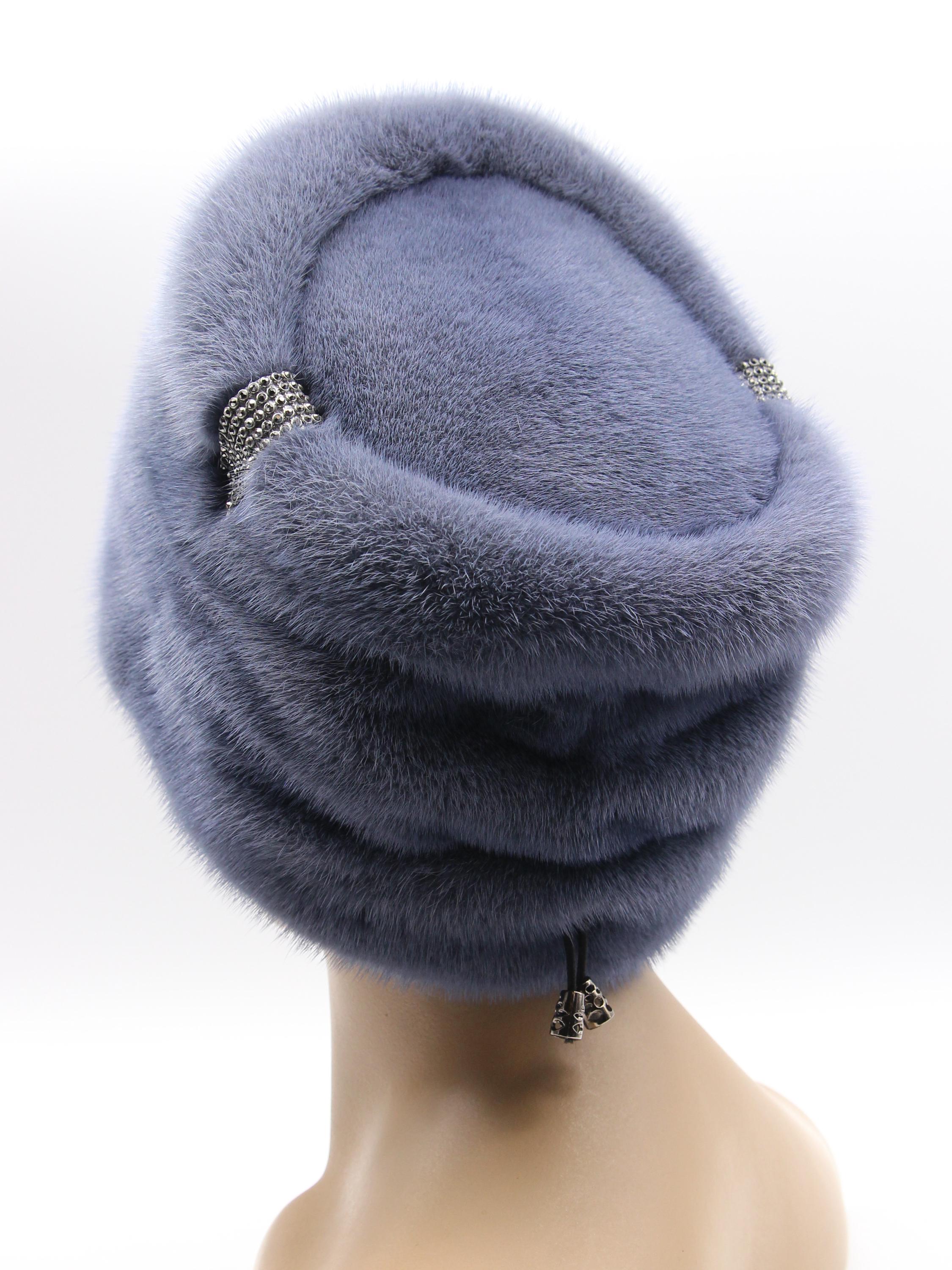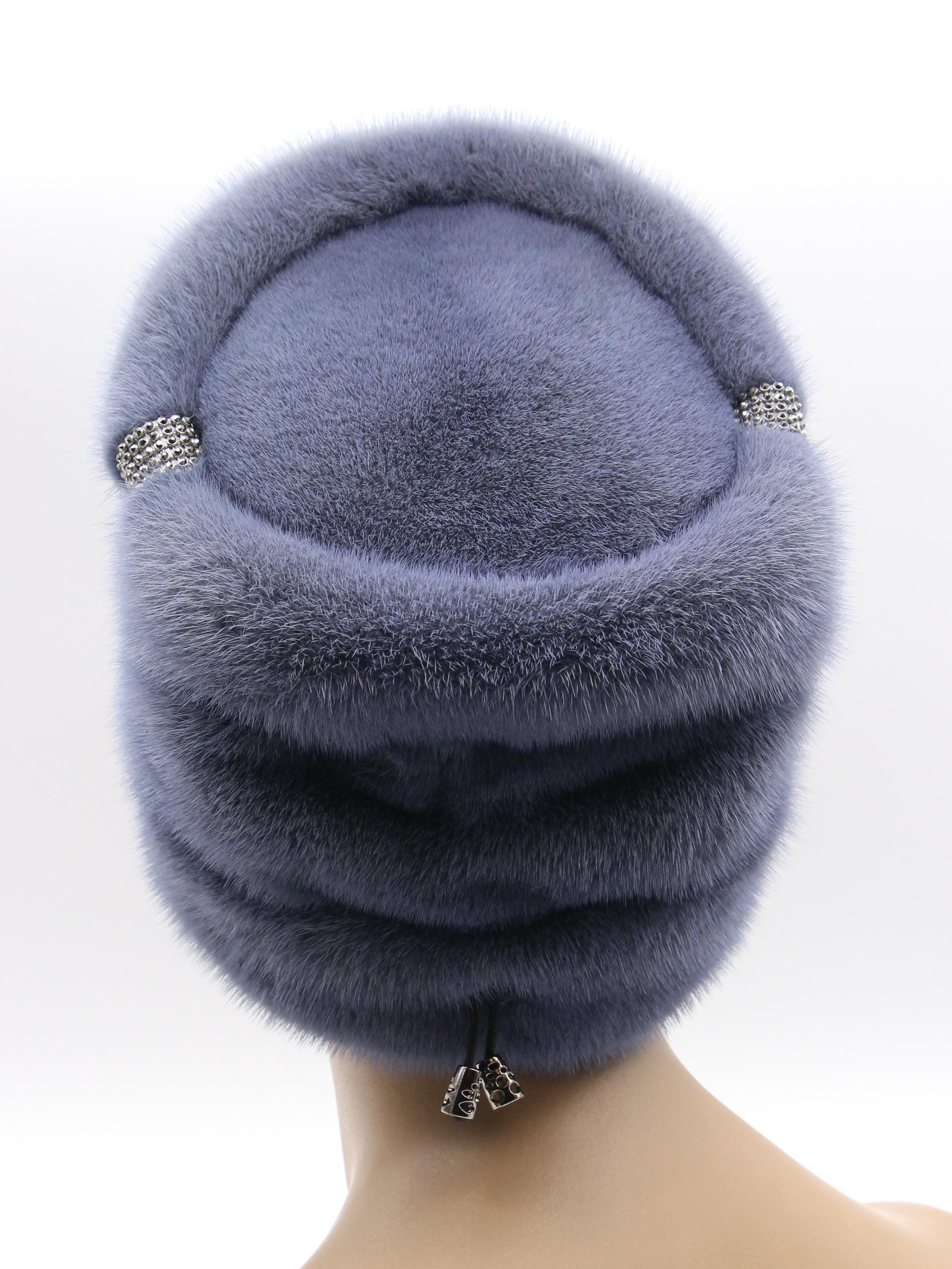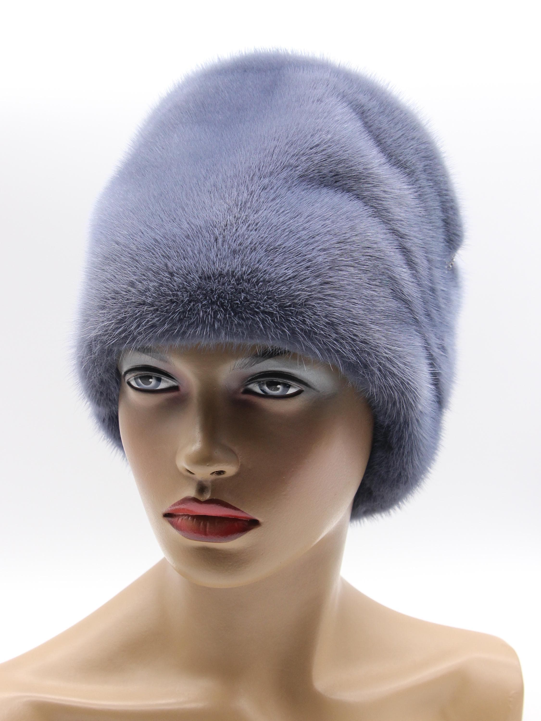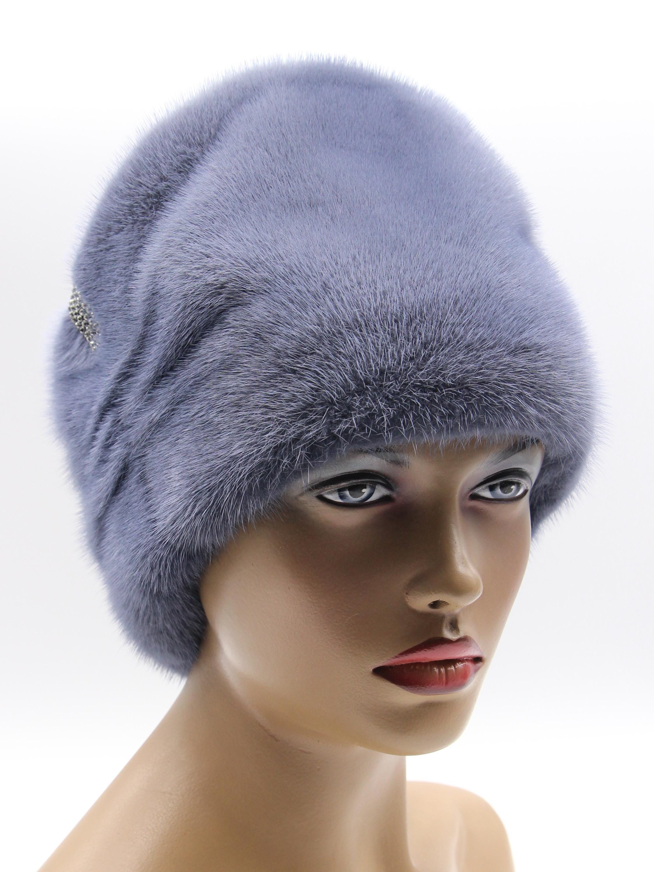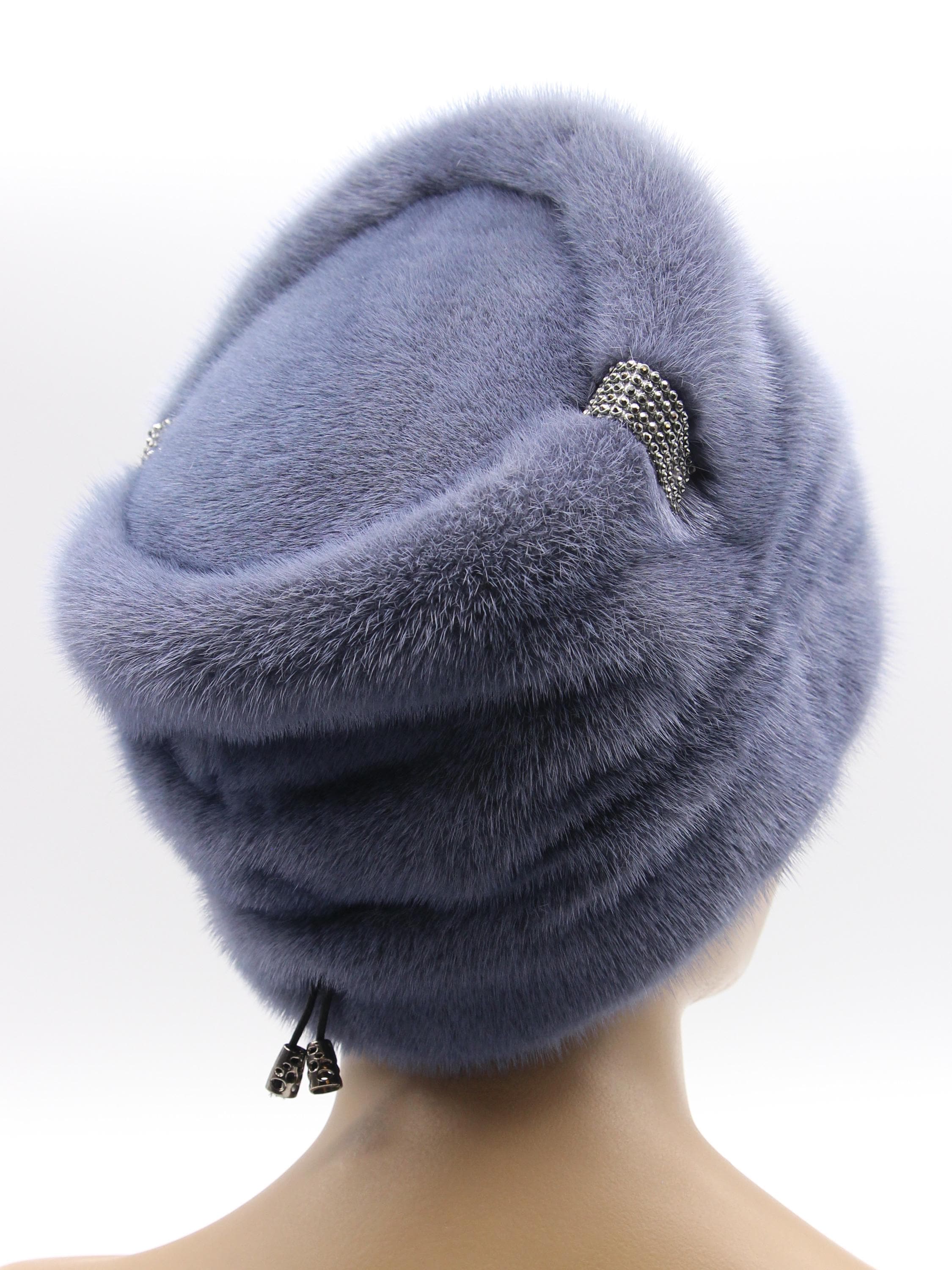 Lavender Purple Mink Fur Hat Boyar Style Pleated Crown for Women - Handmade Dyed