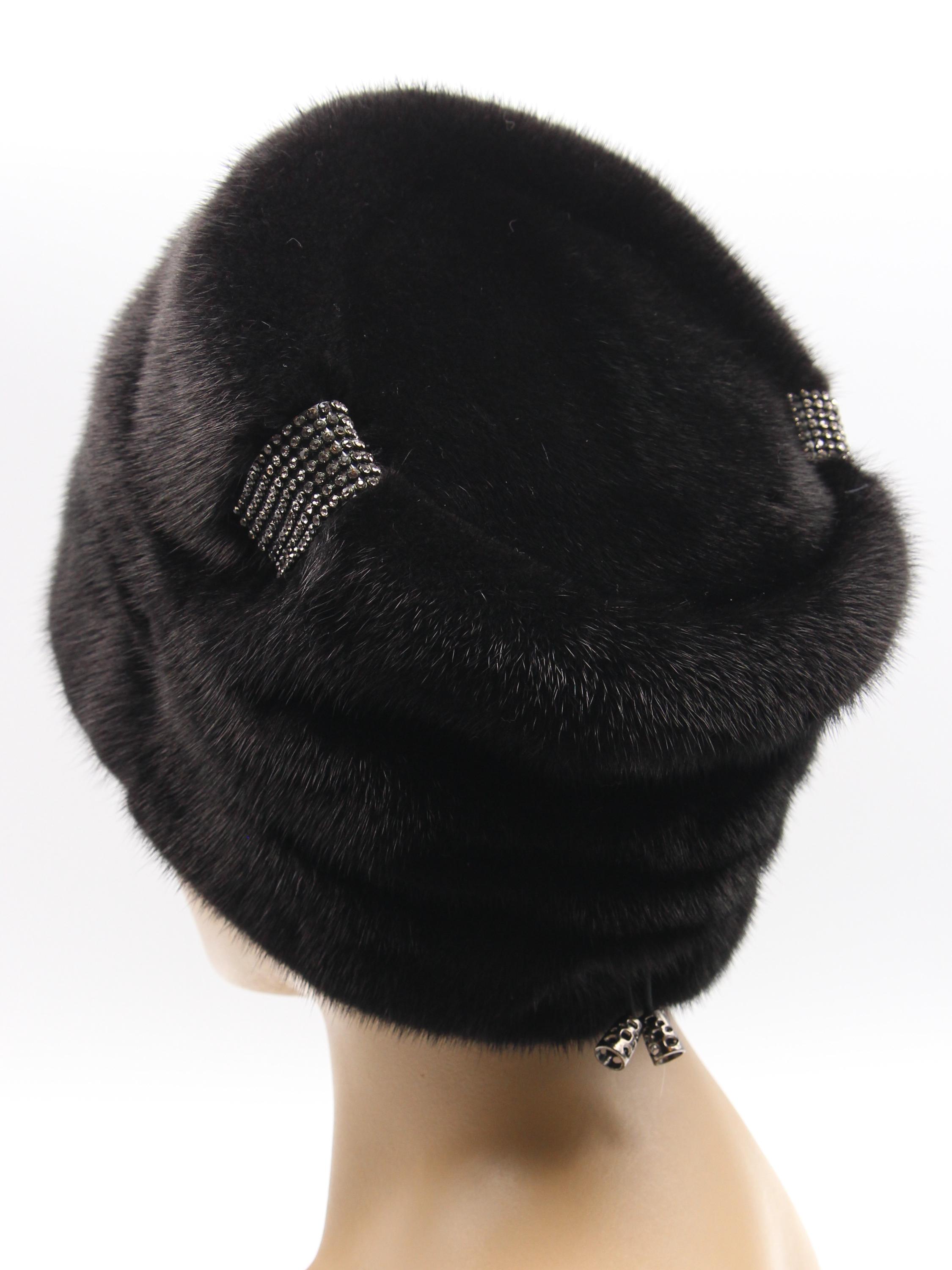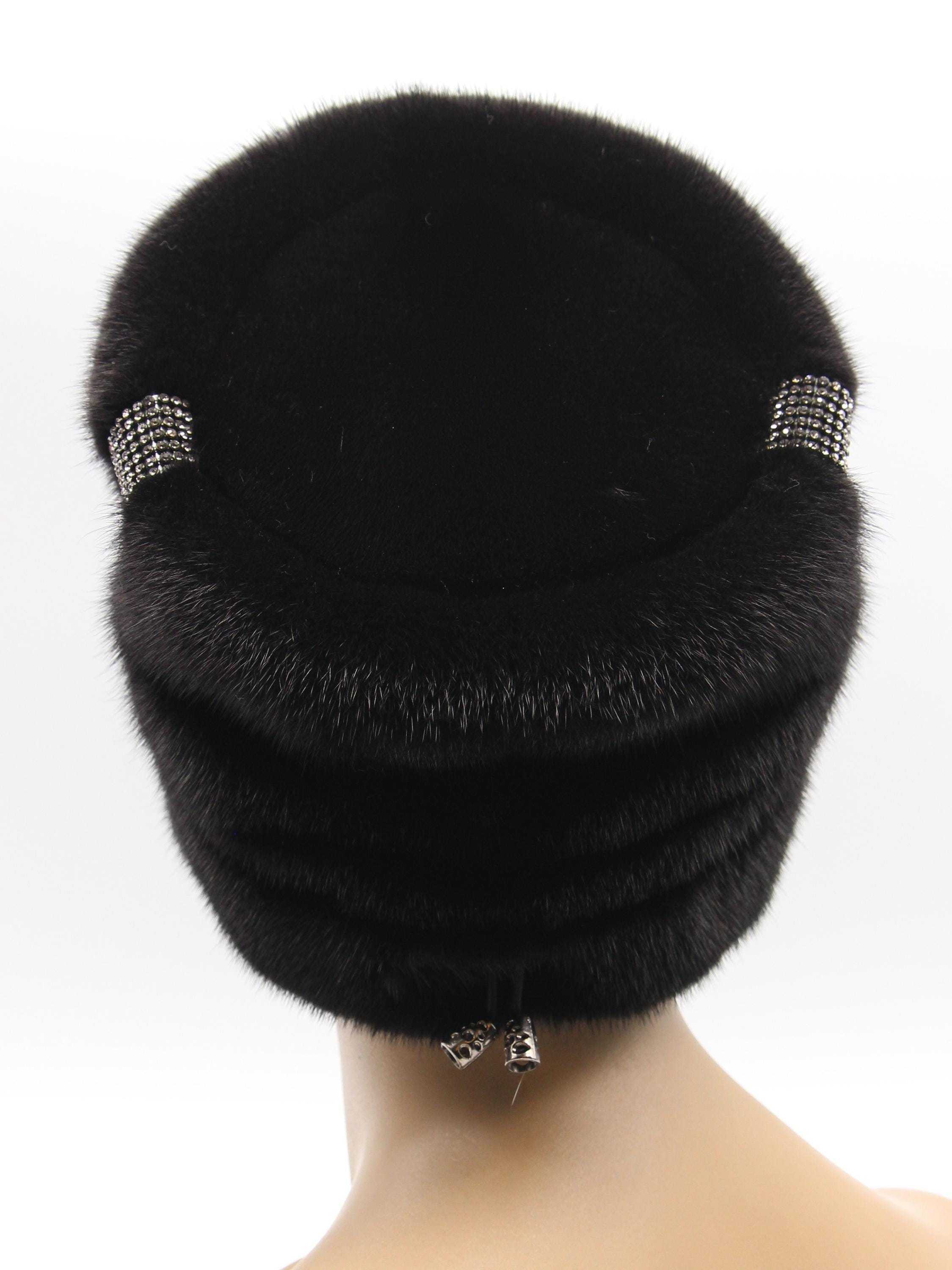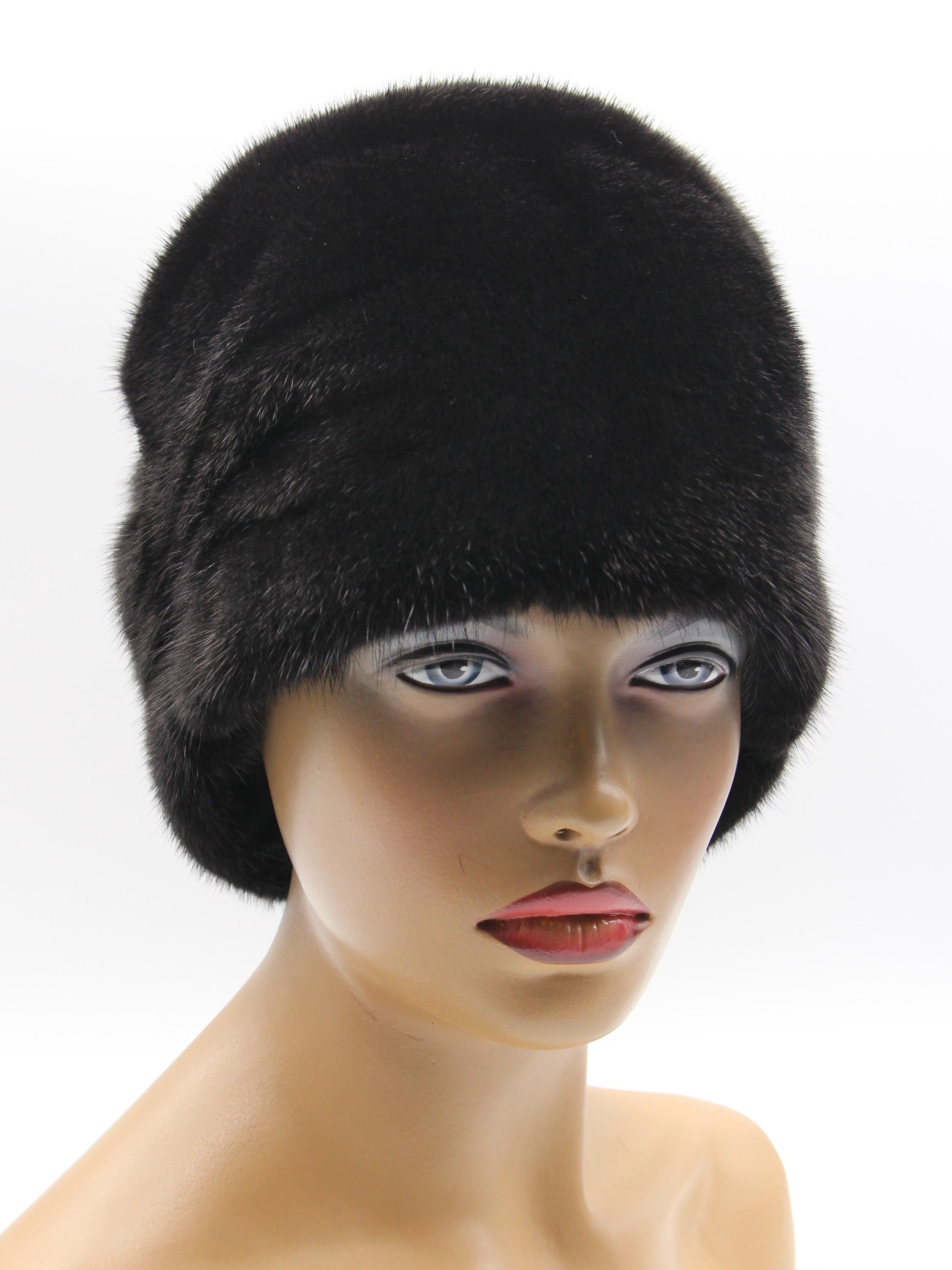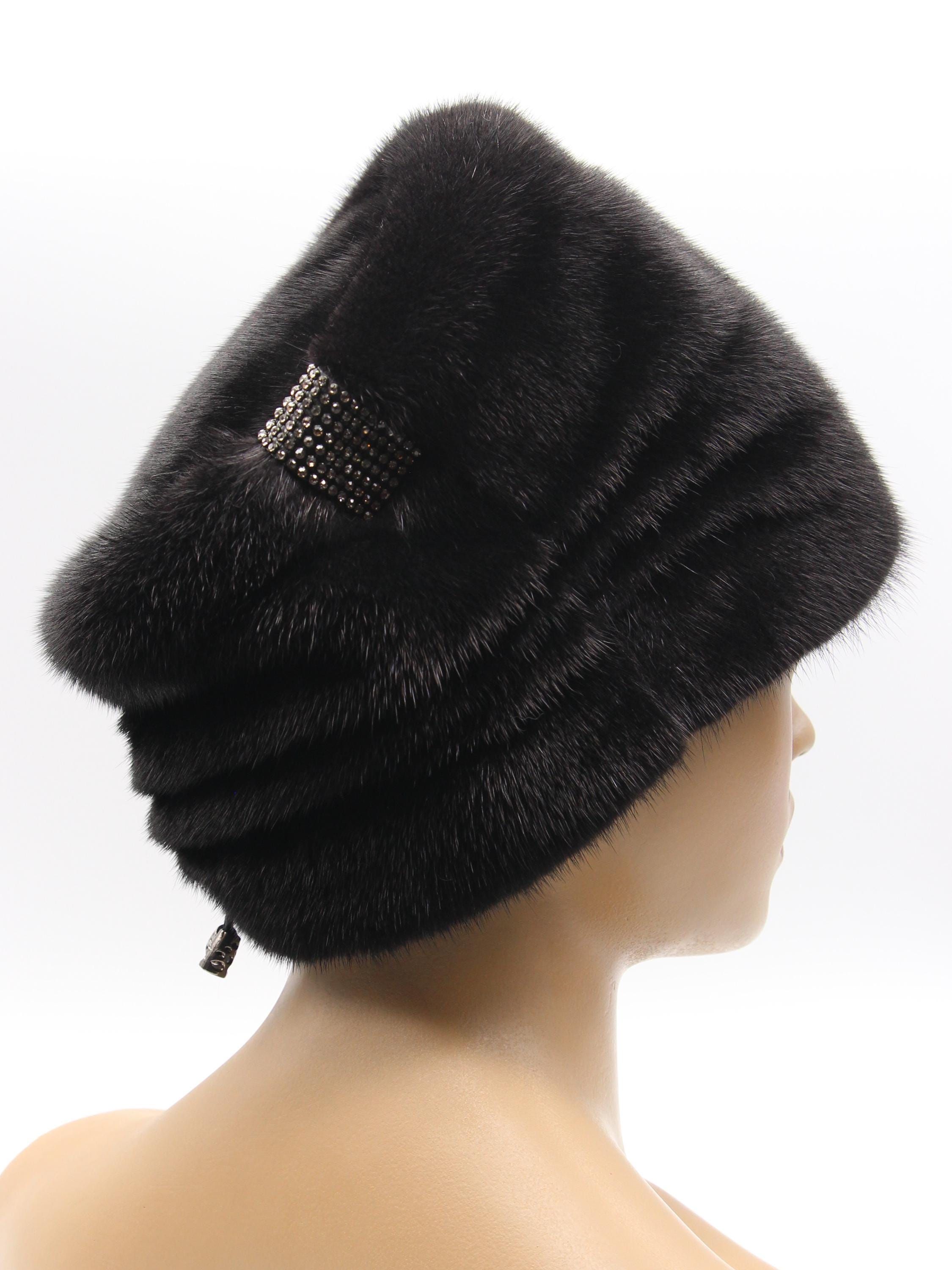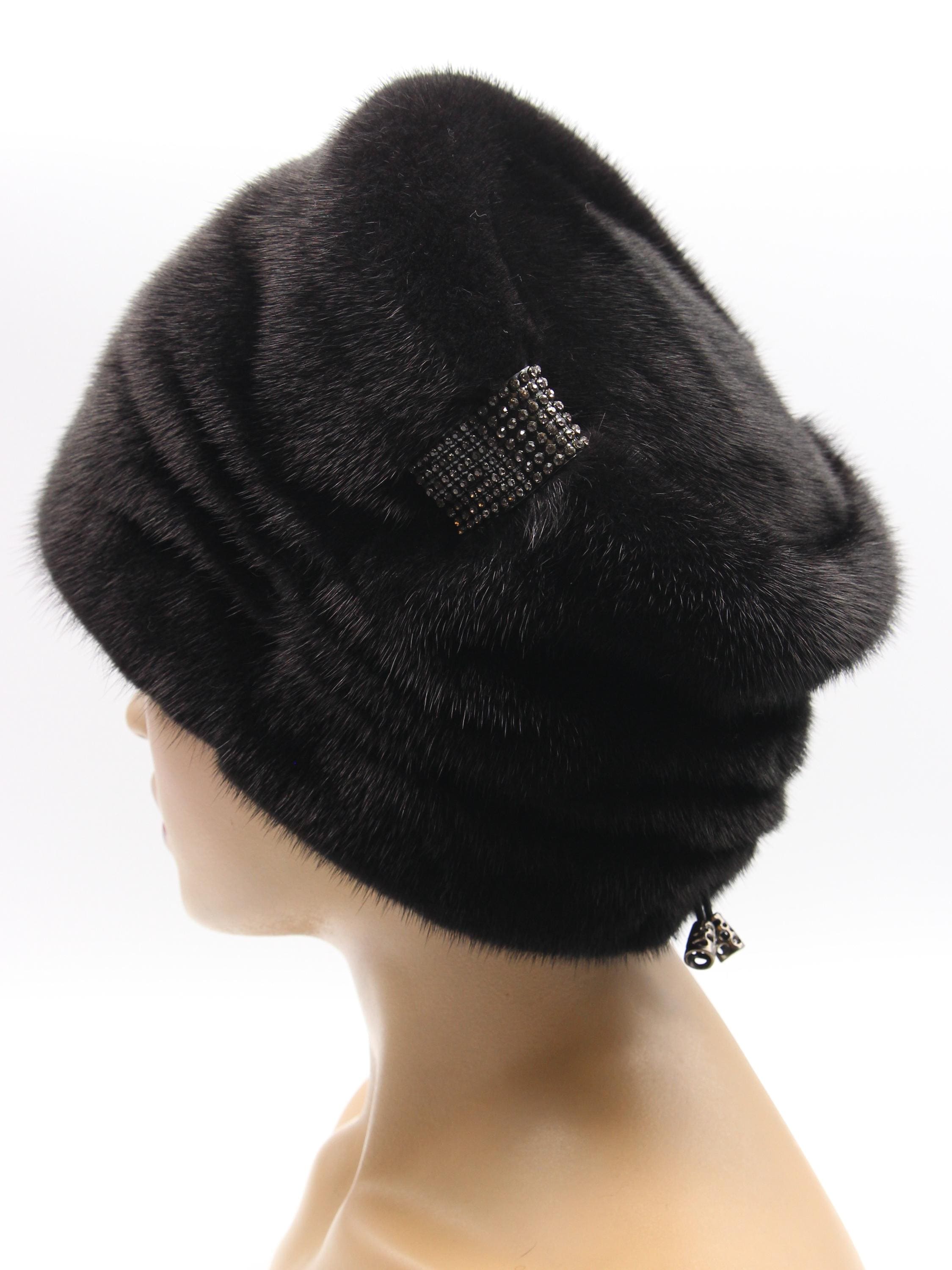 Black Mink Fur Hat Boyar Style Pleated Crown for Women - Handmade Natural Winter