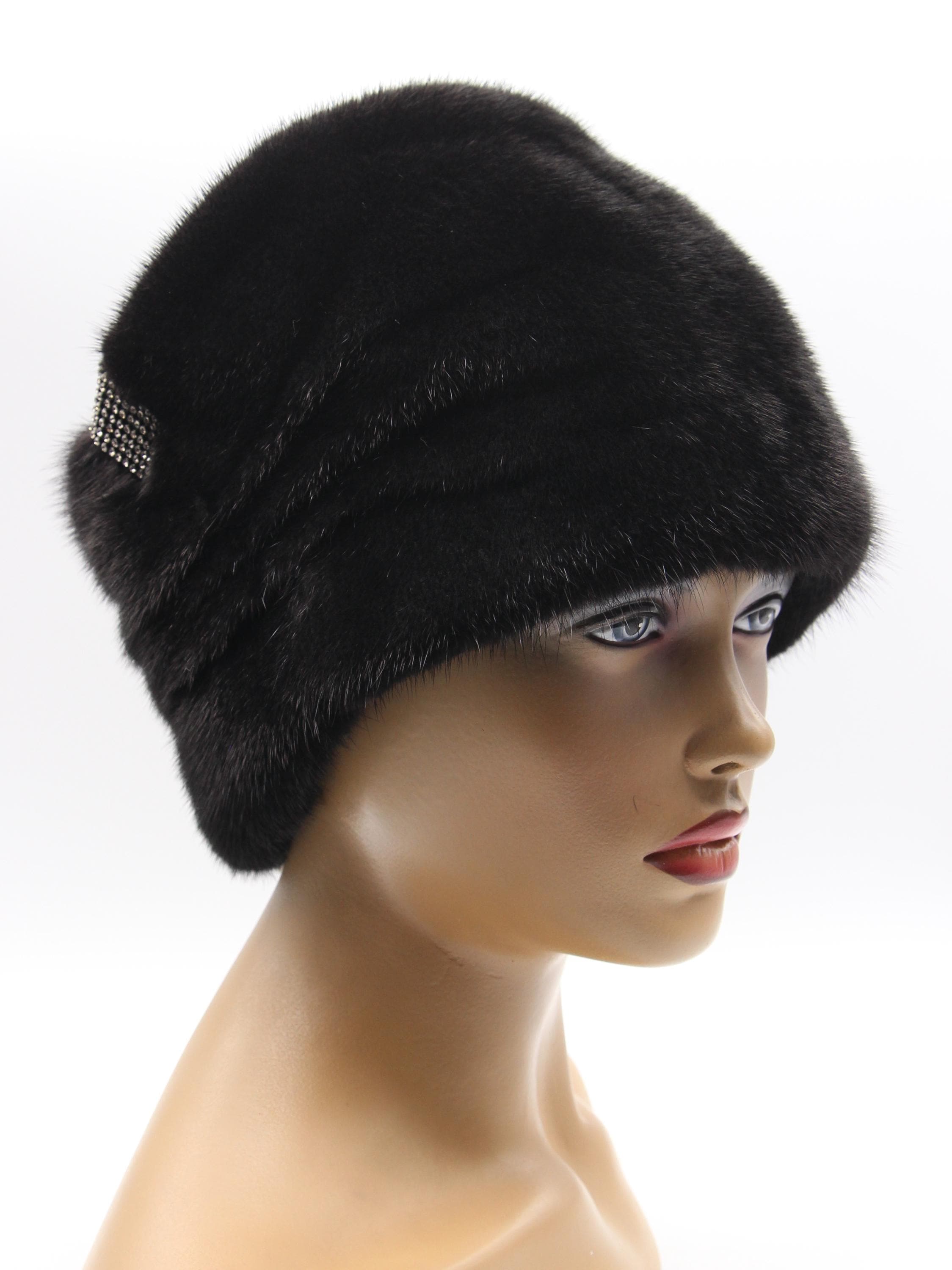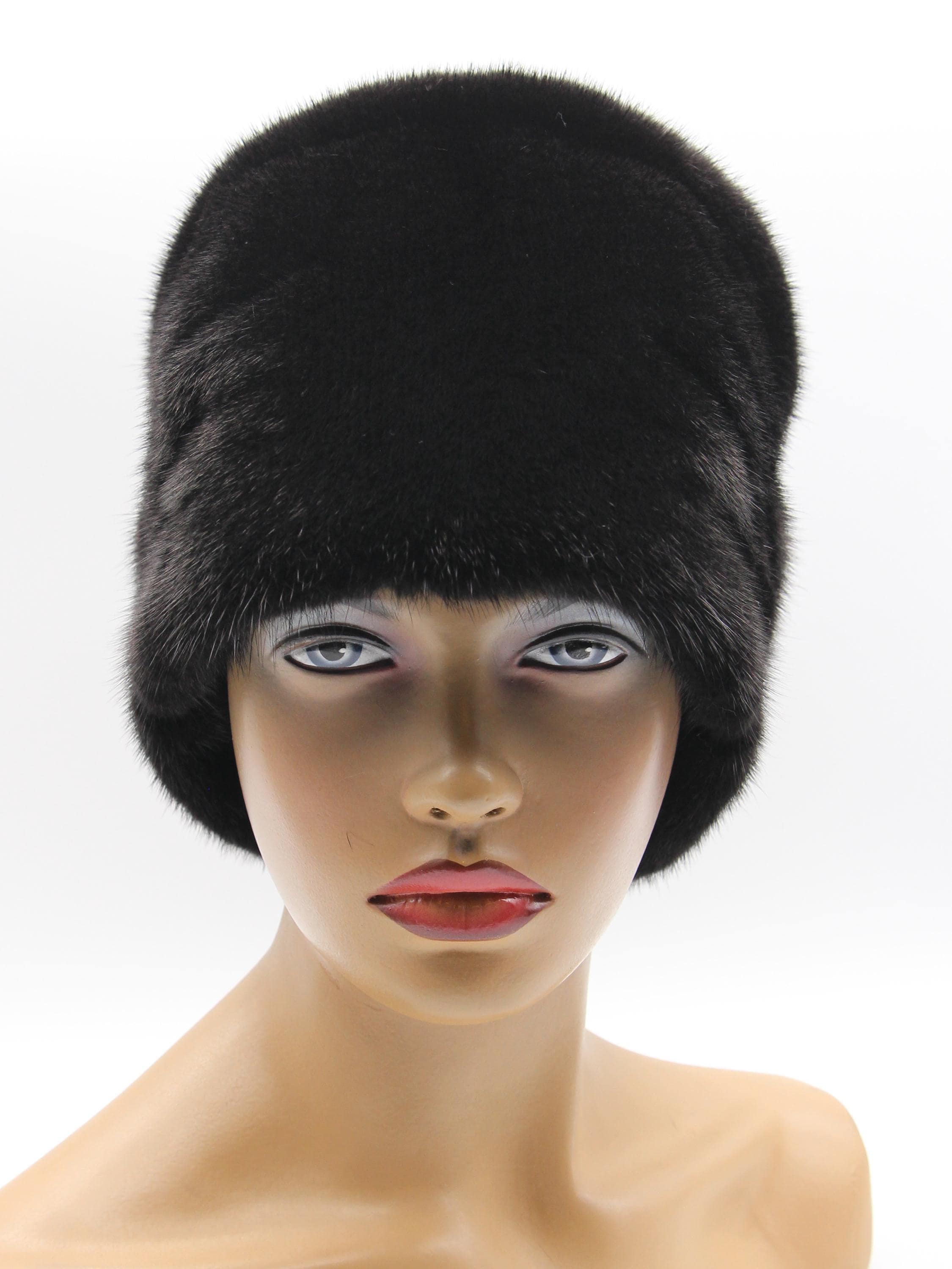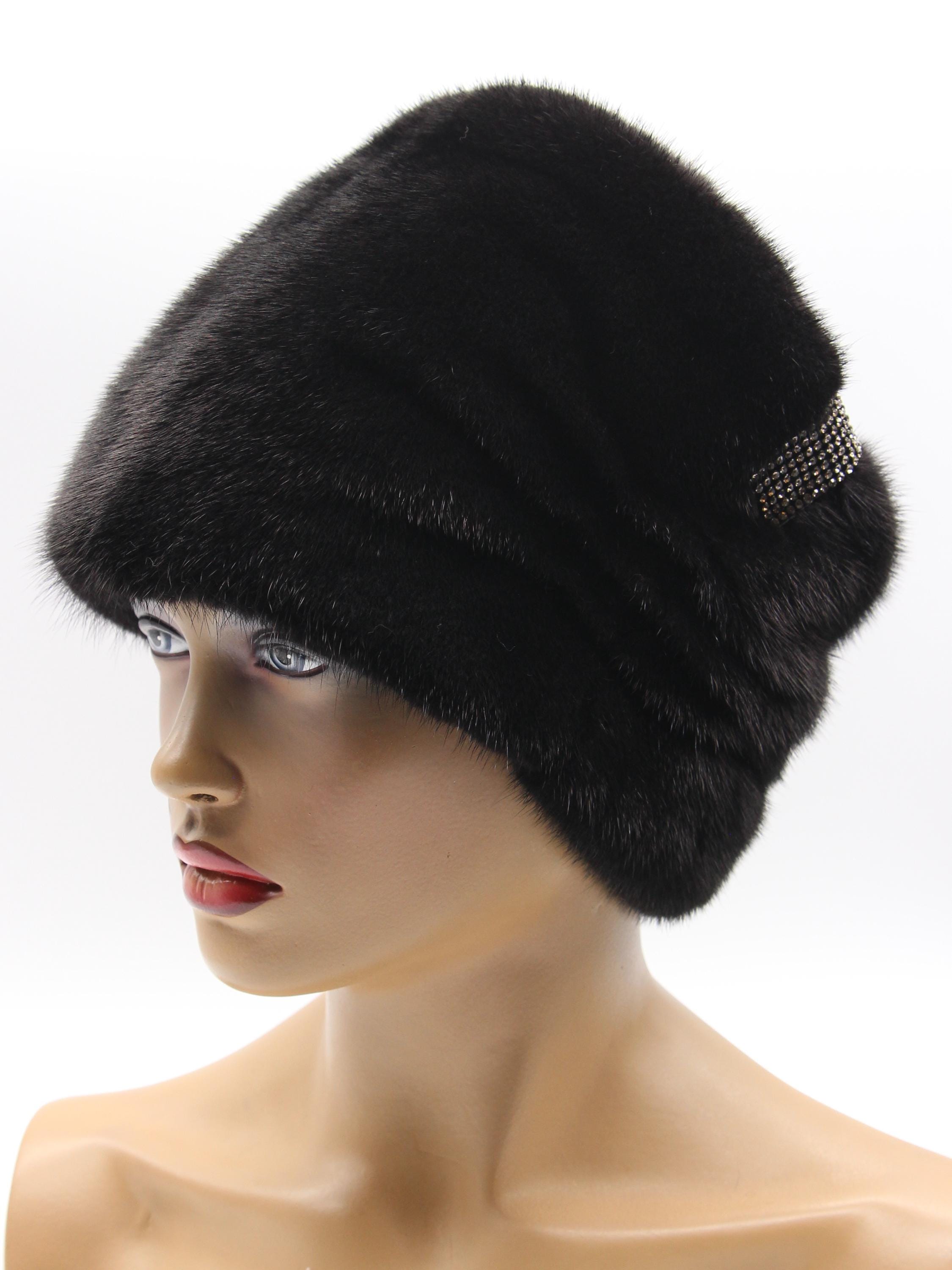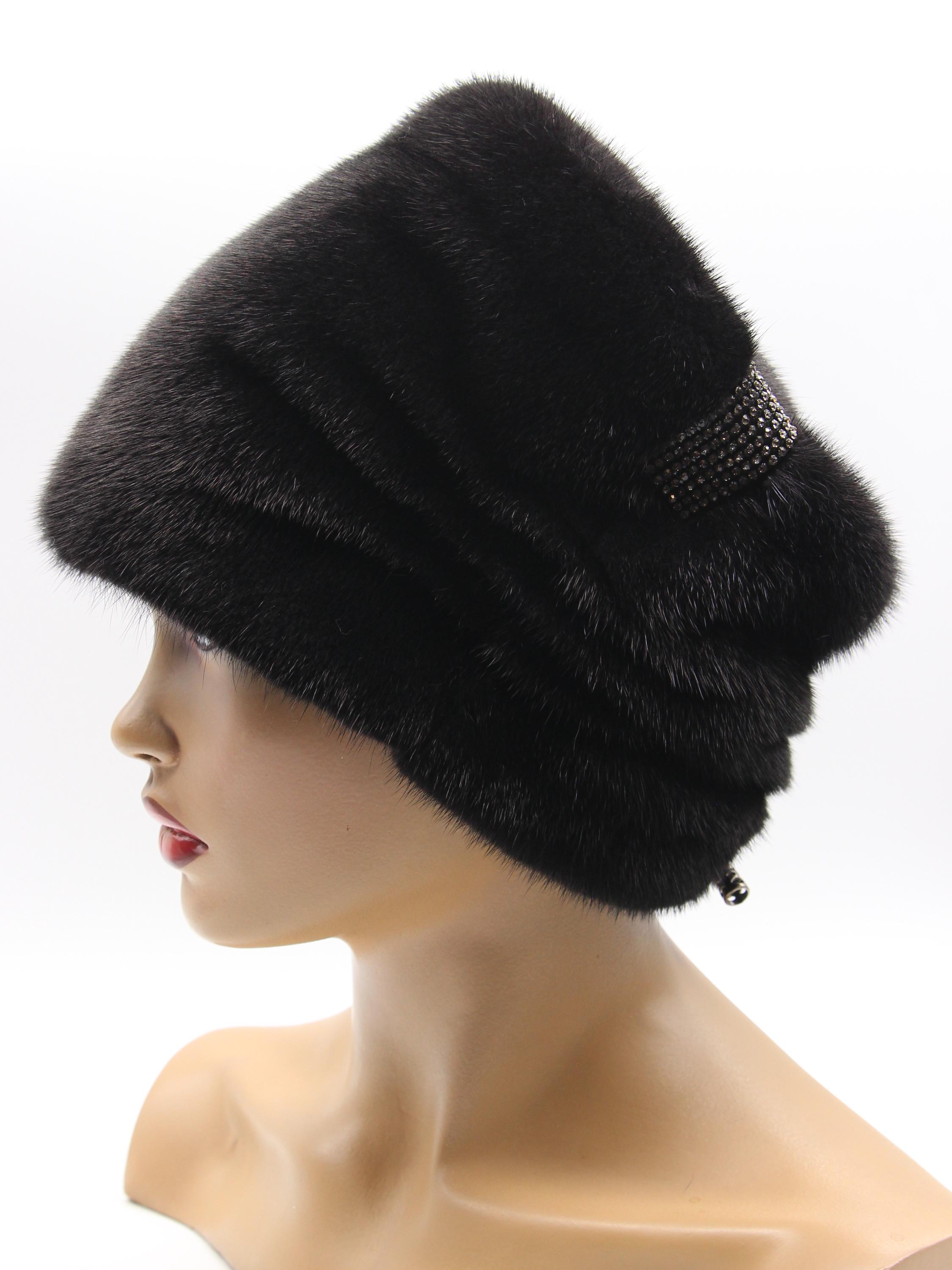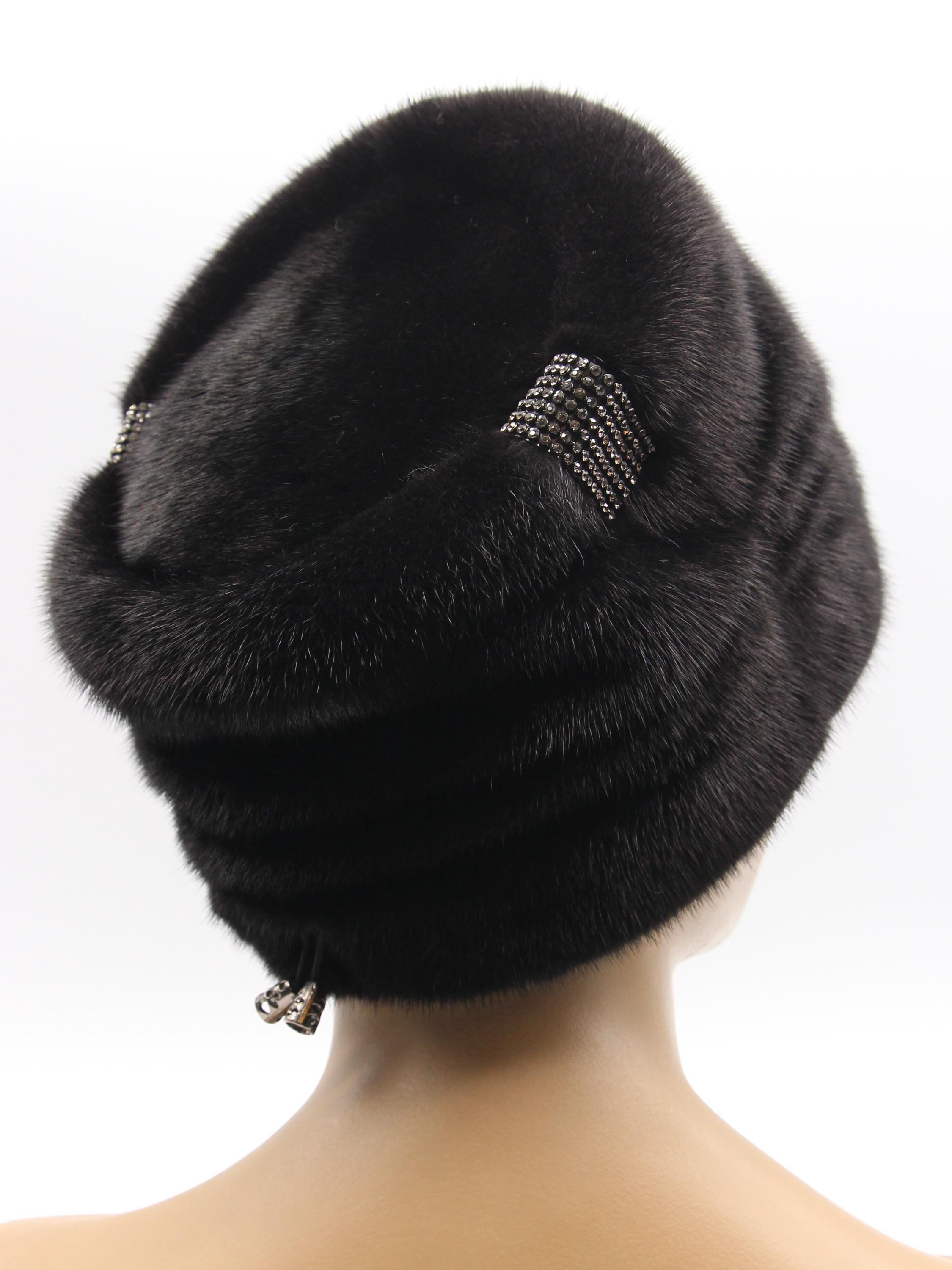 Black Mink Fur Hat Boyar Style Pleated Crown for Women - Handmade Natural Winter