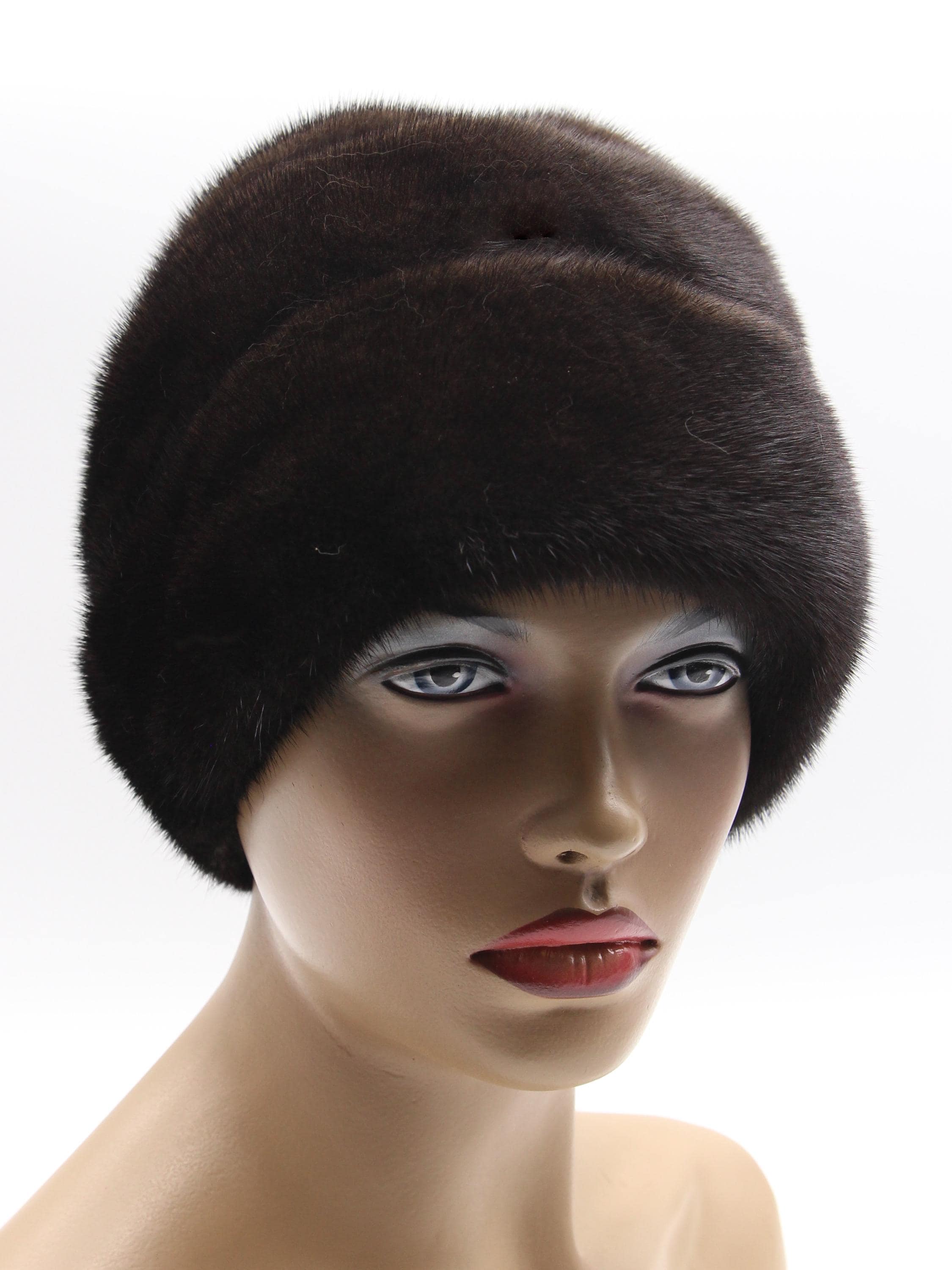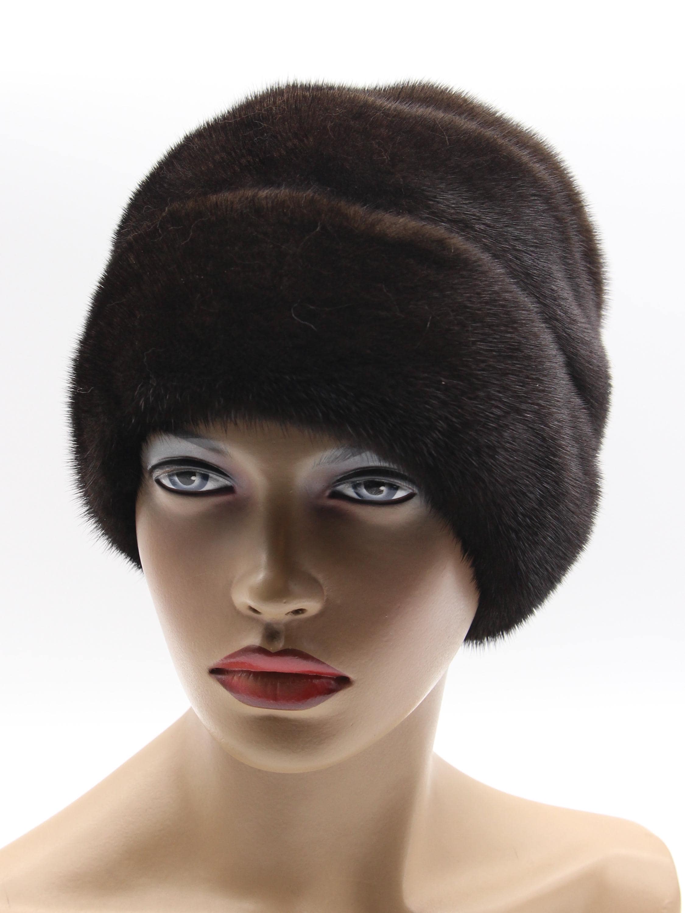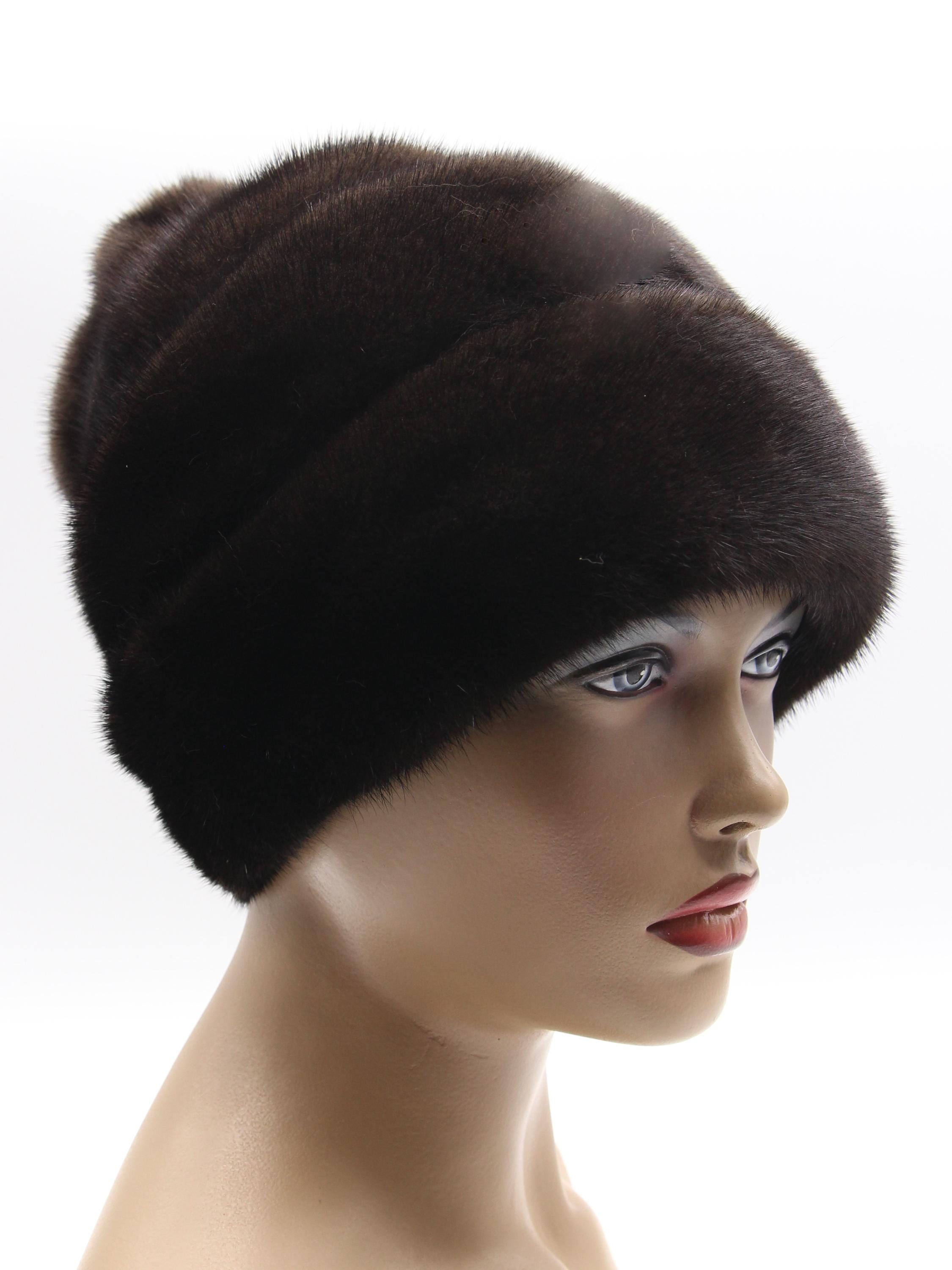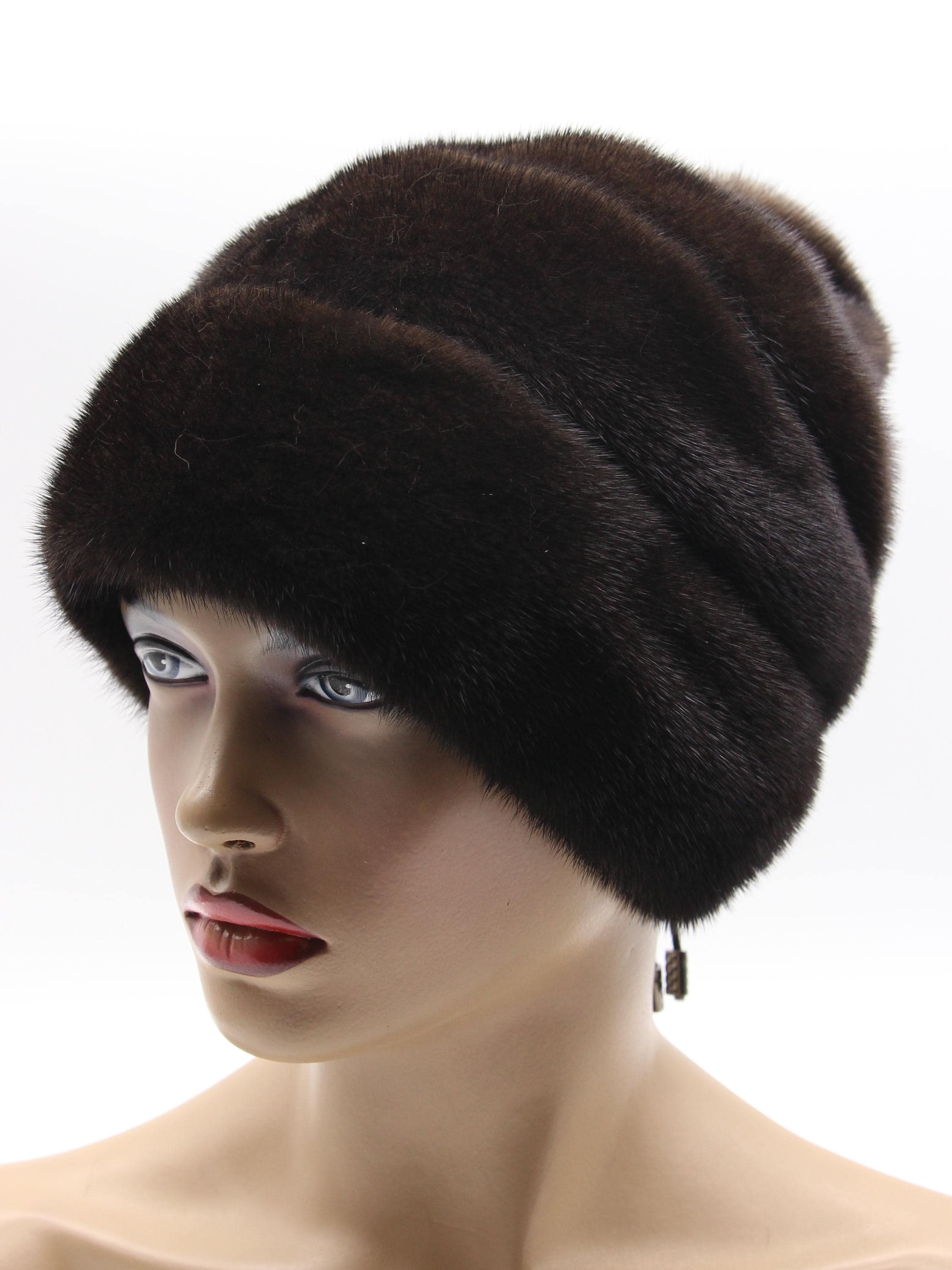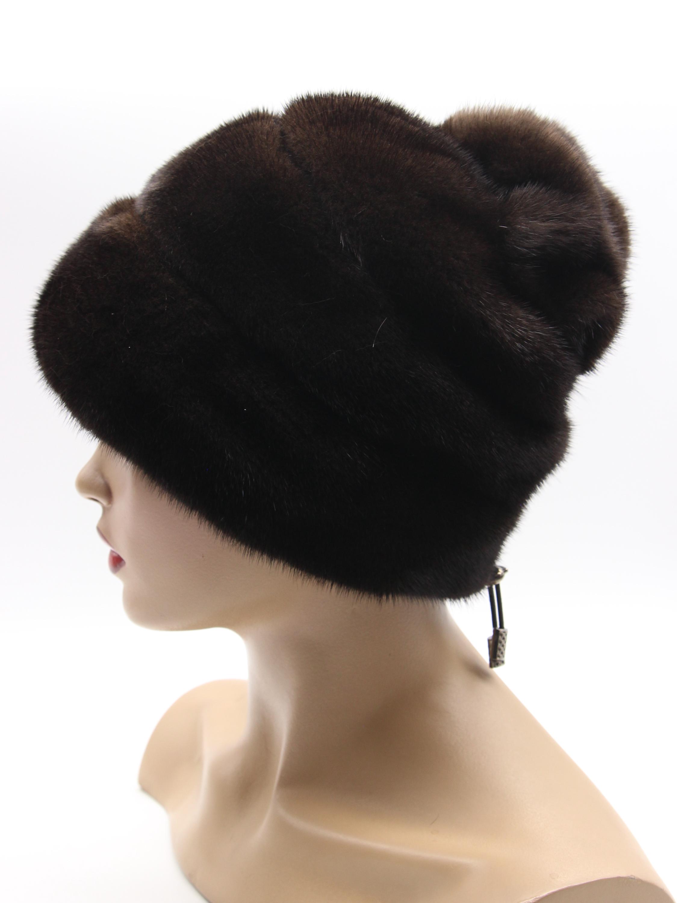 Brown Mink Fur Hat with Suede Strips Rose Detail for Women - Handmade Natural Winter
