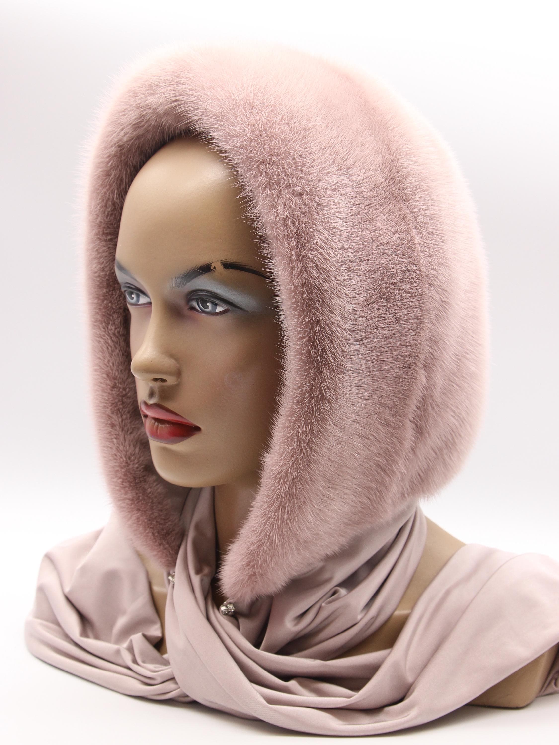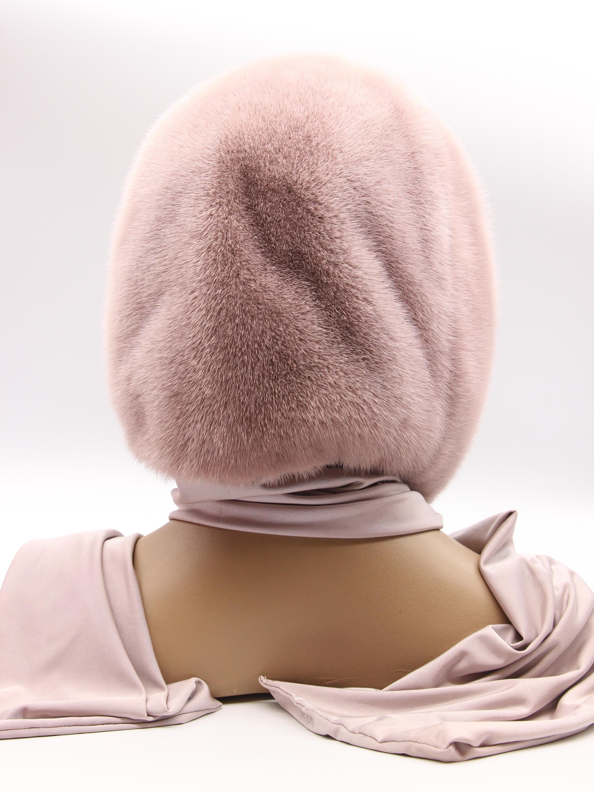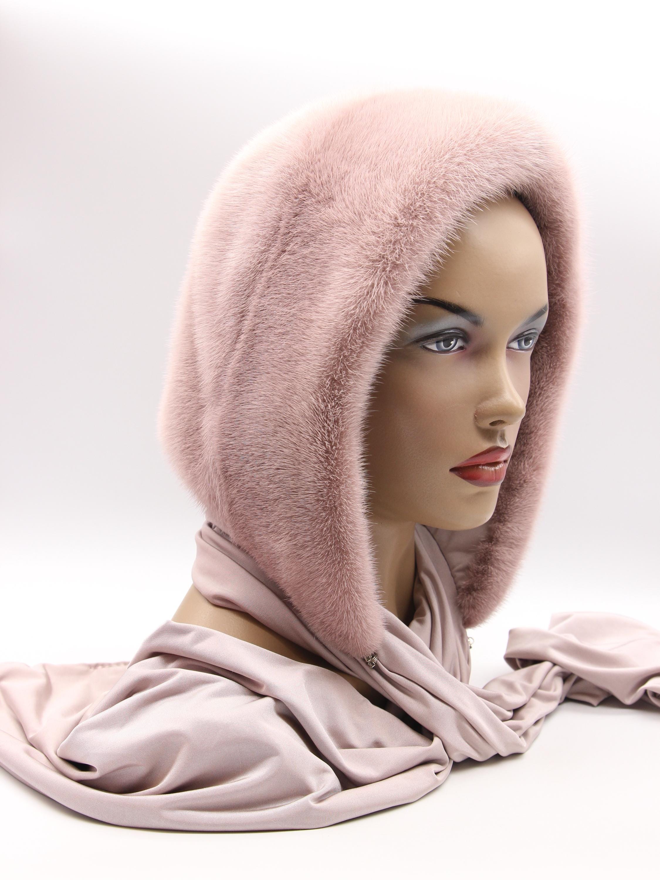 Powder Pink Mink Fur Hat Women Hooded Scarf: Sophisticated Color Done Right