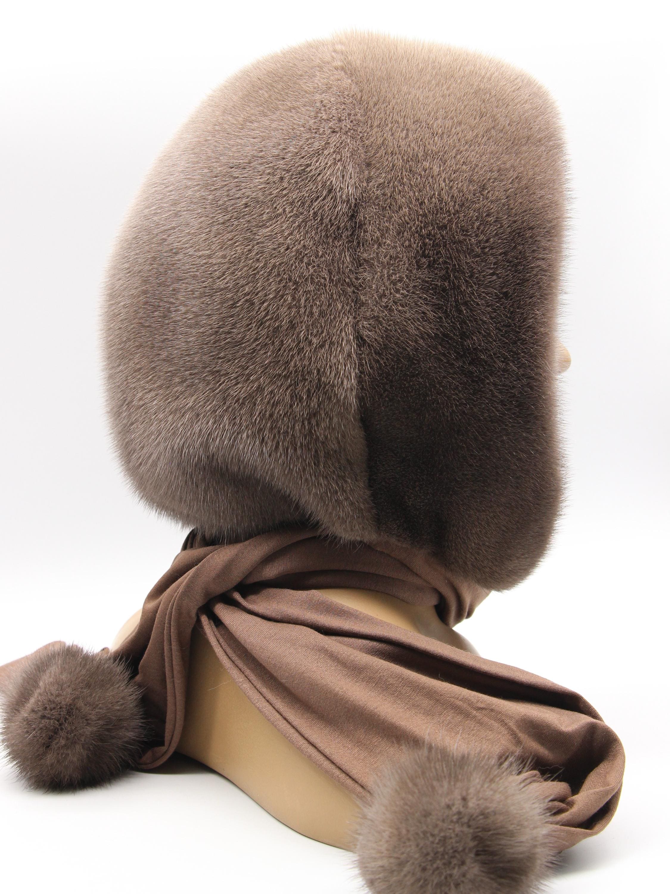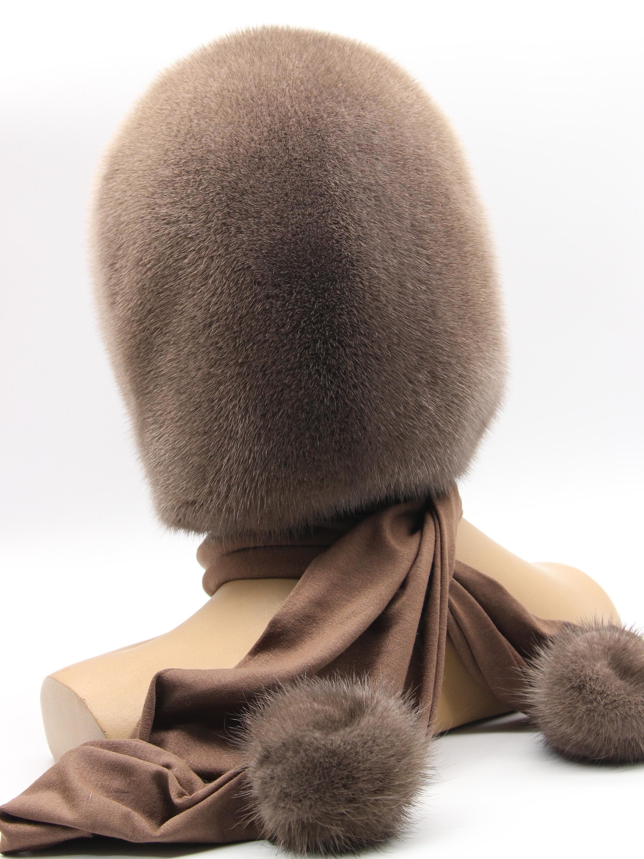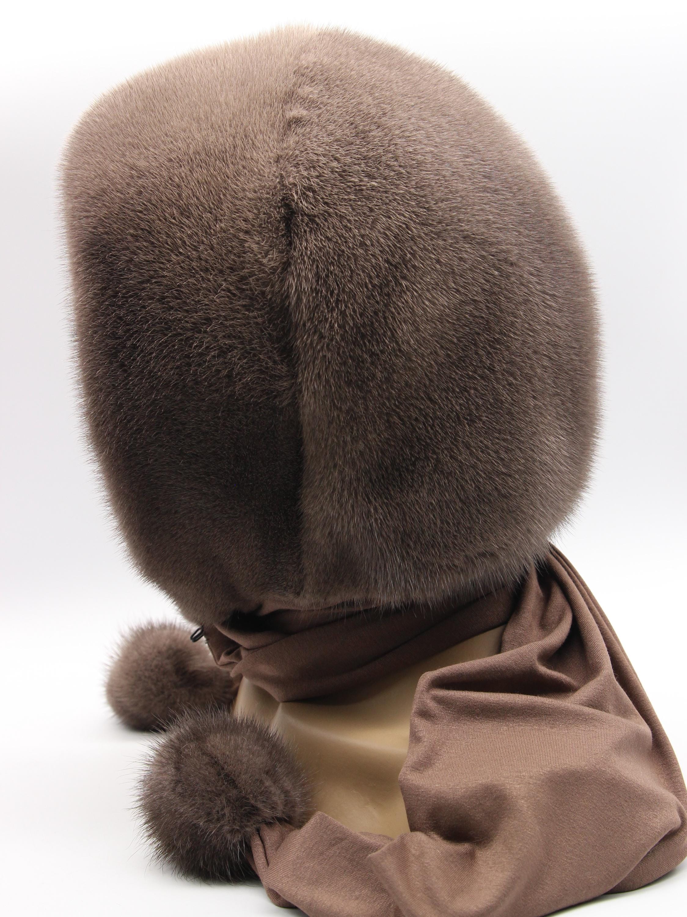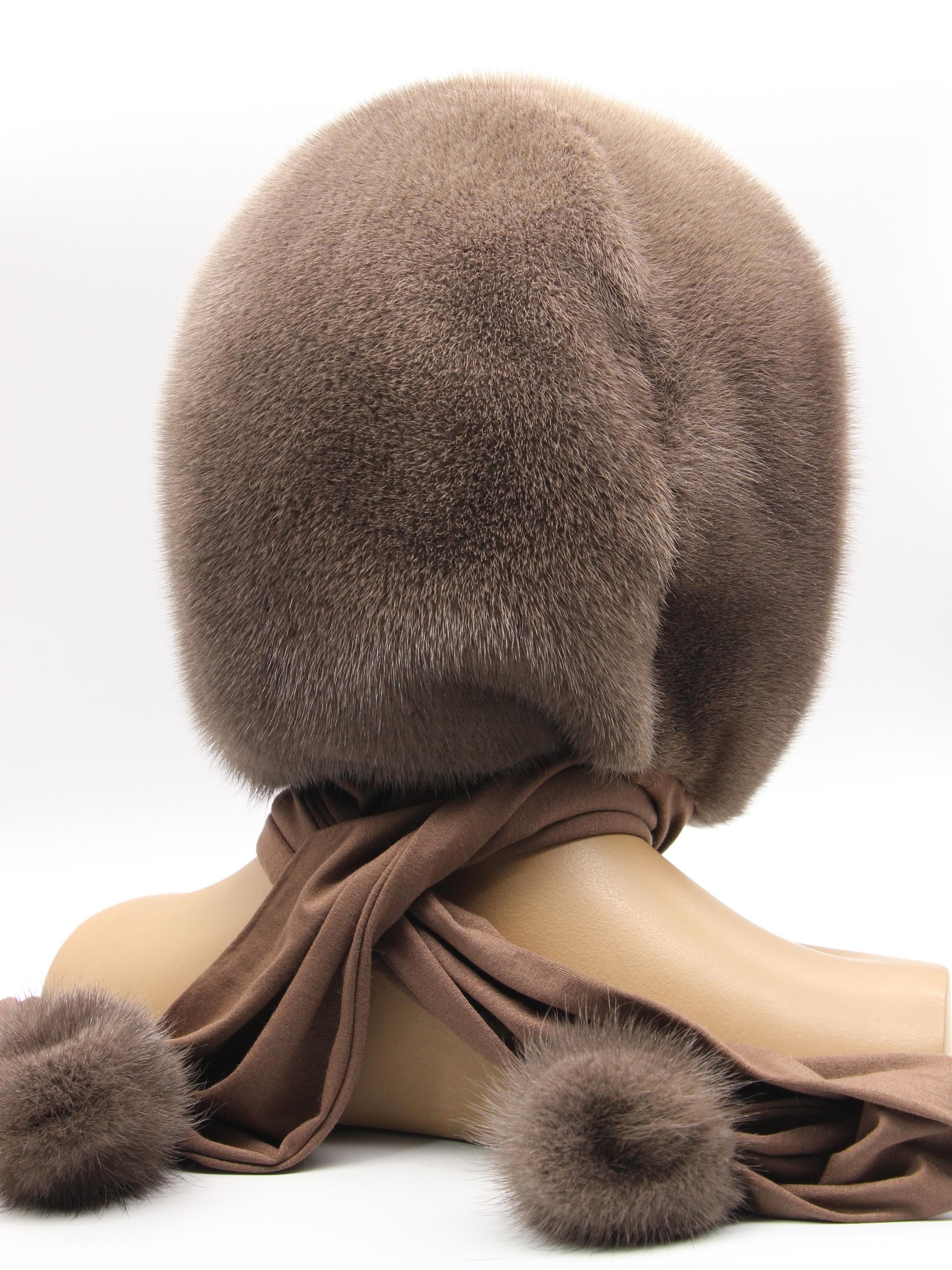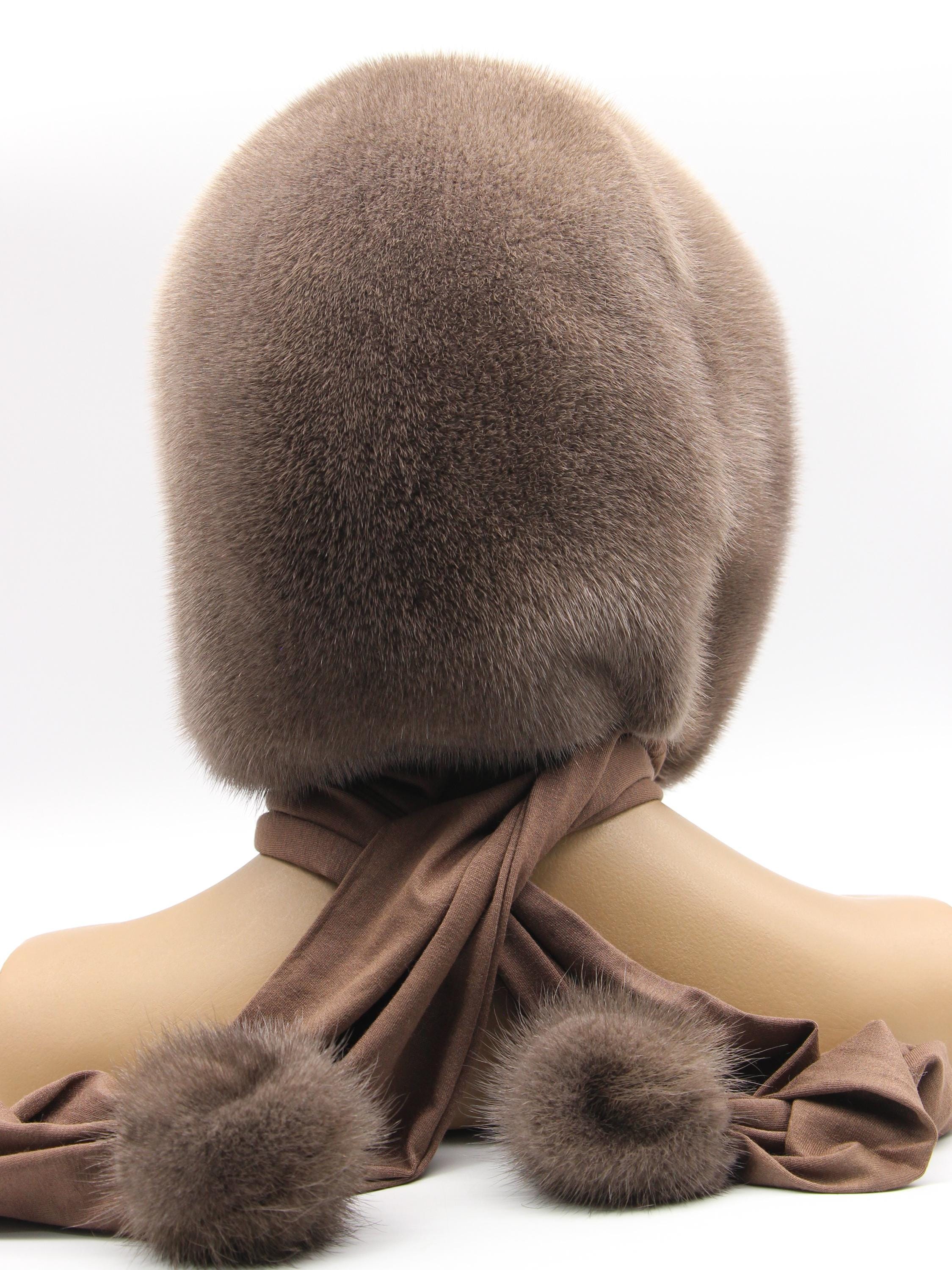 Cappuccino Mink Fur Hat Women Hooded Scarf Handmade Winter Hood Dyed Brown Beige Lining Luxury