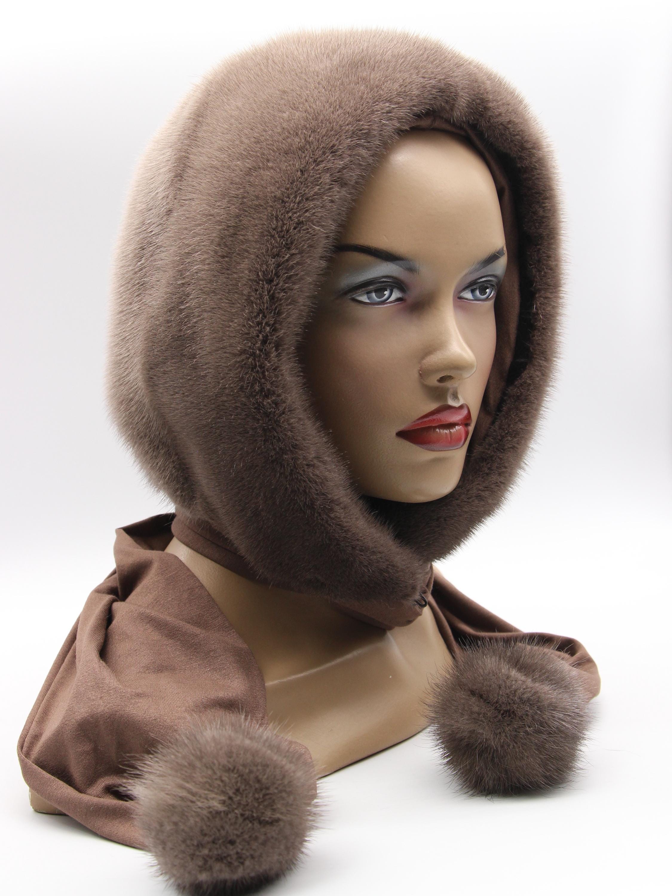 Cappuccino Mink Fur Hat Women Hooded Scarf: Perfect Neutral Done Right