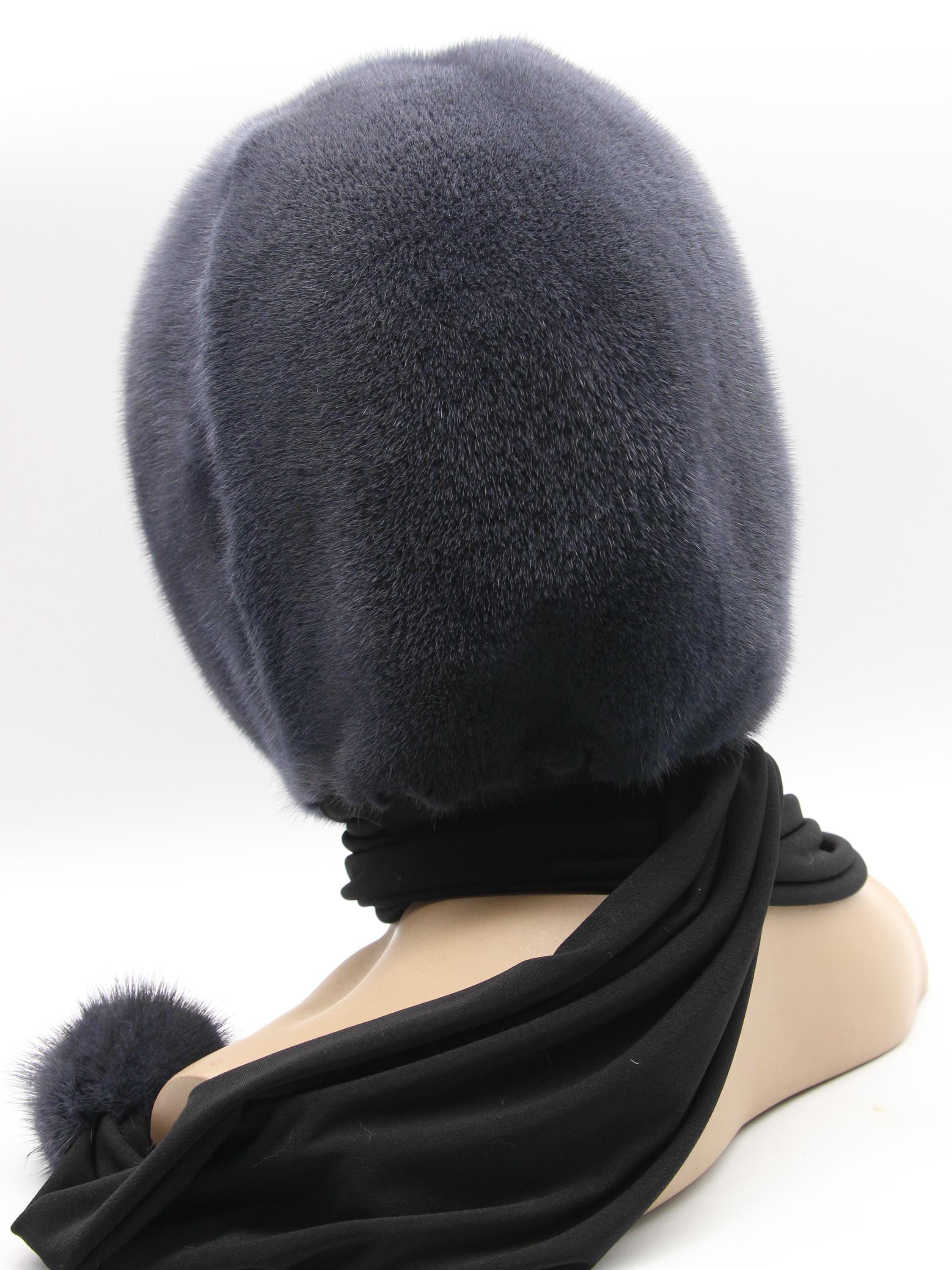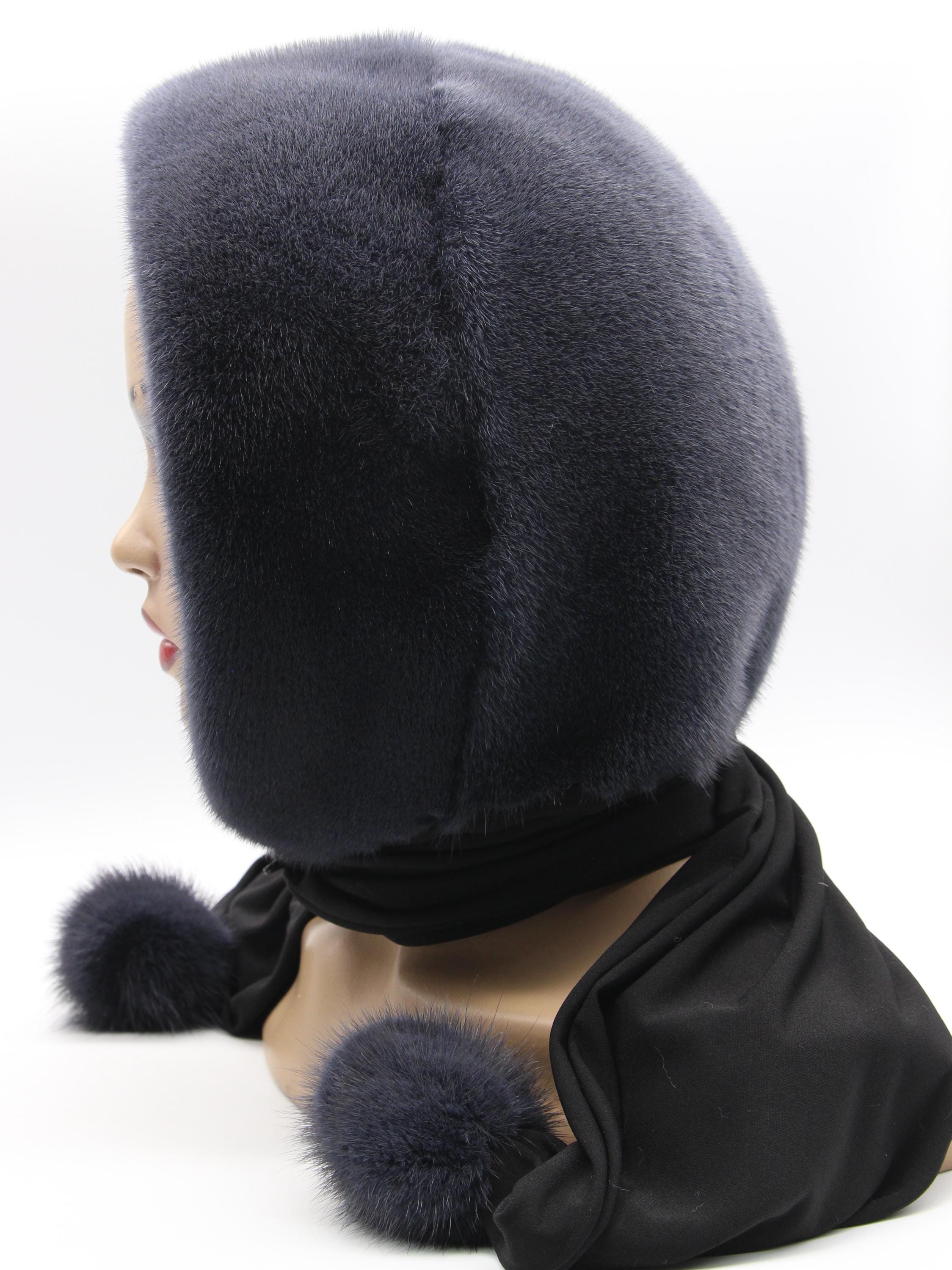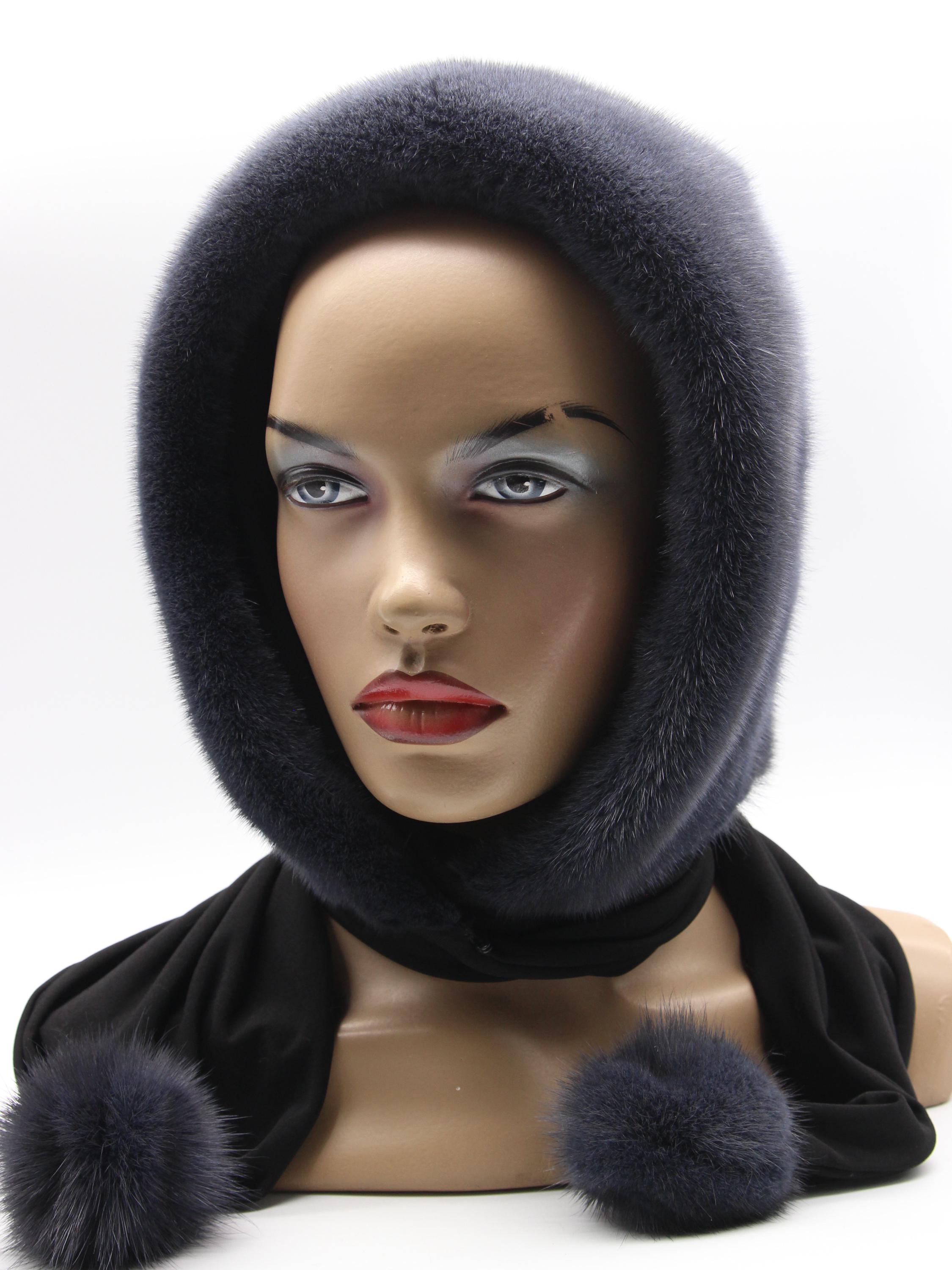 Graphite Mink Fur Hat Women Hooded Scarf: Deep Black Done Properly