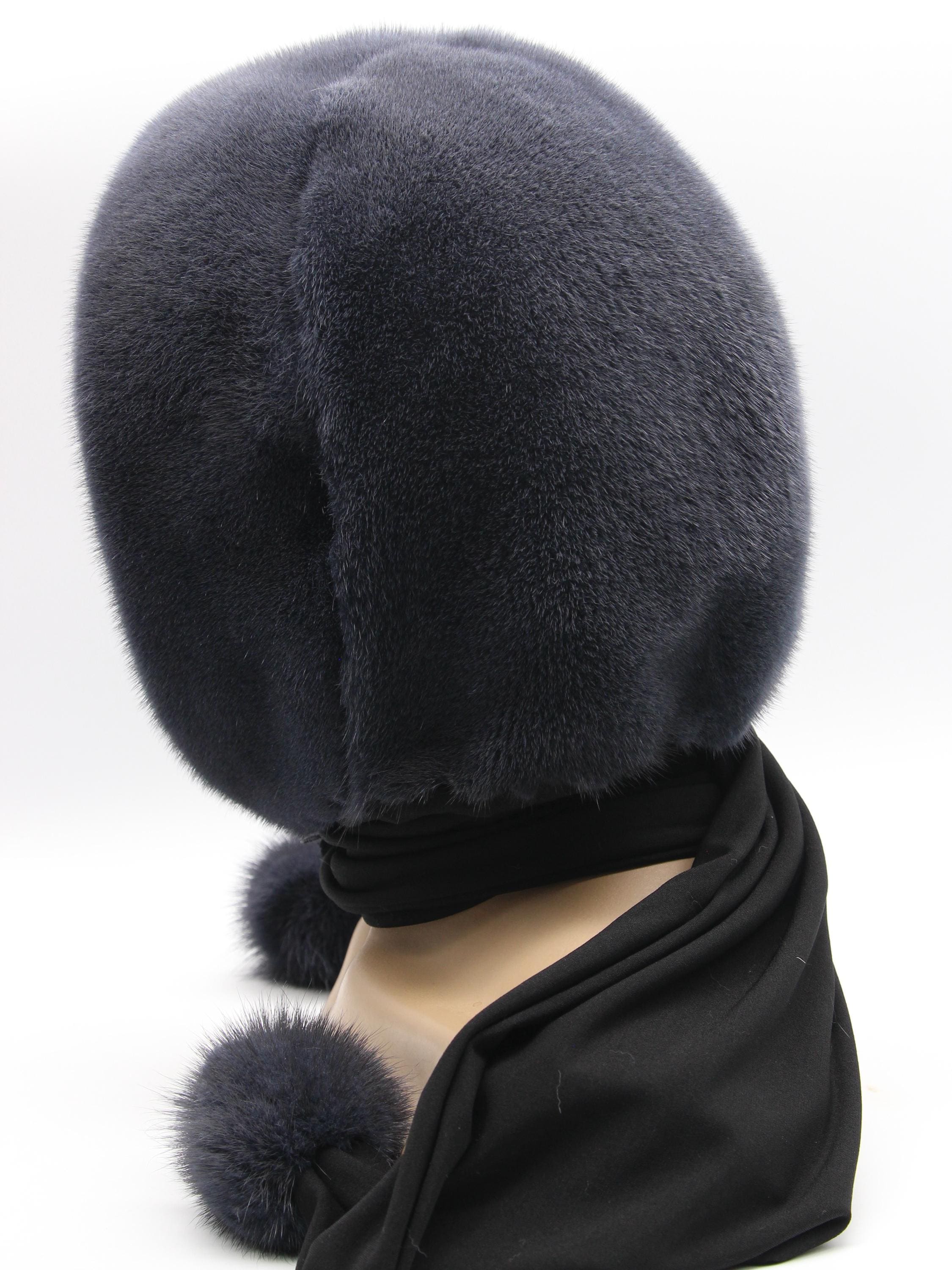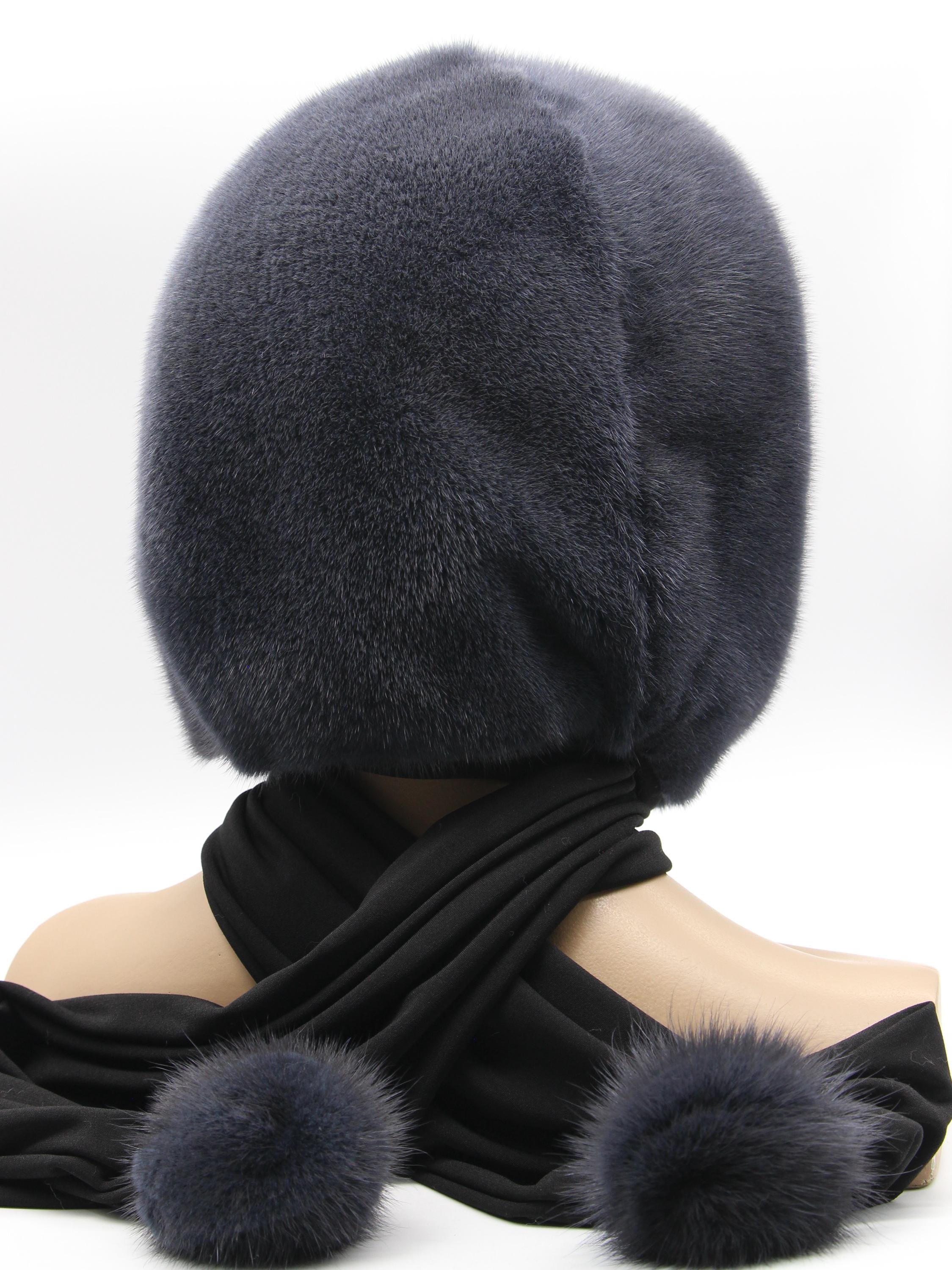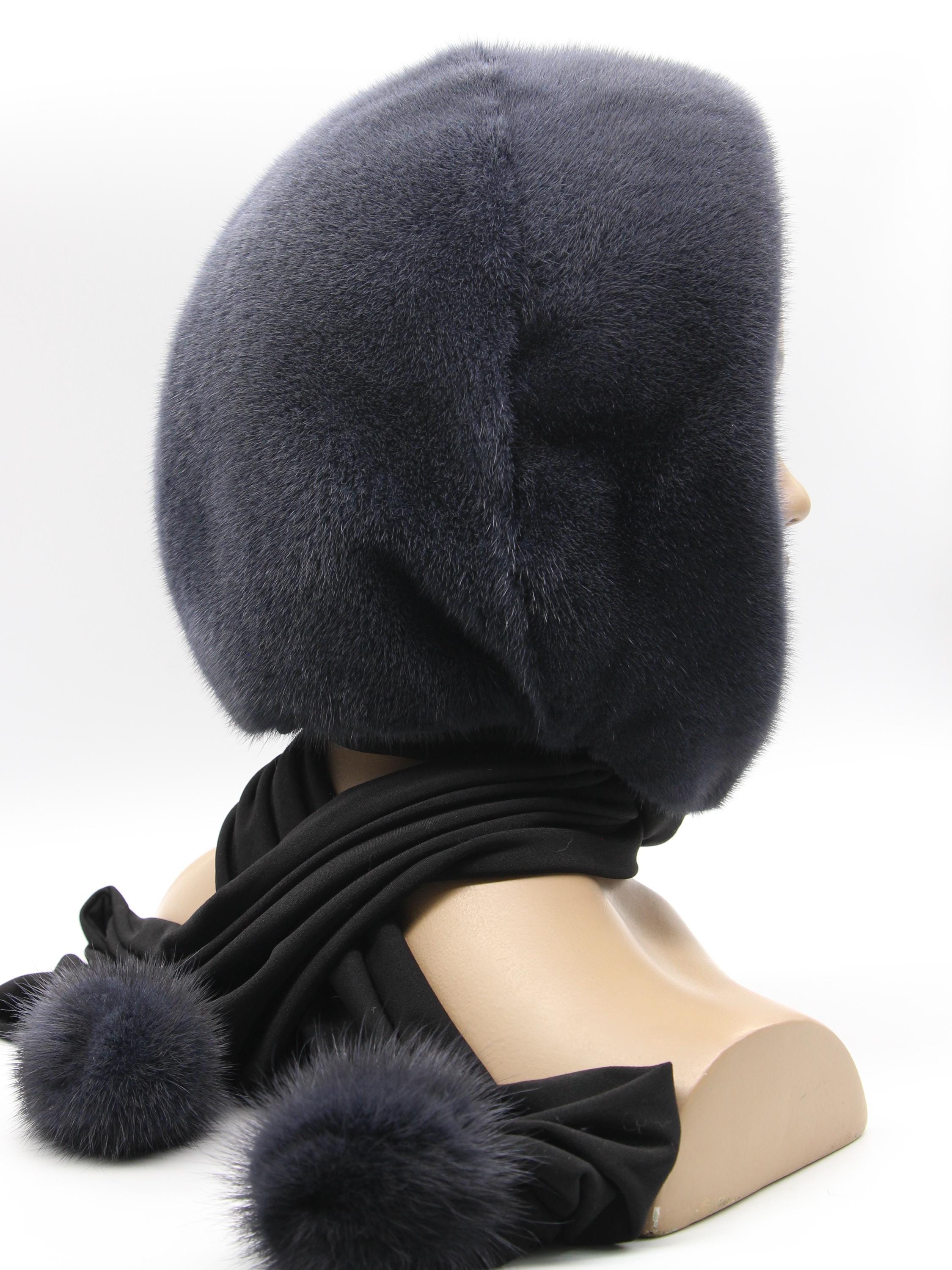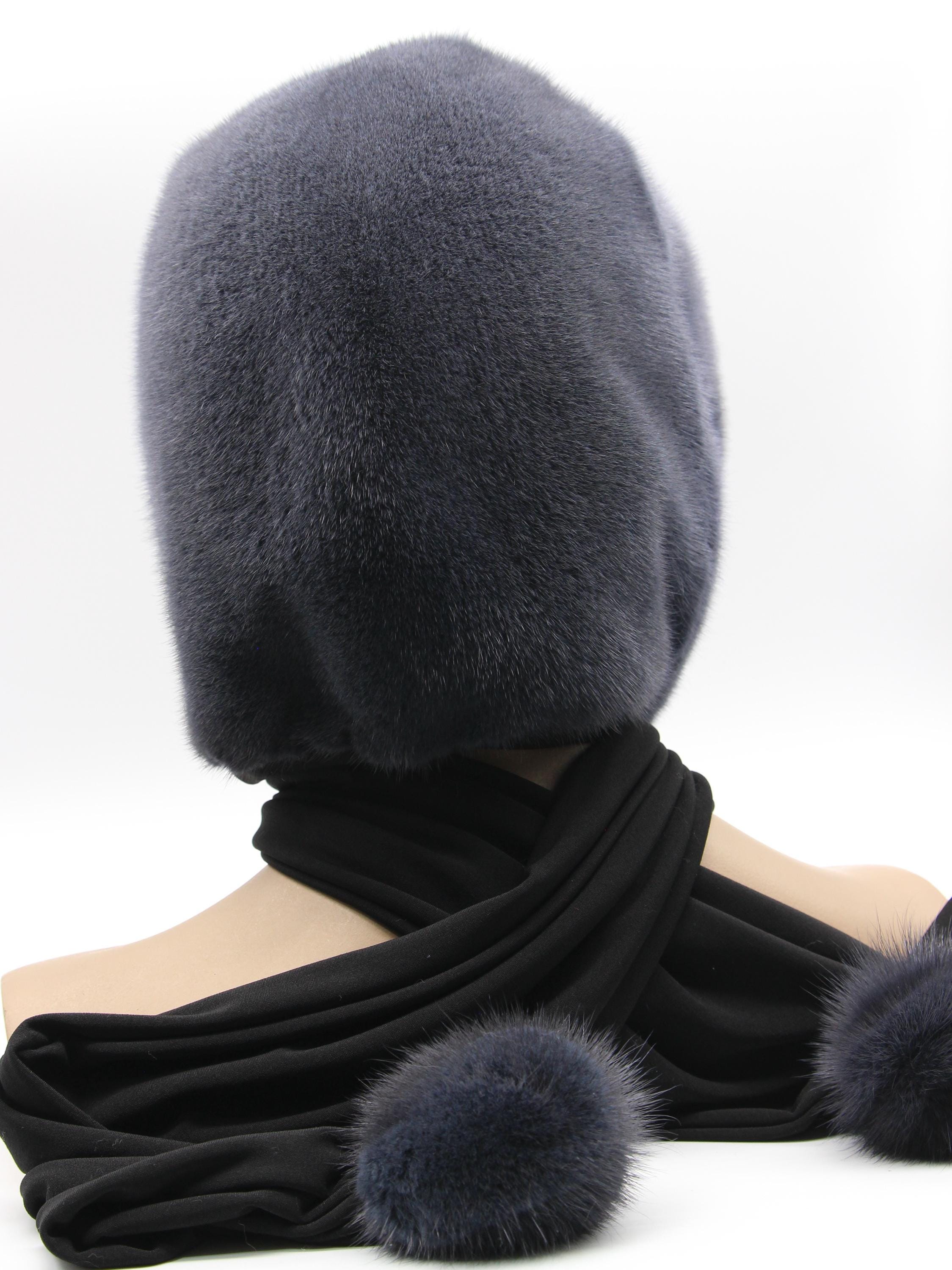 Graphite Mink Fur Hat Women Hooded Scarf: Deep Black Done Properly