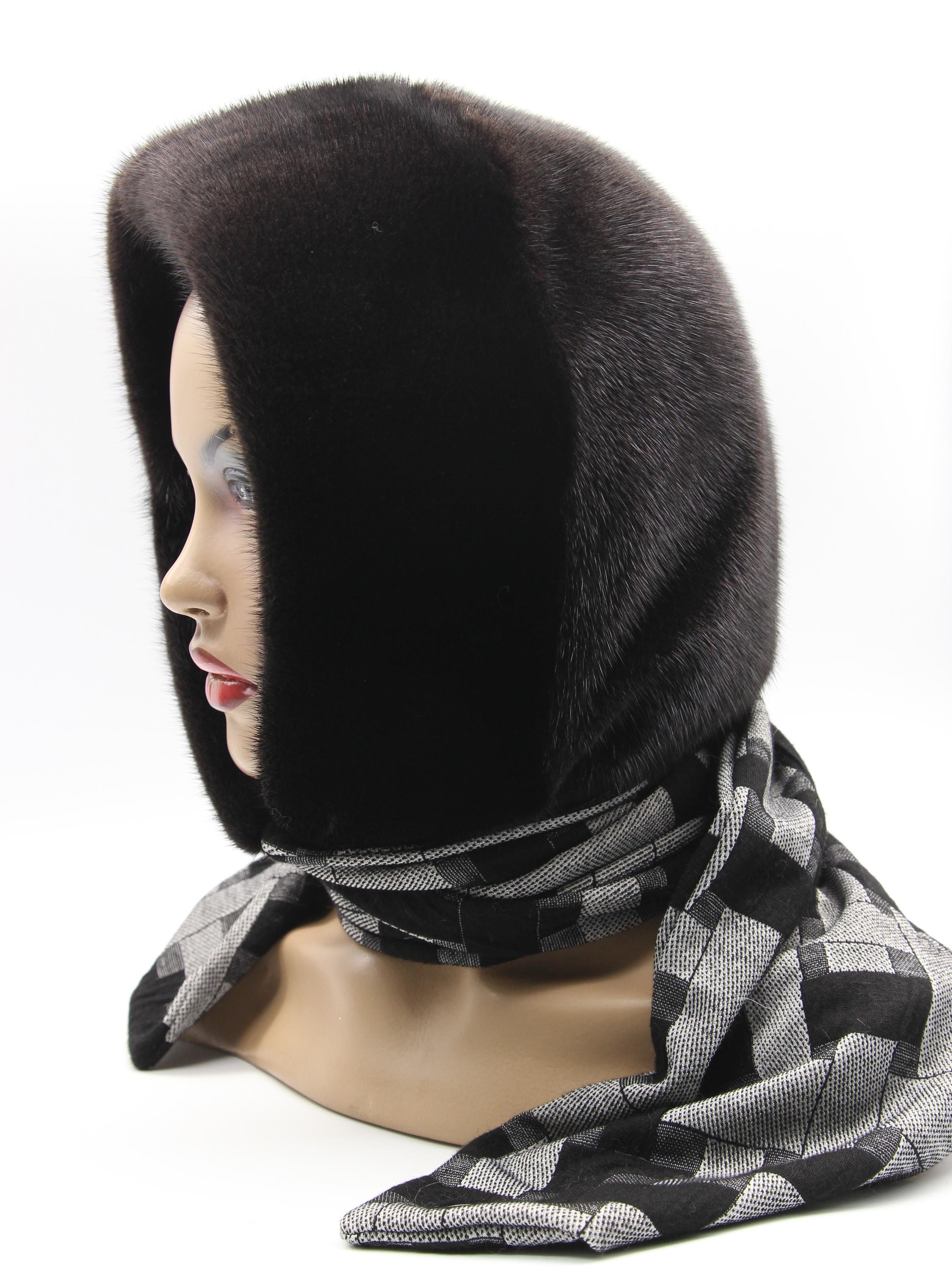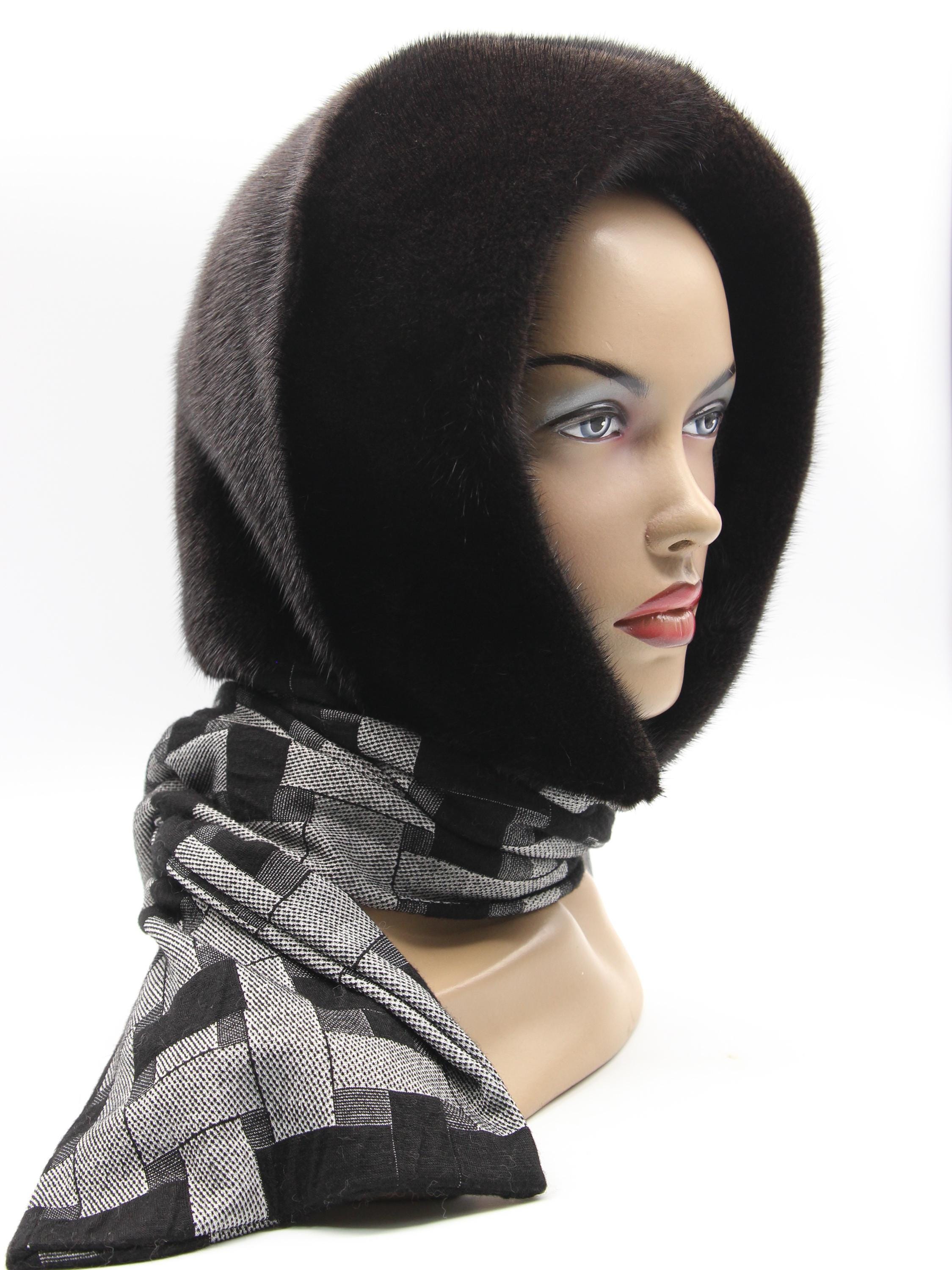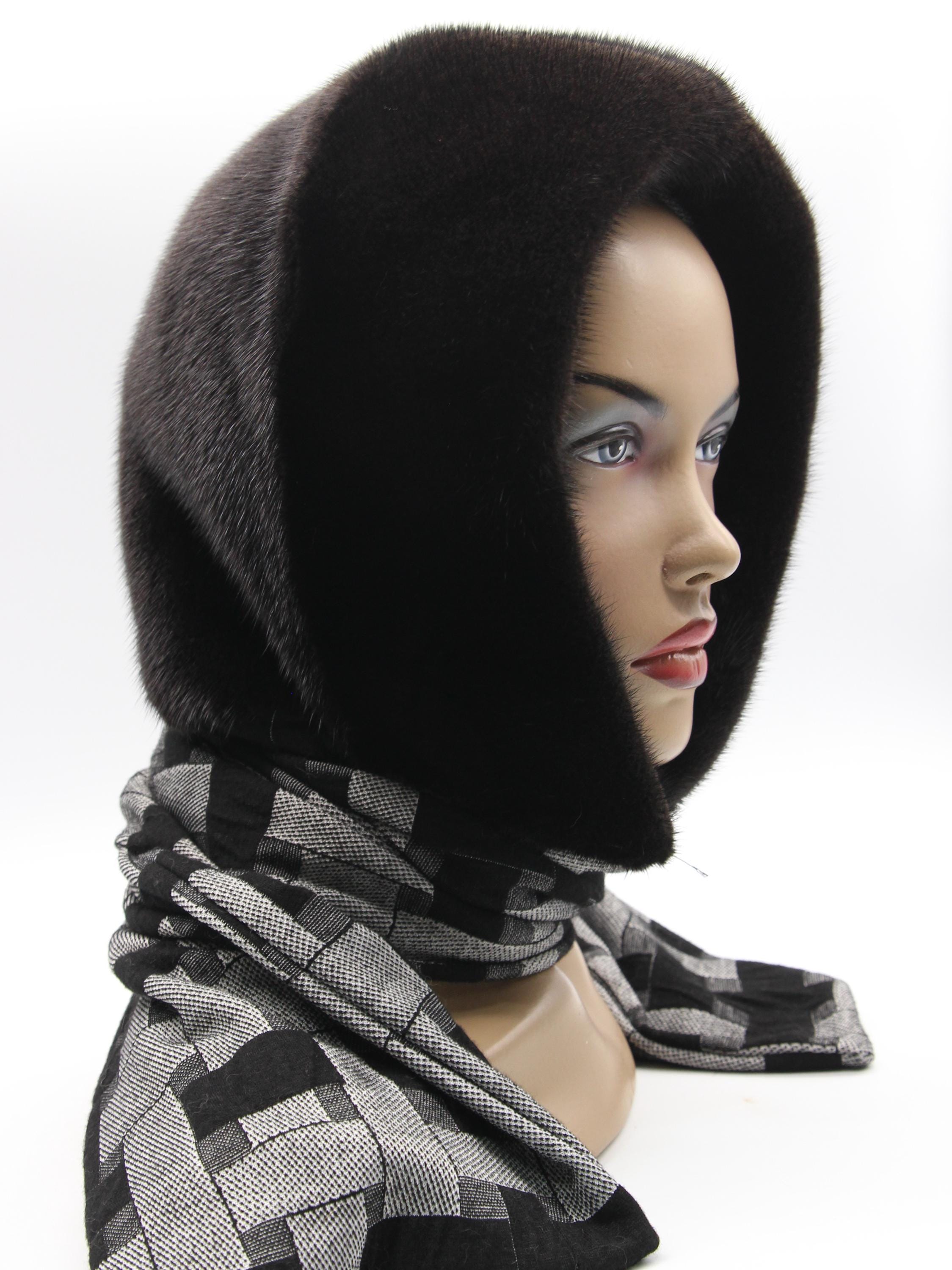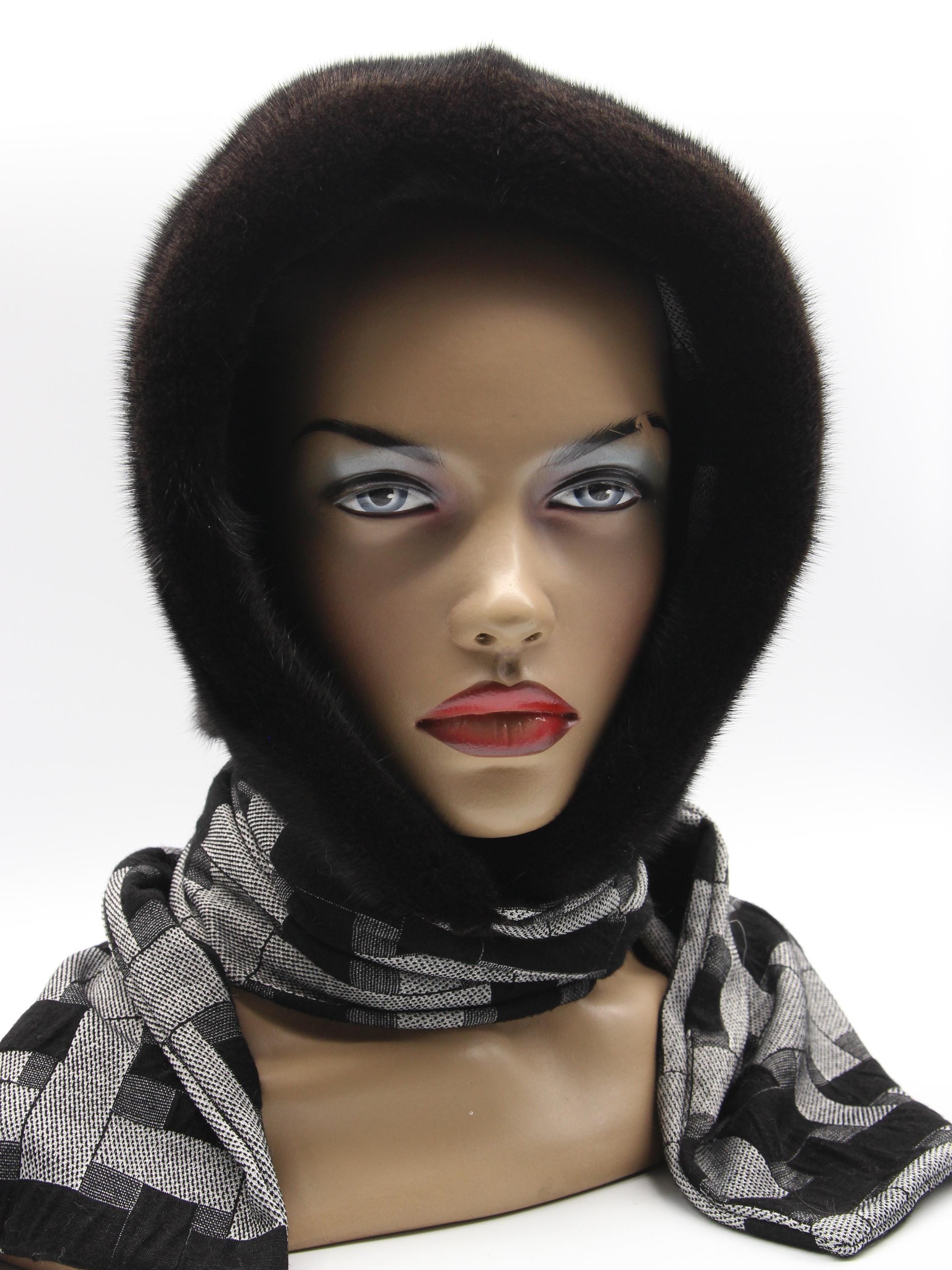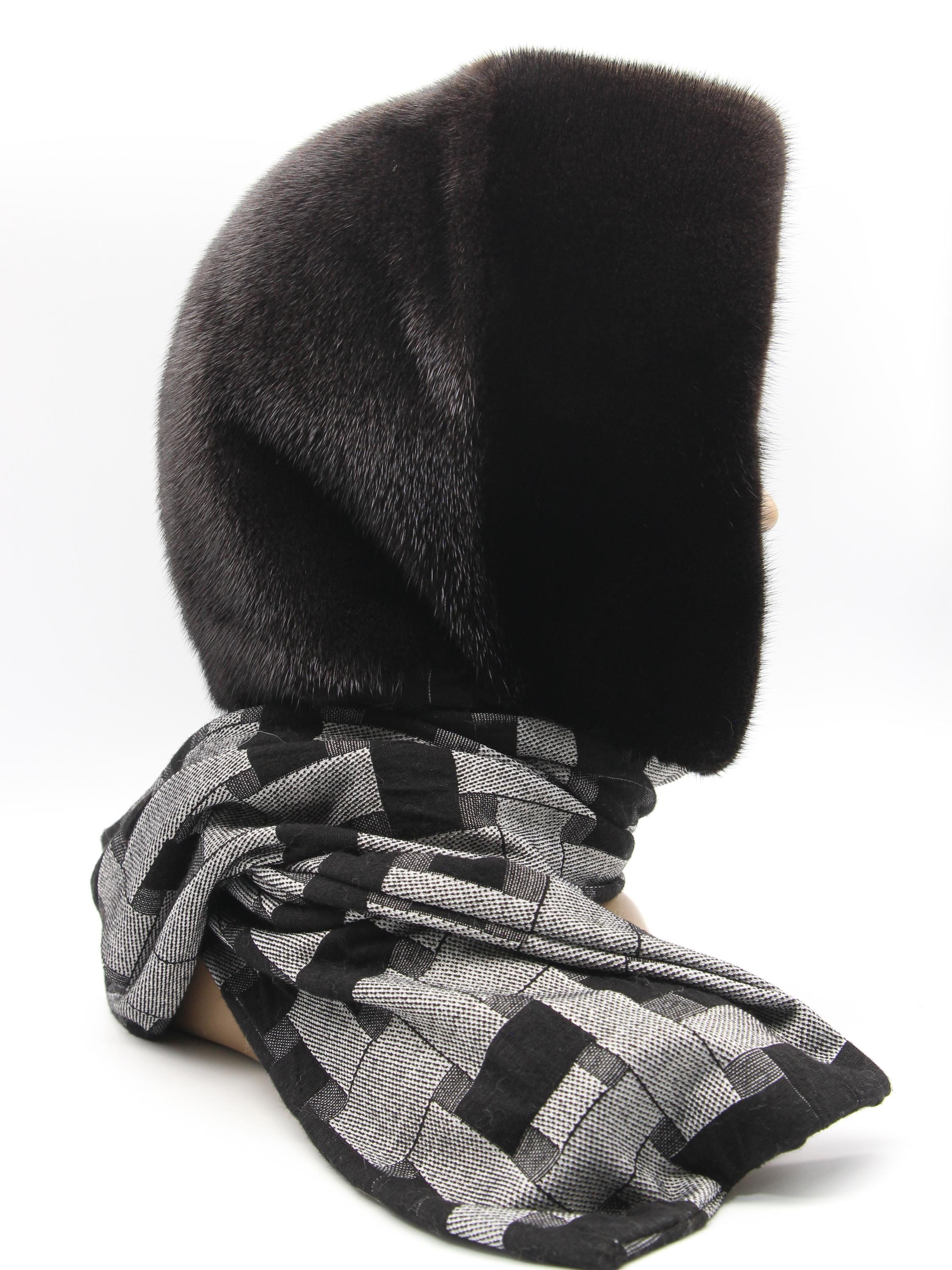 Dark Brown Mink Fur Hat Women Hooded Scarf: Sophistication Through Subtle Pattern