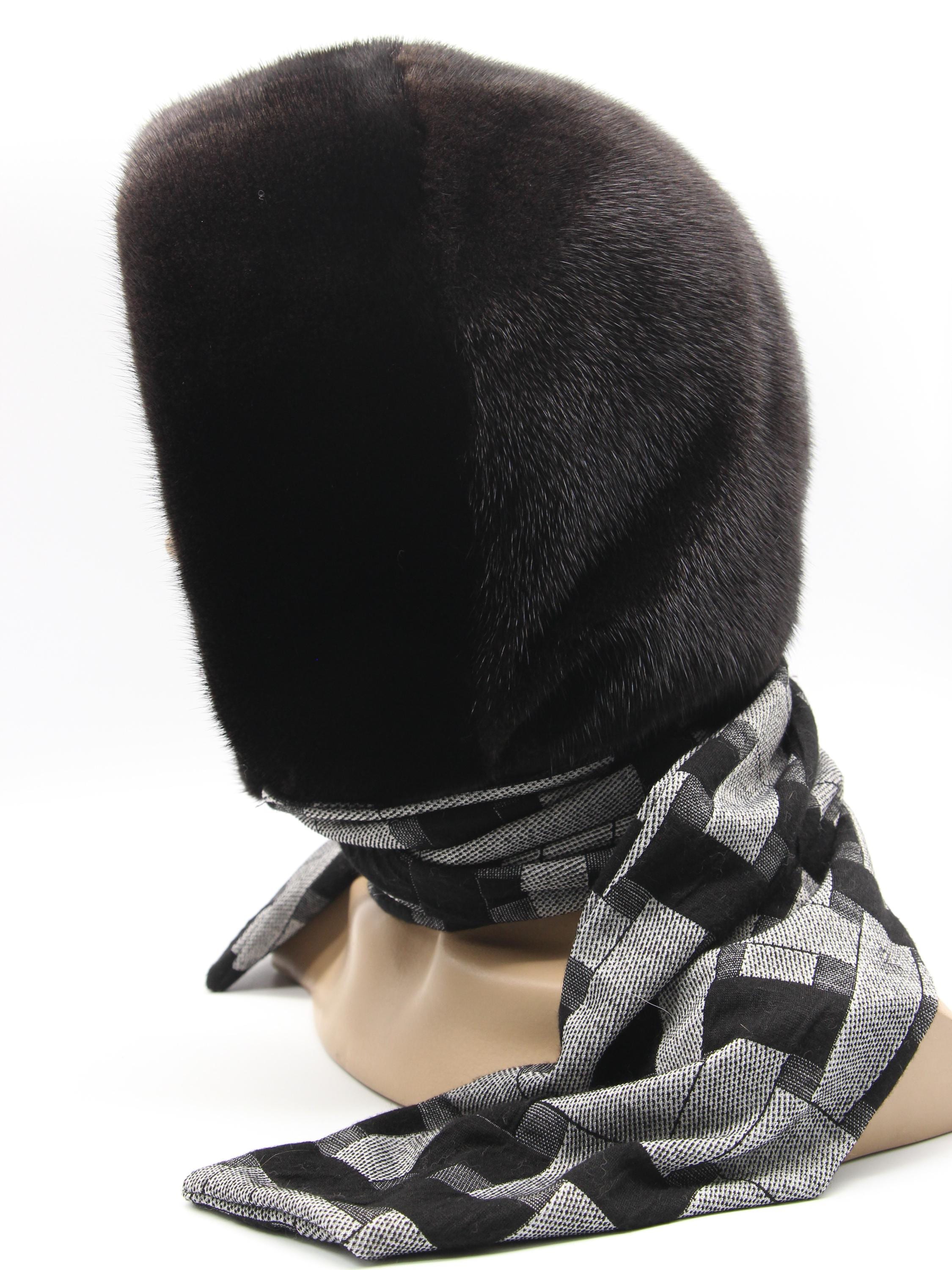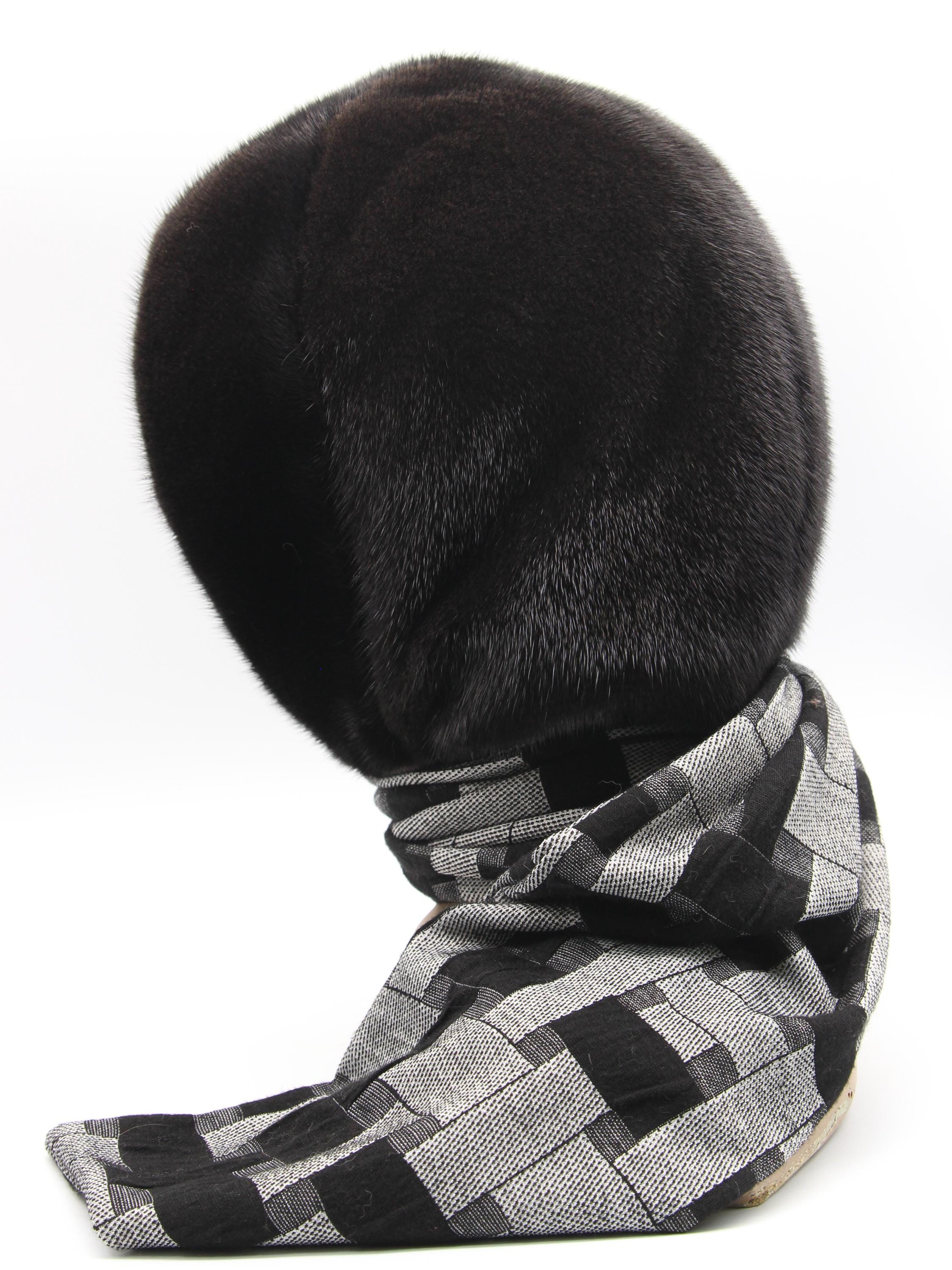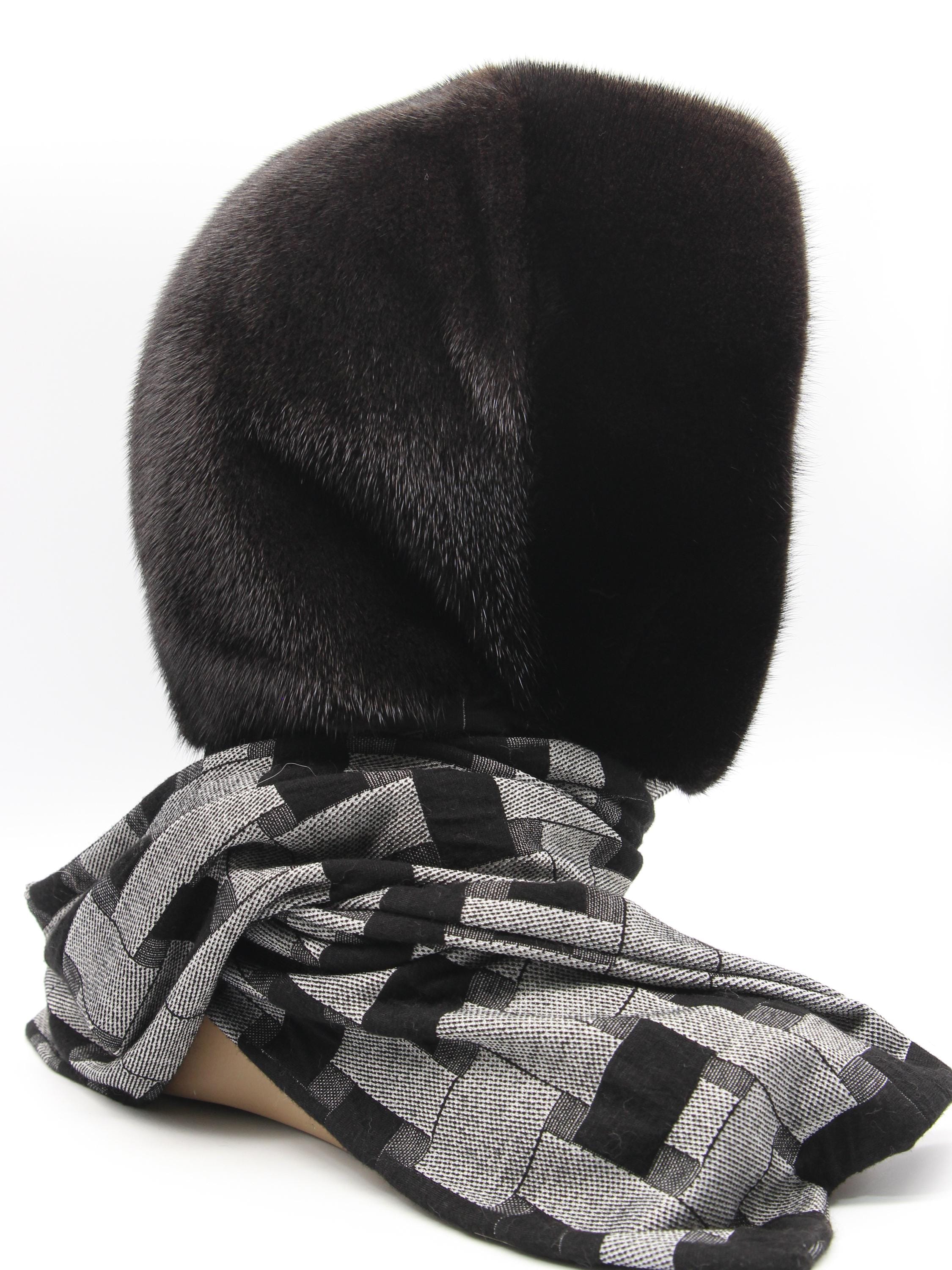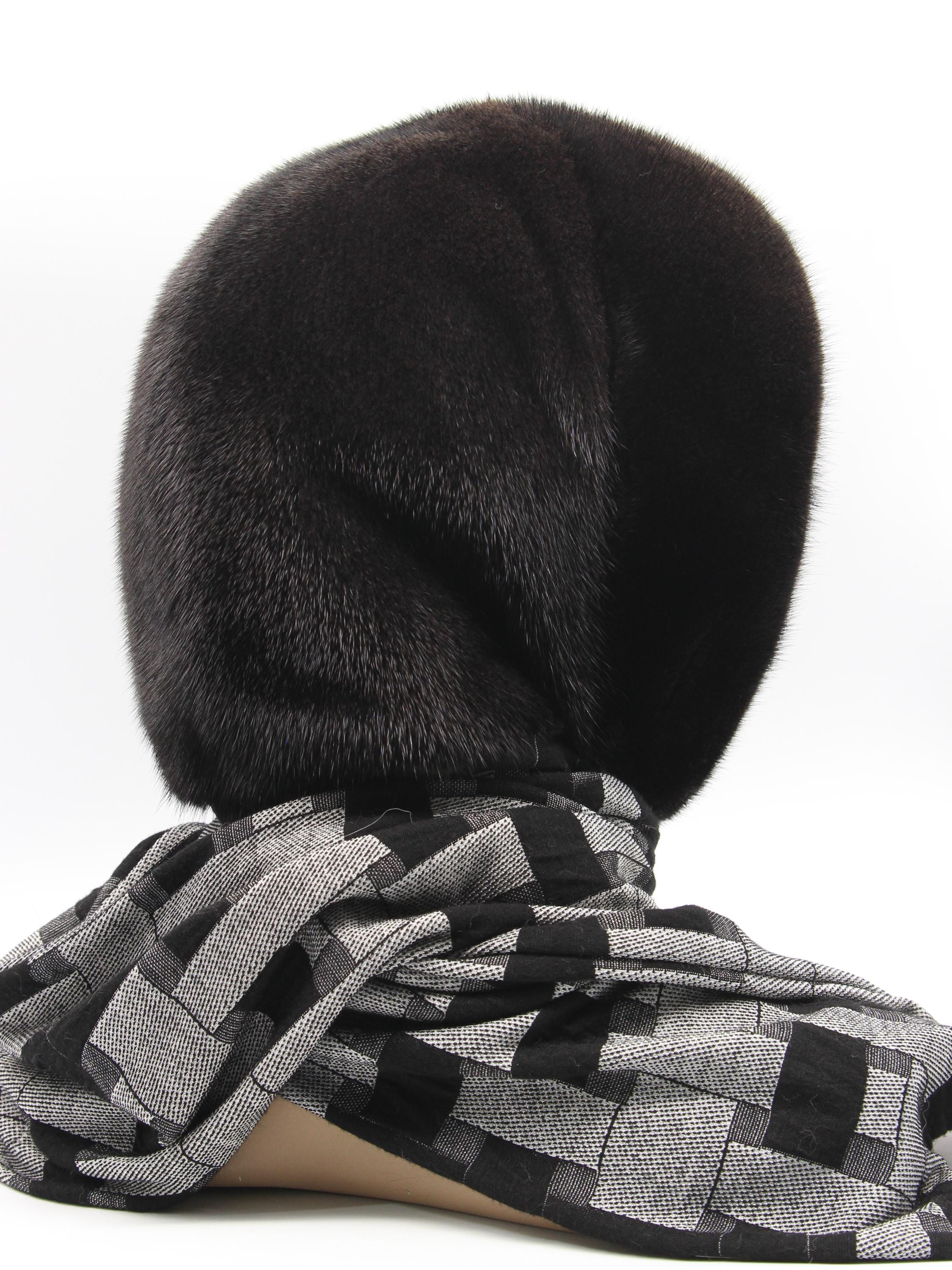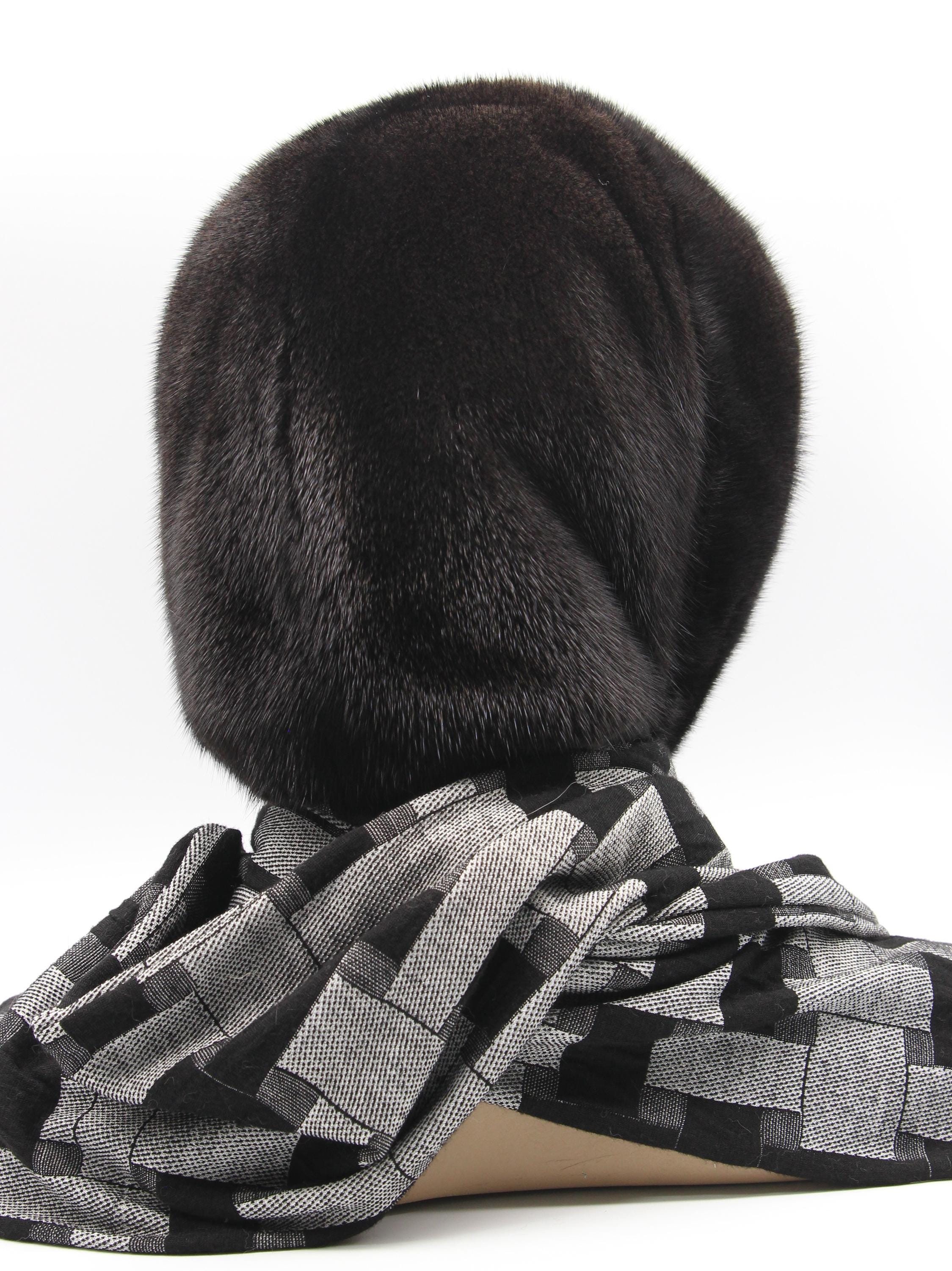 Dark Brown Mink Fur Hat Women Hooded Scarf: Sophistication Through Subtle Pattern