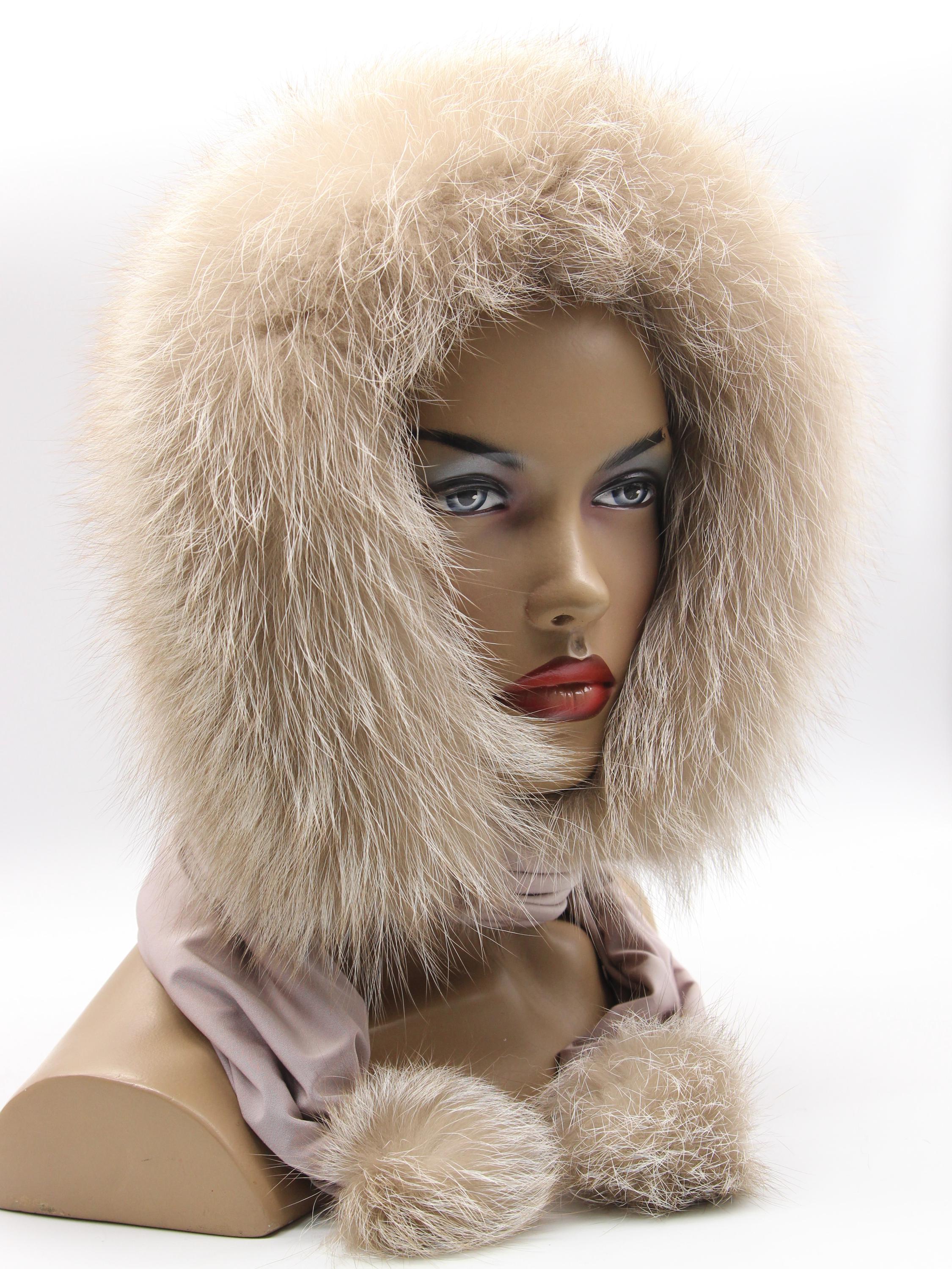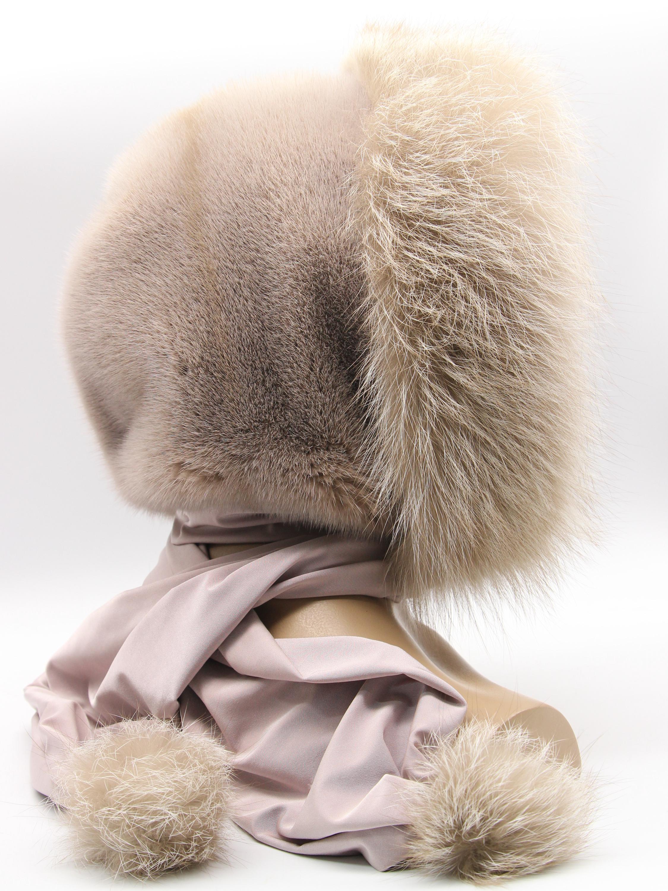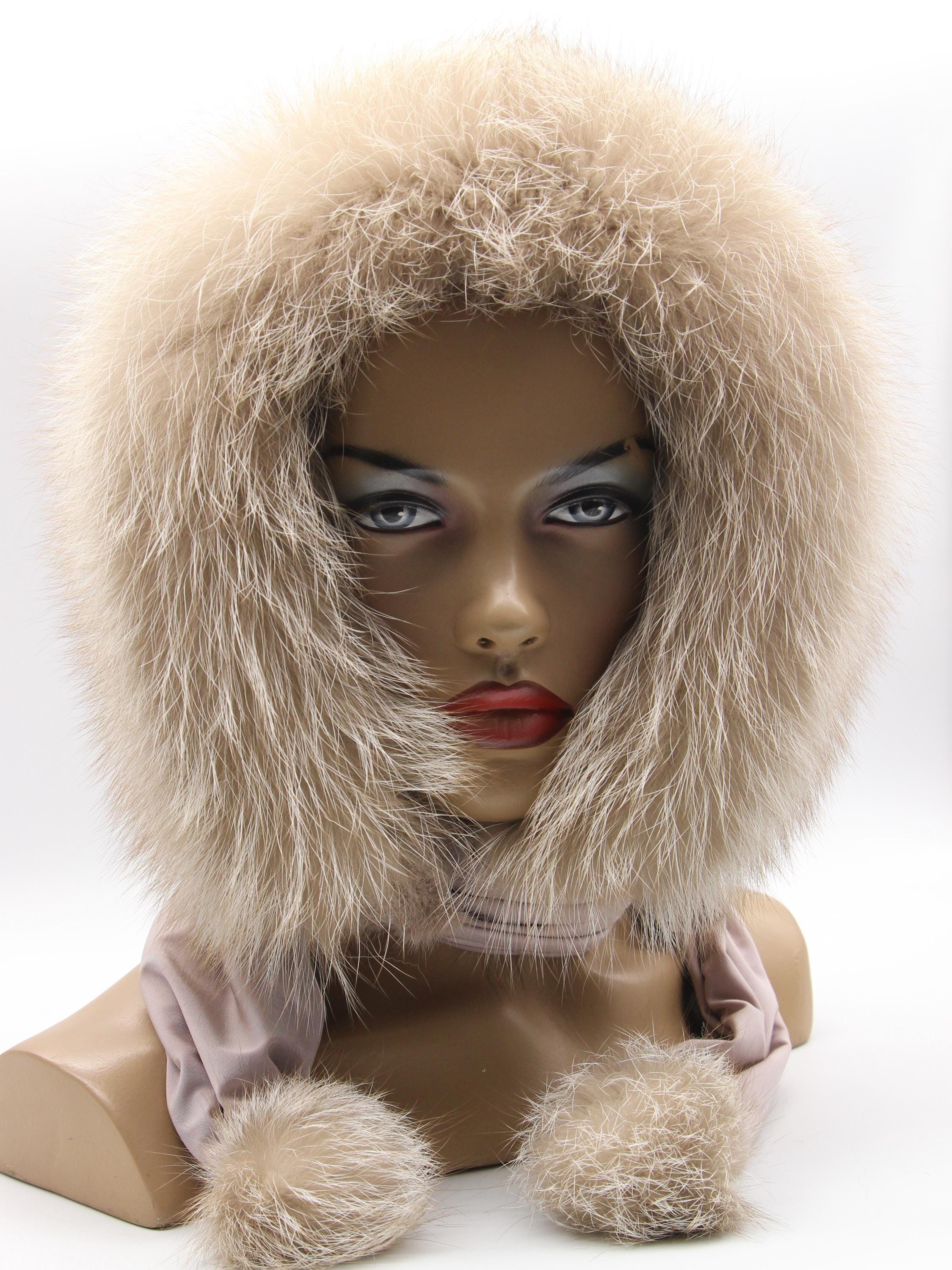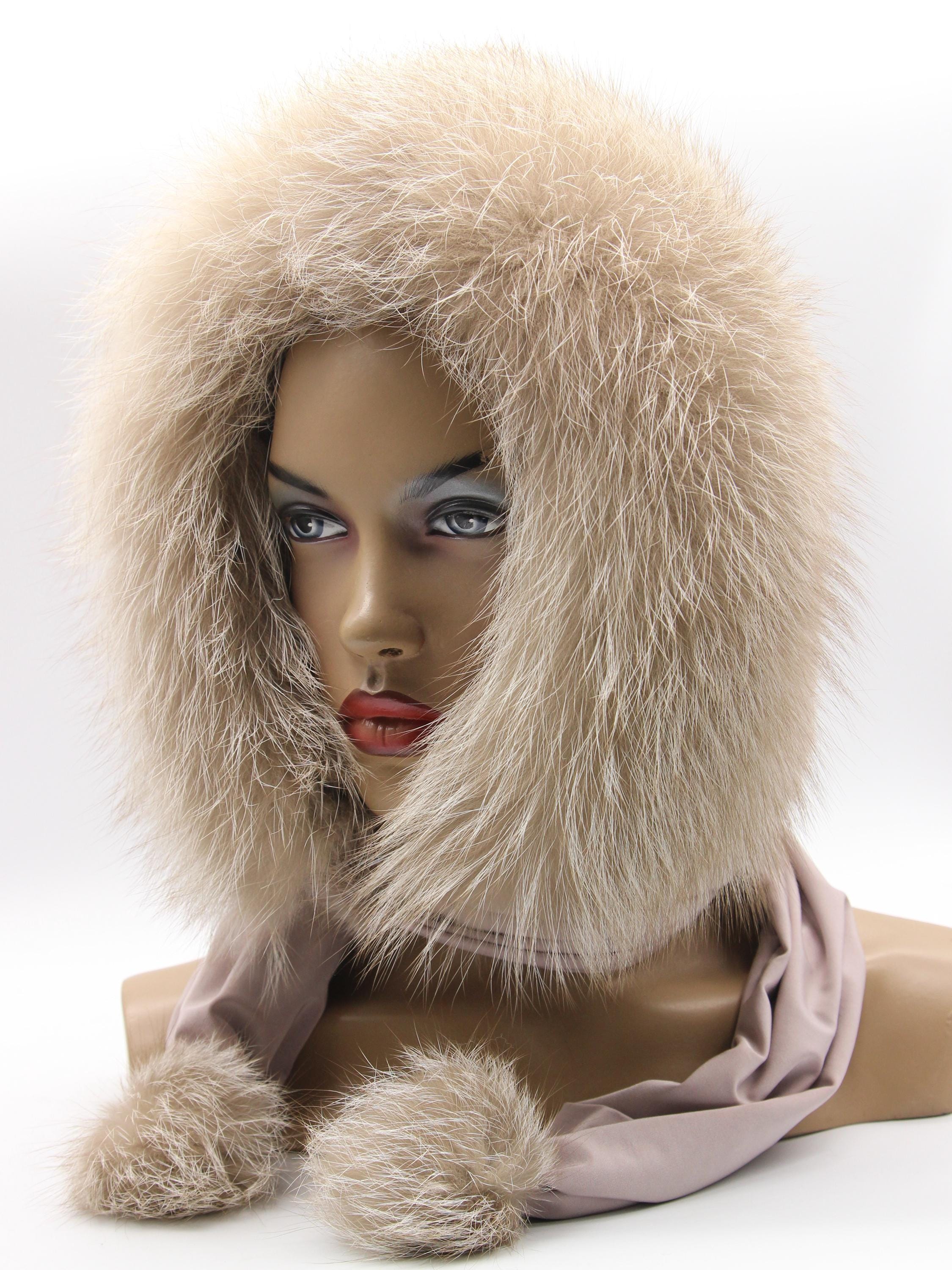 Powder Pink Mink Fox Fur Hat Women Hooded Scarf Handmade Winter Hood Coordinated Luxury Trim