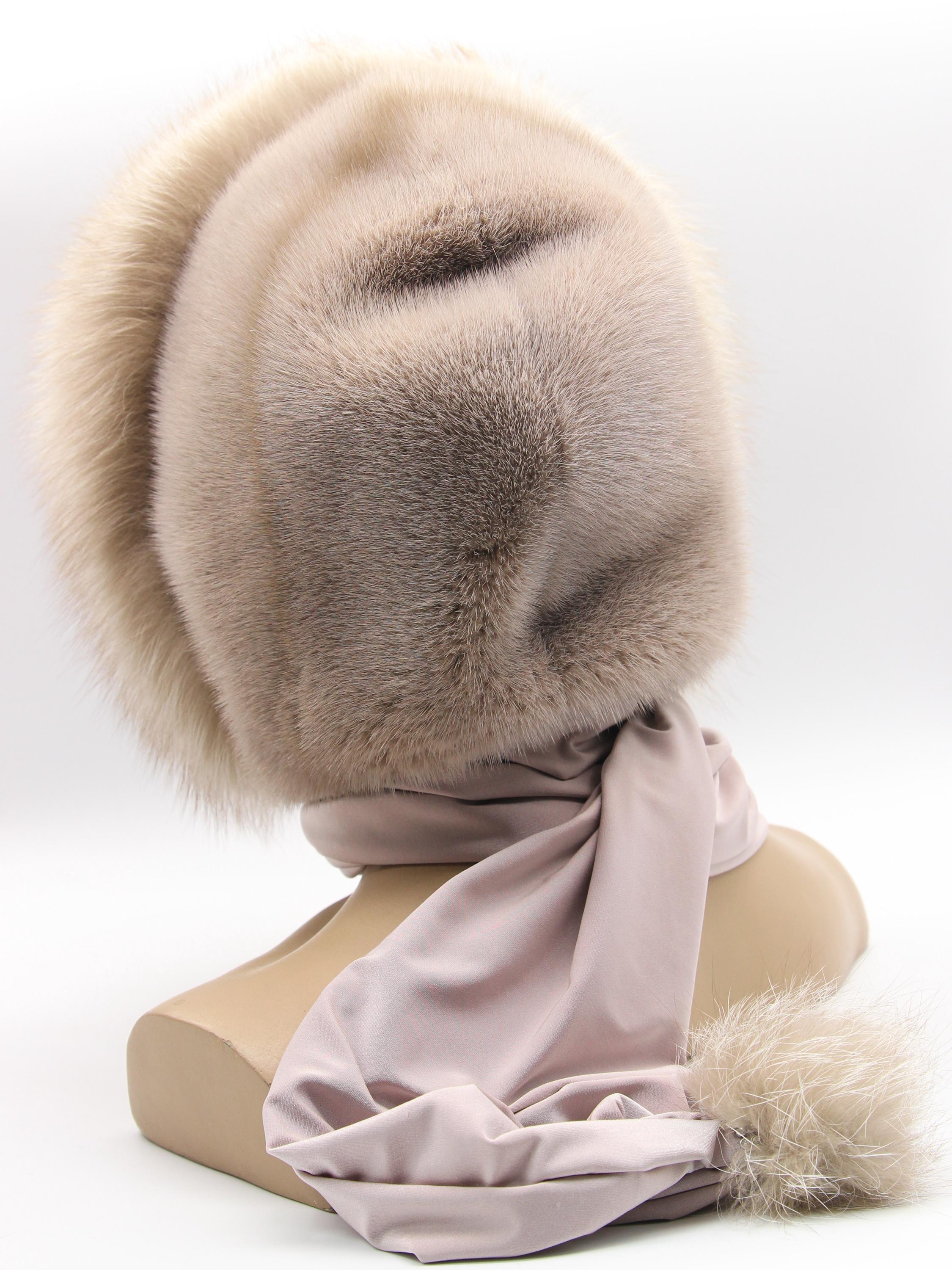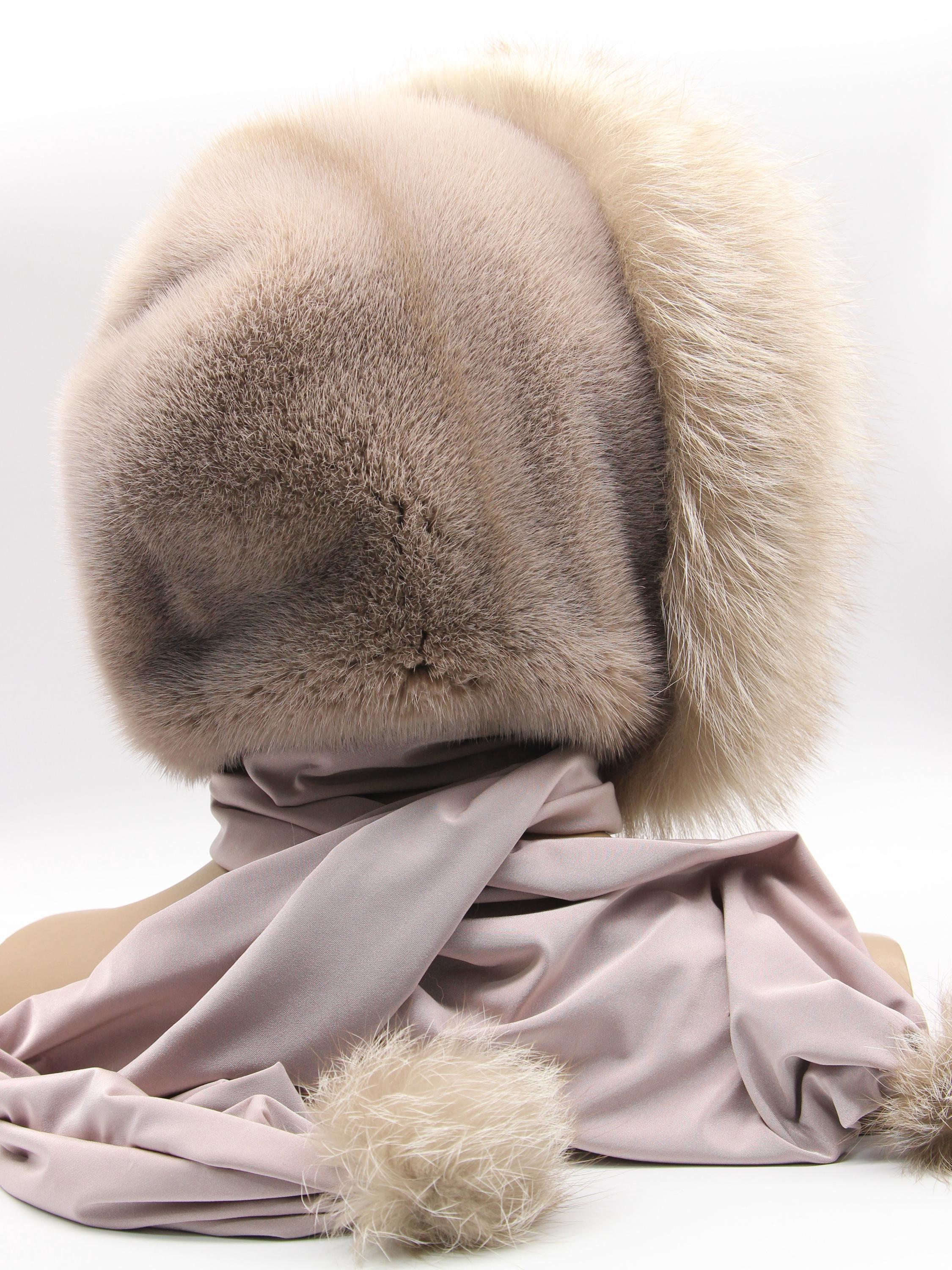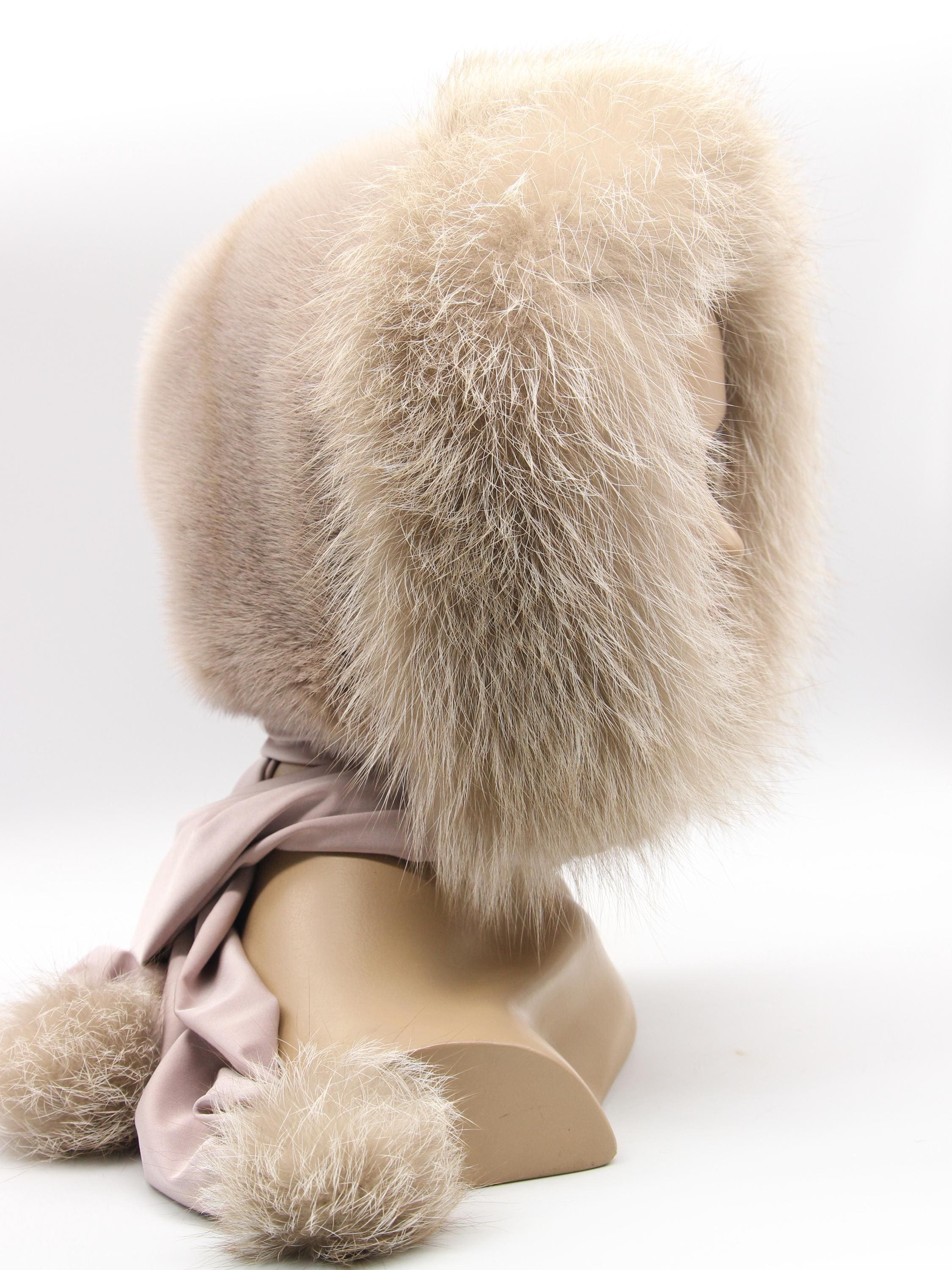 Powder Pink Mink Fox Fur Hat Women Hooded Scarf Handmade Winter Hood Coordinated Luxury Trim
