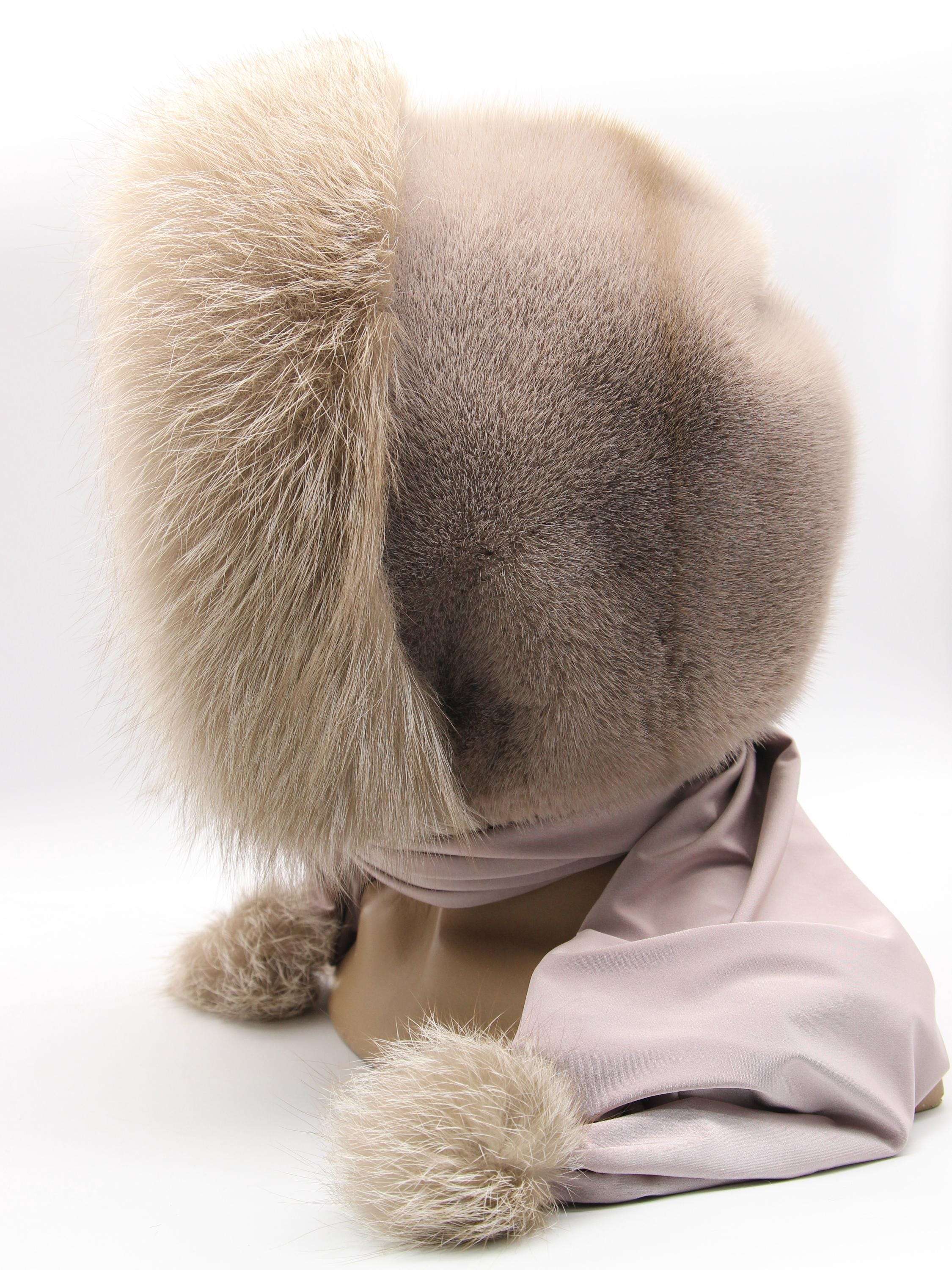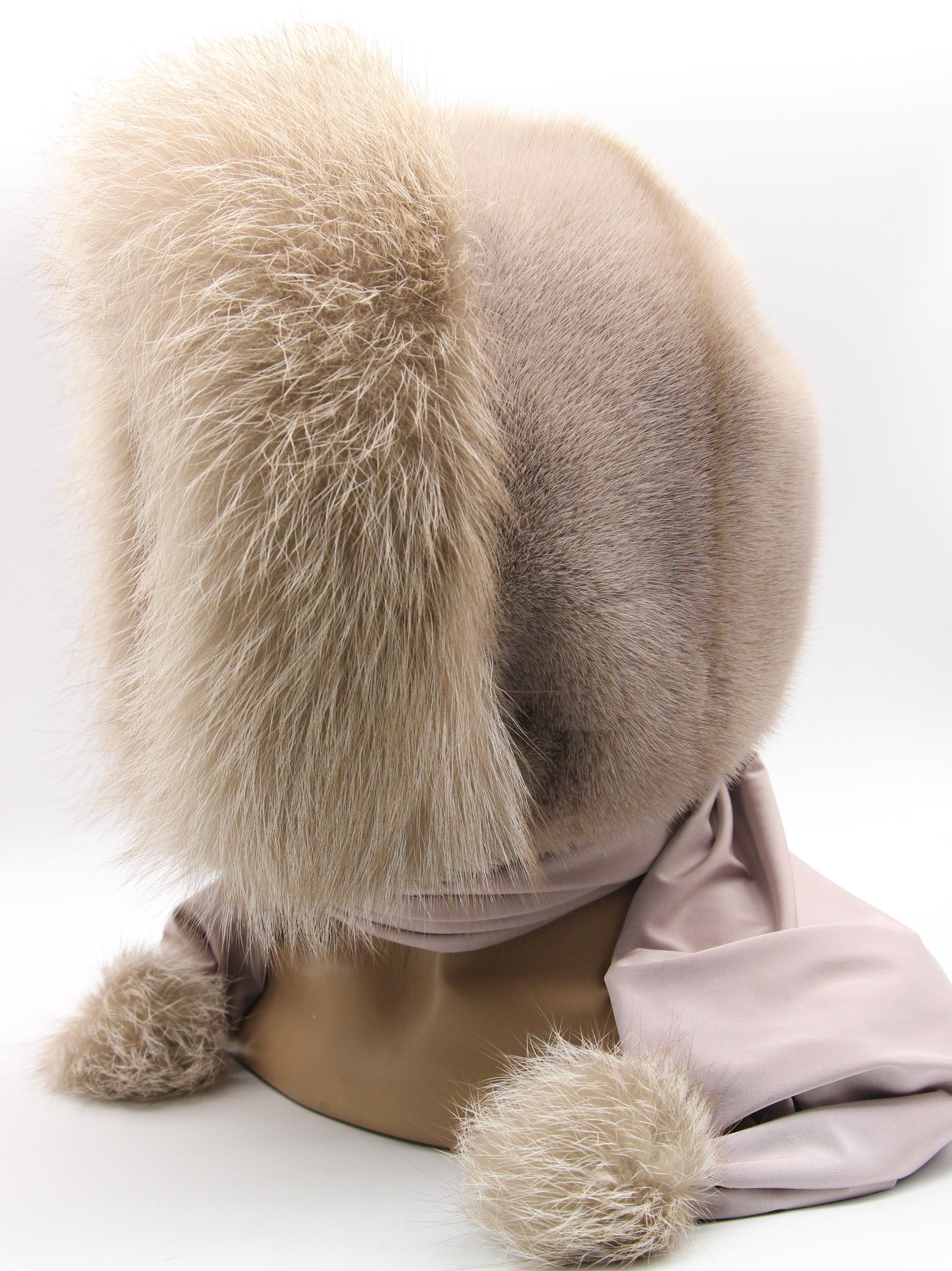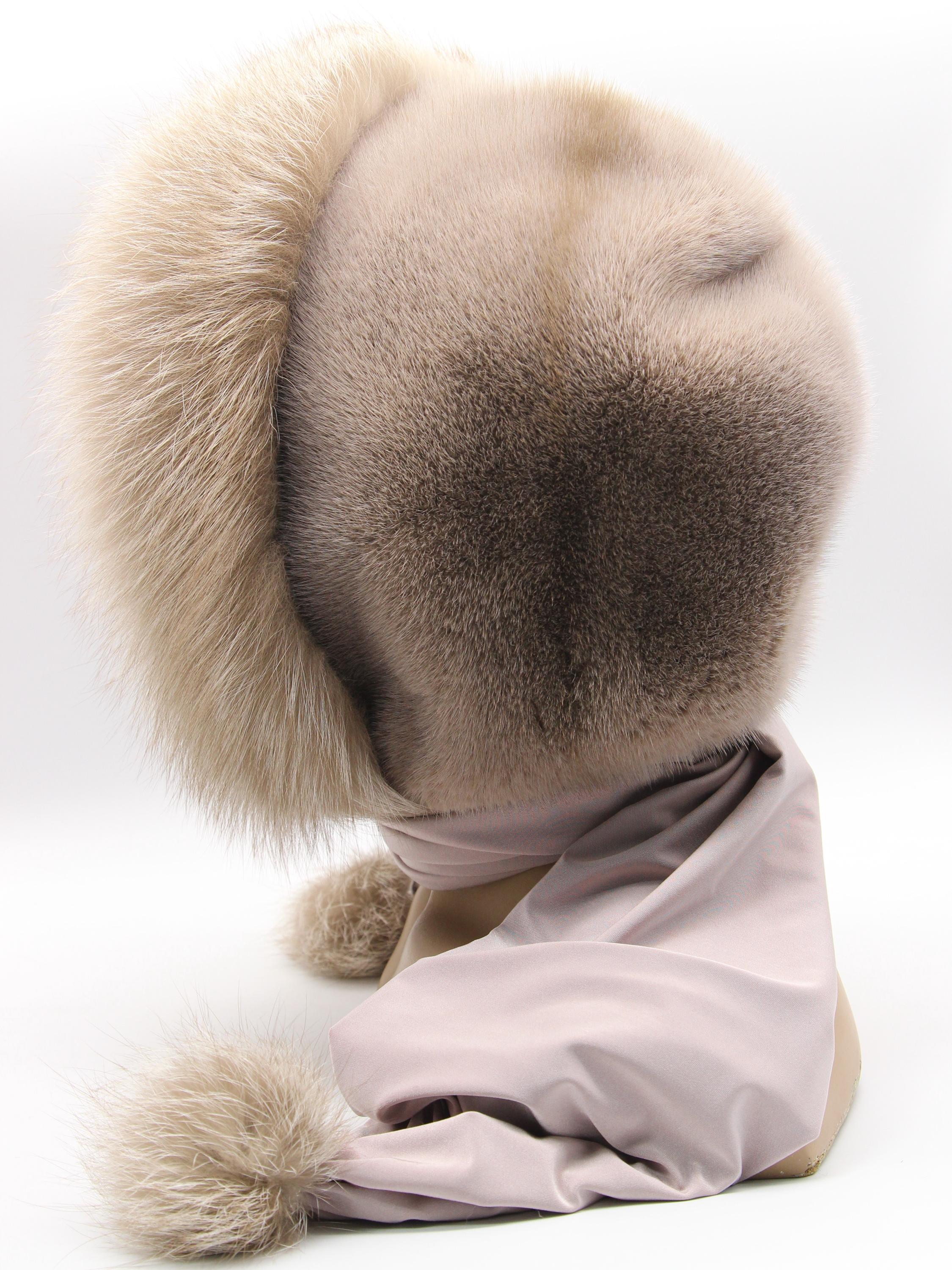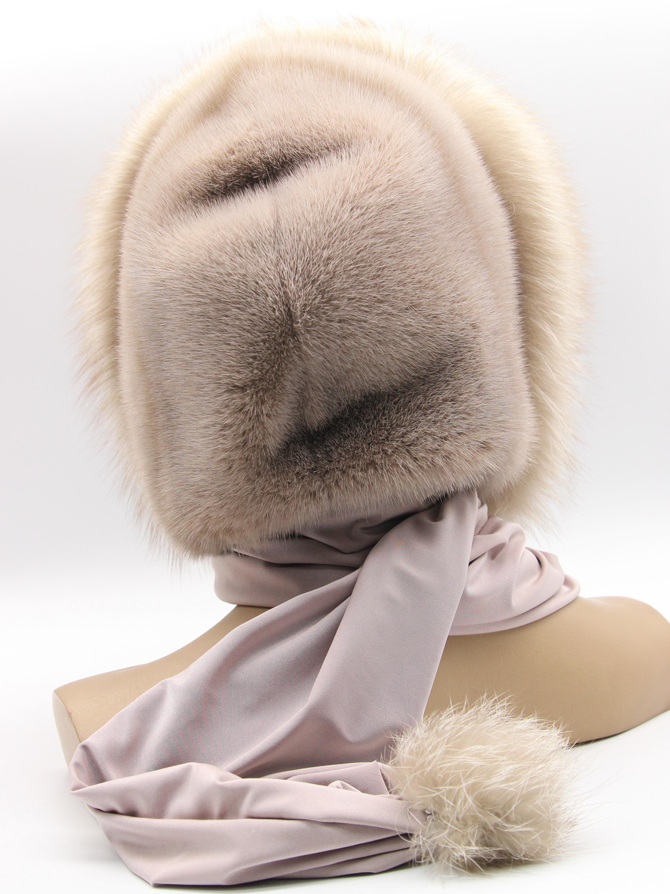 Powder Pink Mink Fox Fur Hat Women Hooded Scarf Handmade Winter Hood Coordinated Luxury Trim