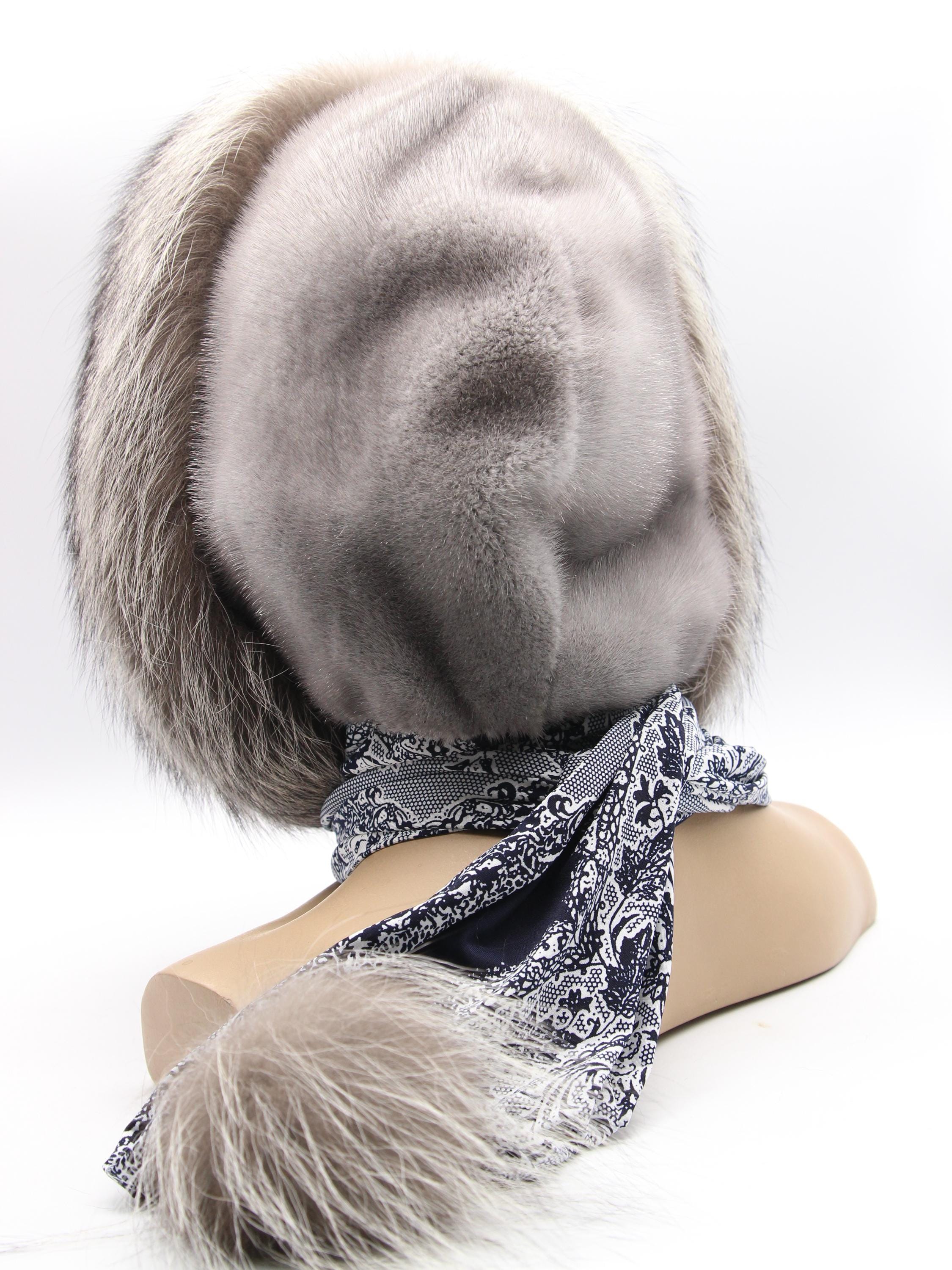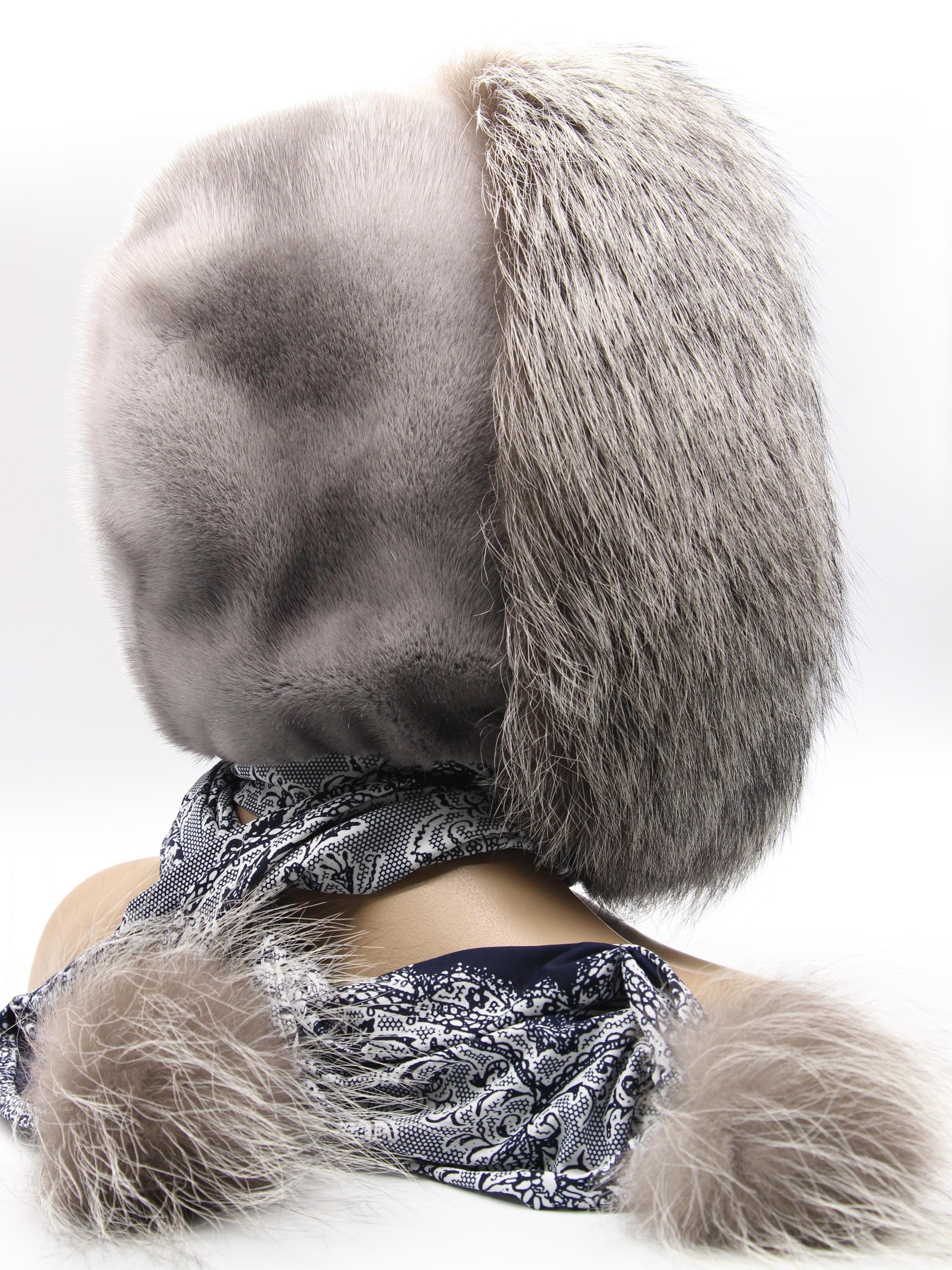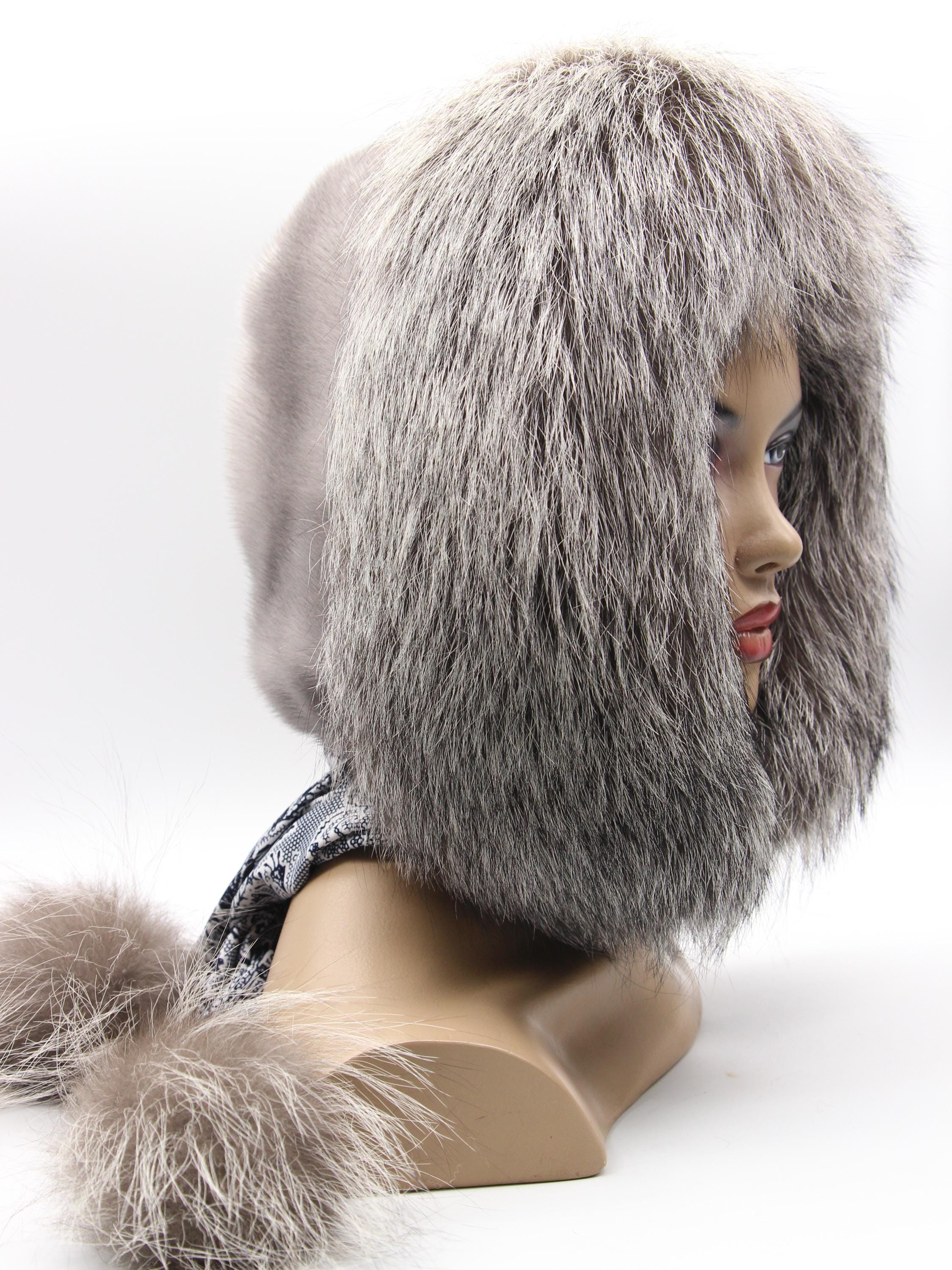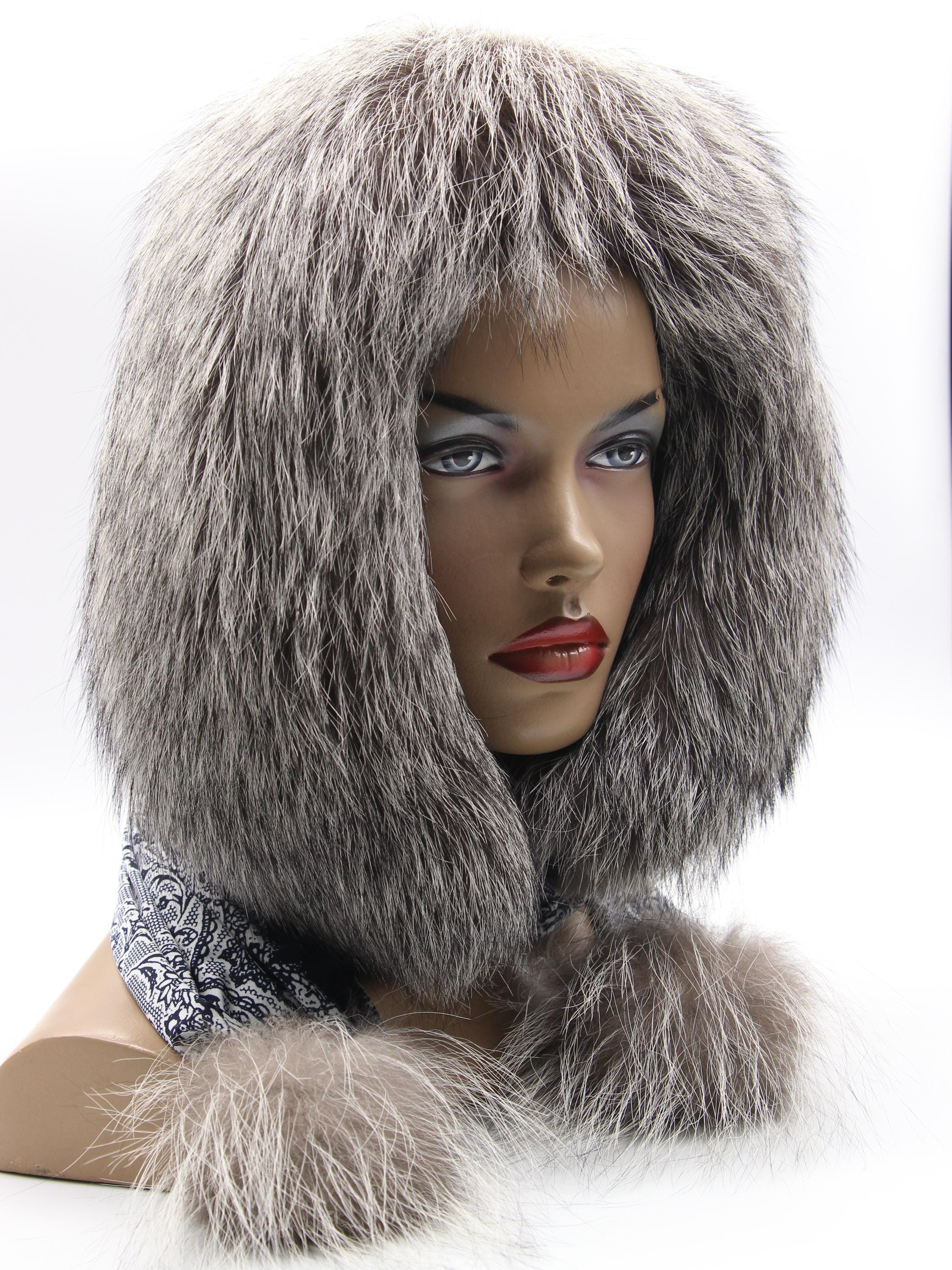 Silver Fox Sapphire Mink Fur Hat Women Hooded Scarf: Nature's Superior Color Palette