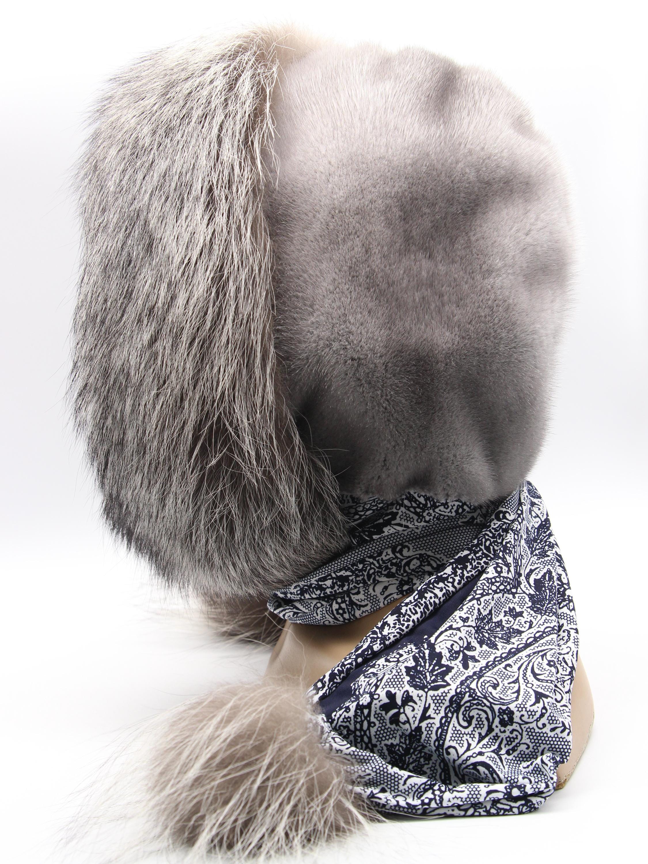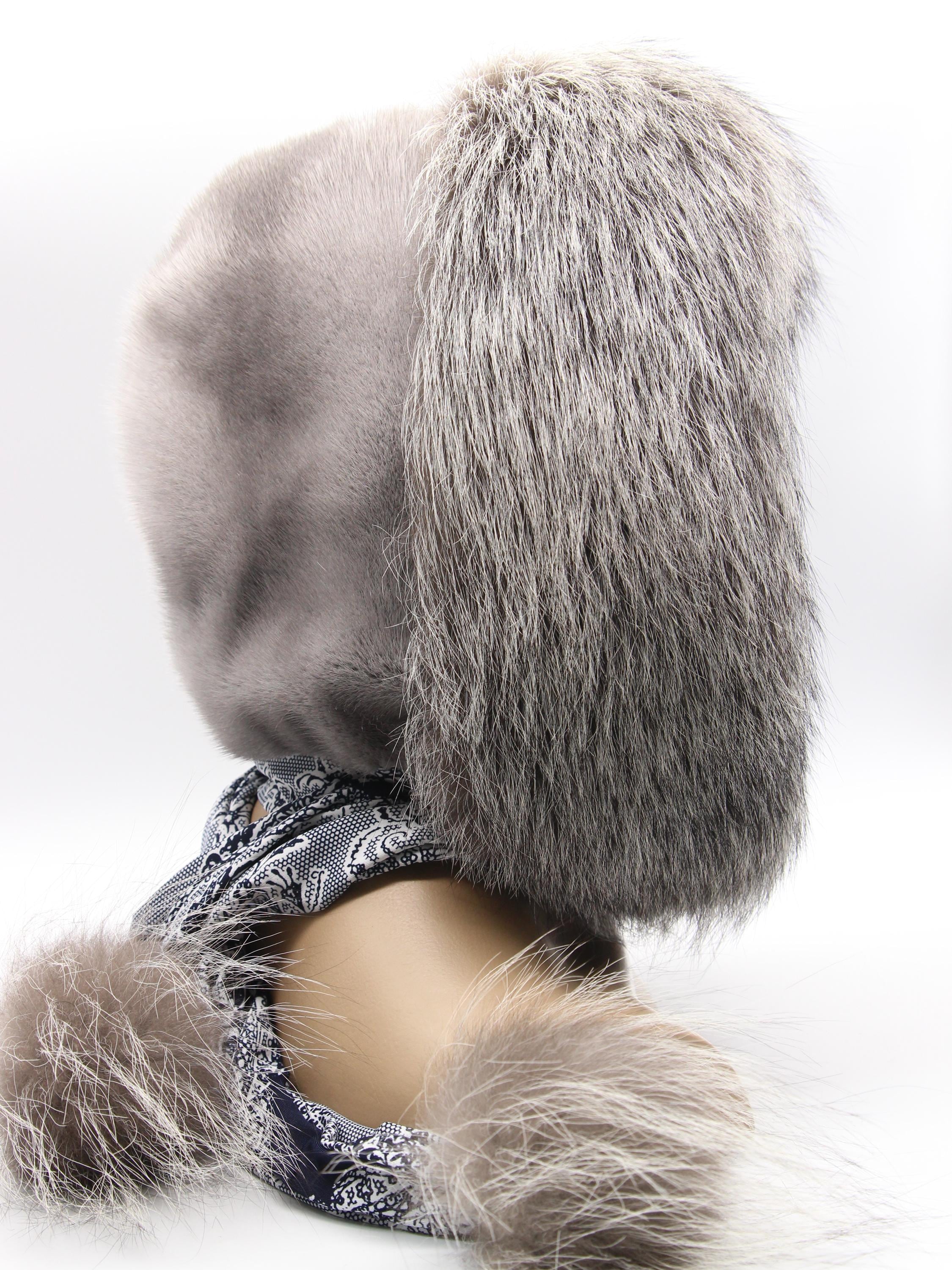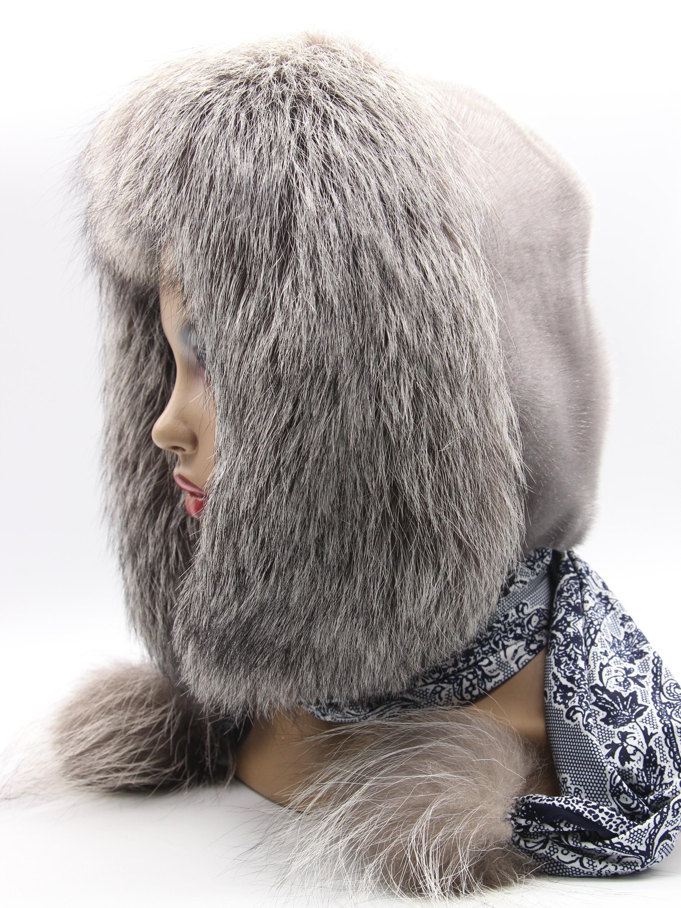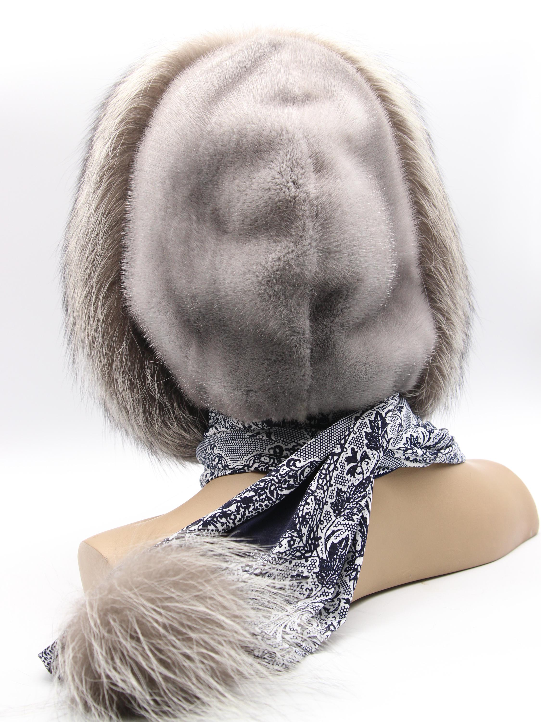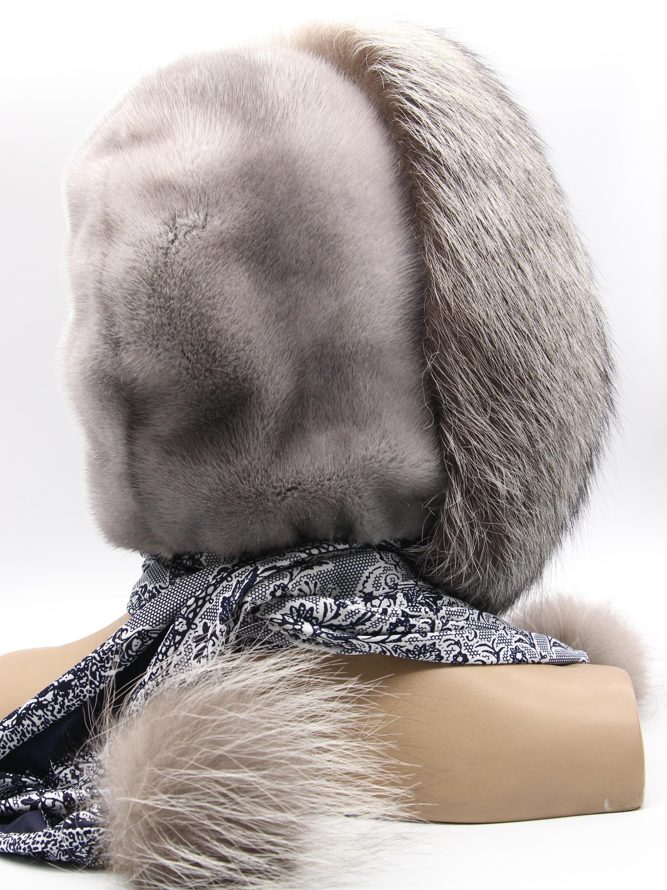 Silver Fox Sapphire Mink Fur Hat Women Hooded Scarf: Nature's Superior Color Palette