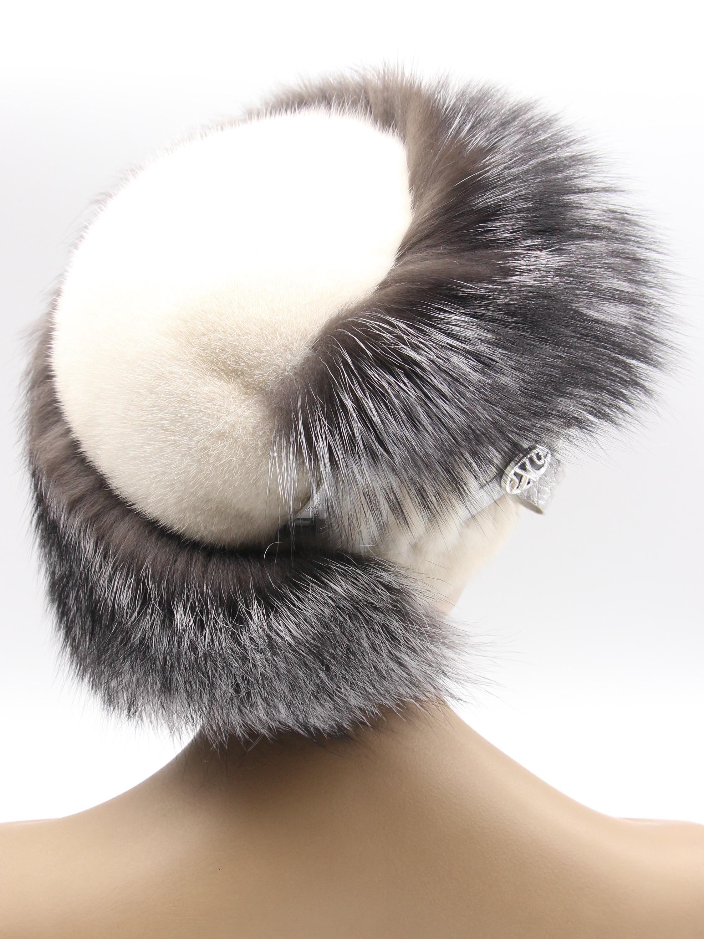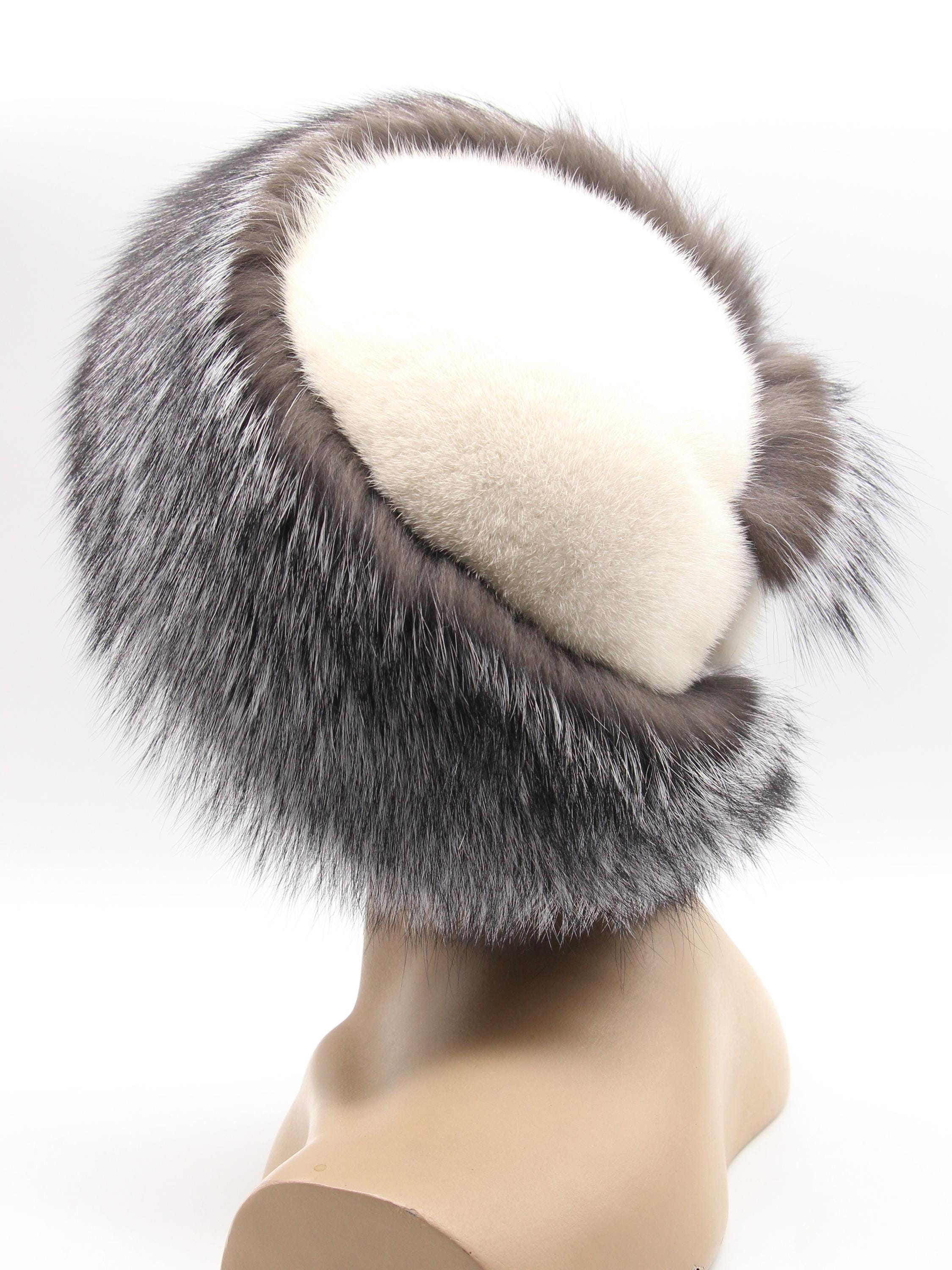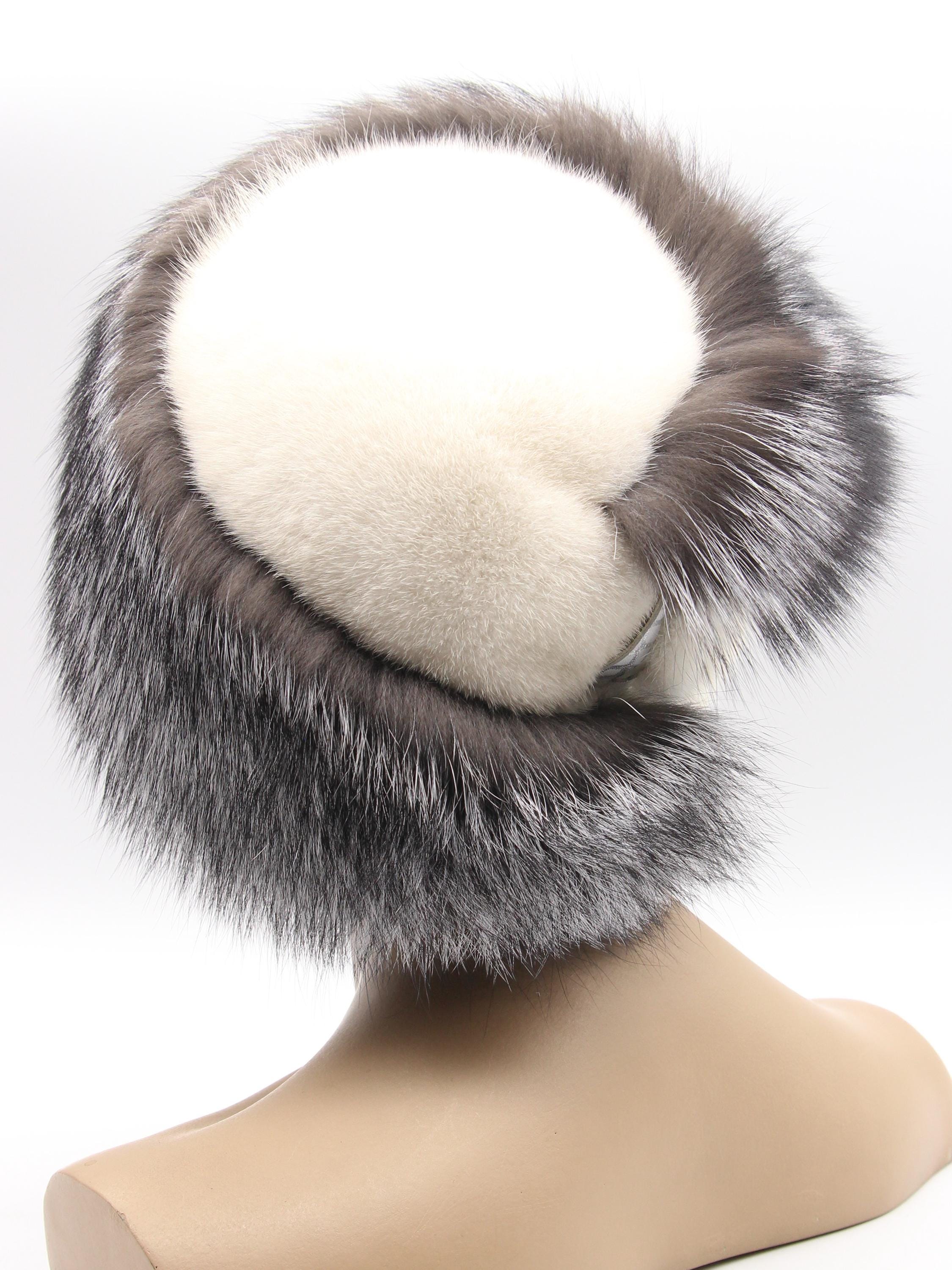 Ivory Mink and Silver Fox Fur Hat - Handmade Luxury Statement Winter Headpiece for Women