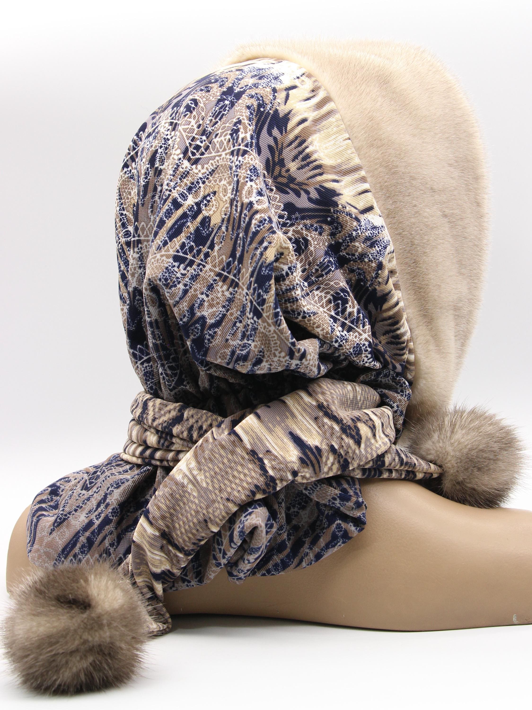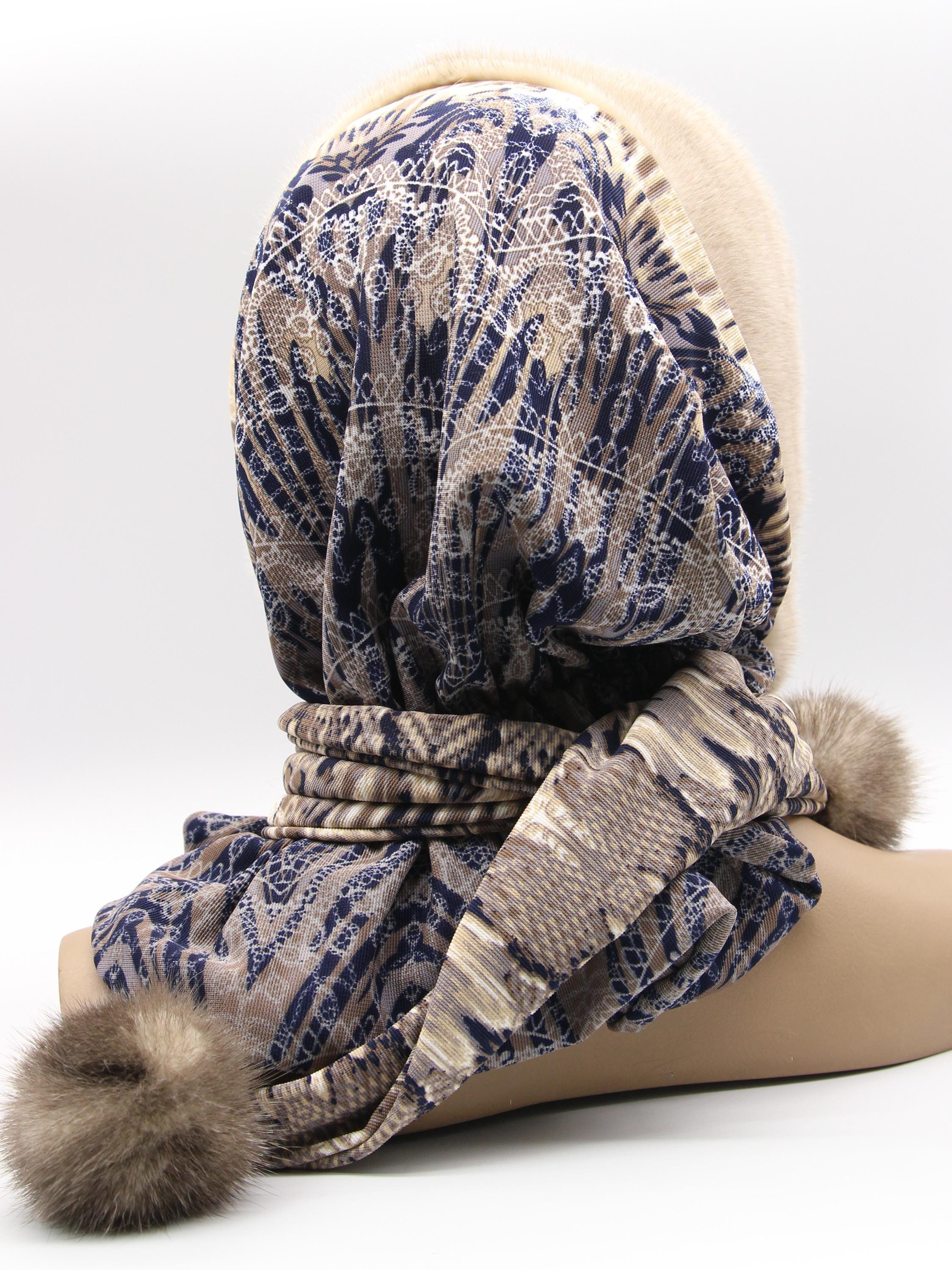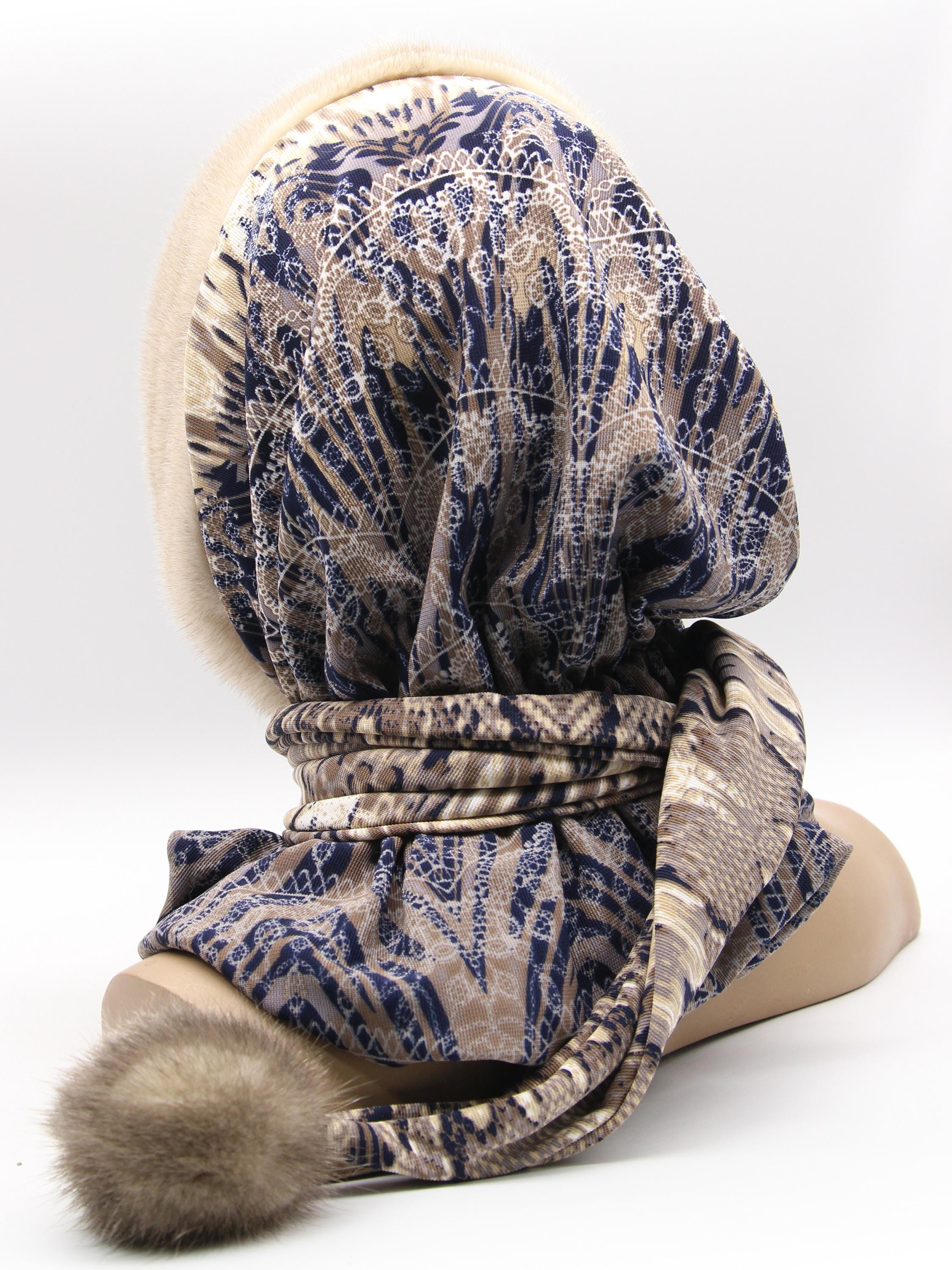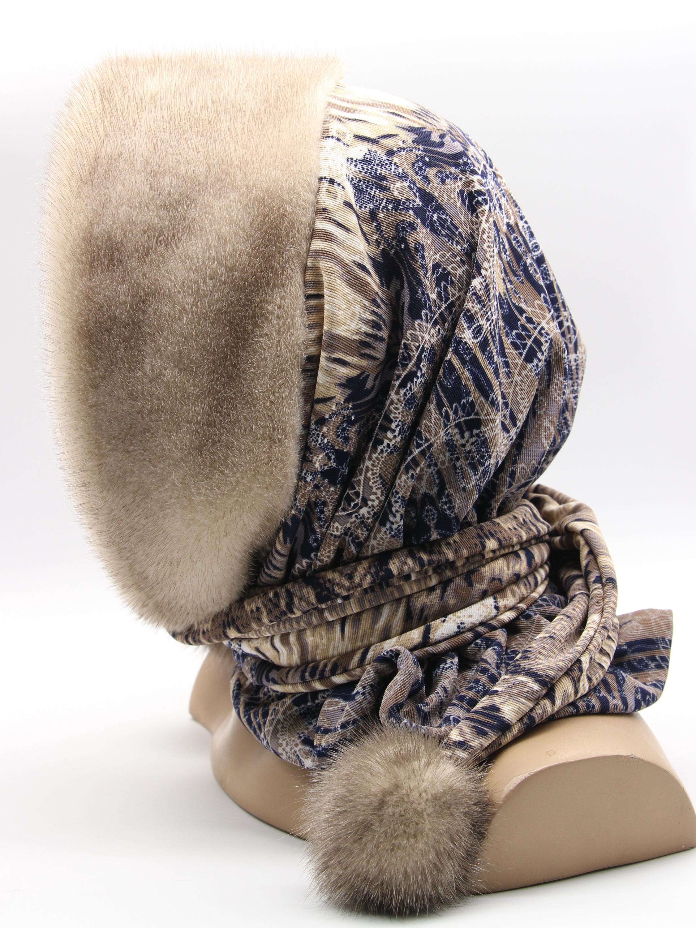 Message from Chicago arrives early December. Woman explaining she's exhausted by all-black winter wardrobe but nervous about adding color. Asks if natural beige mink fur on this hooded scarf really works as neutral. More versatile than black actually, I tell her - beige mink warms up your face, goes with everything. This fur stole pairs patterned knit base with natural beige mink trim. Orders it somewhat doubtfully, writes enthusiastic message later - wore it to work meeting, client lunch, grocery run all same day, looked appropriate for everything, got complimented three separate times.