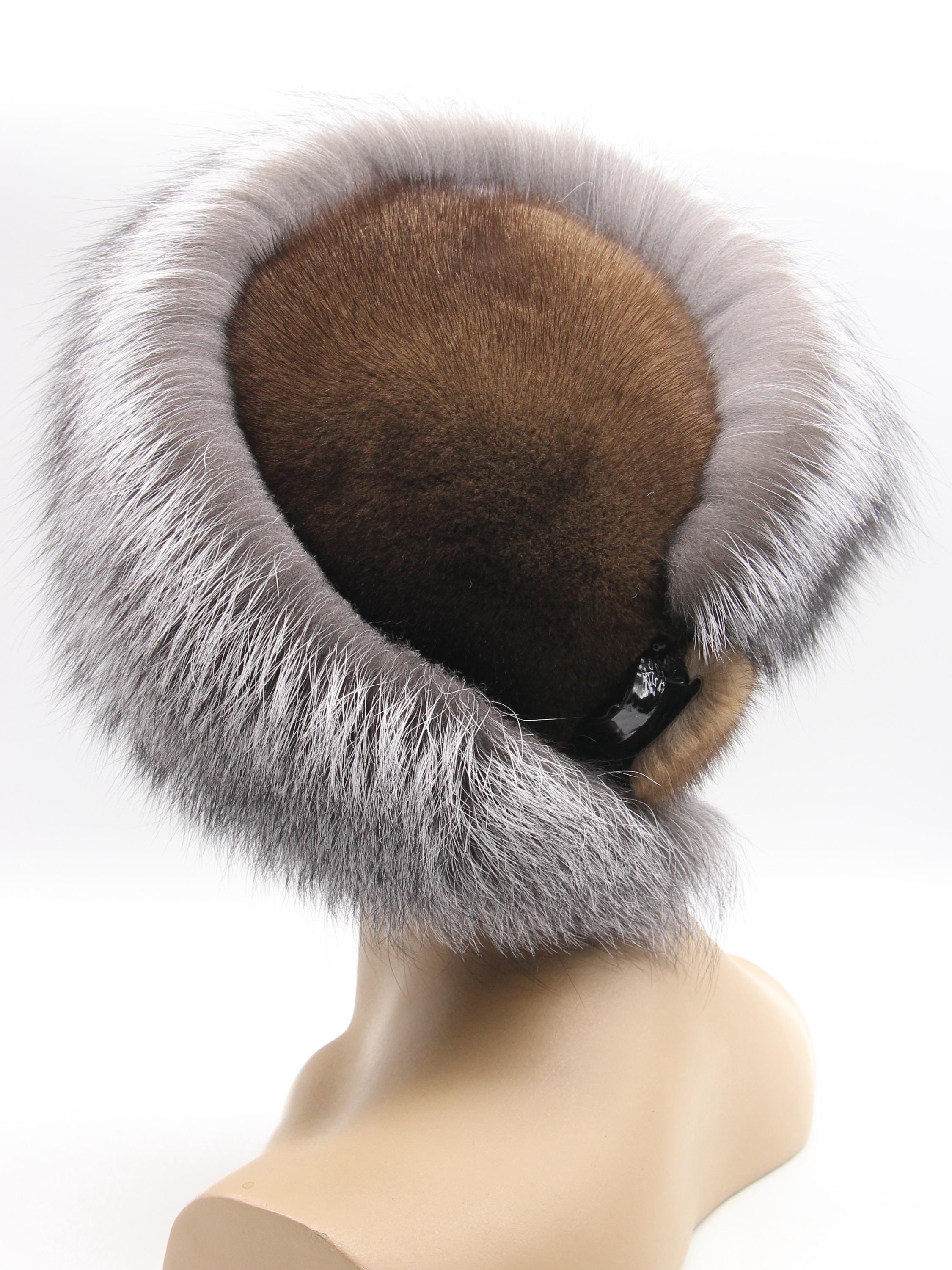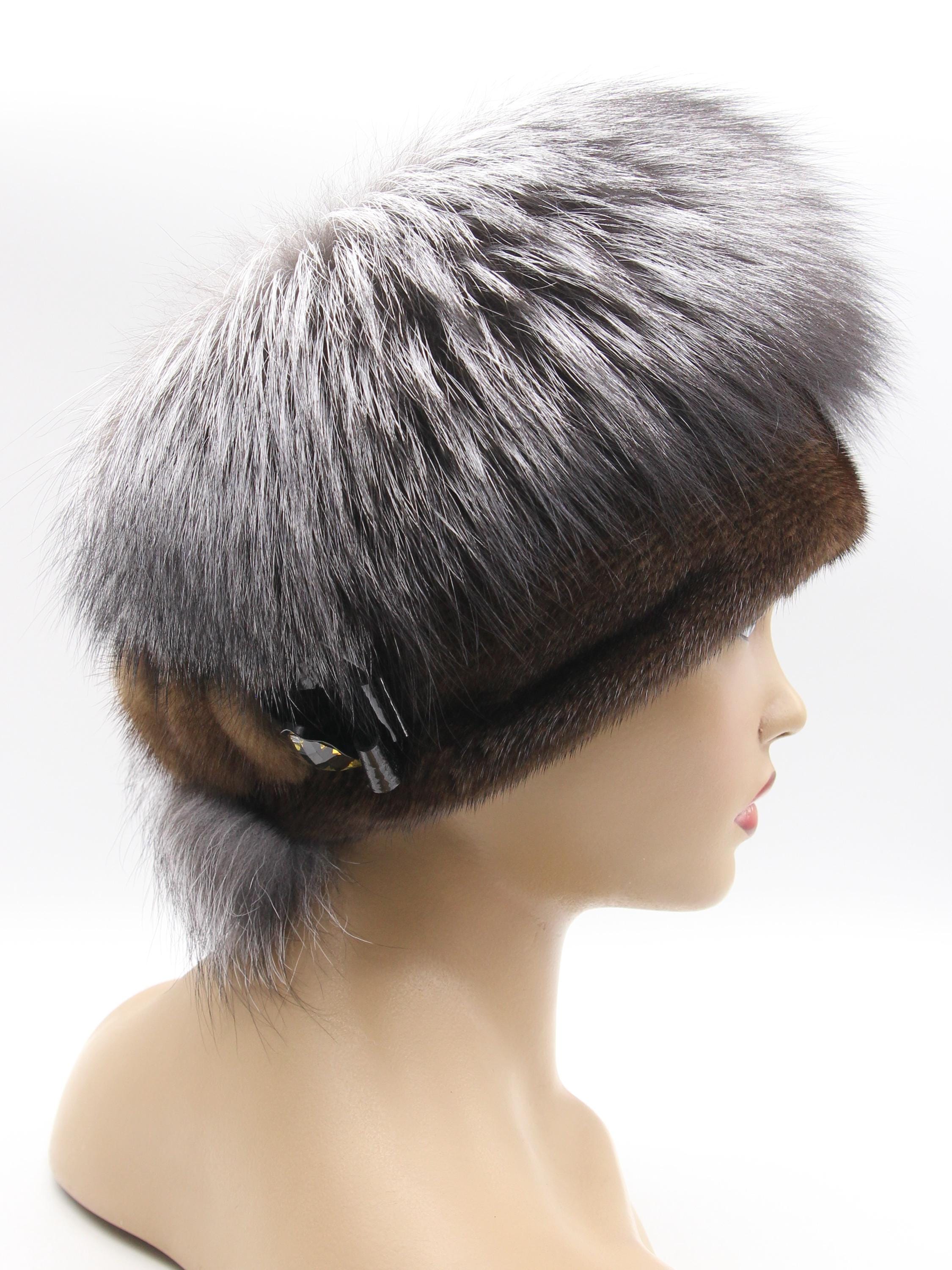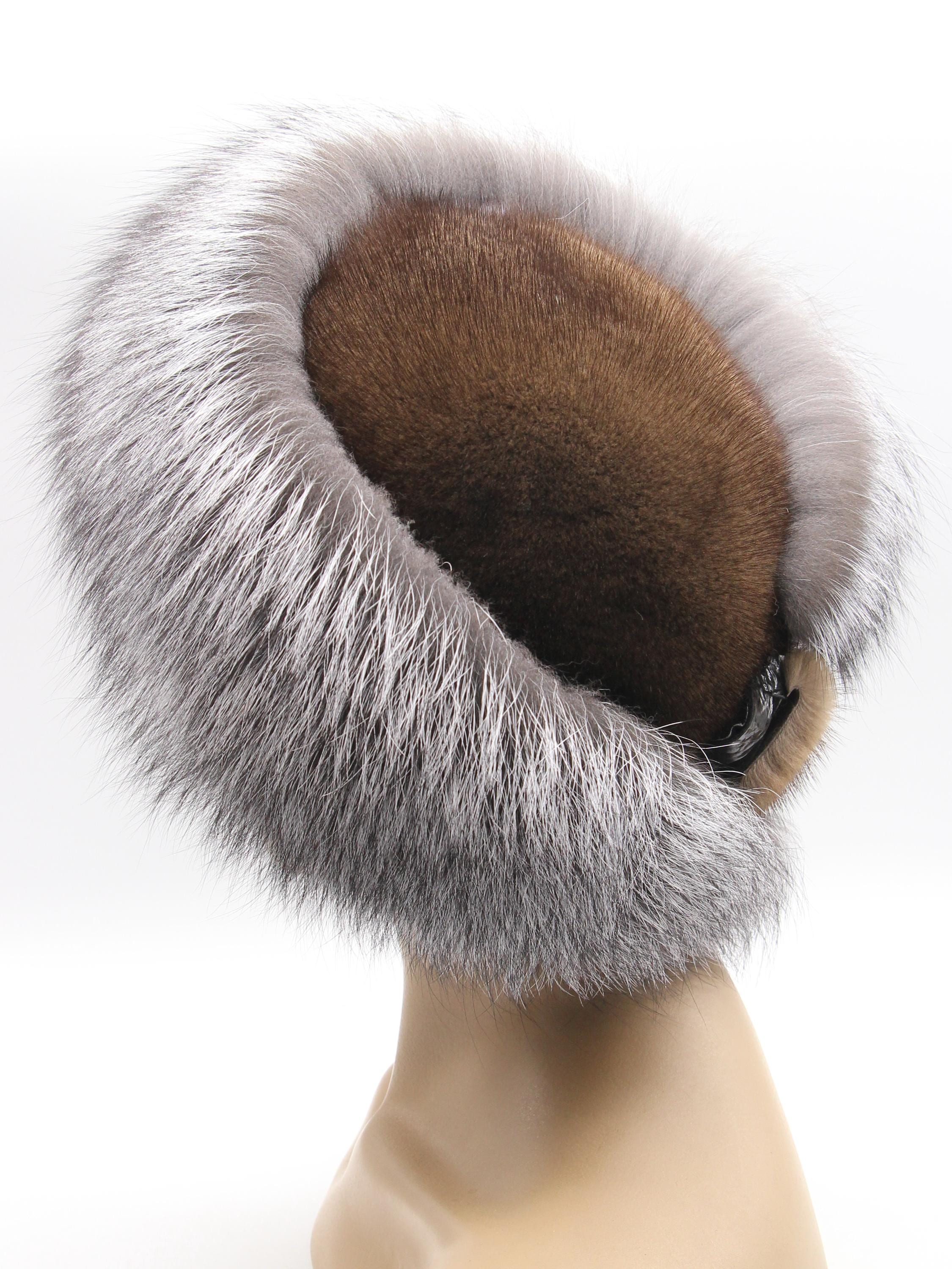 Pastel Mink Silver Fox Fur Hat Women Winter Luxury Handmade Fitted Natural