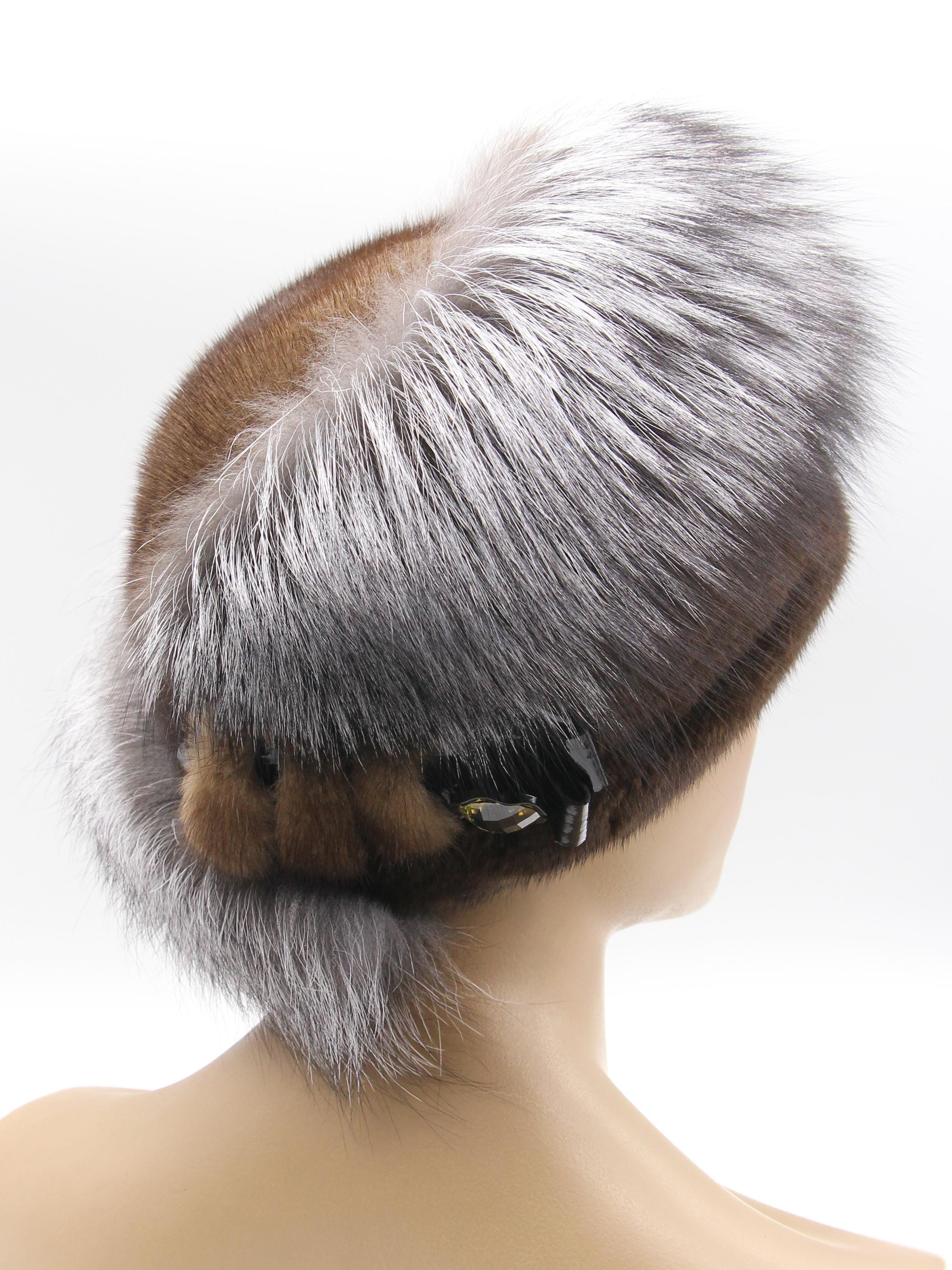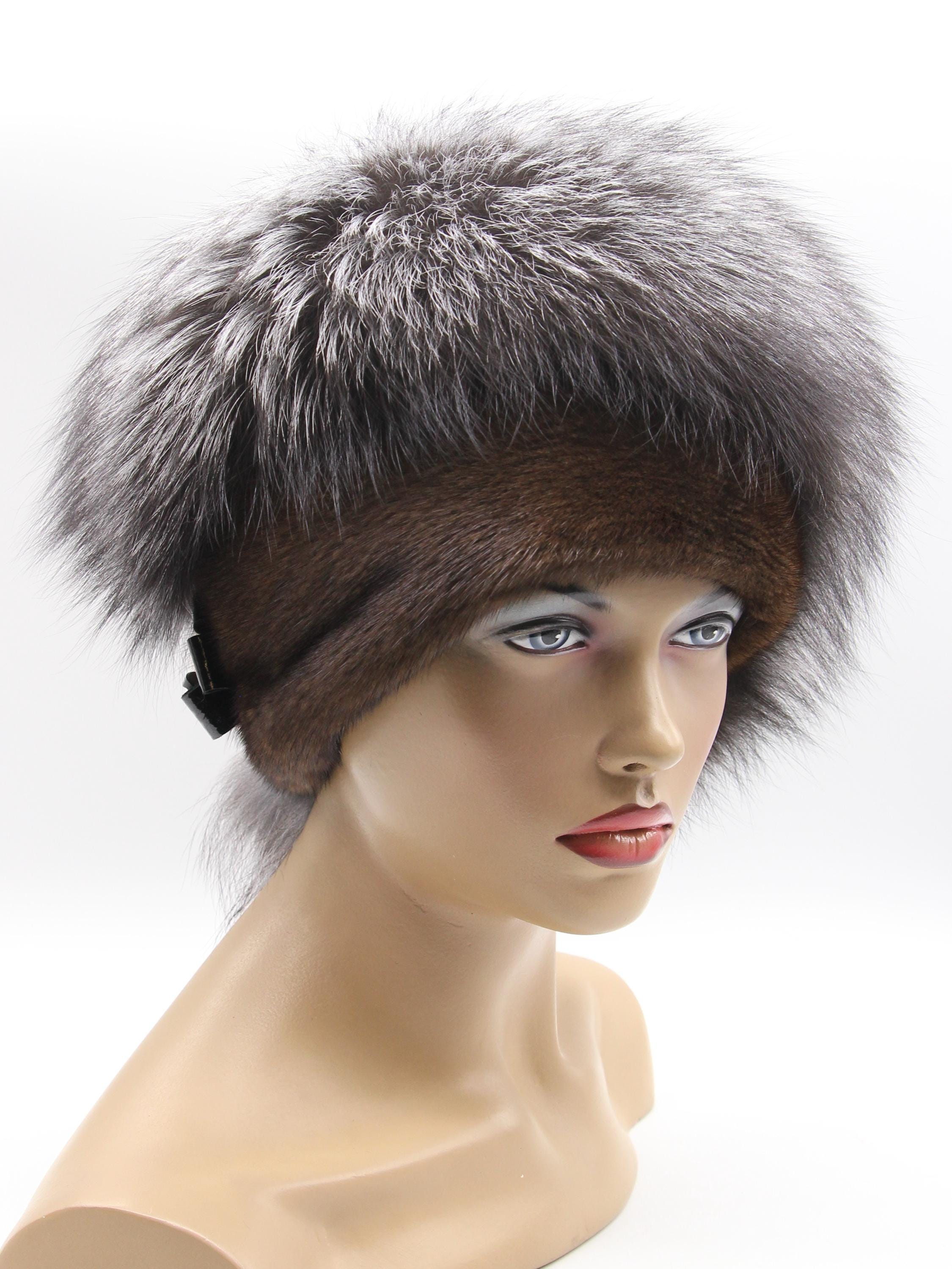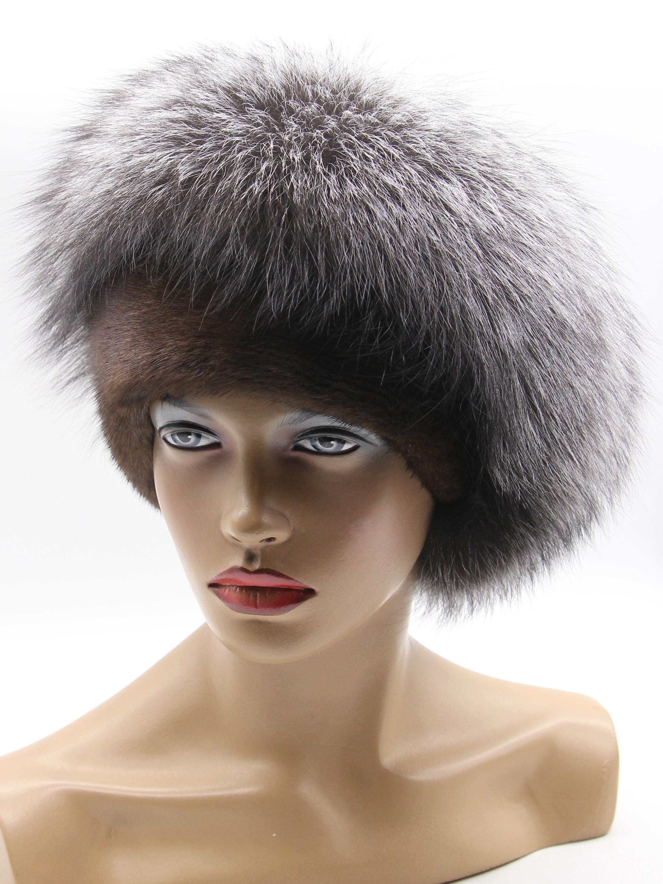 Pastel Mink Silver Fox Fur Hat Women Winter Luxury Handmade Fitted Natural
