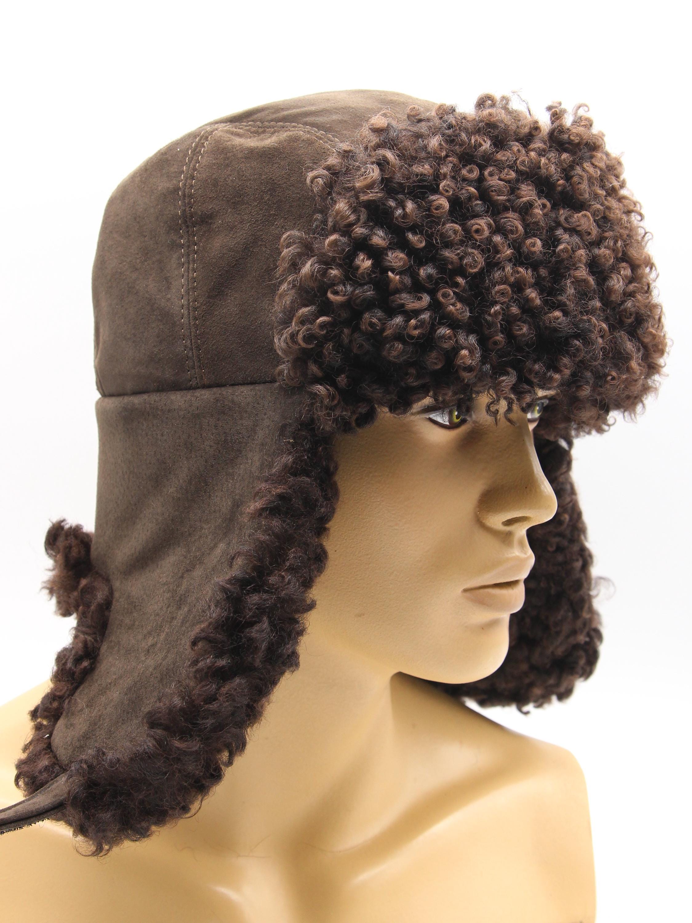This karakul fur suede ushanka hat mens winter trapper aviator bomber developed Boston customer requesting more texture smooth furs. Karakul provides distinctive curled pattern immediate attention.